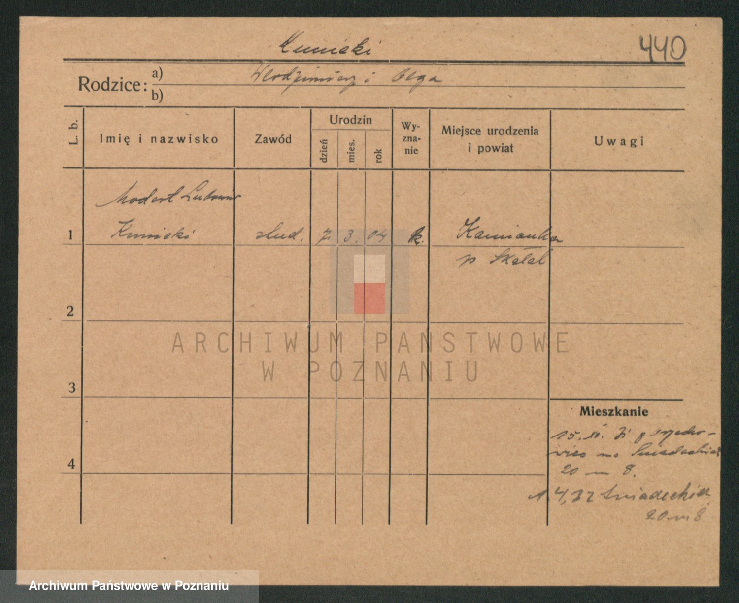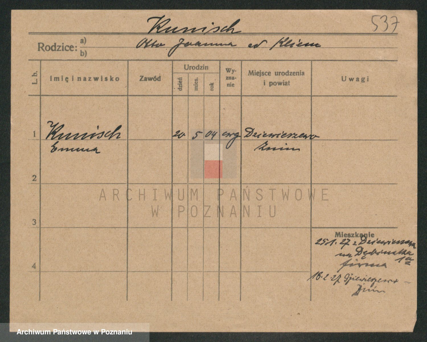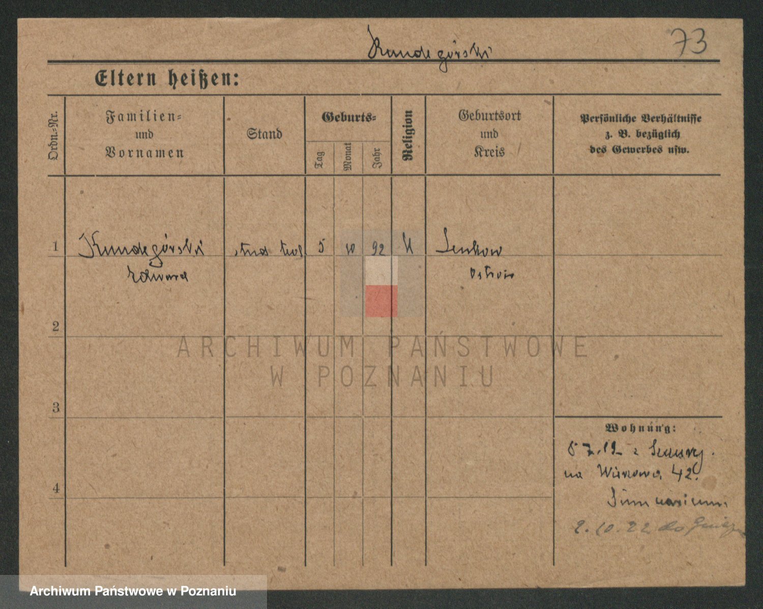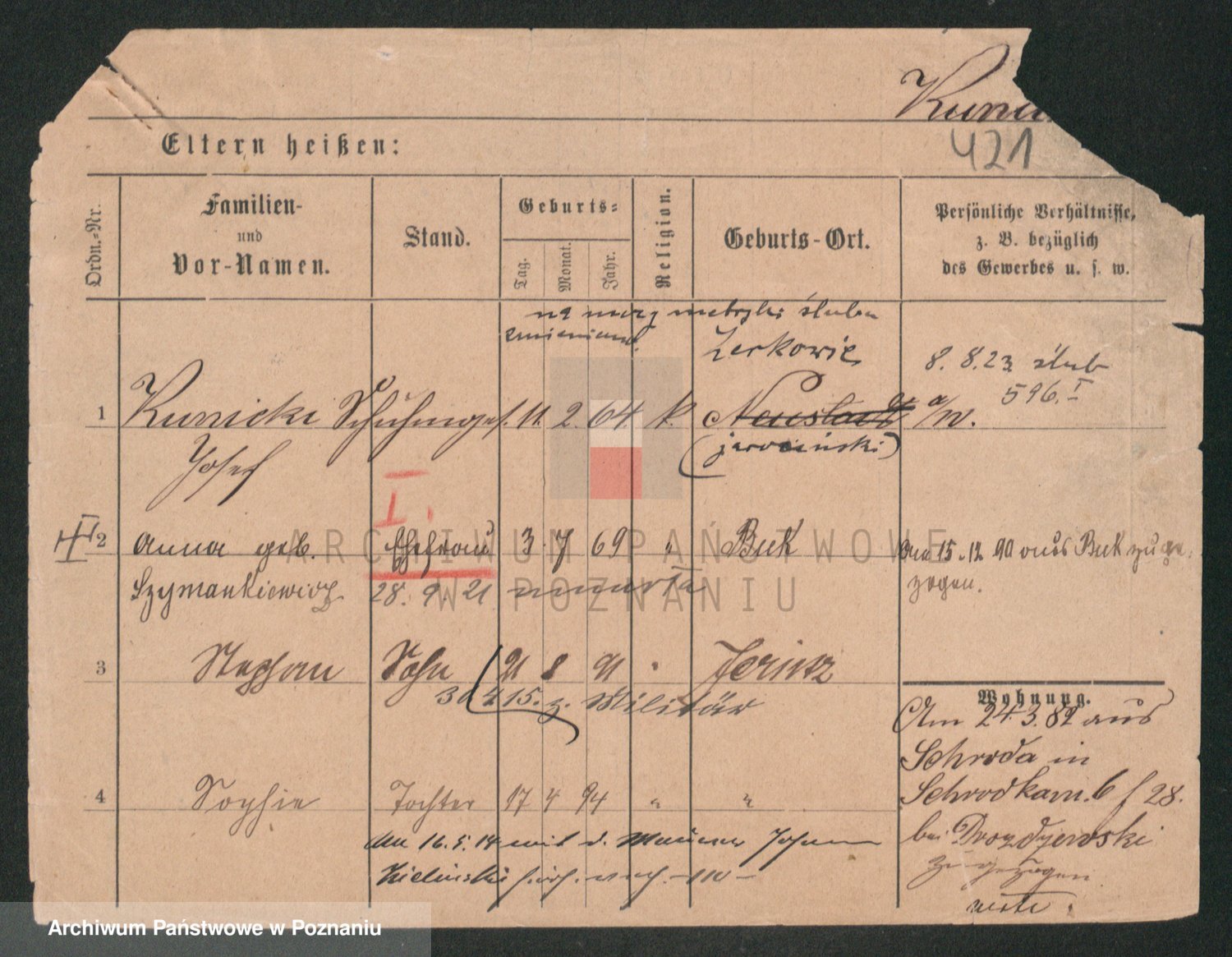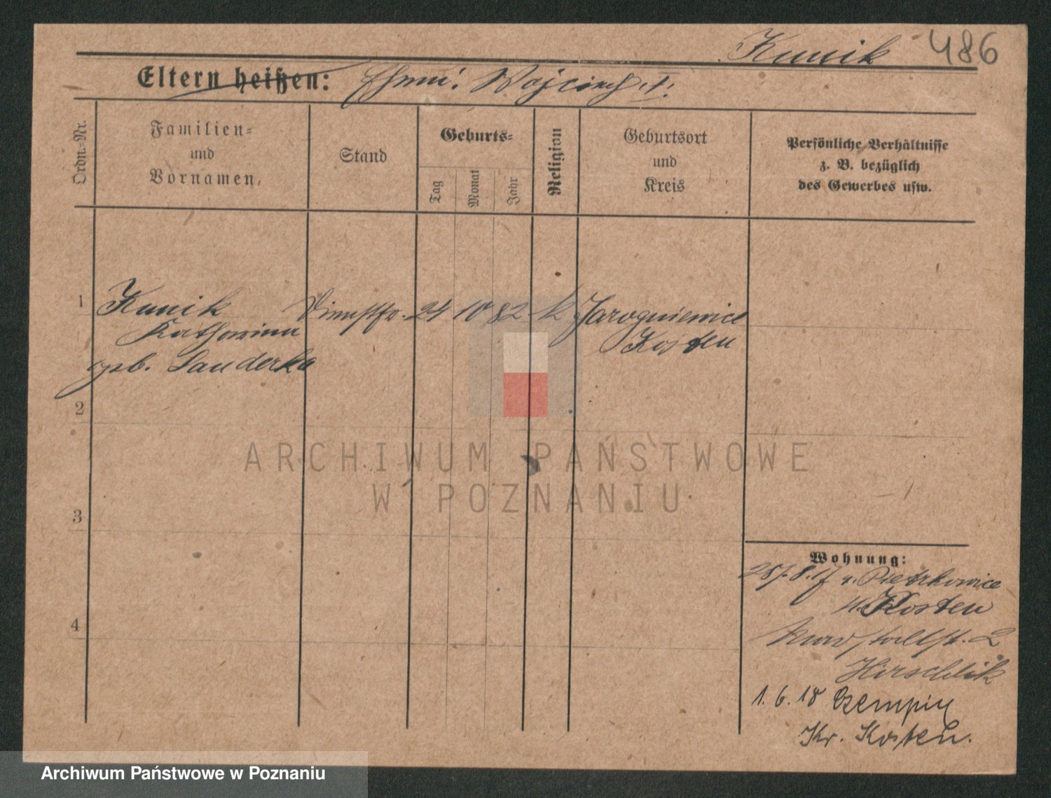 Podgląd karty osobowej dostępny jest po kliknięciu na nazwisko lub ikonkę karty. Można dokonywać powiększenia (ikony na górze) lub przechodzić między kolejnymi skanami (strzałki po bokach).