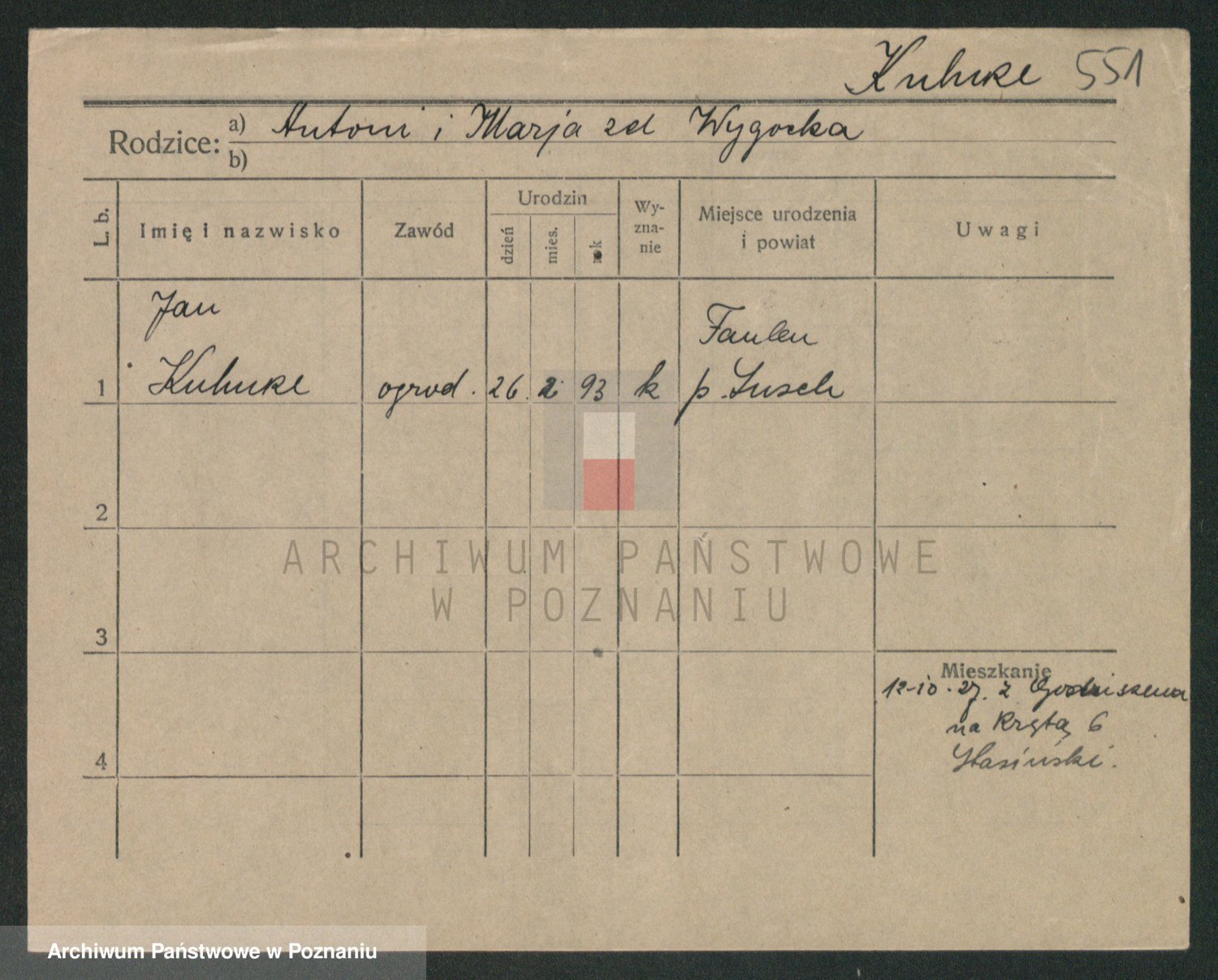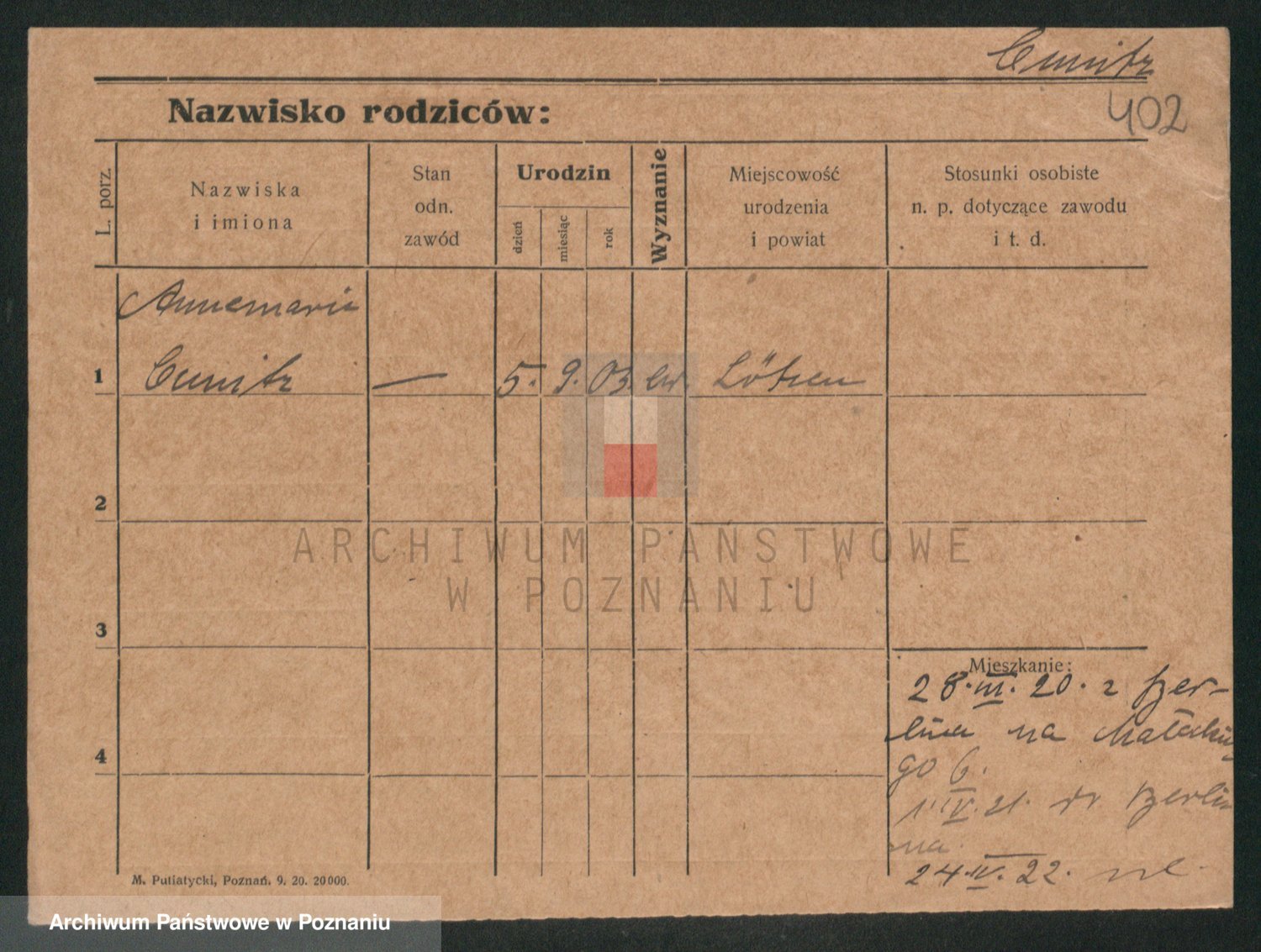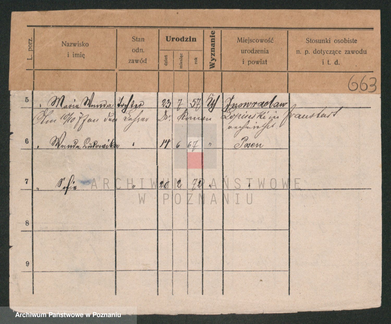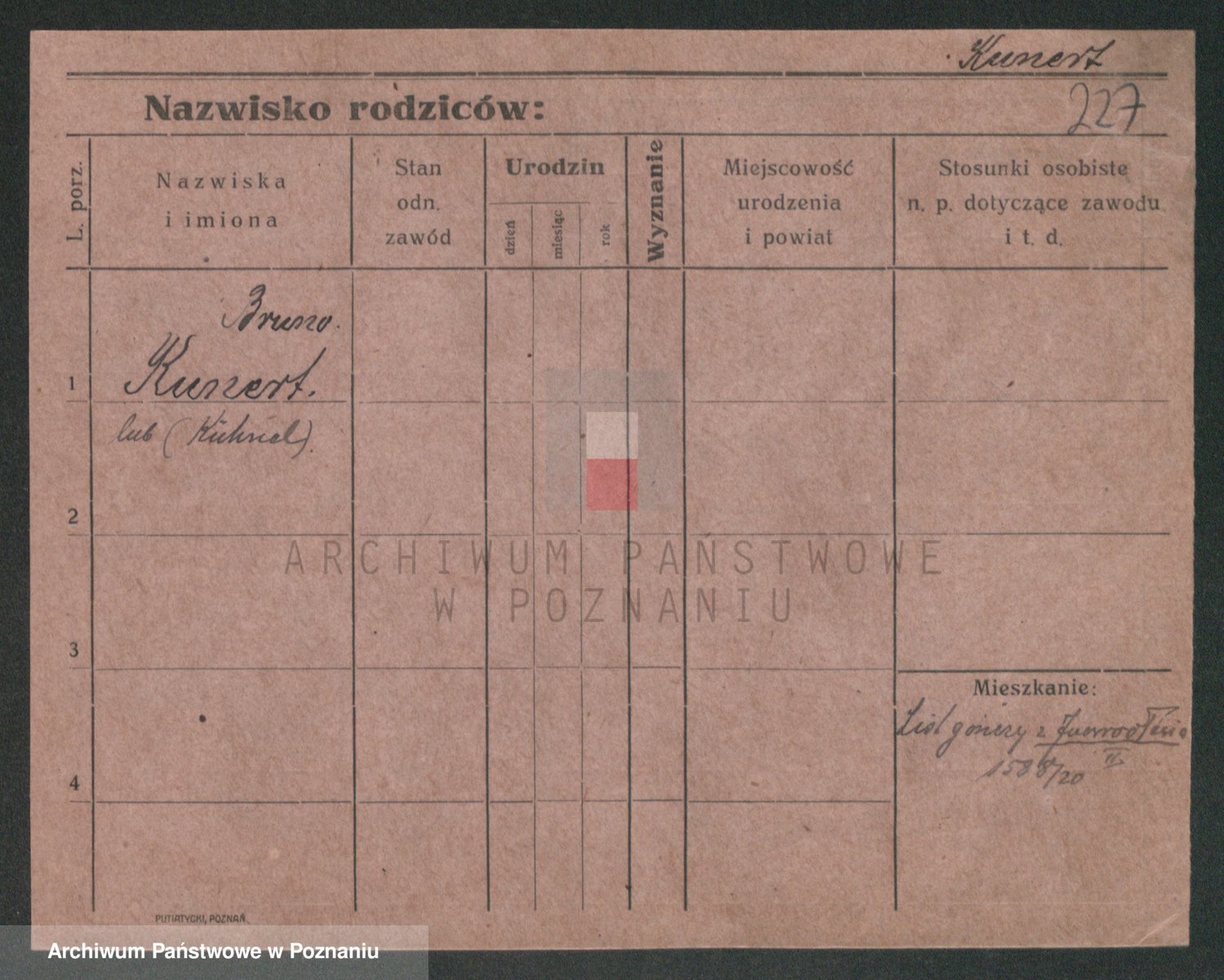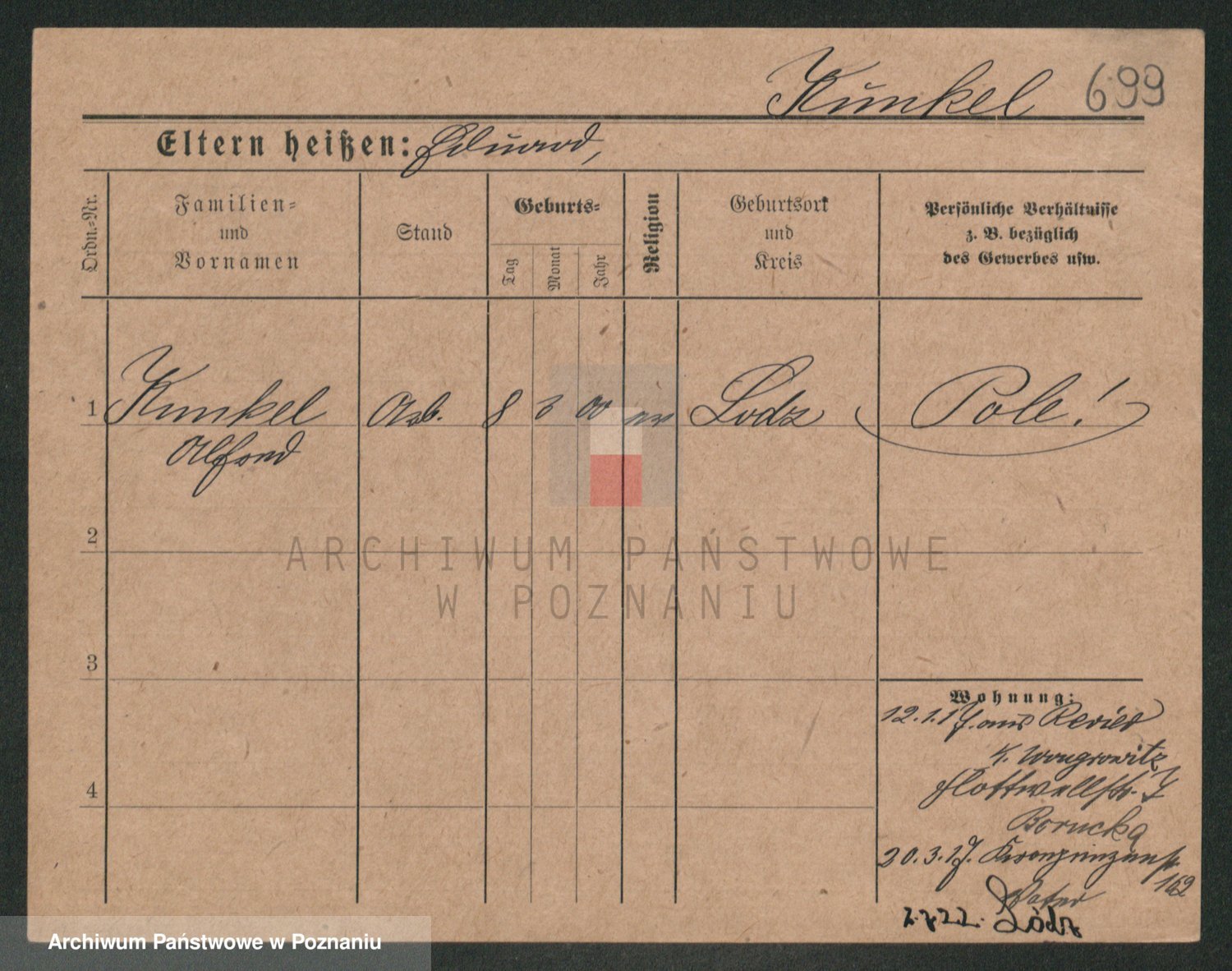 Podgląd karty osobowej dostępny jest po kliknięciu na nazwisko lub ikonkę karty. Można dokonywać powiększenia (ikony na górze) lub przechodzić między kolejnymi skanami (strzałki po bokach).