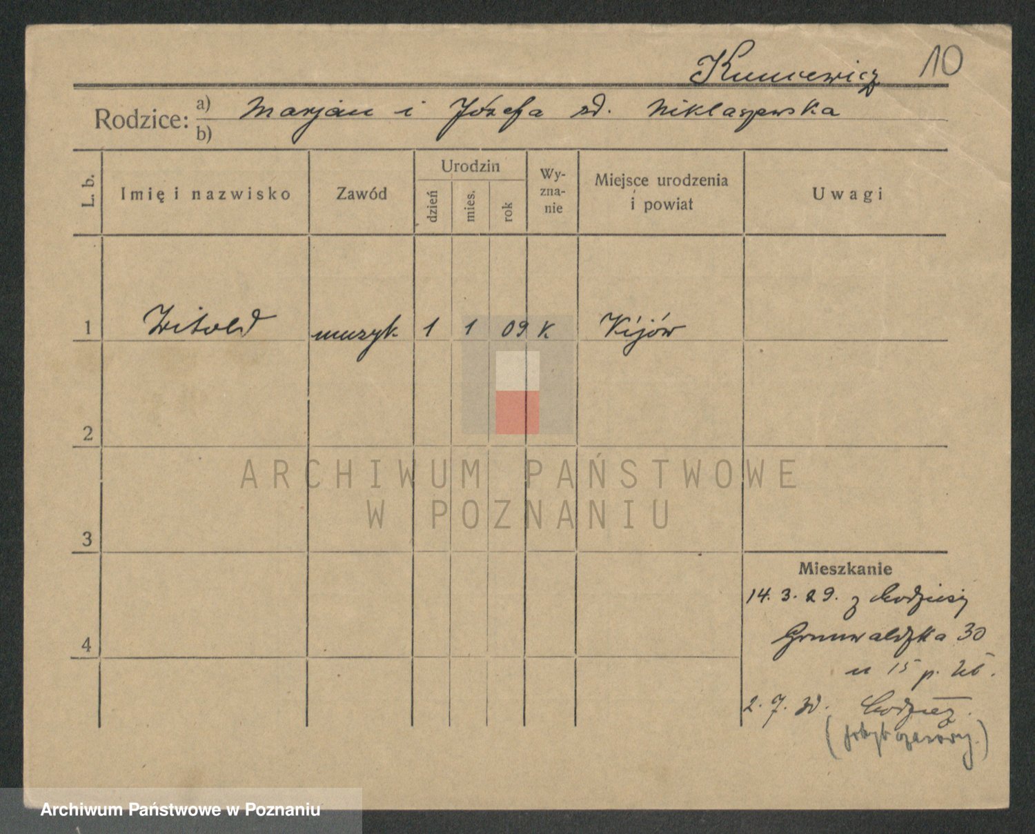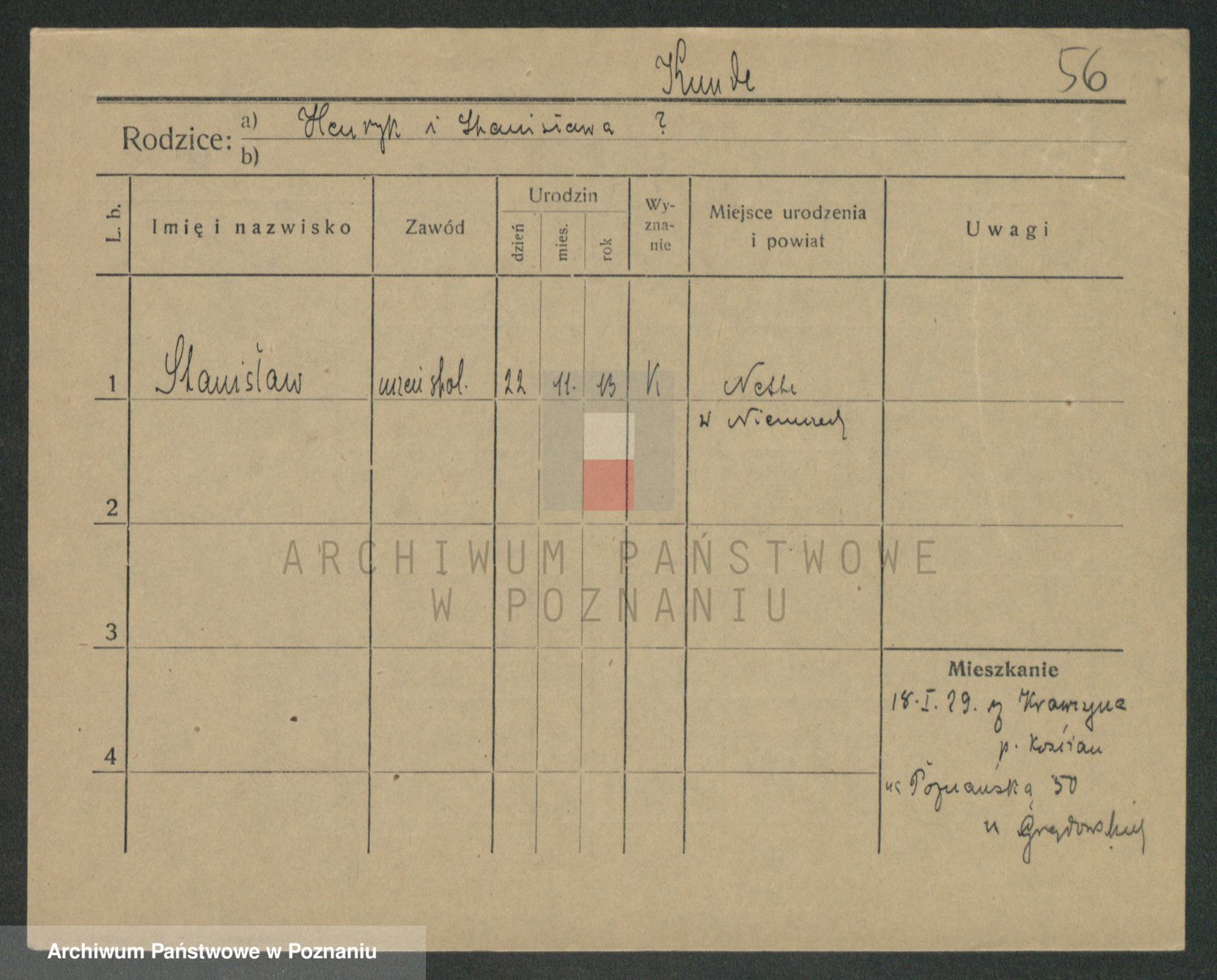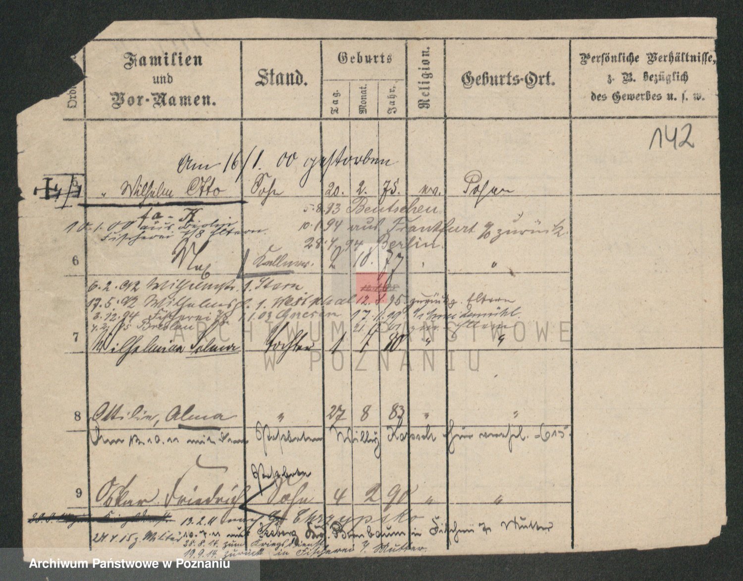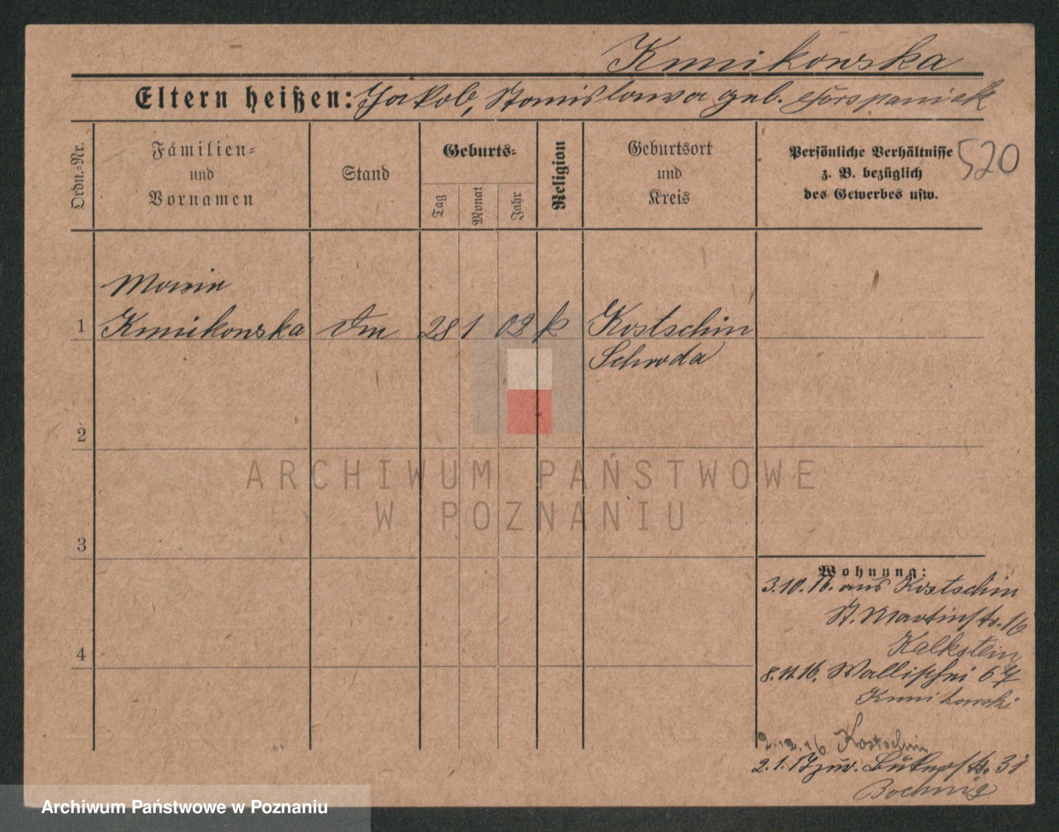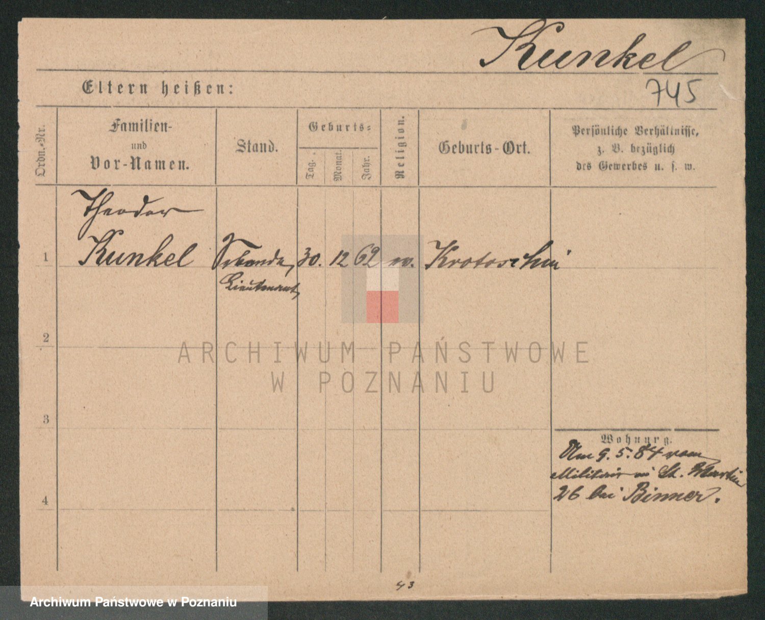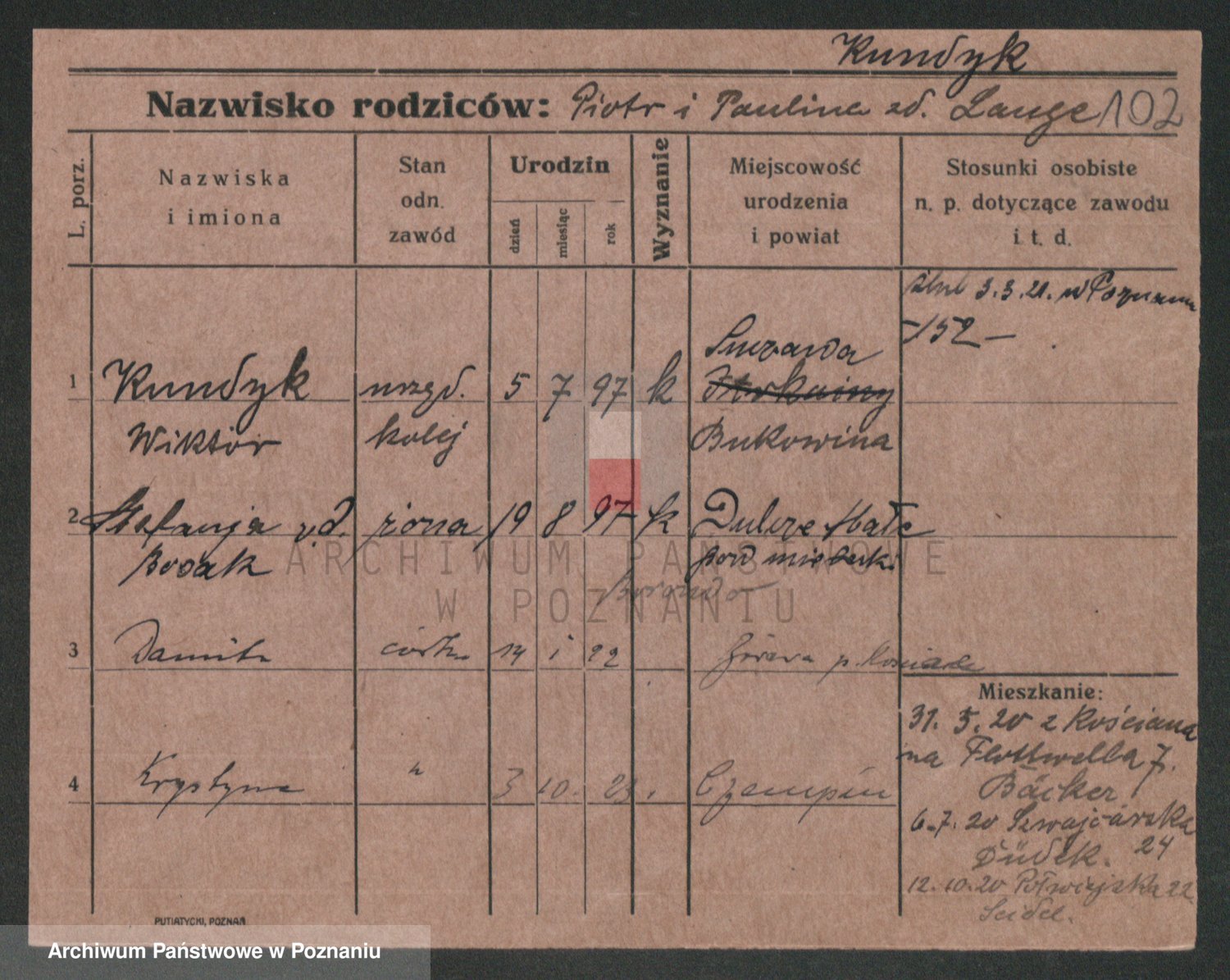 Podgląd karty osobowej dostępny jest po kliknięciu na nazwisko lub ikonkę karty. Można dokonywać powiększenia (ikony na górze) lub przechodzić między kolejnymi skanami (strzałki po bokach).