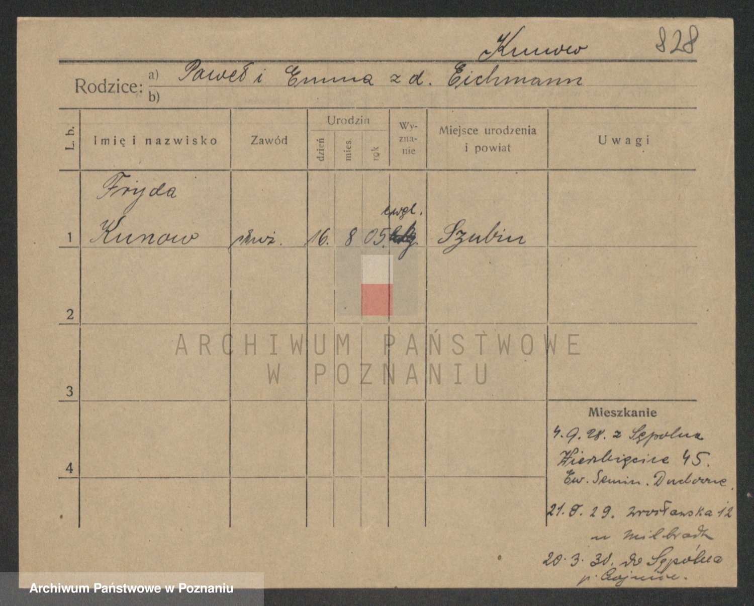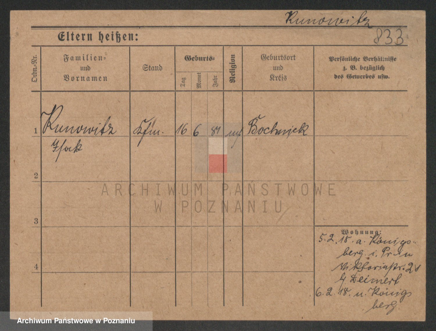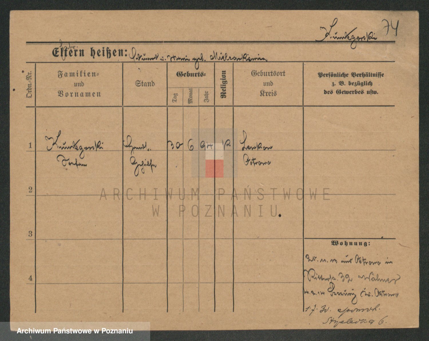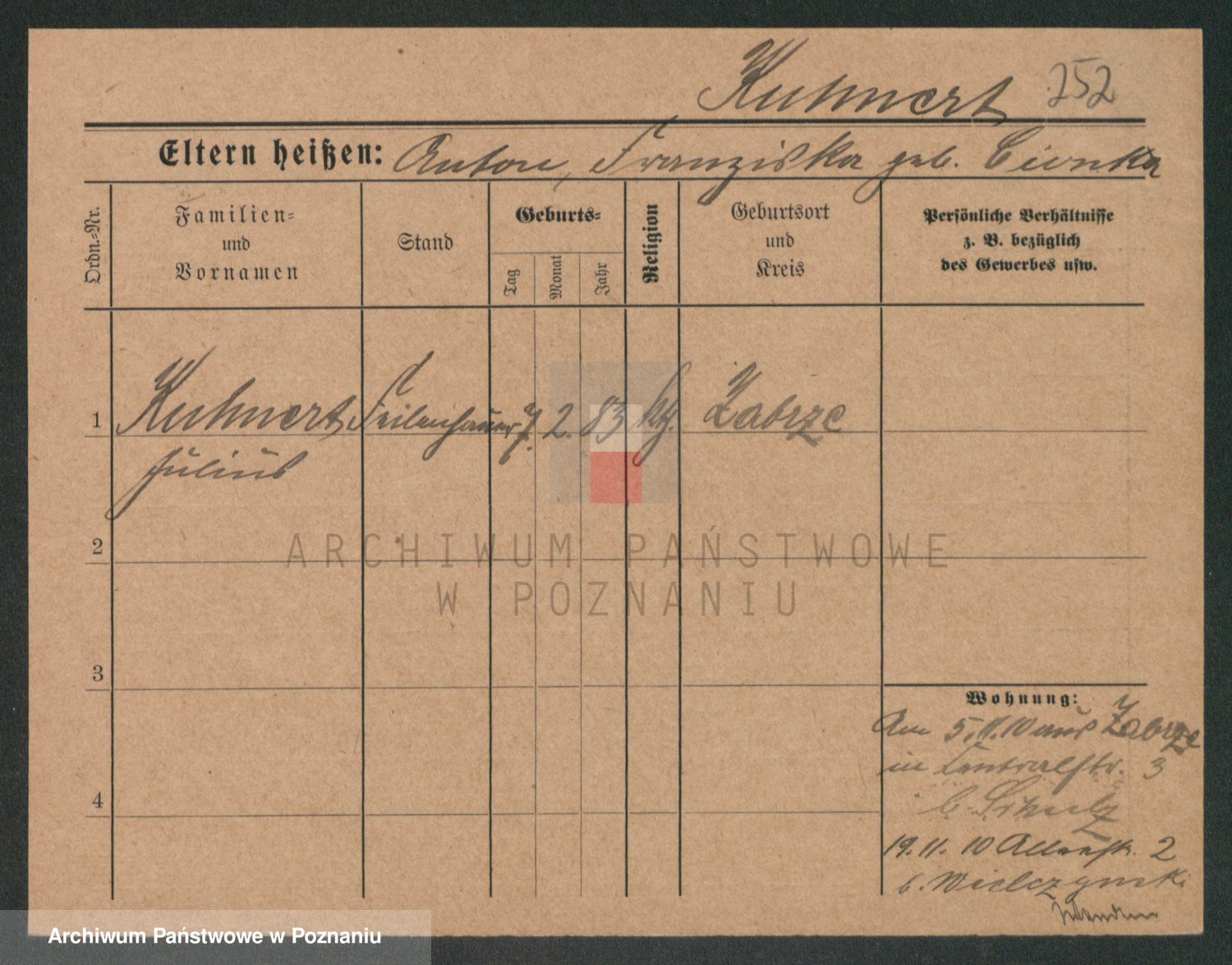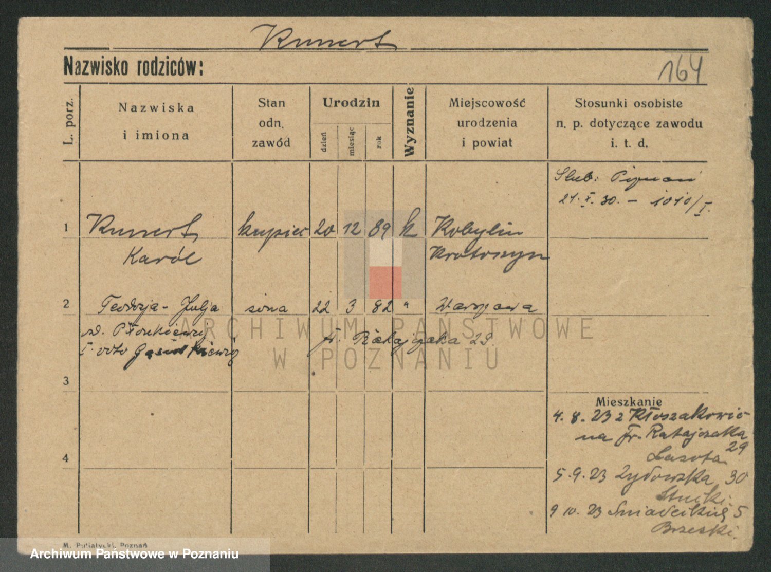 Podgląd karty osobowej dostępny jest po kliknięciu na nazwisko lub ikonkę karty. Można dokonywać powiększenia (ikony na górze) lub przechodzić między kolejnymi skanami (strzałki po bokach).