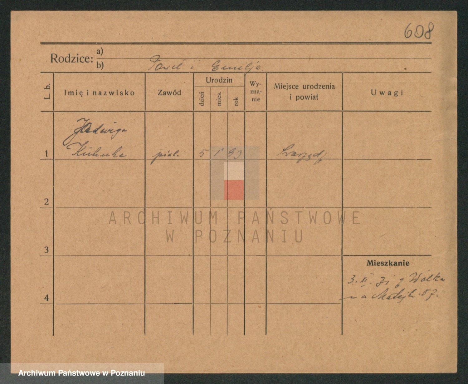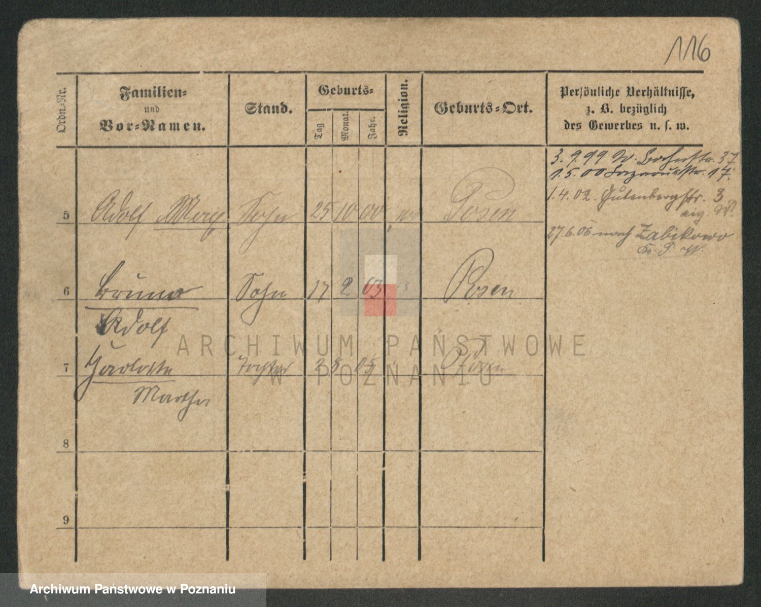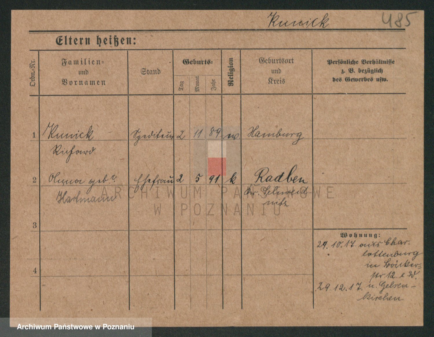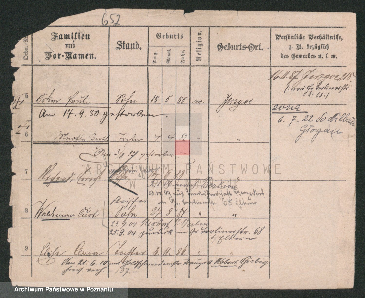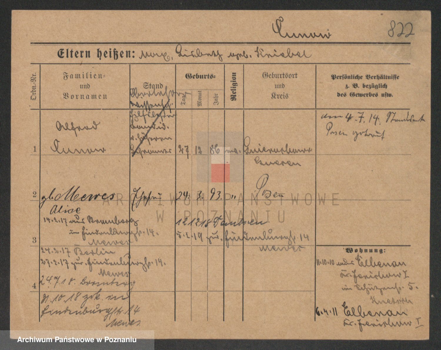 Podgląd karty osobowej dostępny jest po kliknięciu na nazwisko lub ikonkę karty. Można dokonywać powiększenia (ikony na górze) lub przechodzić między kolejnymi skanami (strzałki po bokach).