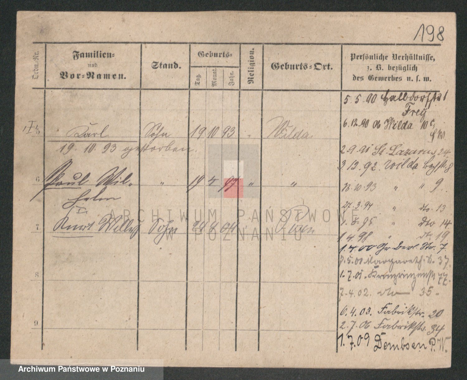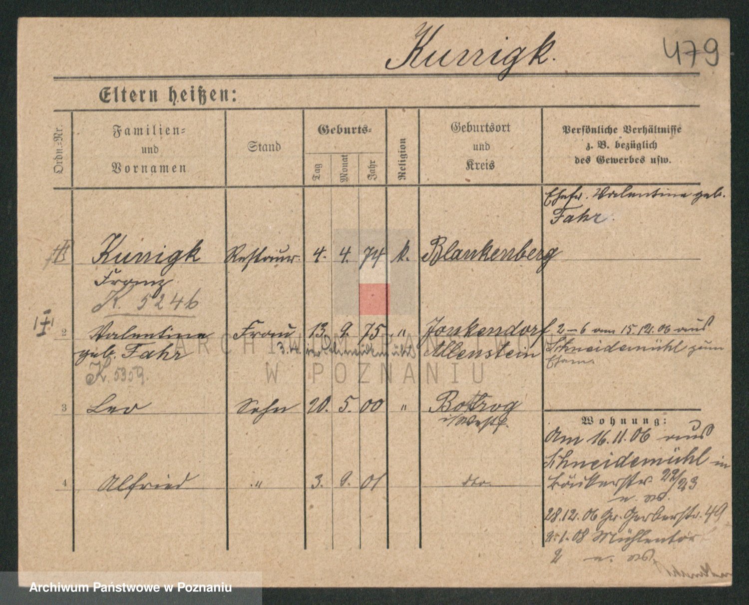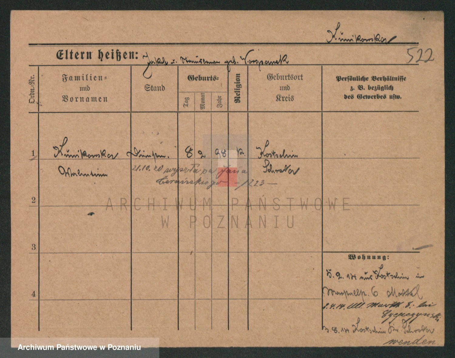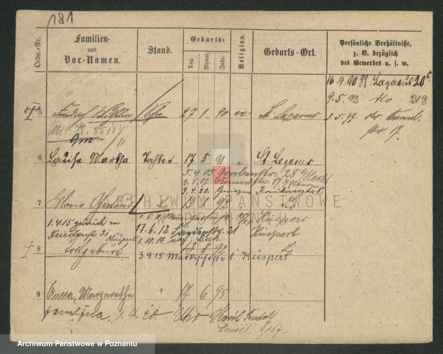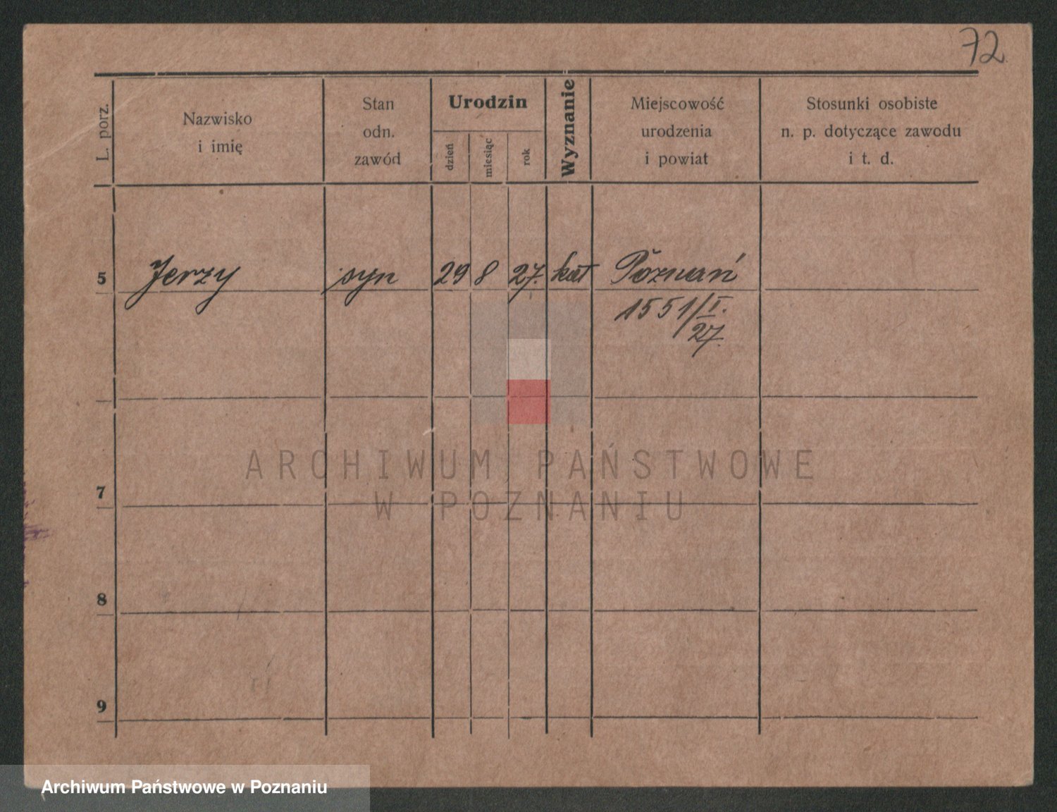Podgląd karty osobowej dostępny jest po kliknięciu na nazwisko lub ikonkę karty. Można dokonywać powiększenia (ikony na górze) lub przechodzić między kolejnymi skanami (strzałki po bokach).
