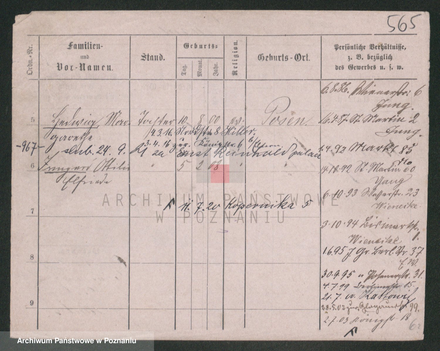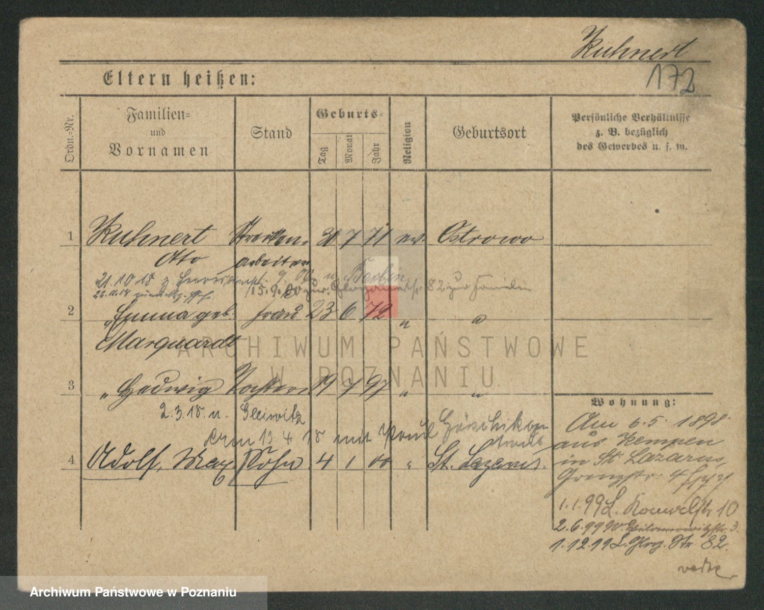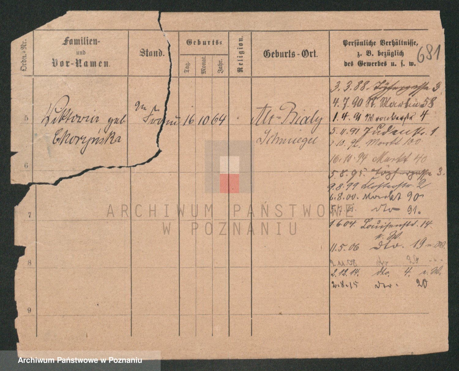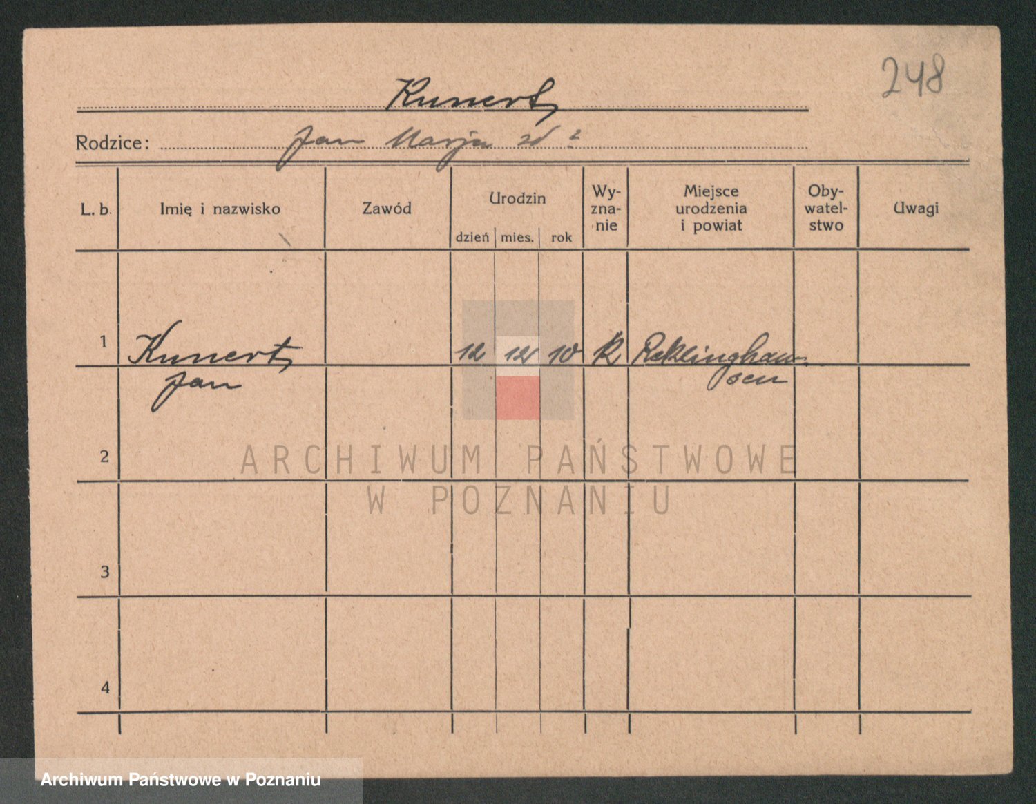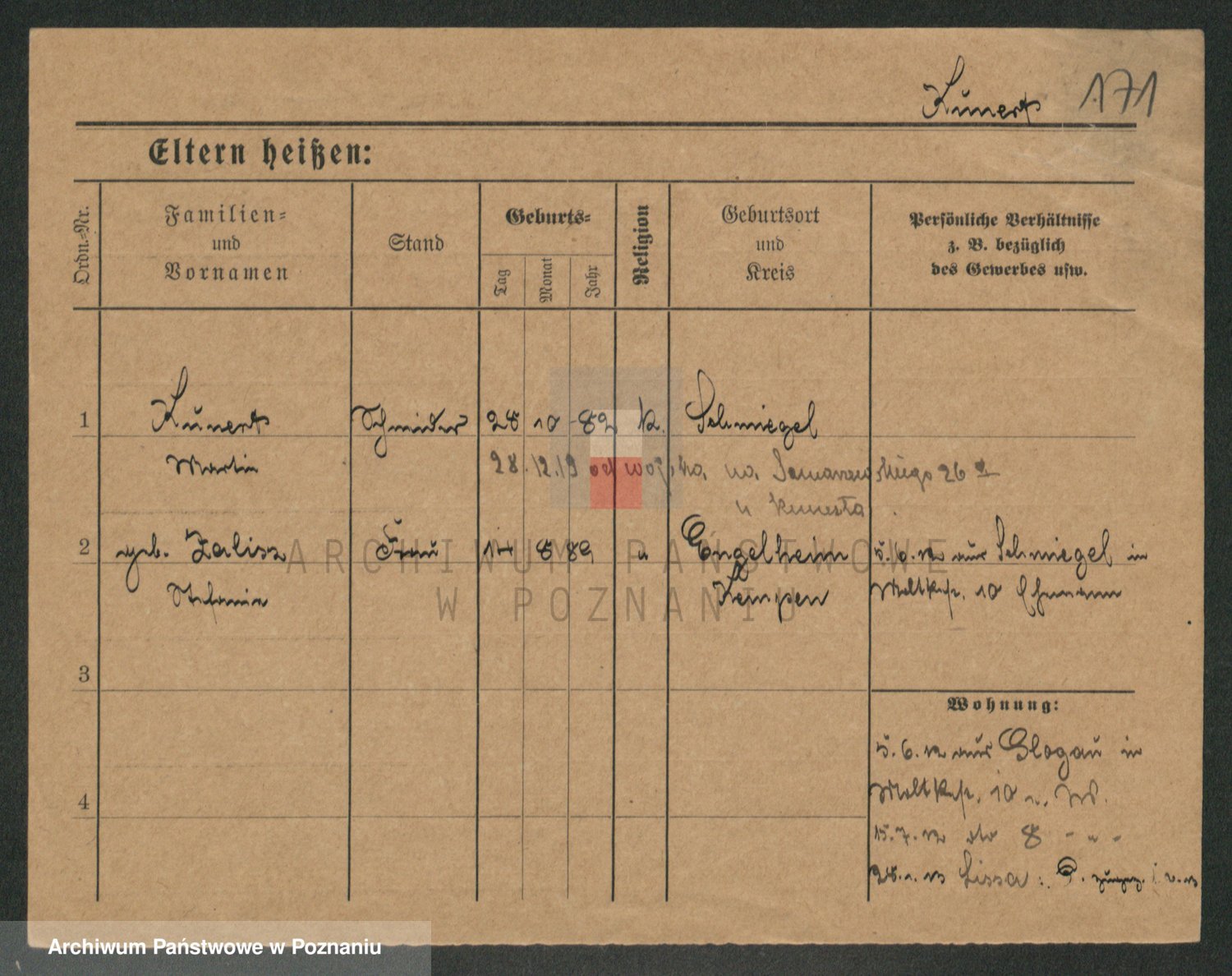 Podgląd karty osobowej dostępny jest po kliknięciu na nazwisko lub ikonkę karty. Można dokonywać powiększenia (ikony na górze) lub przechodzić między kolejnymi skanami (strzałki po bokach).