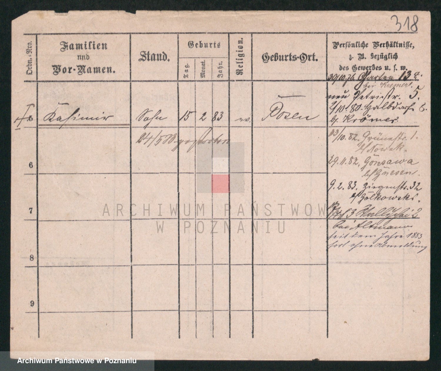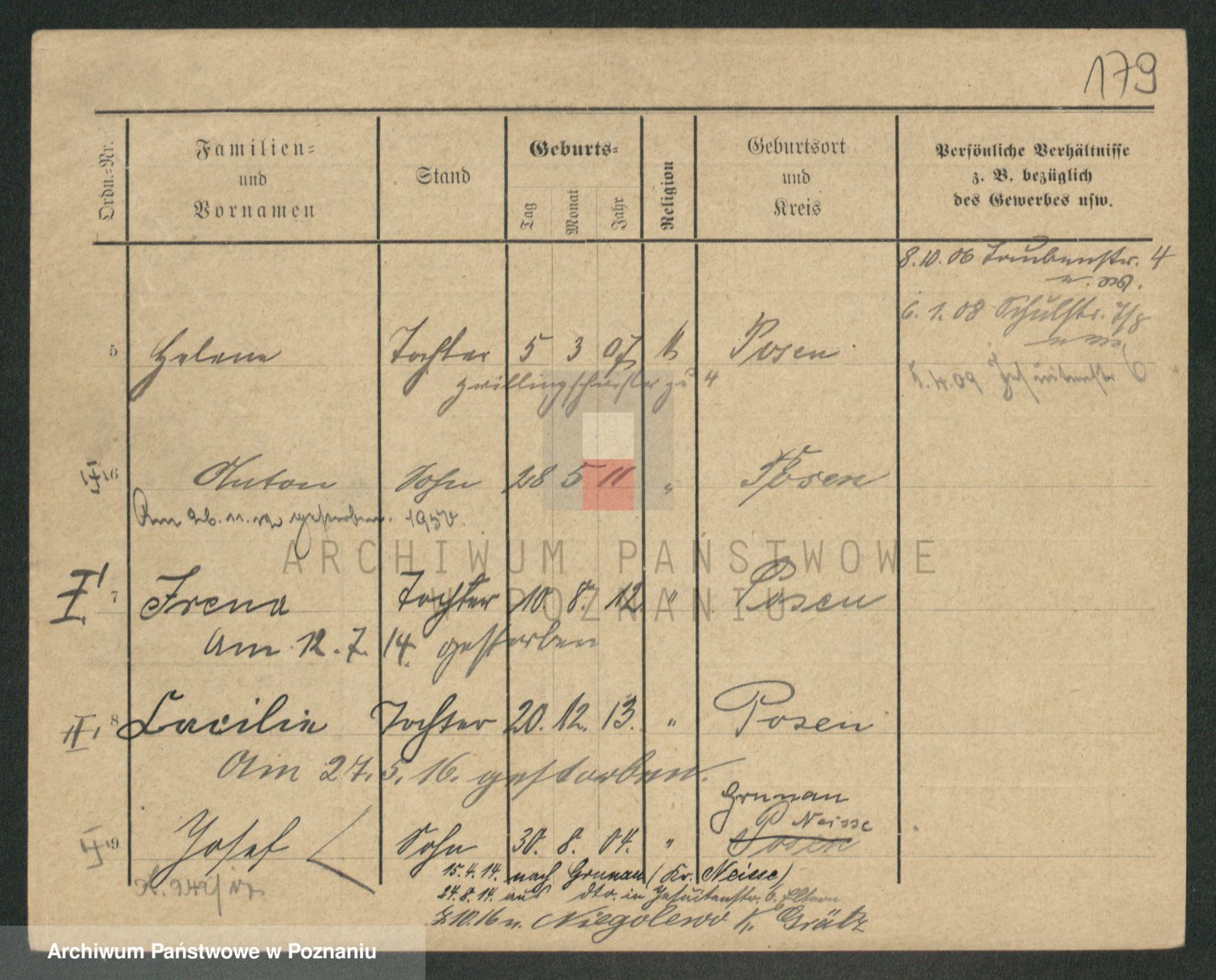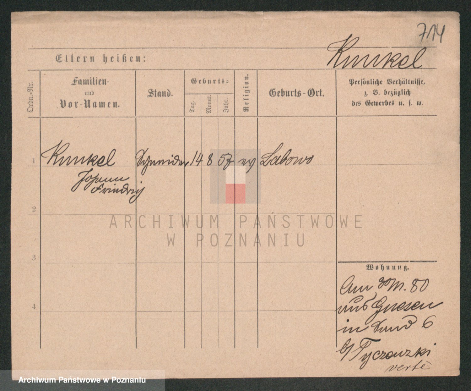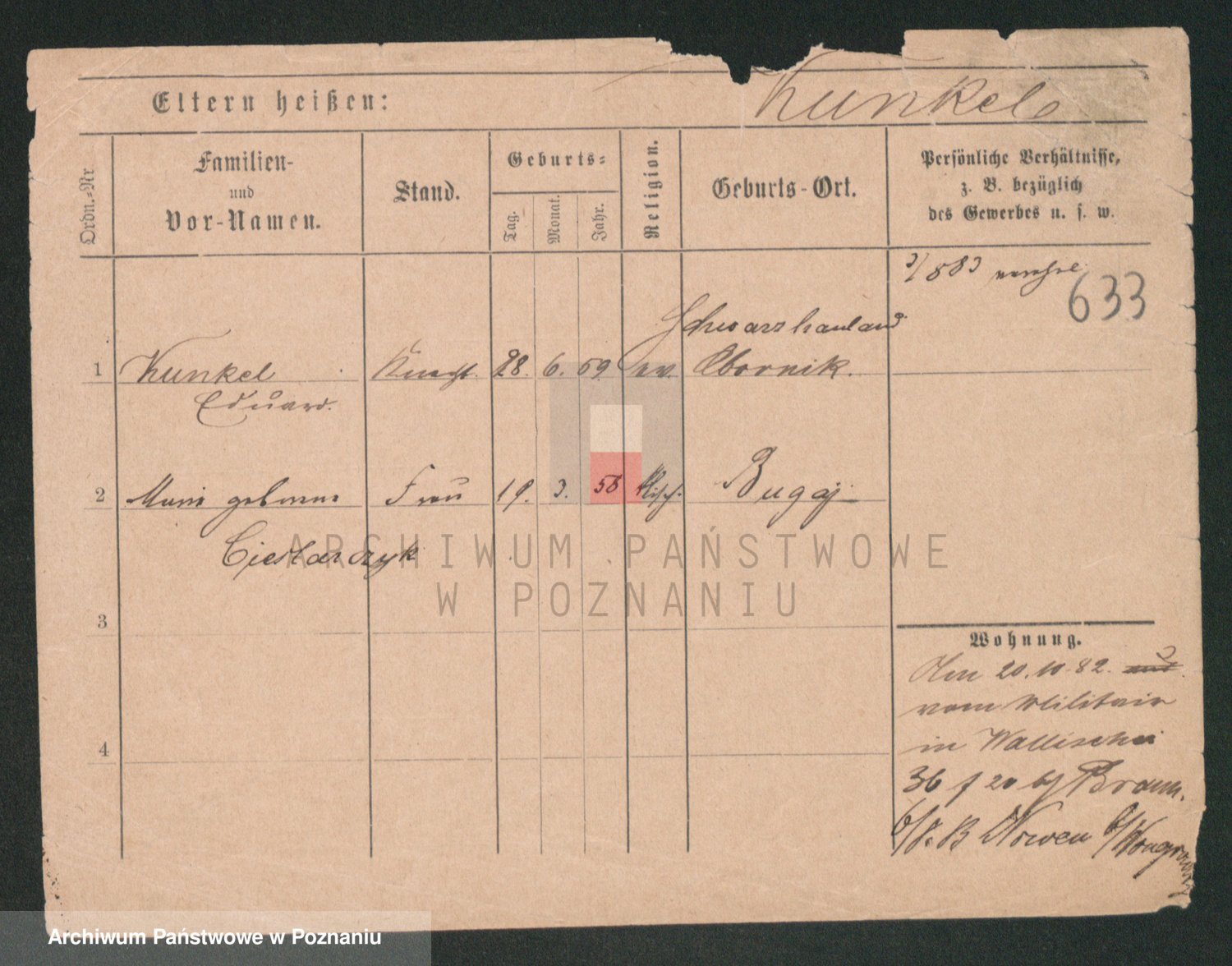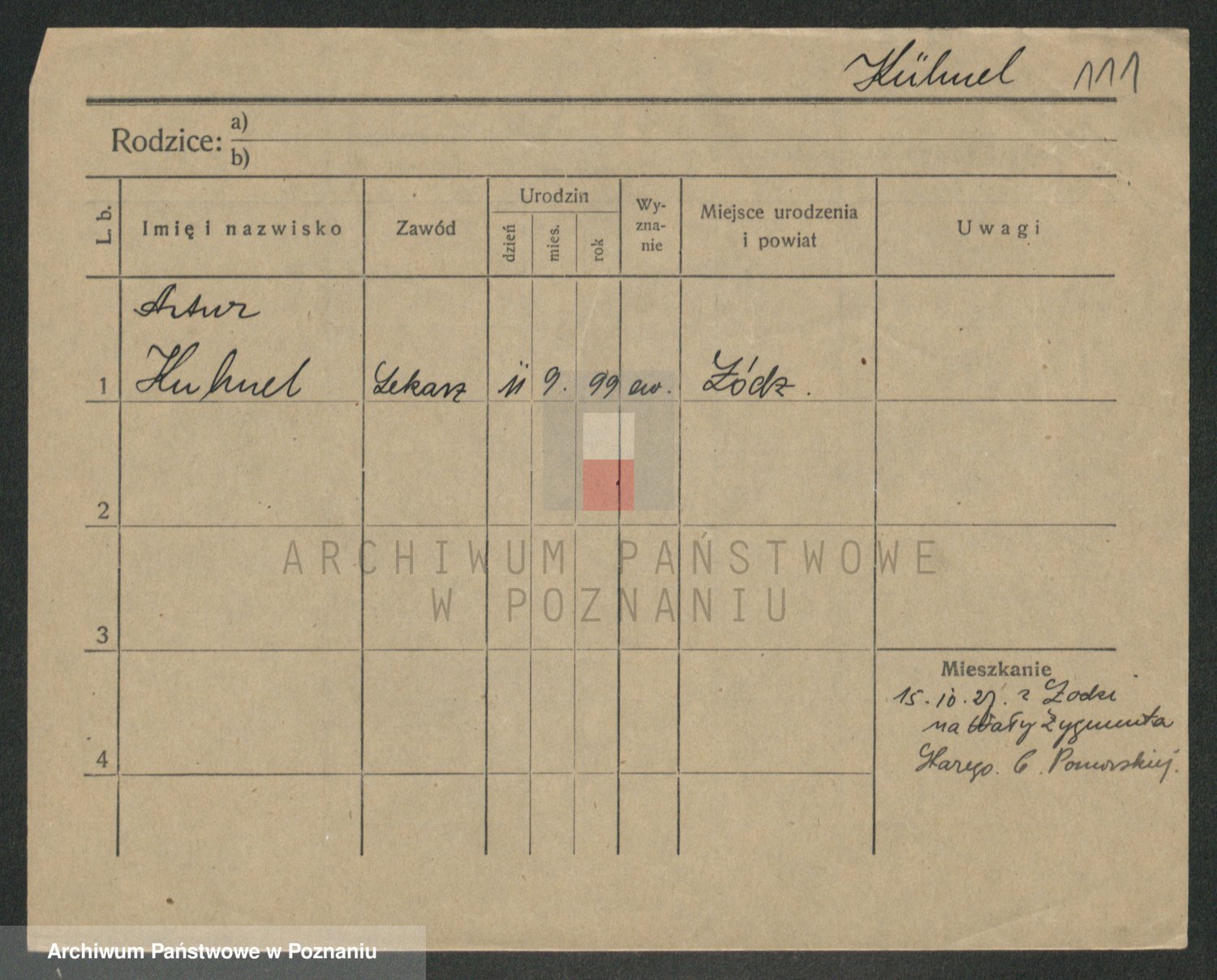 Podgląd karty osobowej dostępny jest po kliknięciu na nazwisko lub ikonkę karty. Można dokonywać powiększenia (ikony na górze) lub przechodzić między kolejnymi skanami (strzałki po bokach).