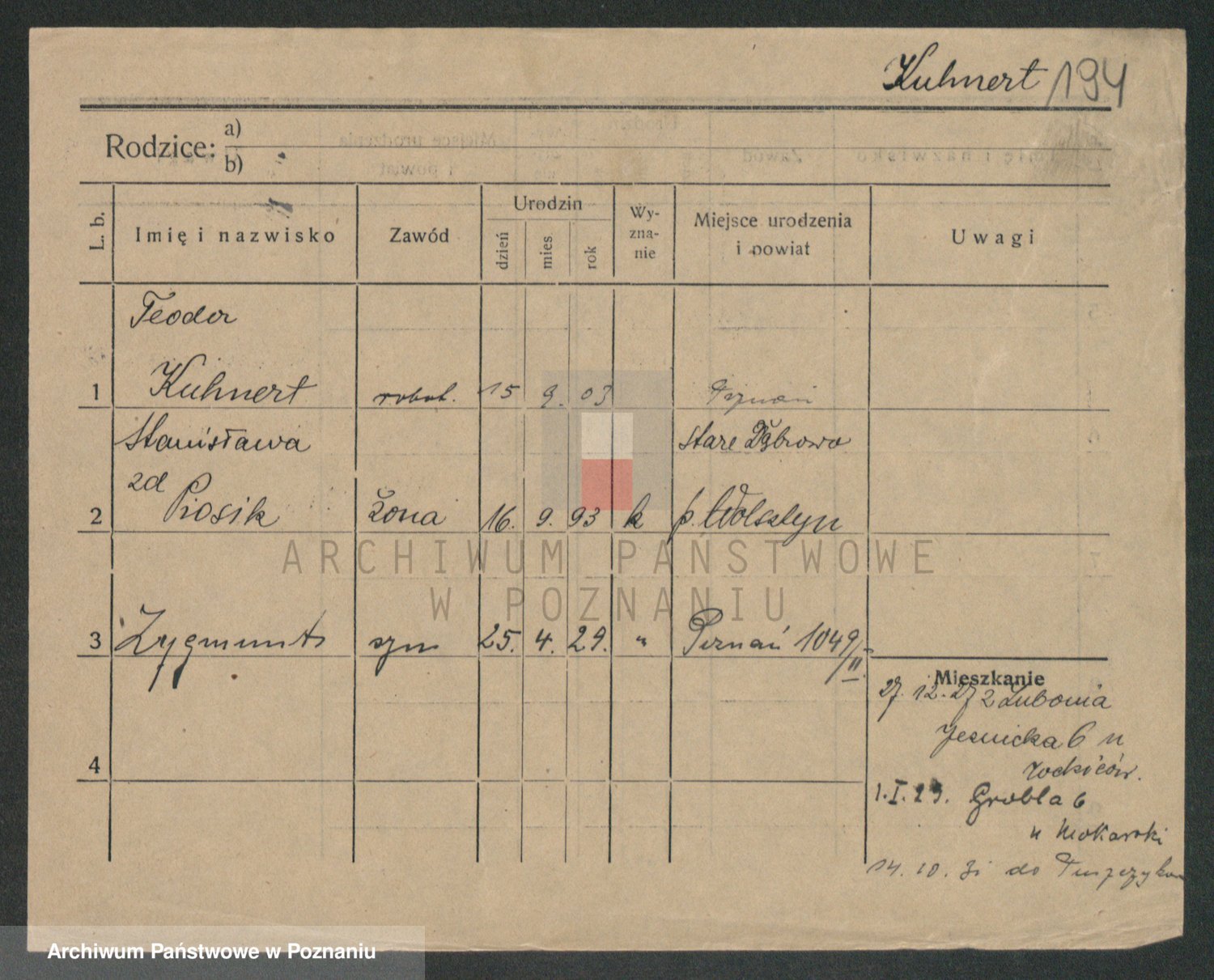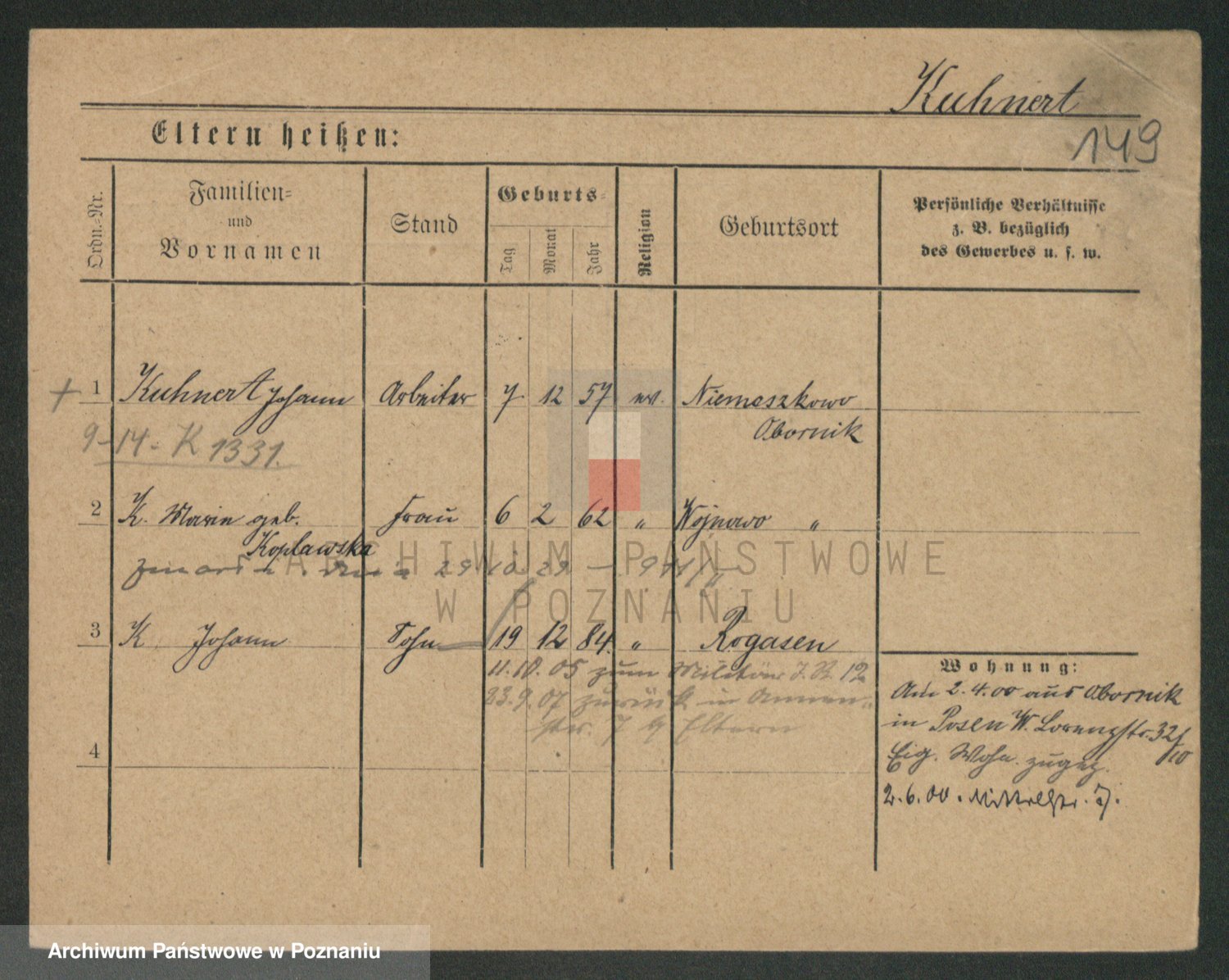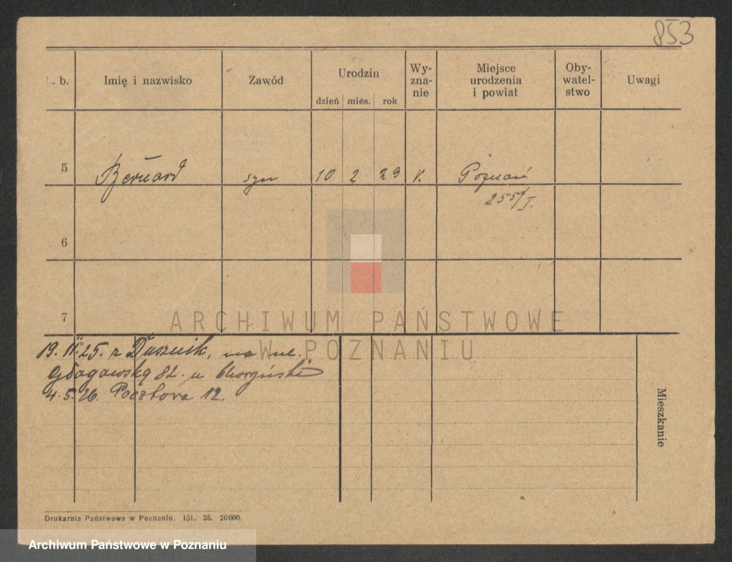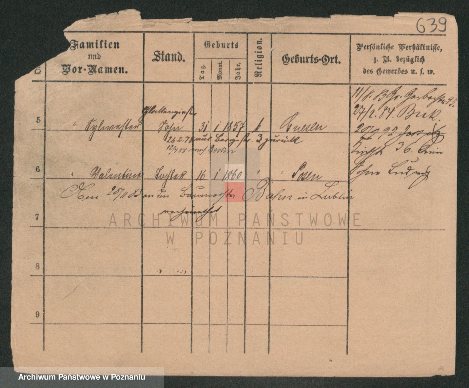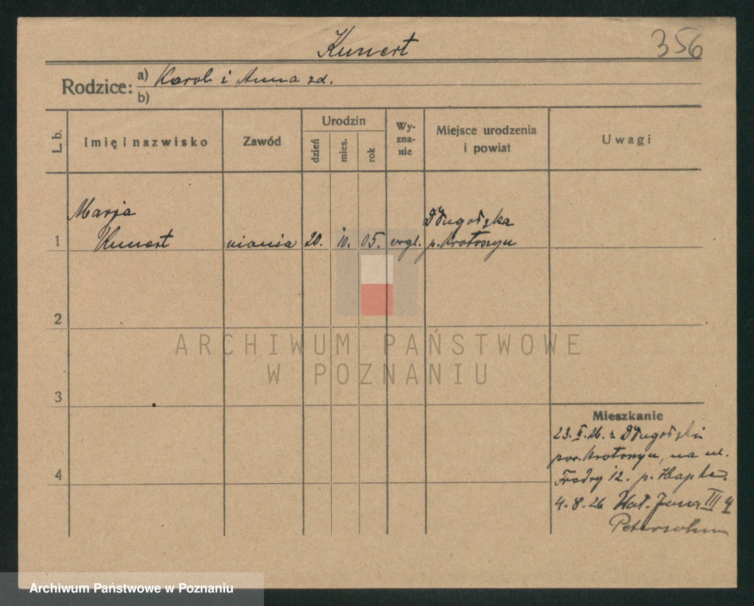 Podgląd karty osobowej dostępny jest po kliknięciu na nazwisko lub ikonkę karty. Można dokonywać powiększenia (ikony na górze) lub przechodzić między kolejnymi skanami (strzałki po bokach).
