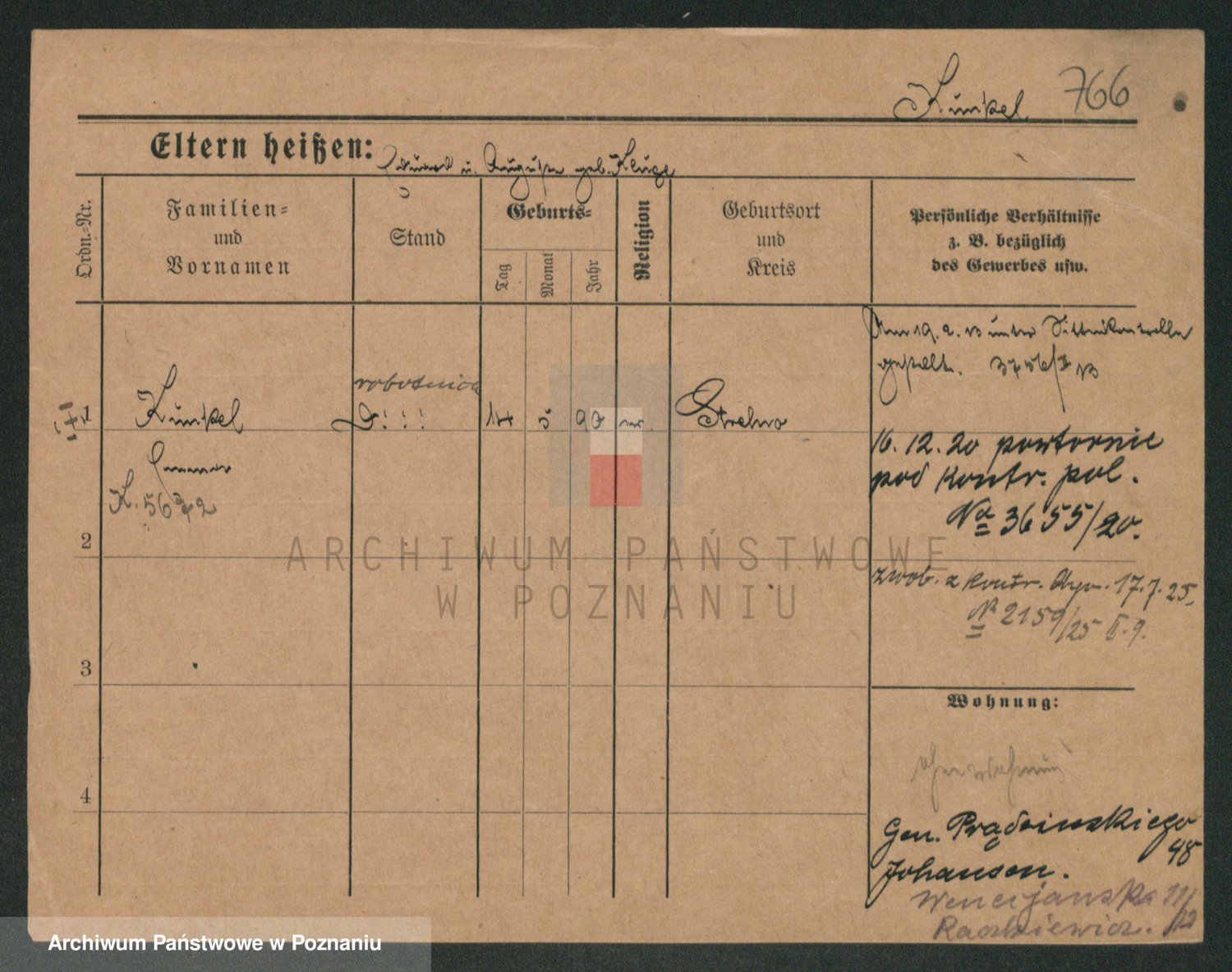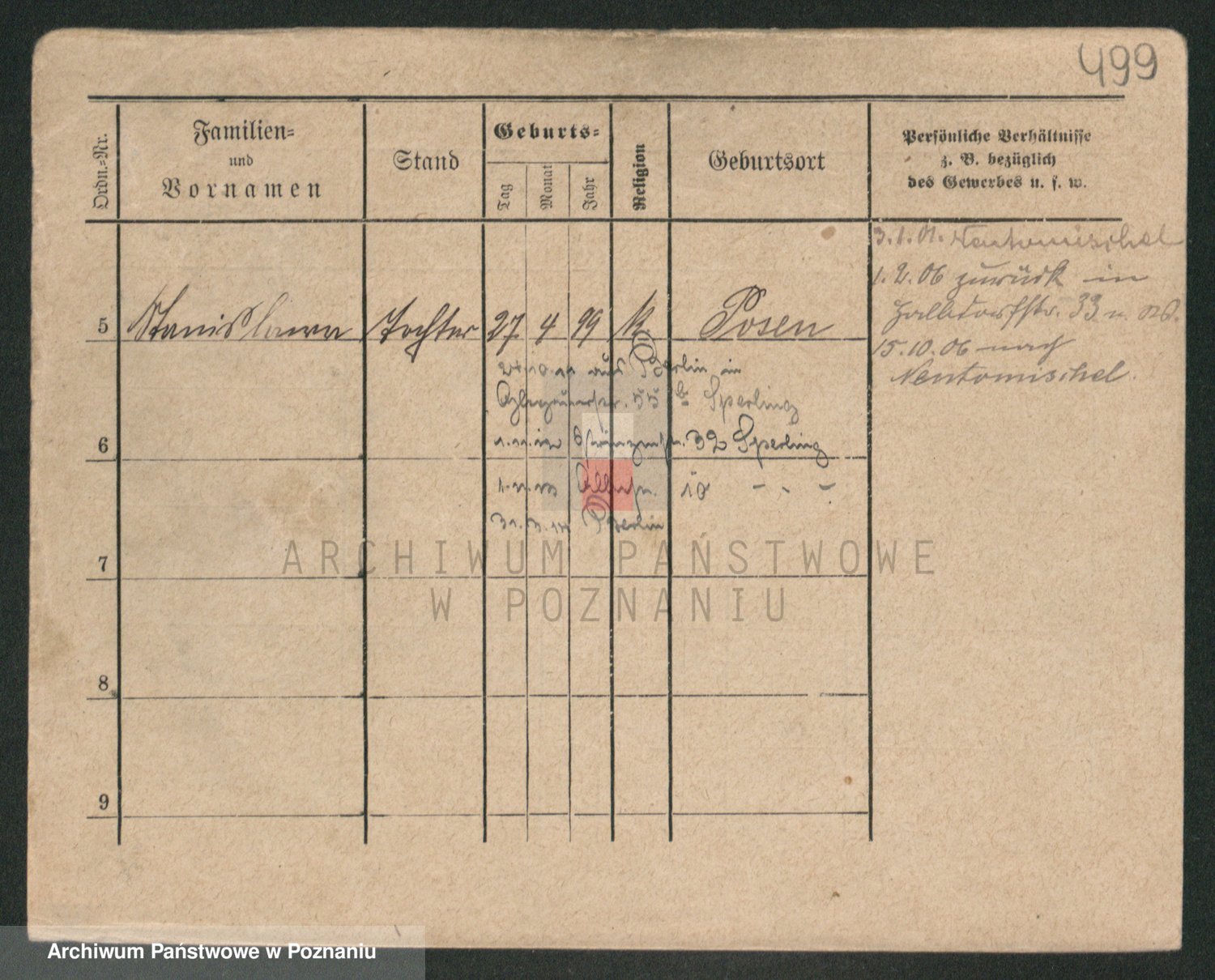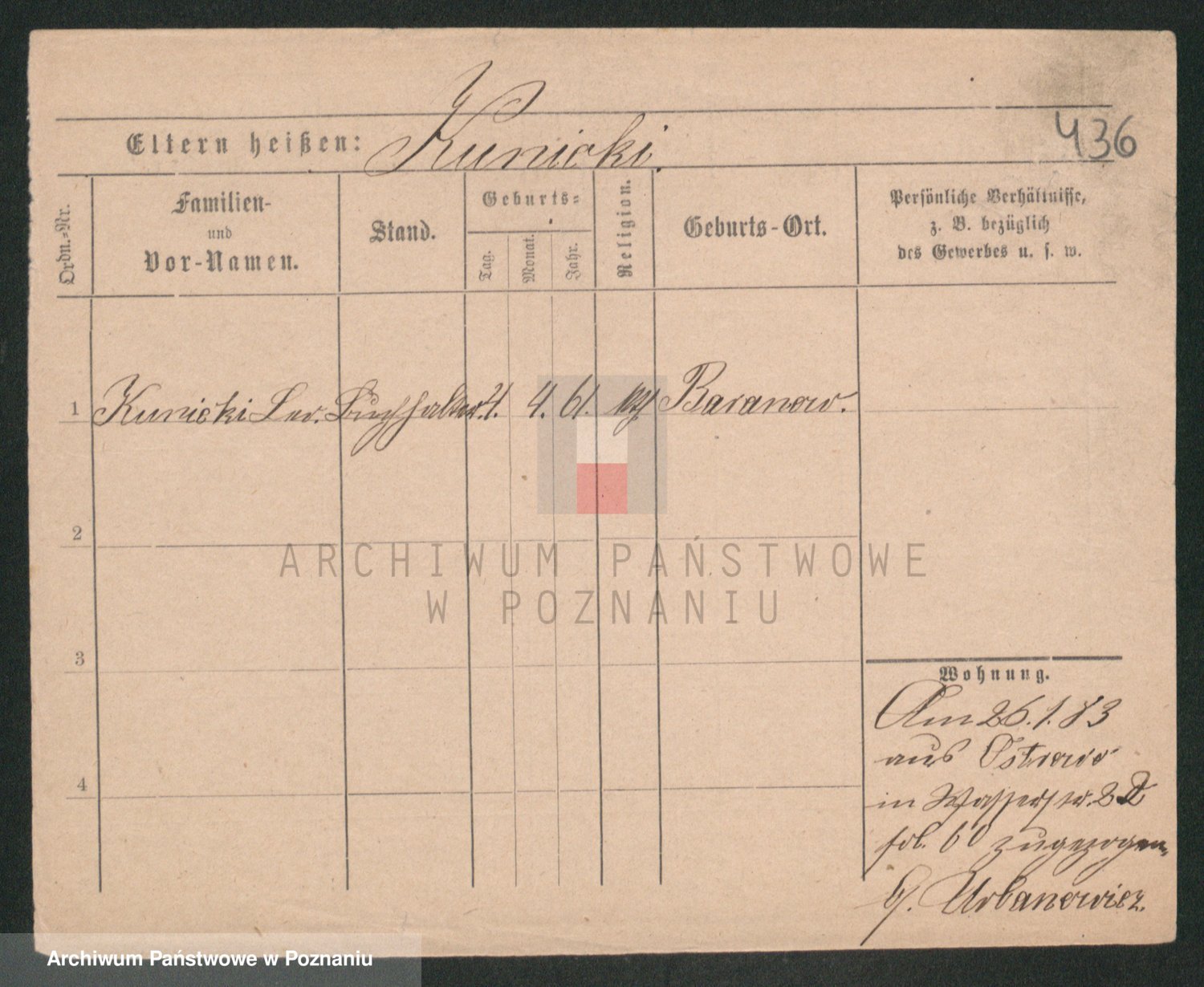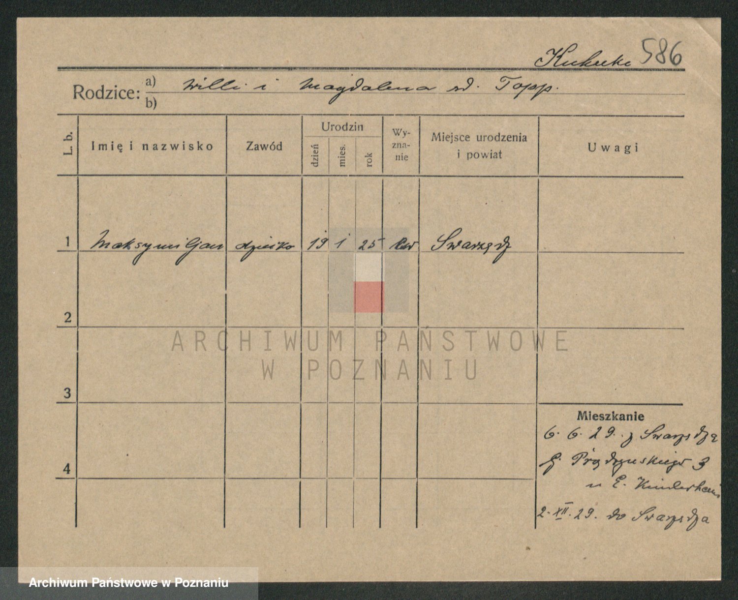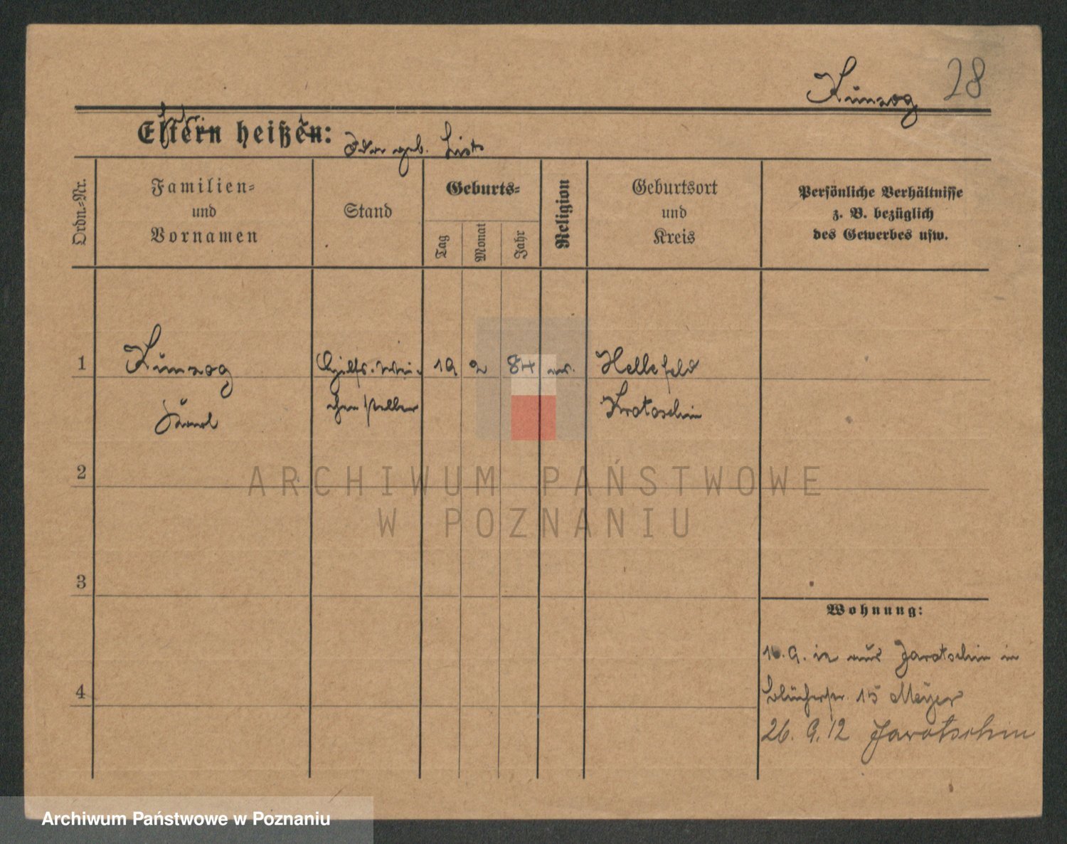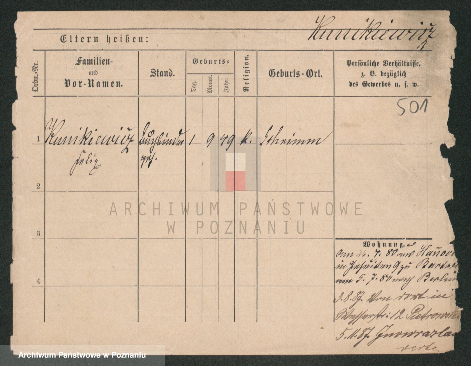 Podgląd karty osobowej dostępny jest po kliknięciu na nazwisko lub ikonkę karty. Można dokonywać powiększenia (ikony na górze) lub przechodzić między kolejnymi skanami (strzałki po bokach).