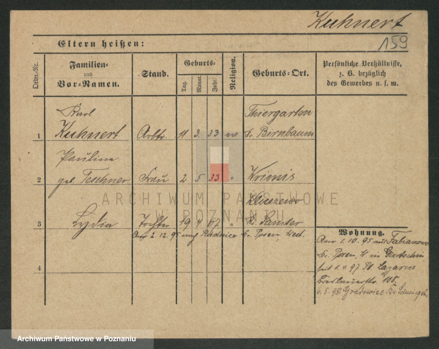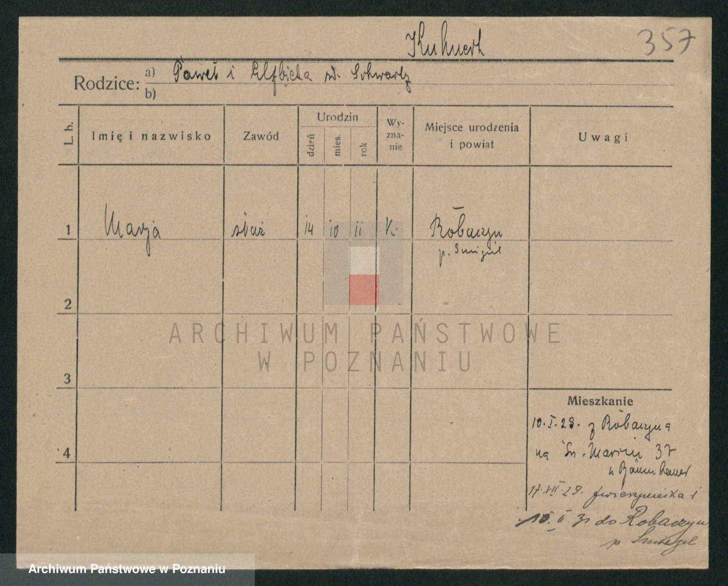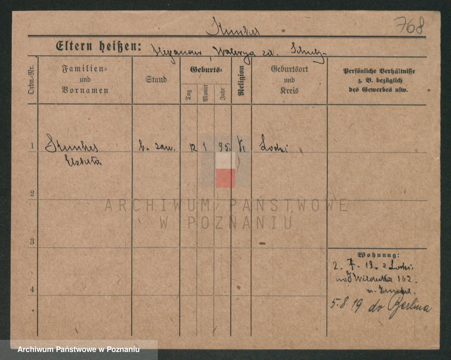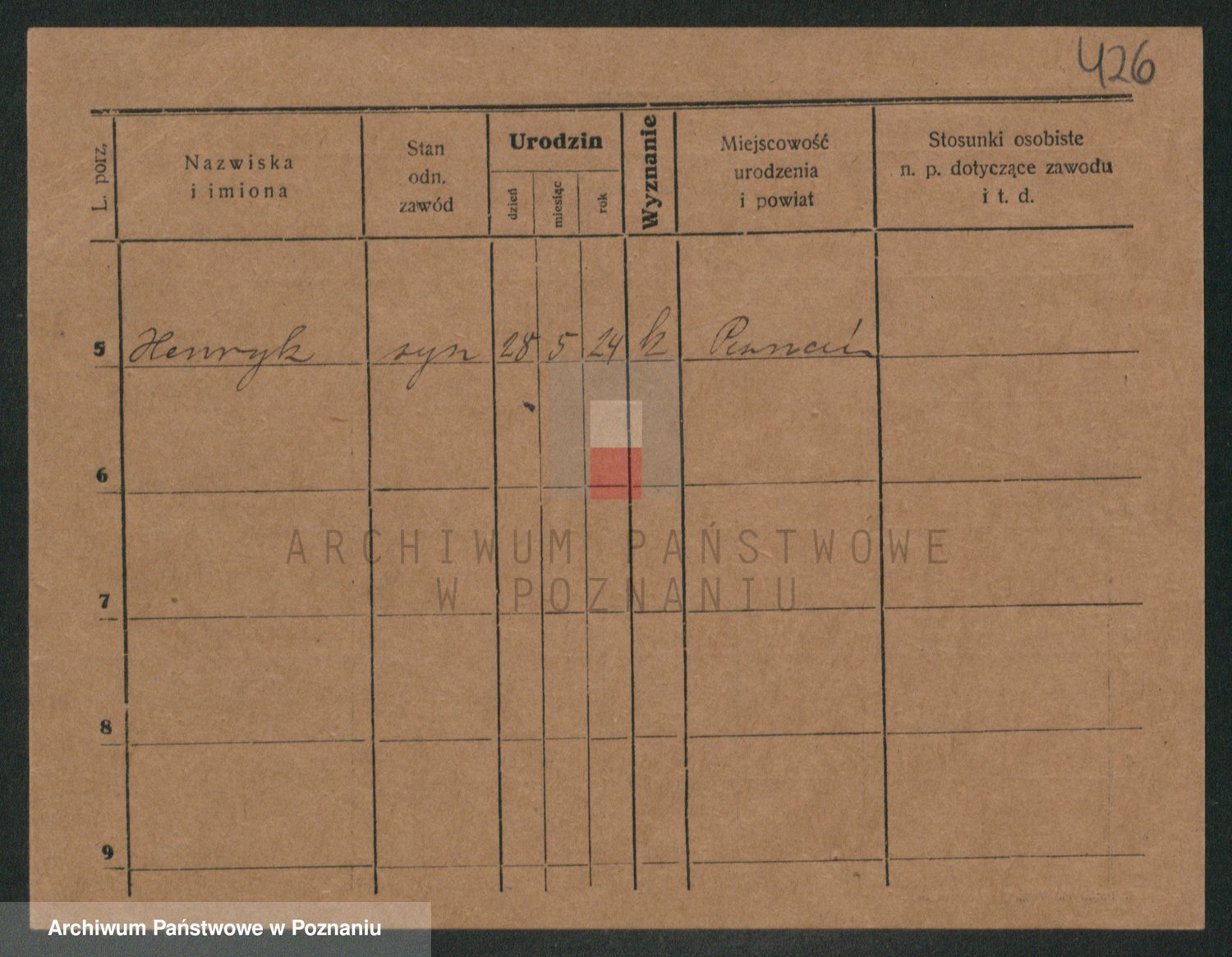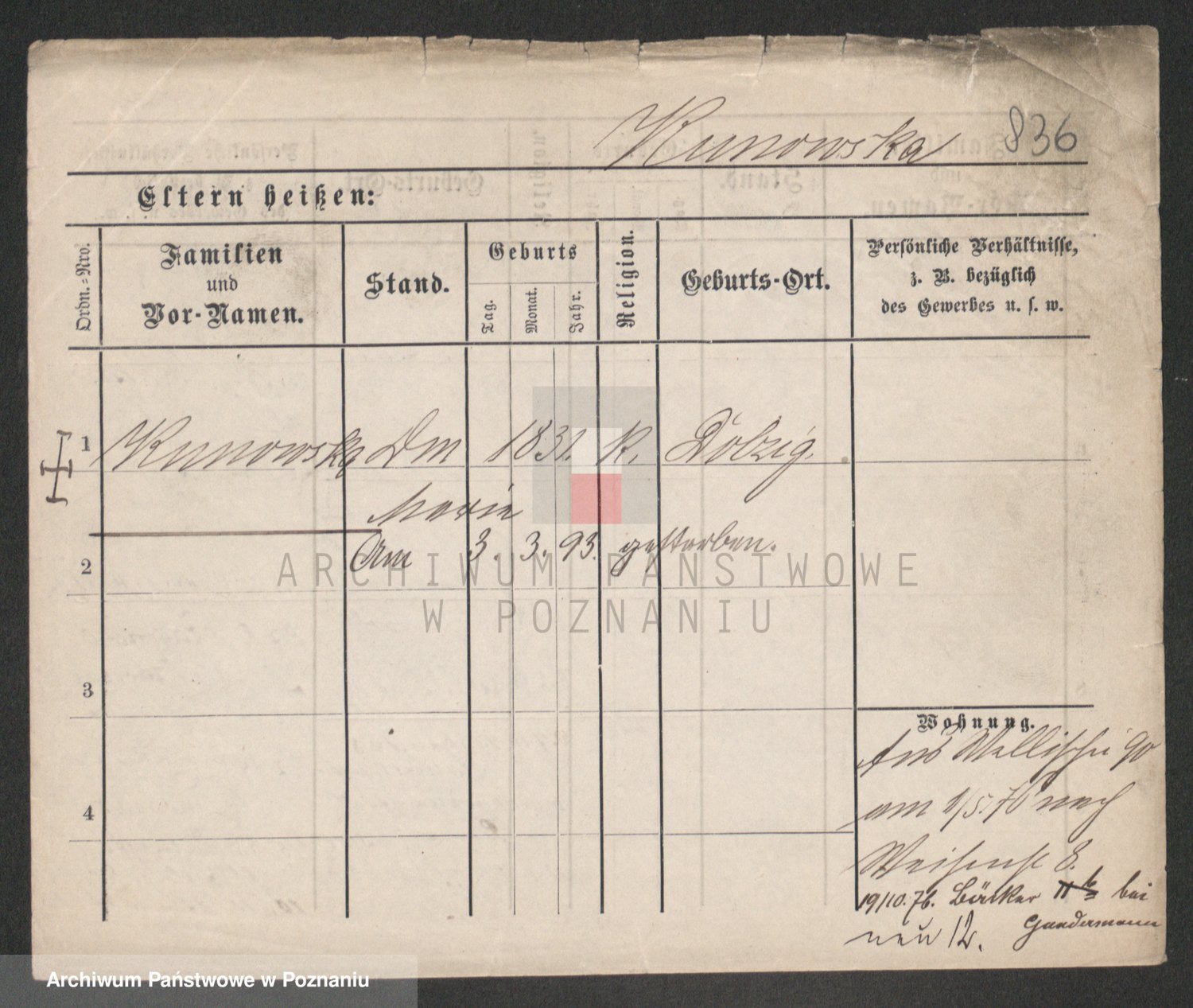 Podgląd karty osobowej dostępny jest po kliknięciu na nazwisko lub ikonkę karty. Można dokonywać powiększenia (ikony na górze) lub przechodzić między kolejnymi skanami (strzałki po bokach).