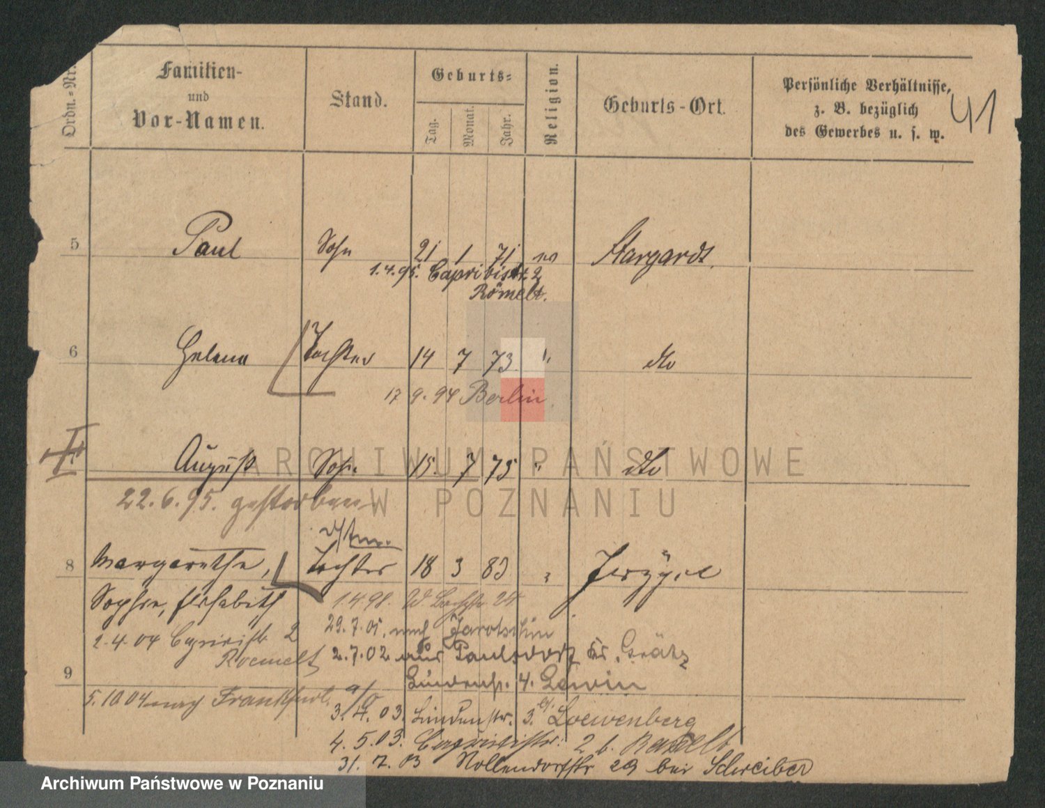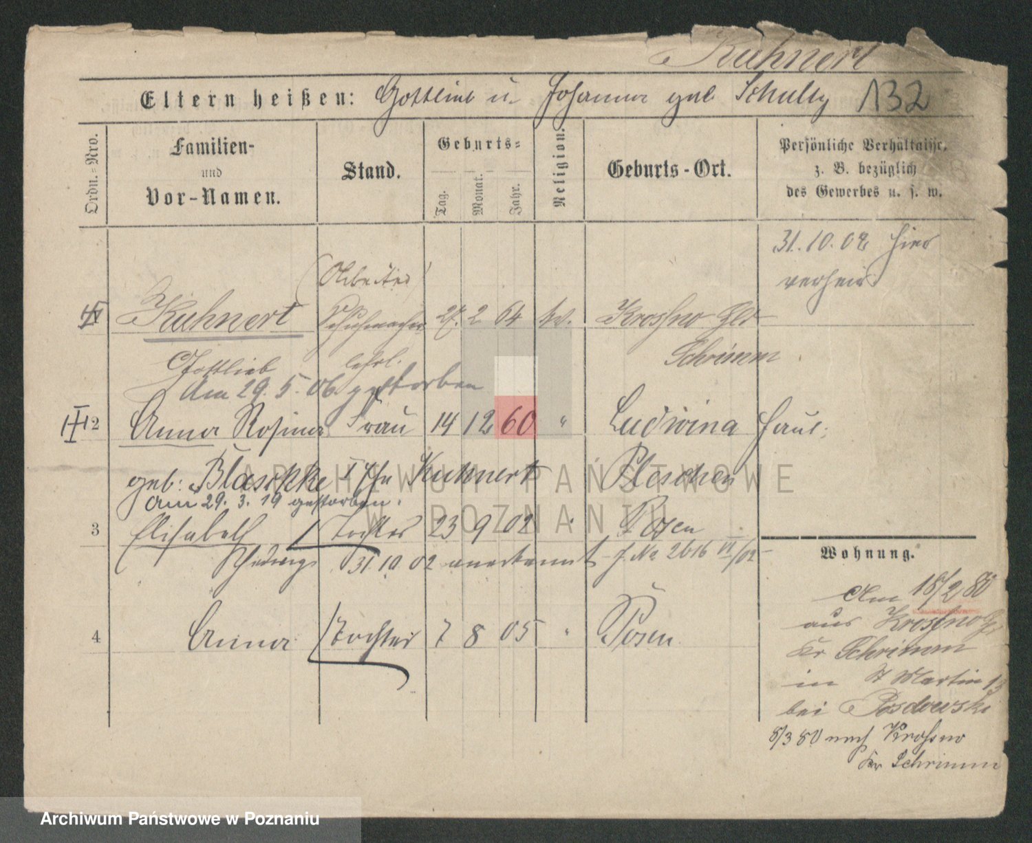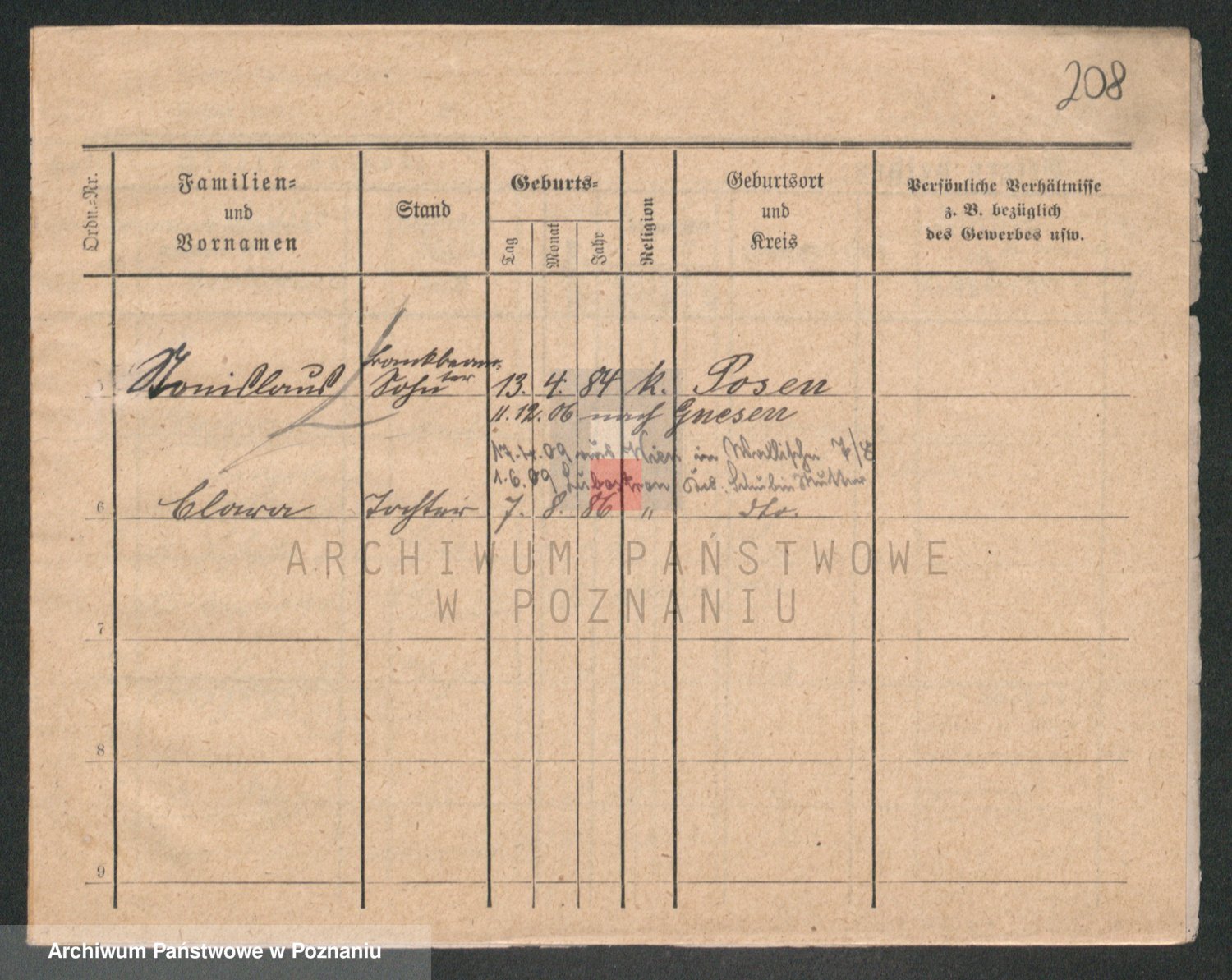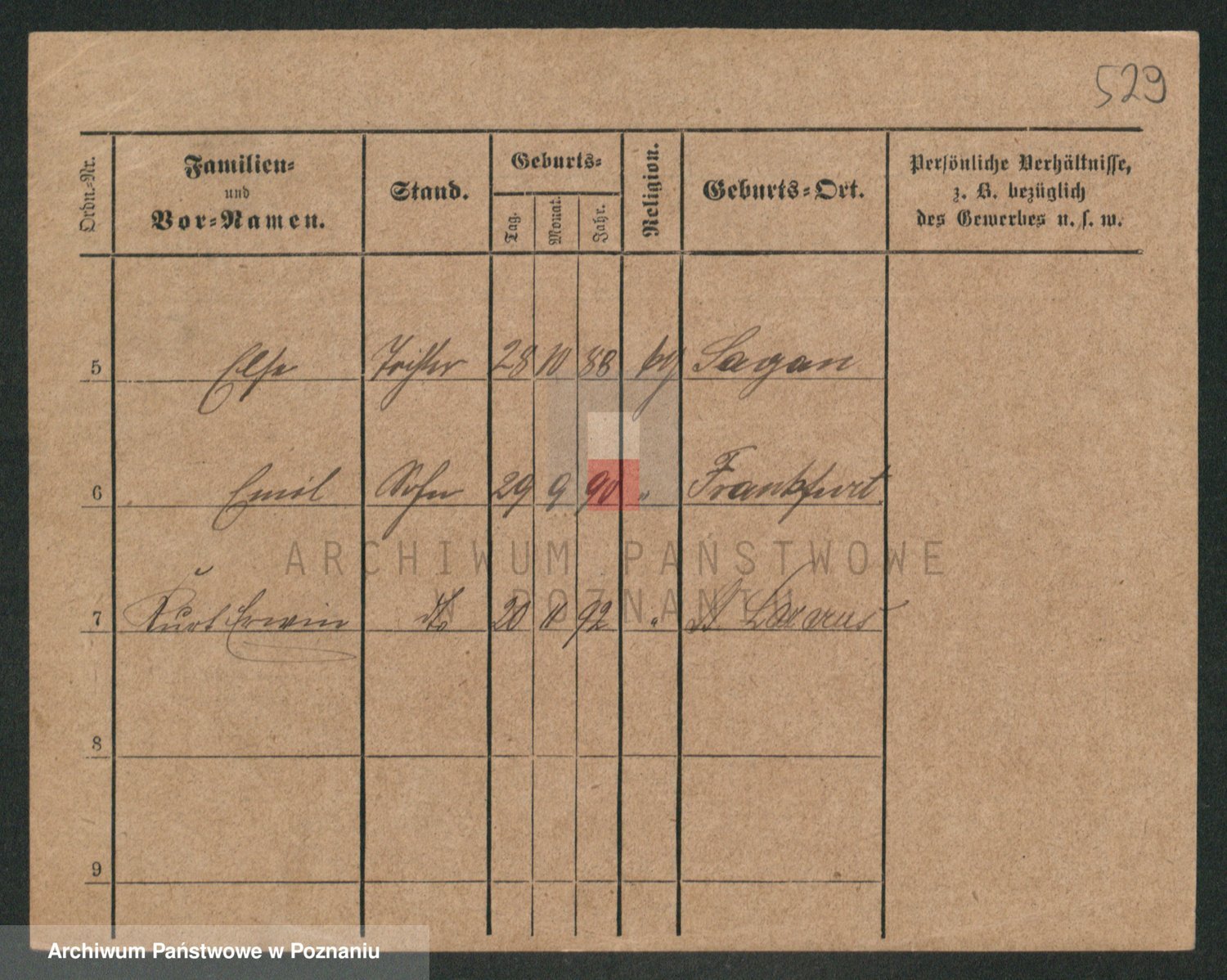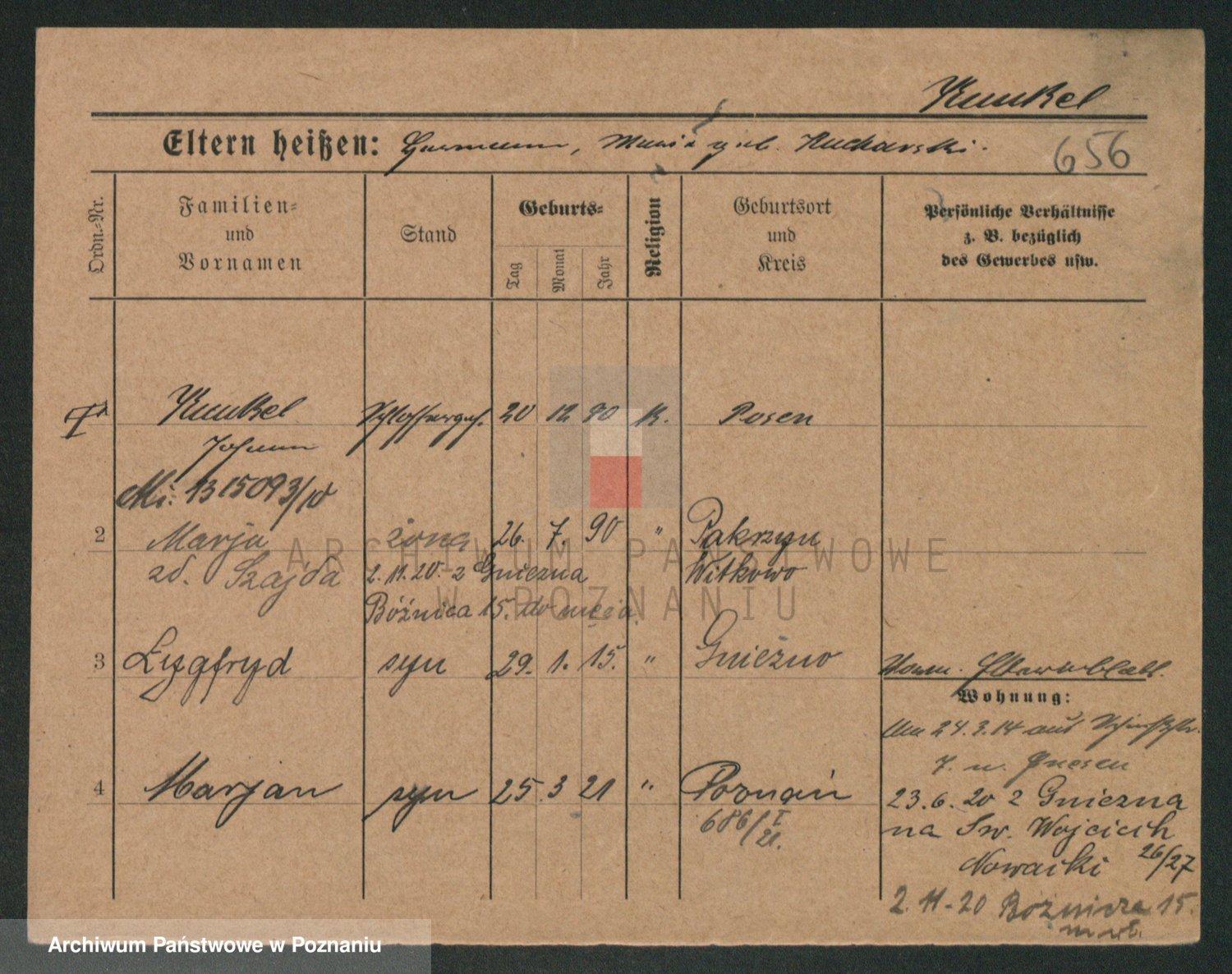 Podgląd karty osobowej dostępny jest po kliknięciu na nazwisko lub ikonkę karty. Można dokonywać powiększenia (ikony na górze) lub przechodzić między kolejnymi skanami (strzałki po bokach).