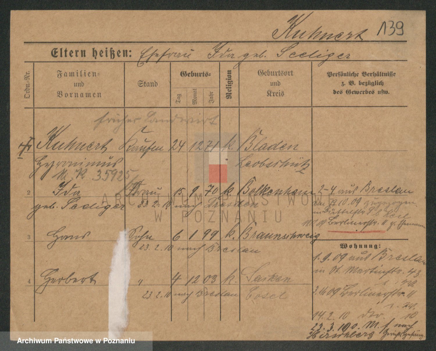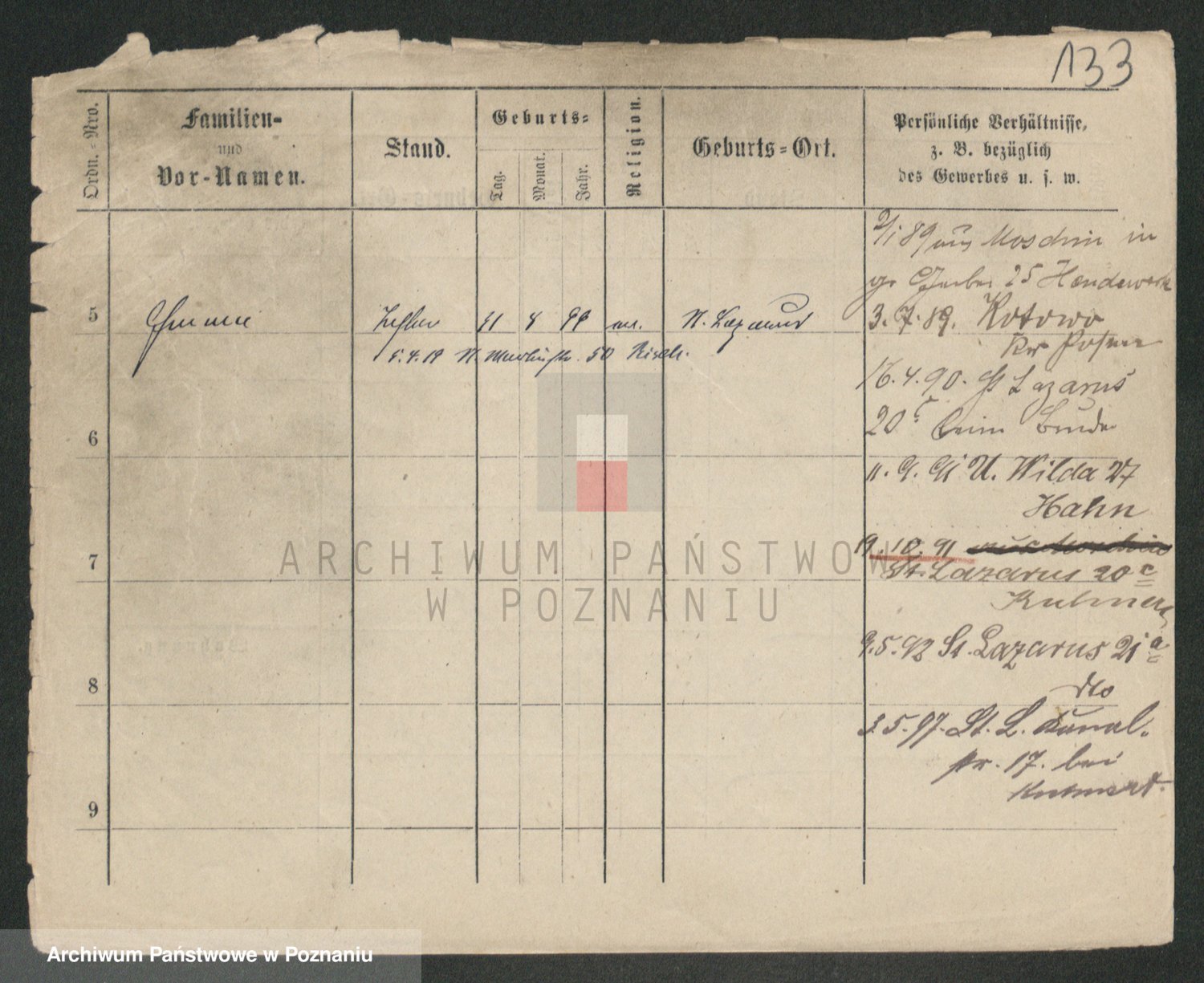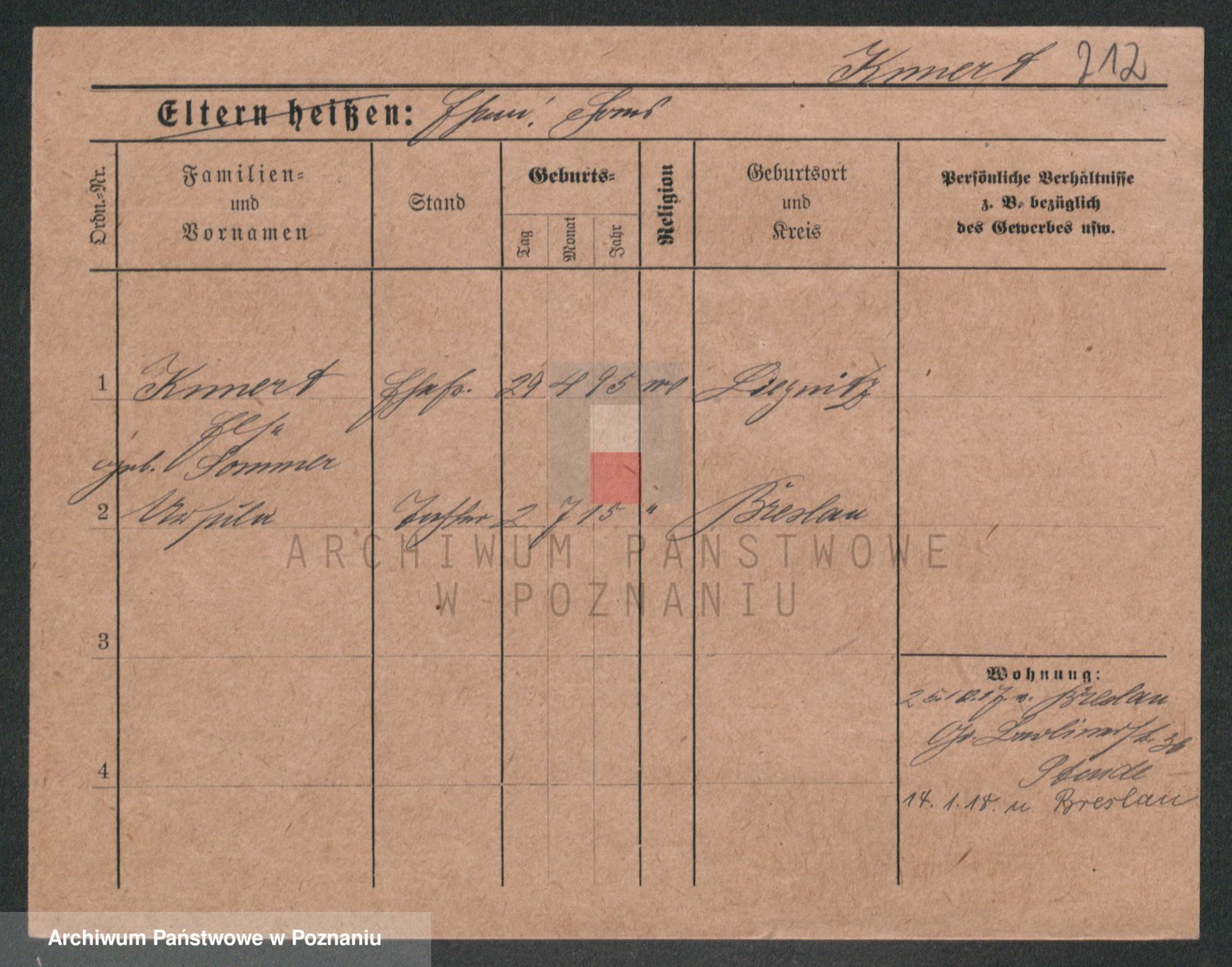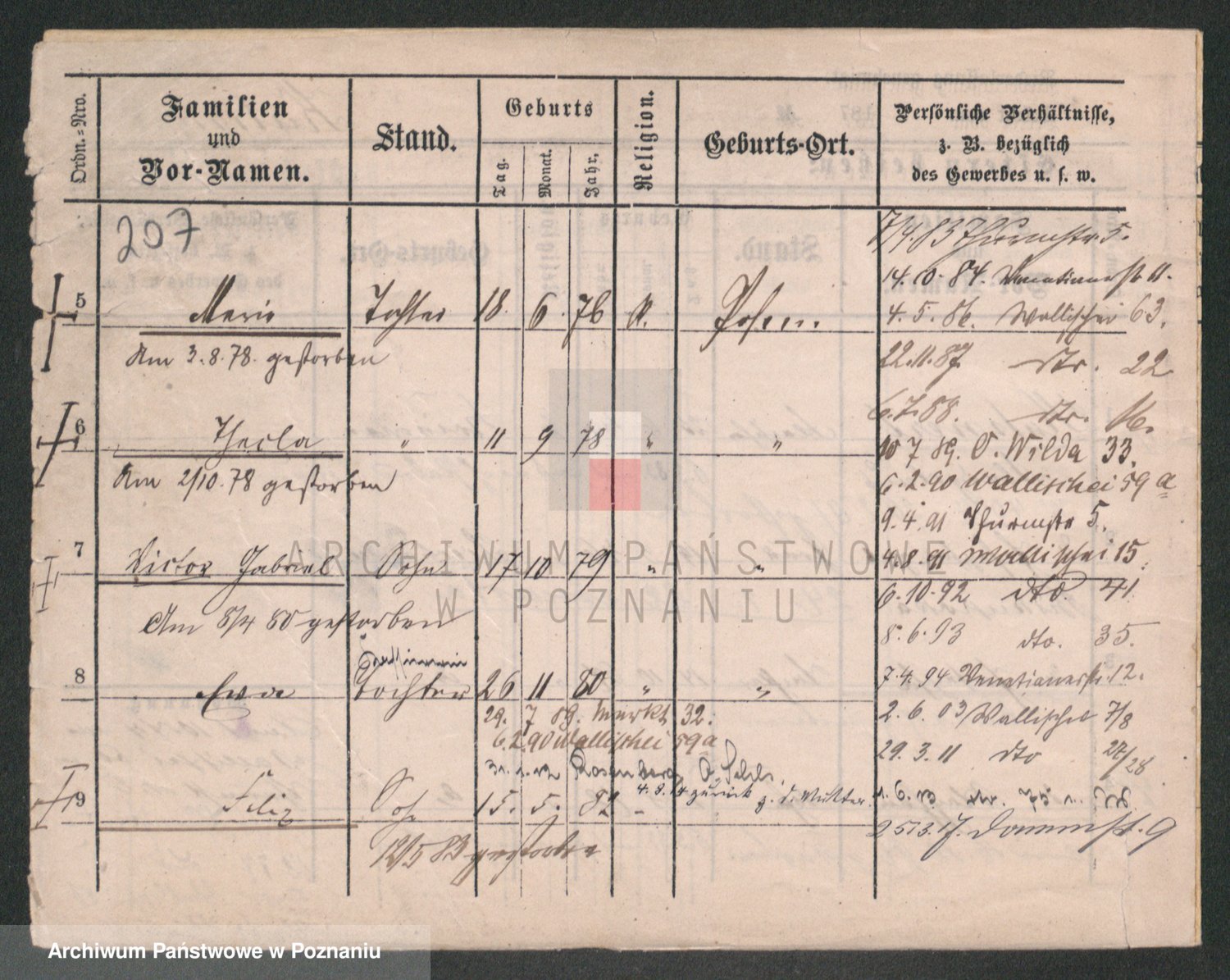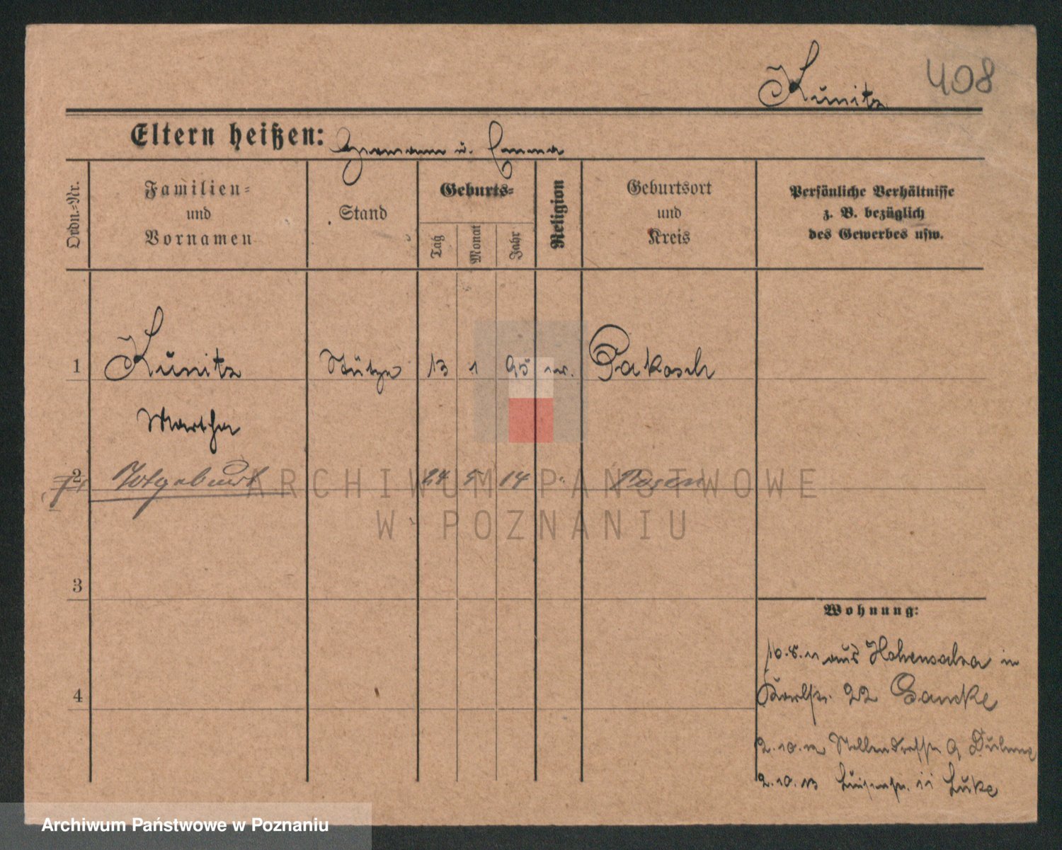 Podgląd karty osobowej dostępny jest po kliknięciu na nazwisko lub ikonkę karty. Można dokonywać powiększenia (ikony na górze) lub przechodzić między kolejnymi skanami (strzałki po bokach).