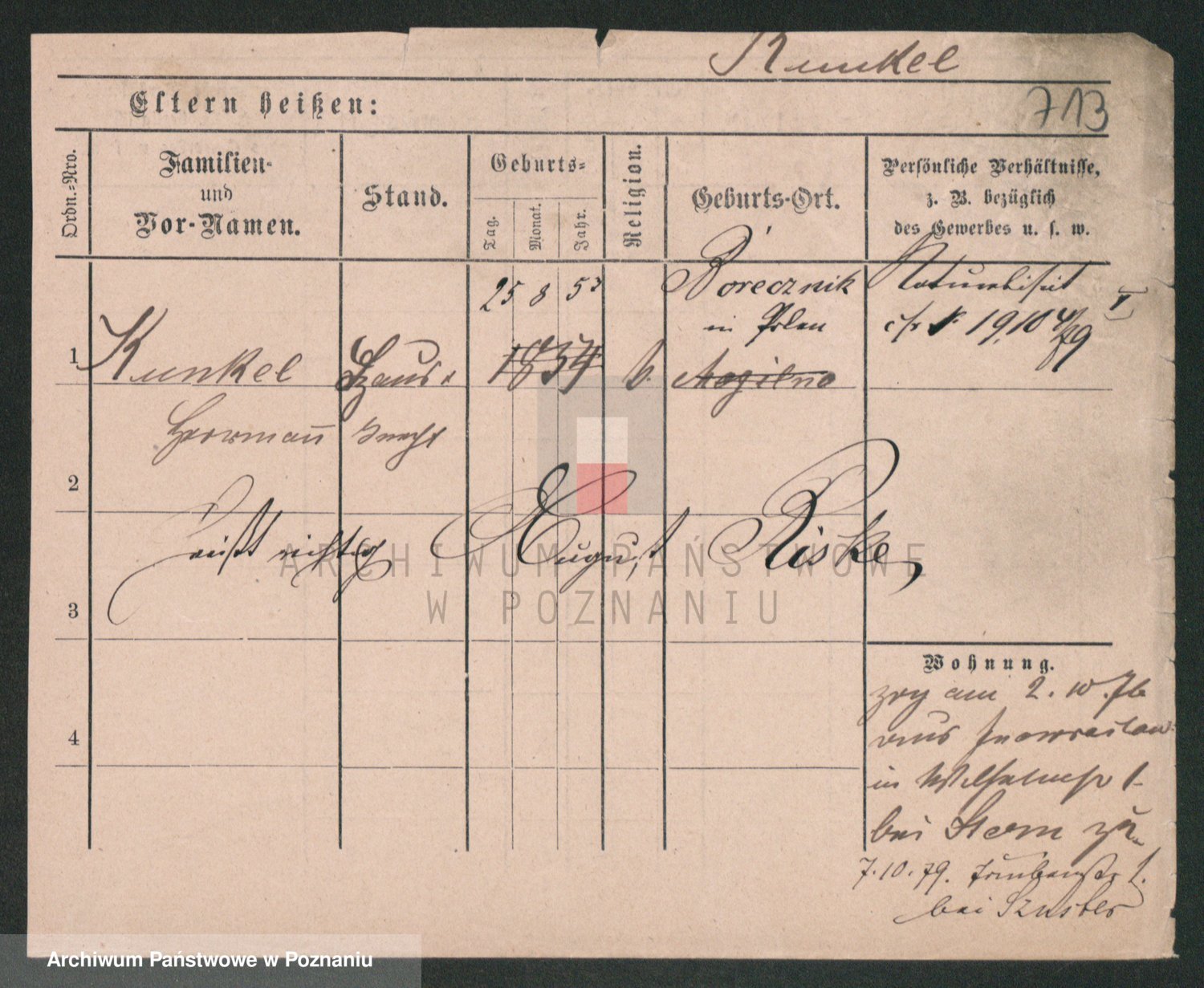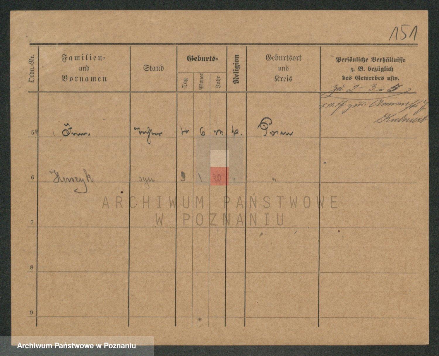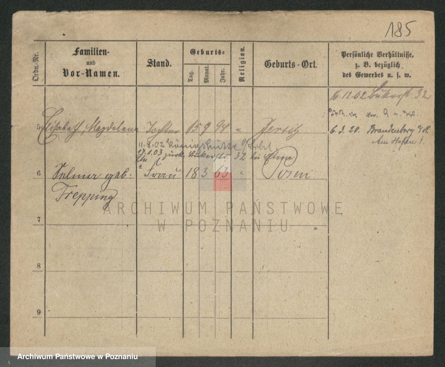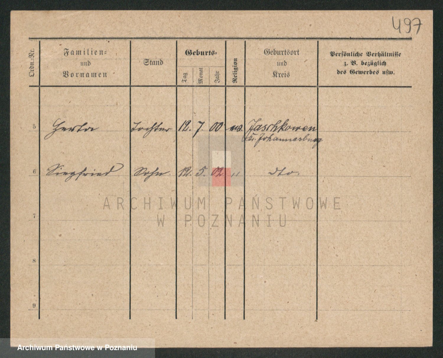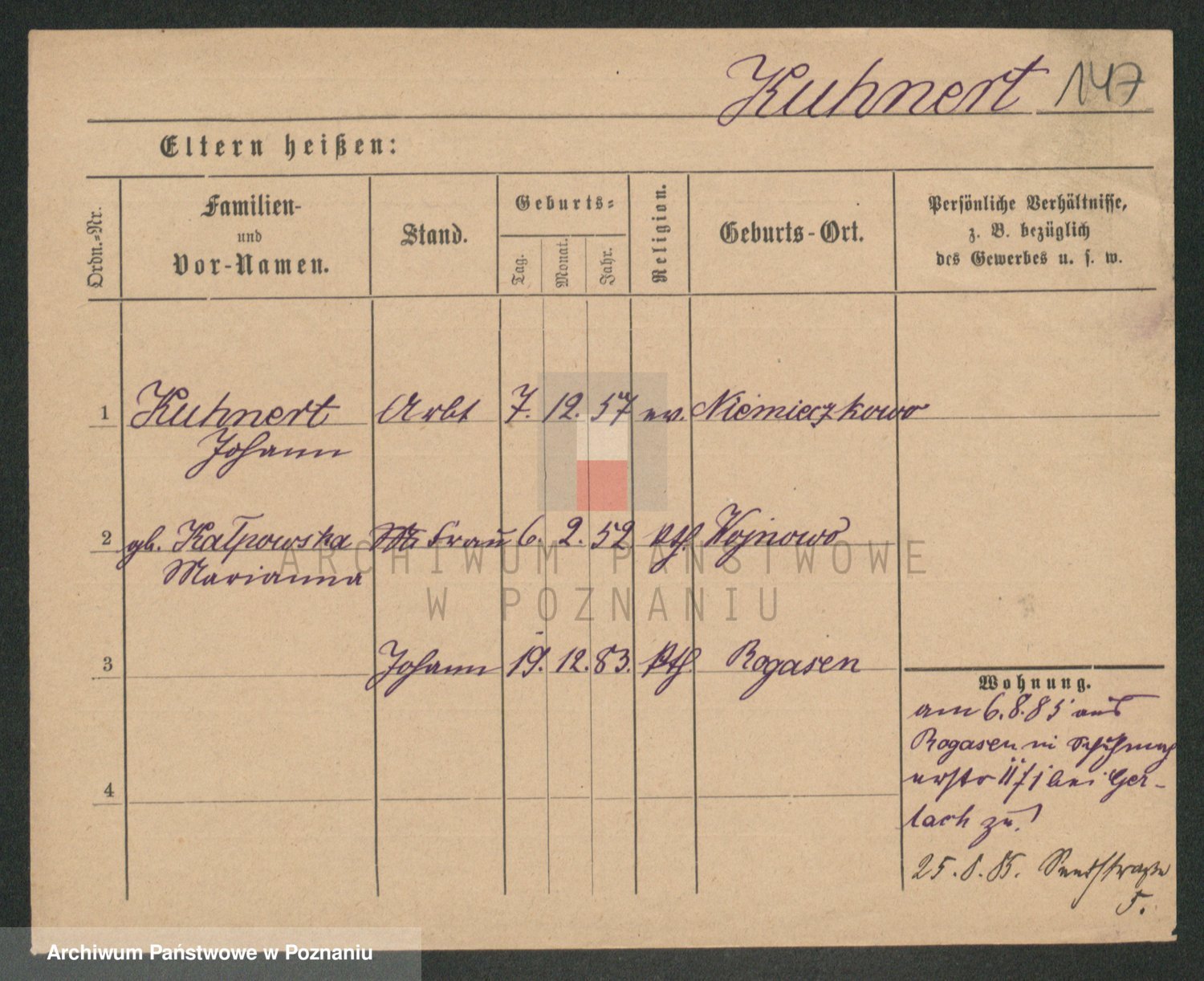 Podgląd karty osobowej dostępny jest po kliknięciu na nazwisko lub ikonkę karty. Można dokonywać powiększenia (ikony na górze) lub przechodzić między kolejnymi skanami (strzałki po bokach).