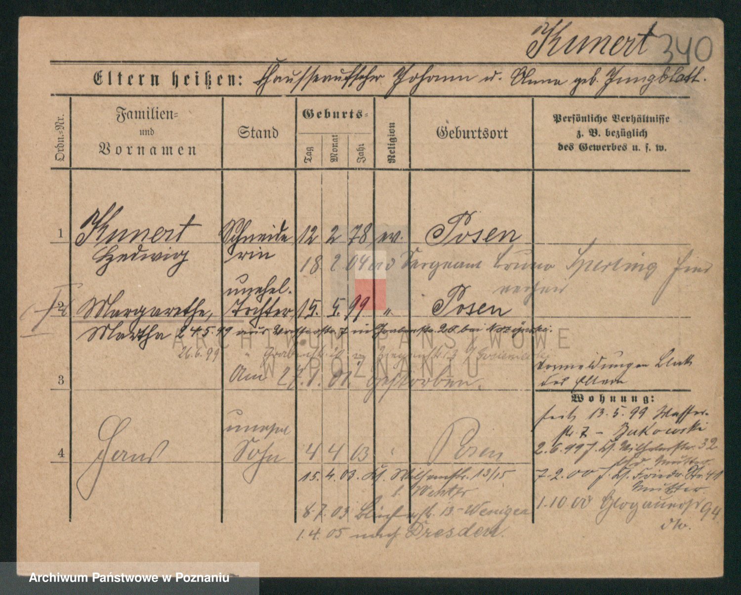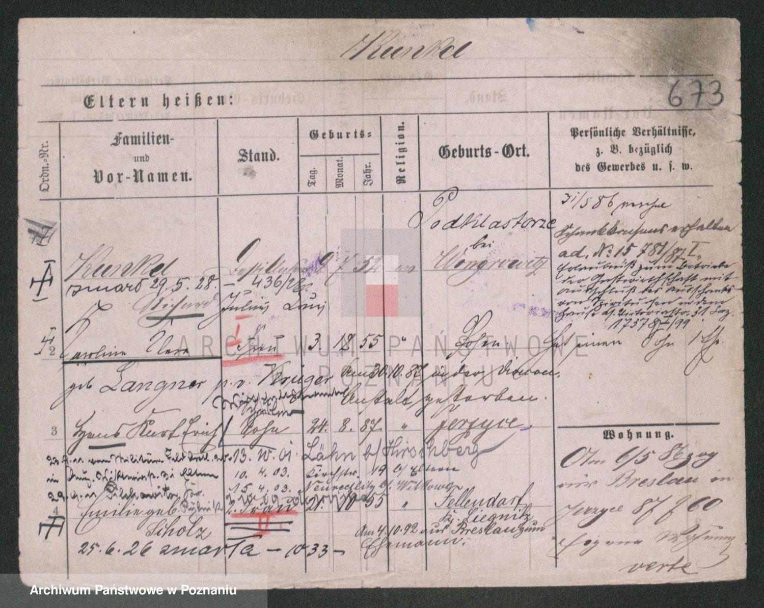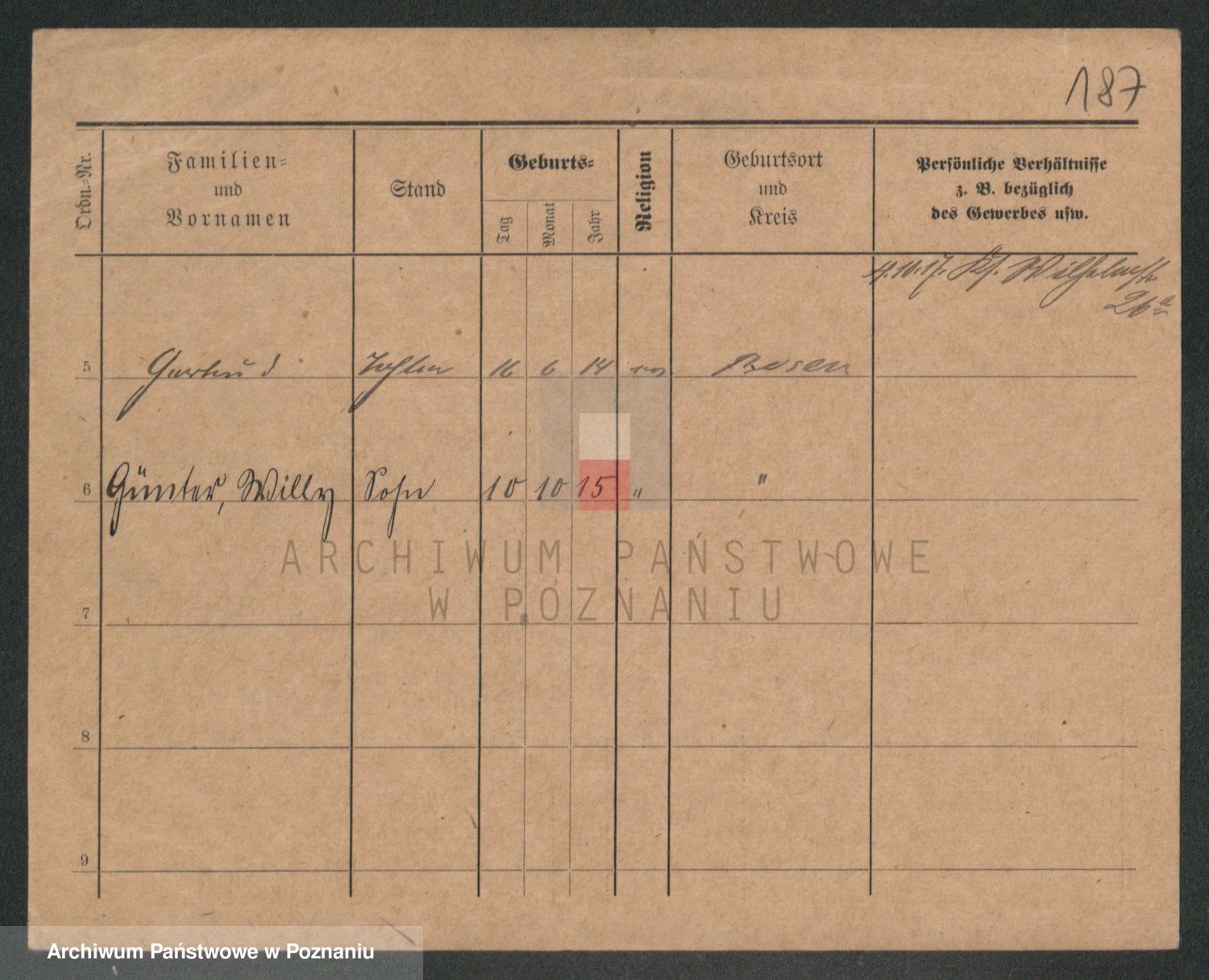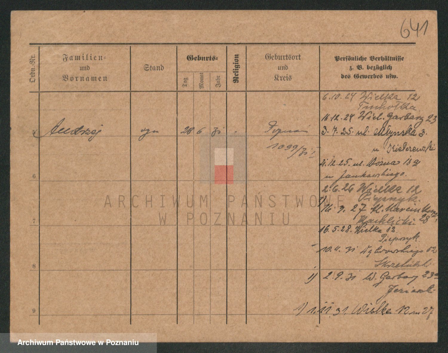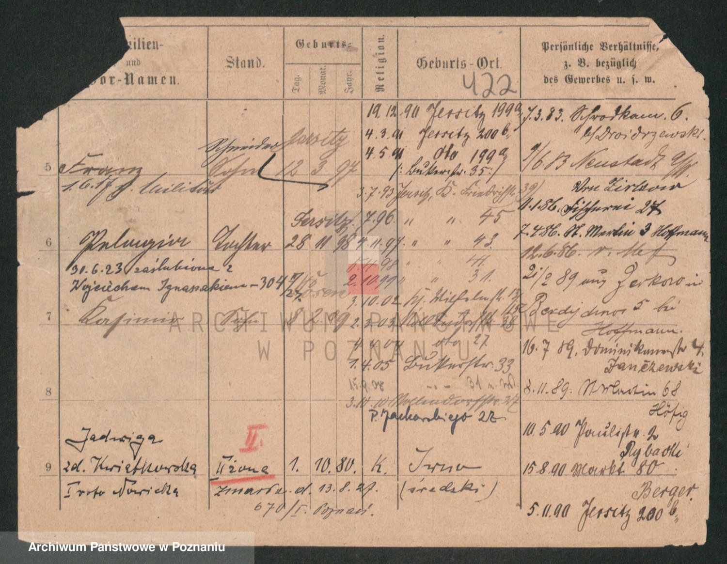 Podgląd karty osobowej dostępny jest po kliknięciu na nazwisko lub ikonkę karty. Można dokonywać powiększenia (ikony na górze) lub przechodzić między kolejnymi skanami (strzałki po bokach).