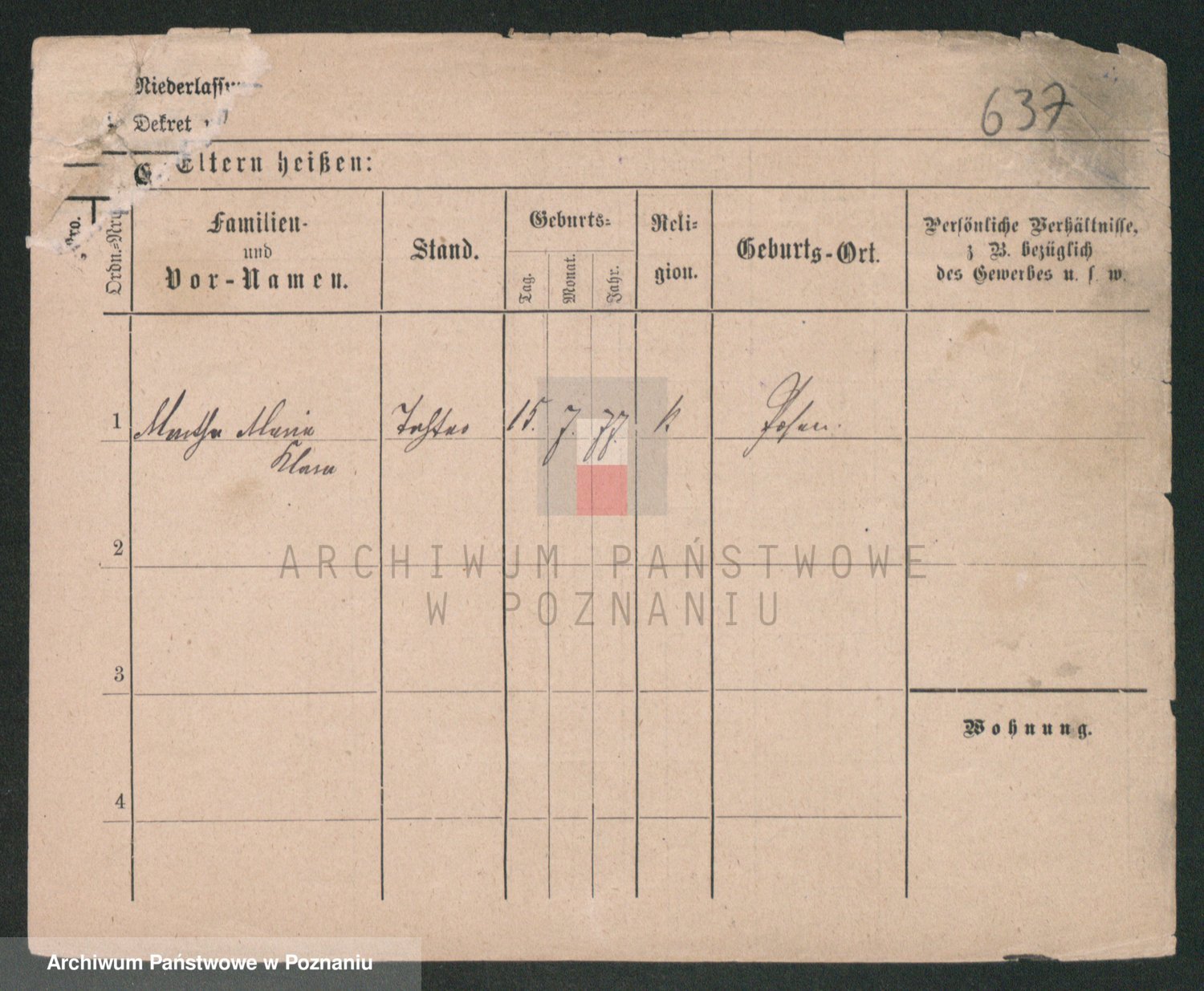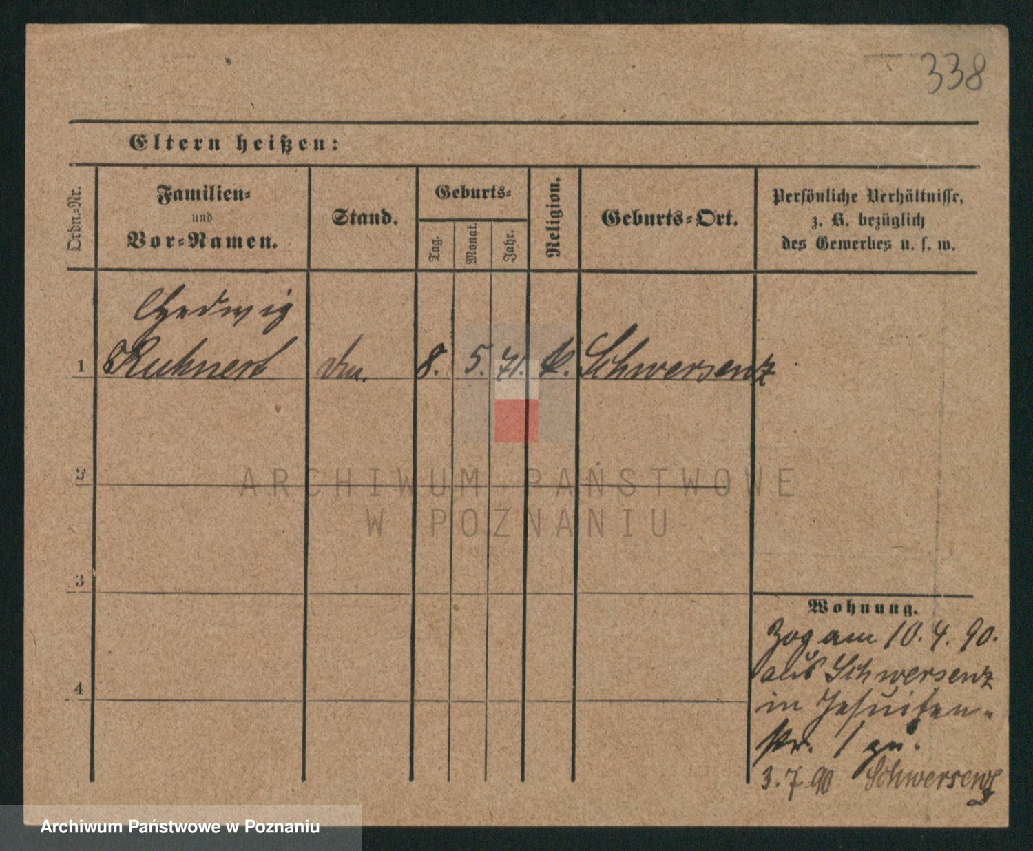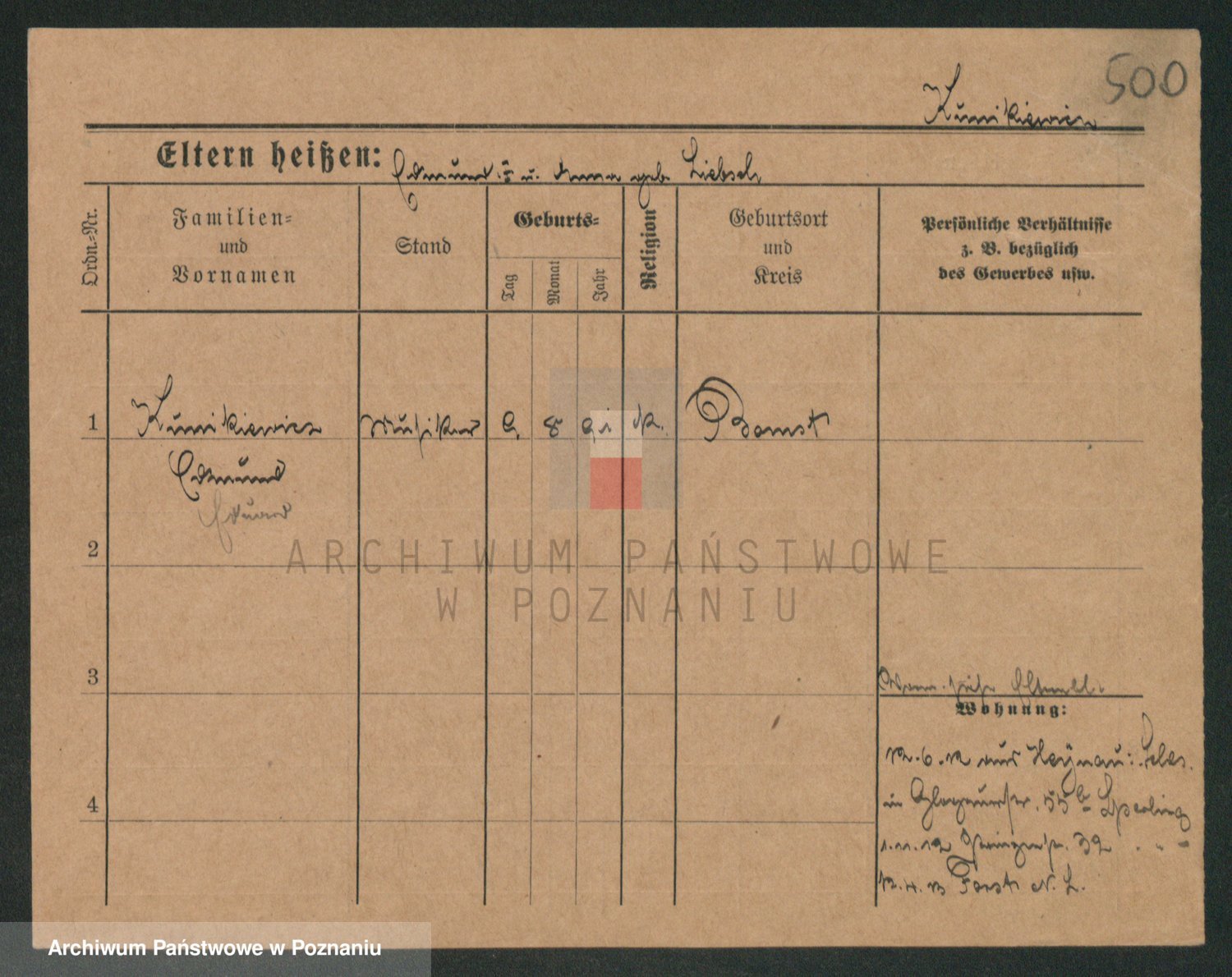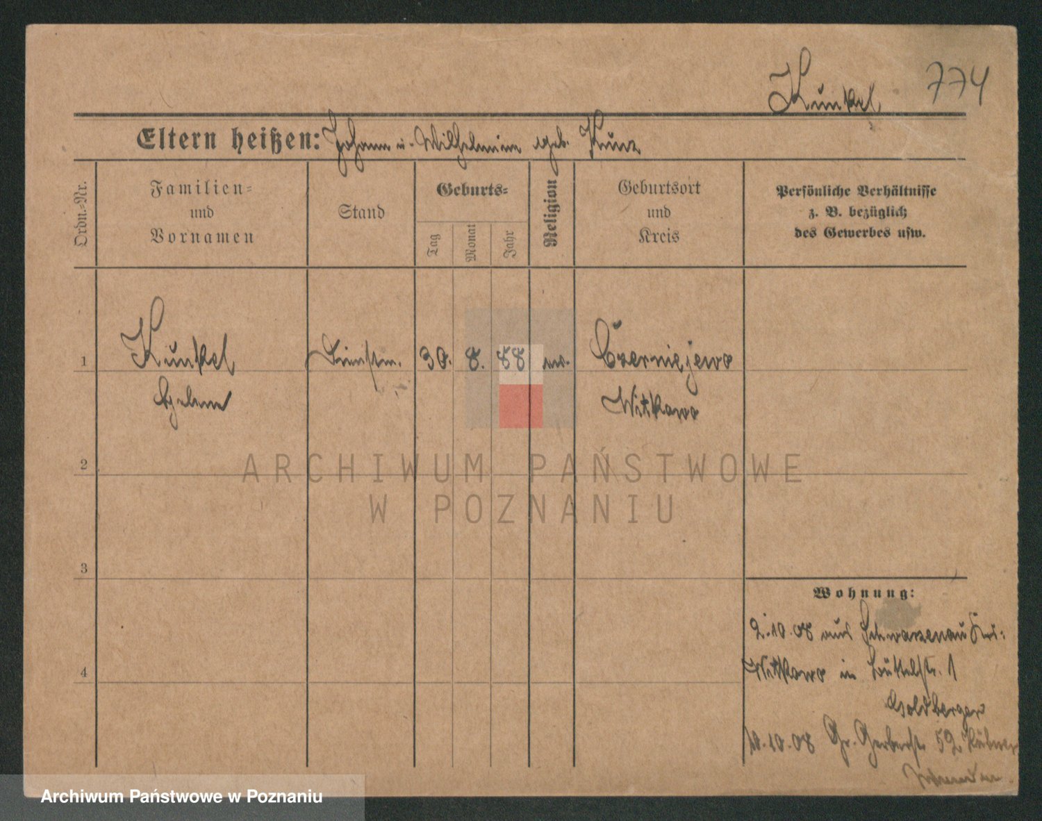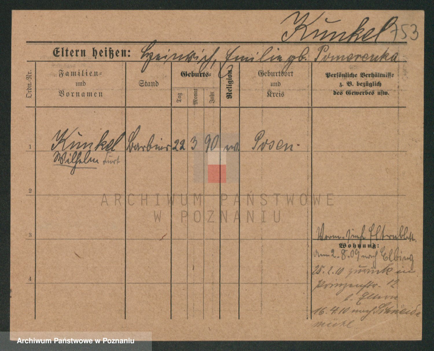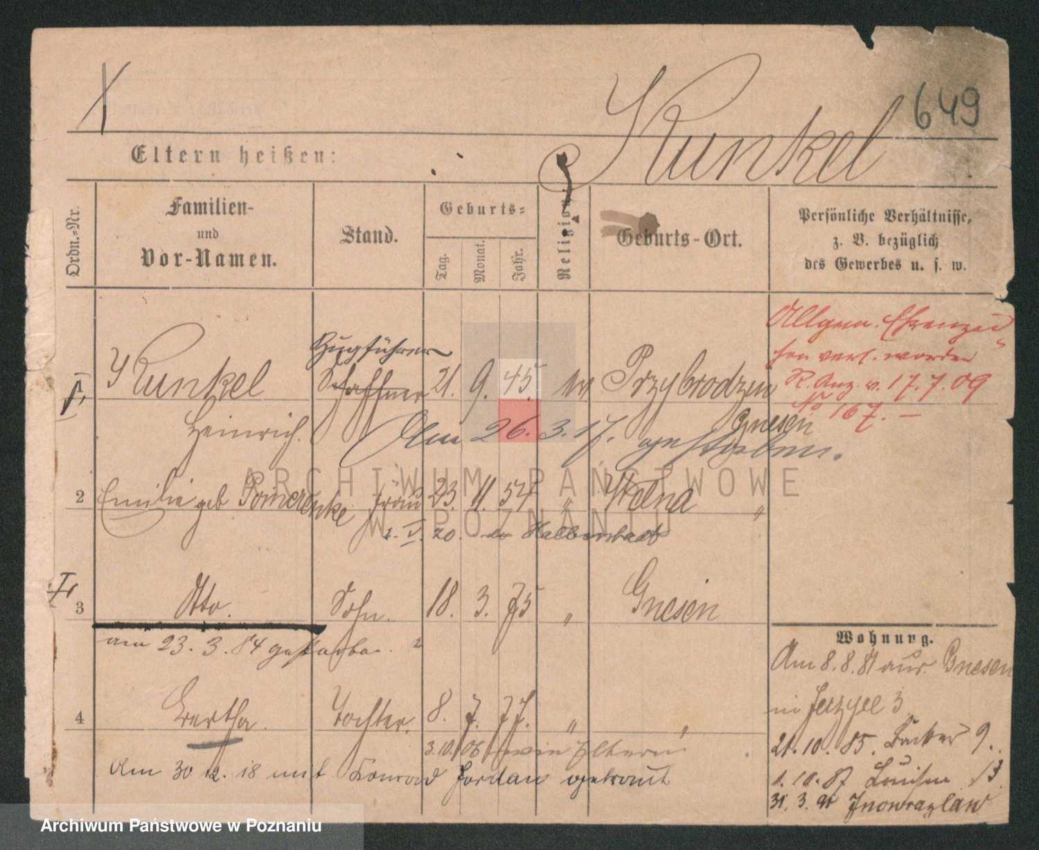Podgląd karty osobowej dostępny jest po kliknięciu na nazwisko lub ikonkę karty. Można dokonywać powiększenia (ikony na górze) lub przechodzić między kolejnymi skanami (strzałki po bokach).
