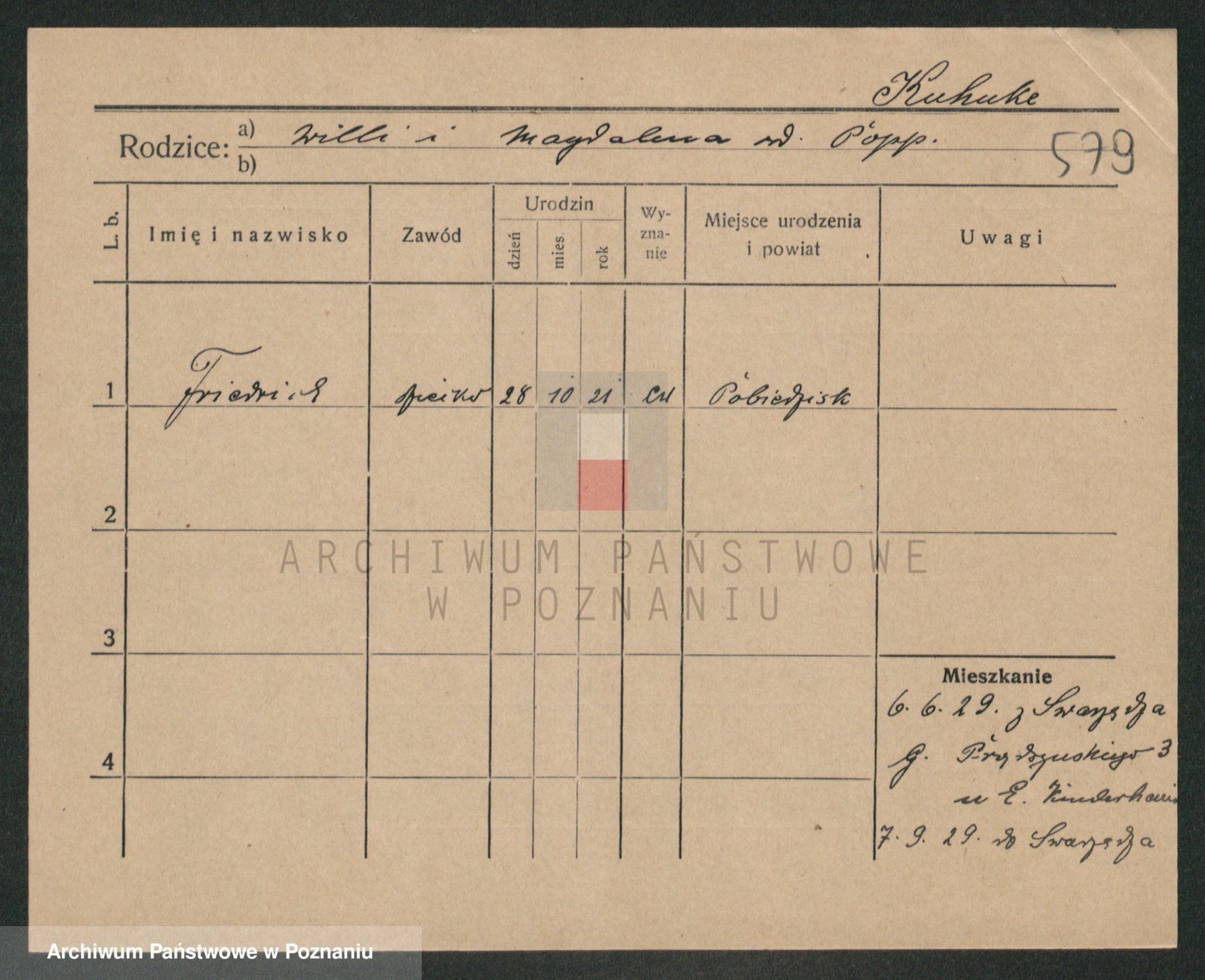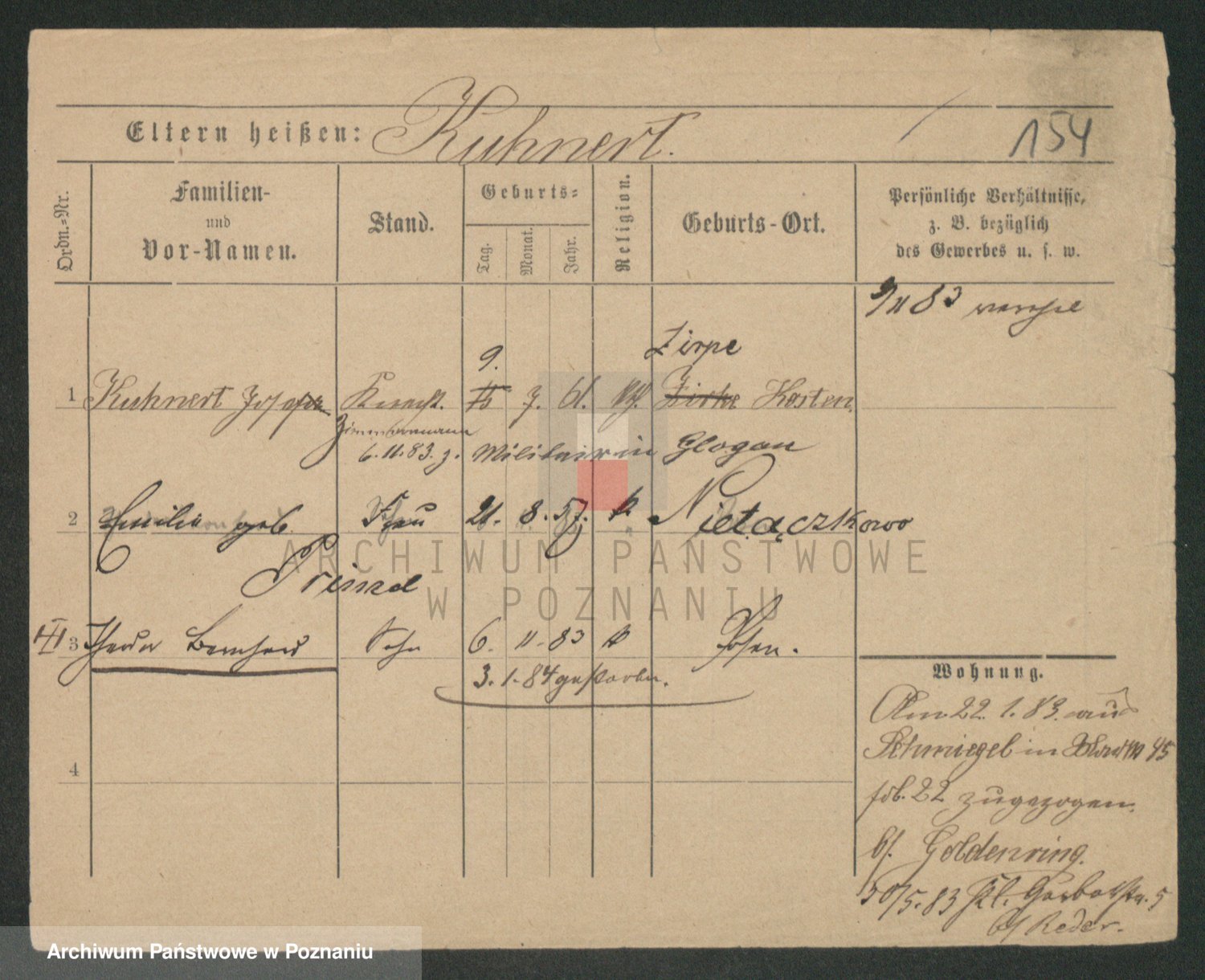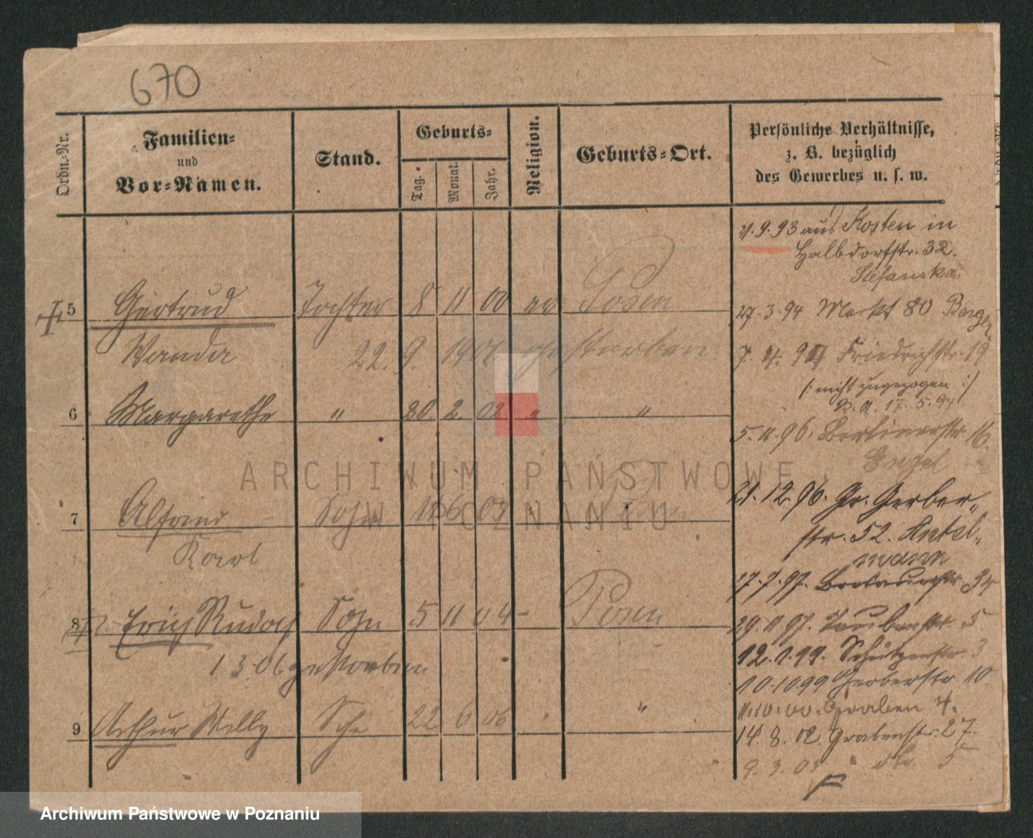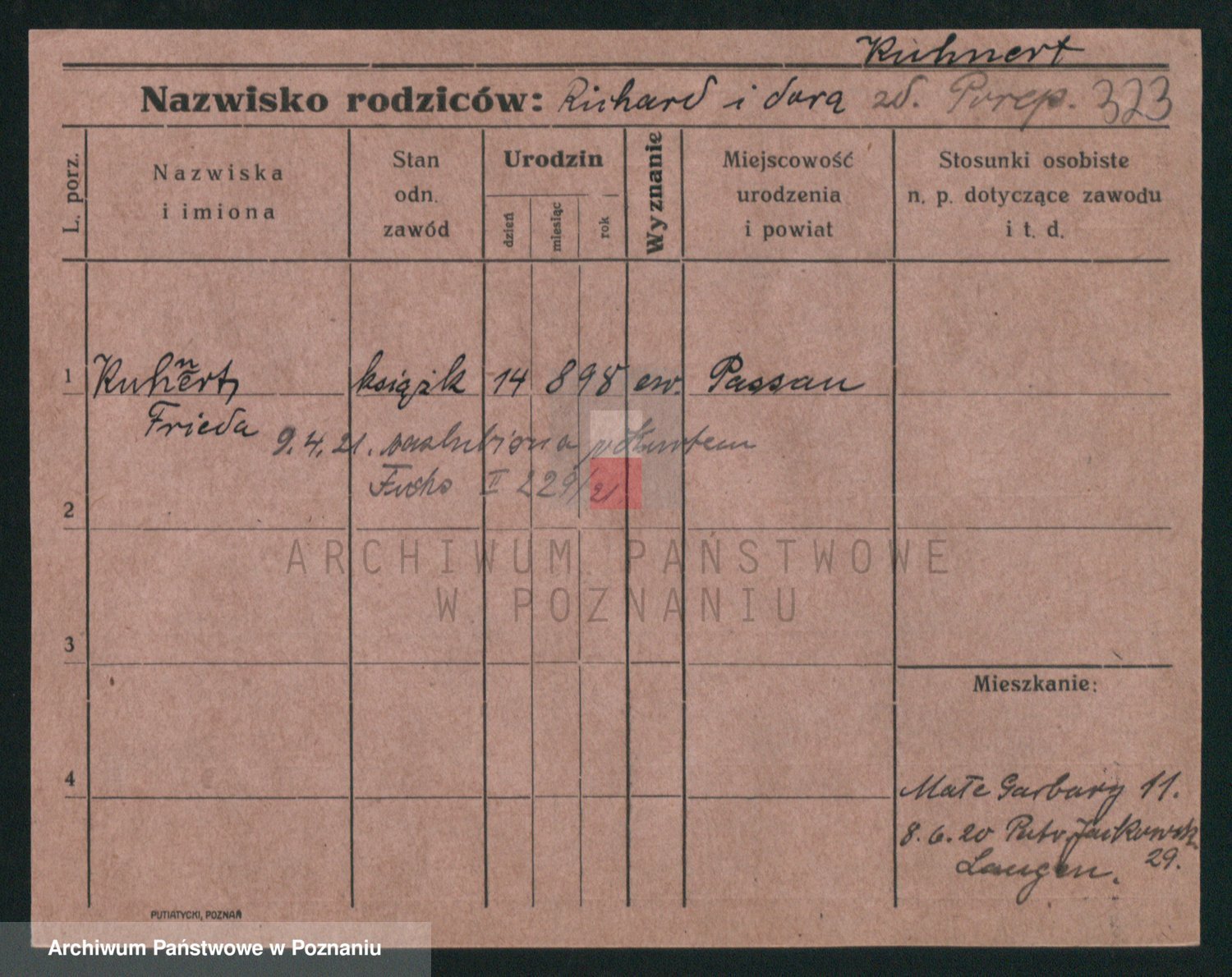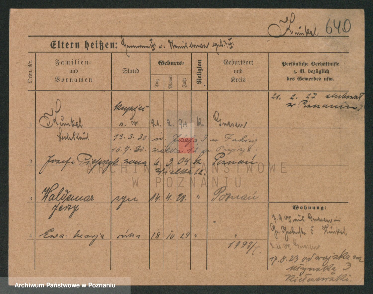 Podgląd karty osobowej dostępny jest po kliknięciu na nazwisko lub ikonkę karty. Można dokonywać powiększenia (ikony na górze) lub przechodzić między kolejnymi skanami (strzałki po bokach).