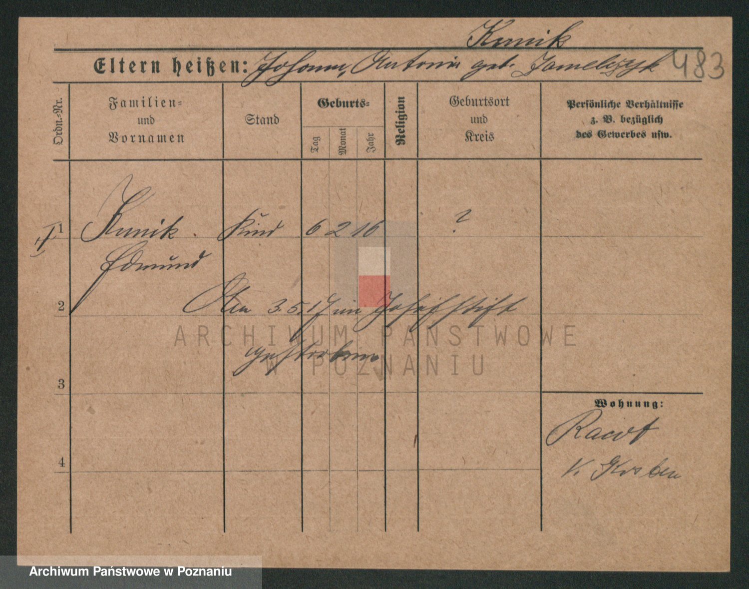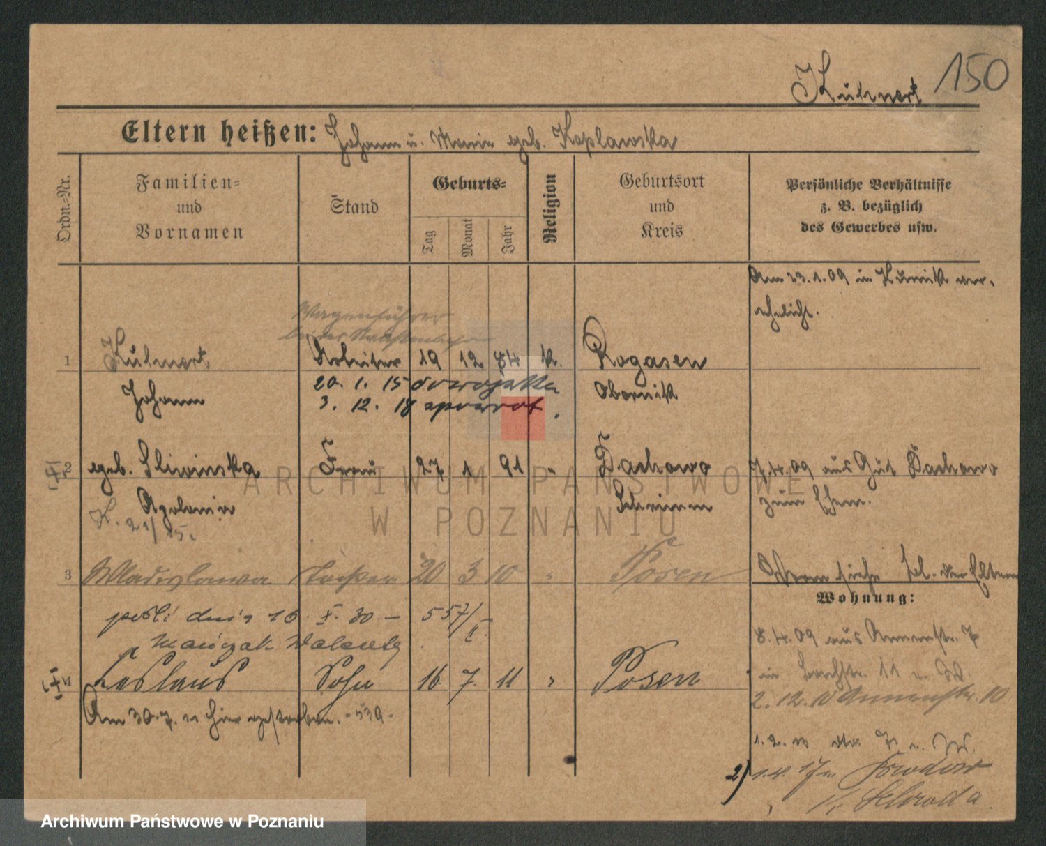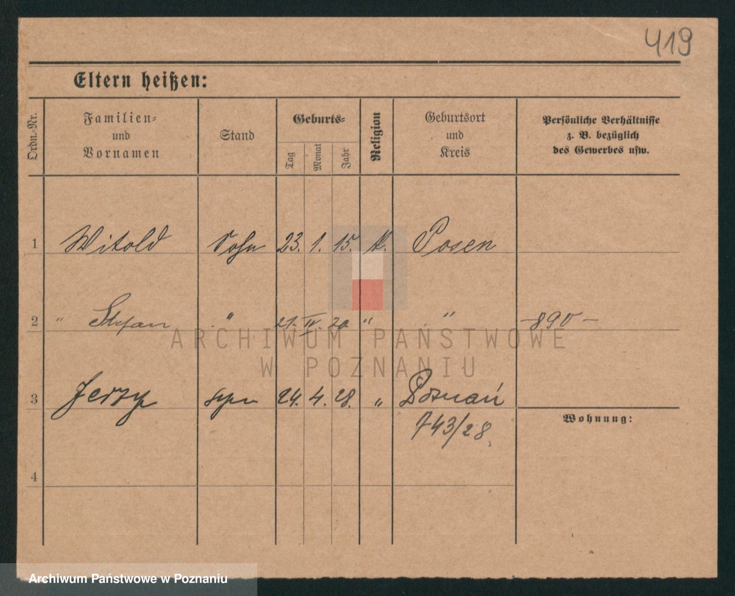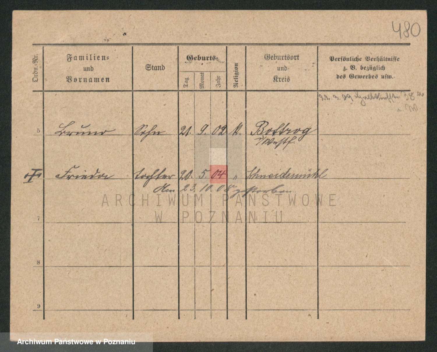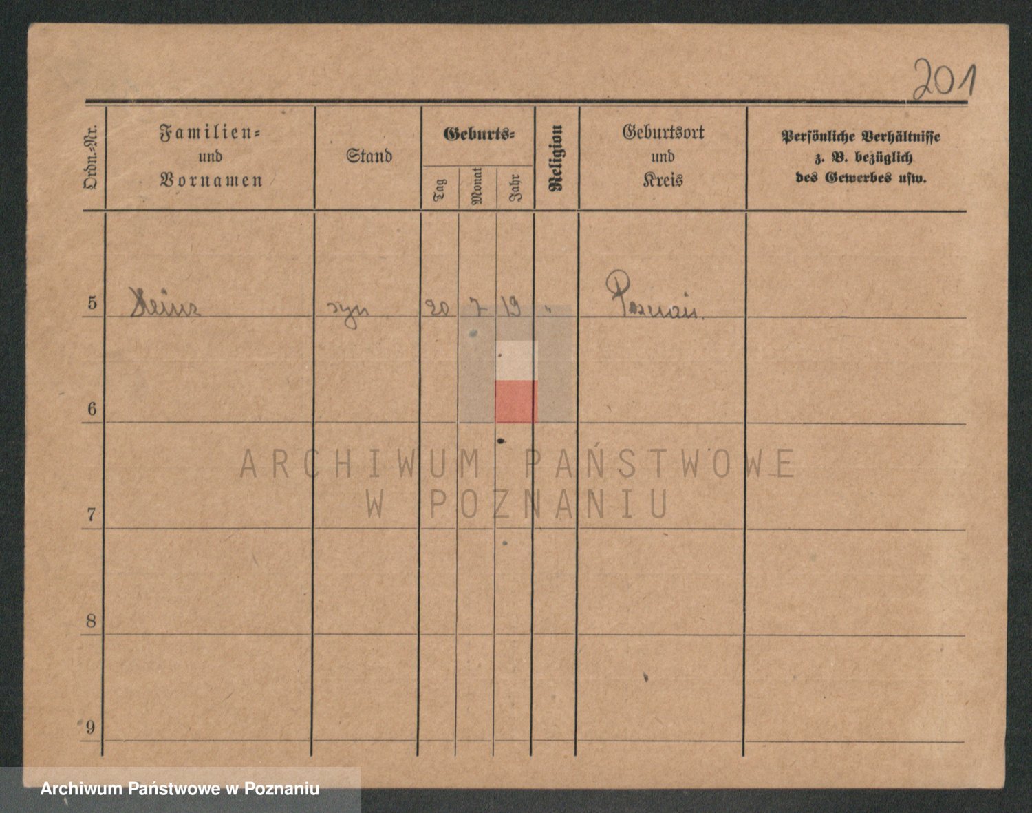 Podgląd karty osobowej dostępny jest po kliknięciu na nazwisko lub ikonkę karty. Można dokonywać powiększenia (ikony na górze) lub przechodzić między kolejnymi skanami (strzałki po bokach).