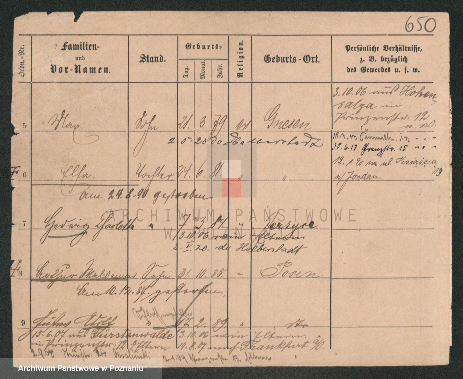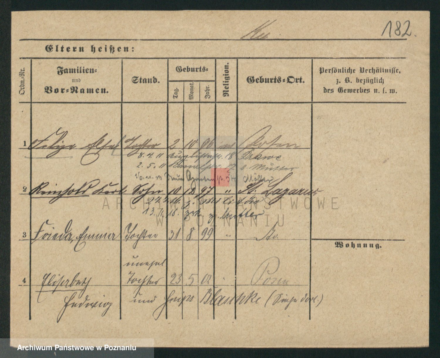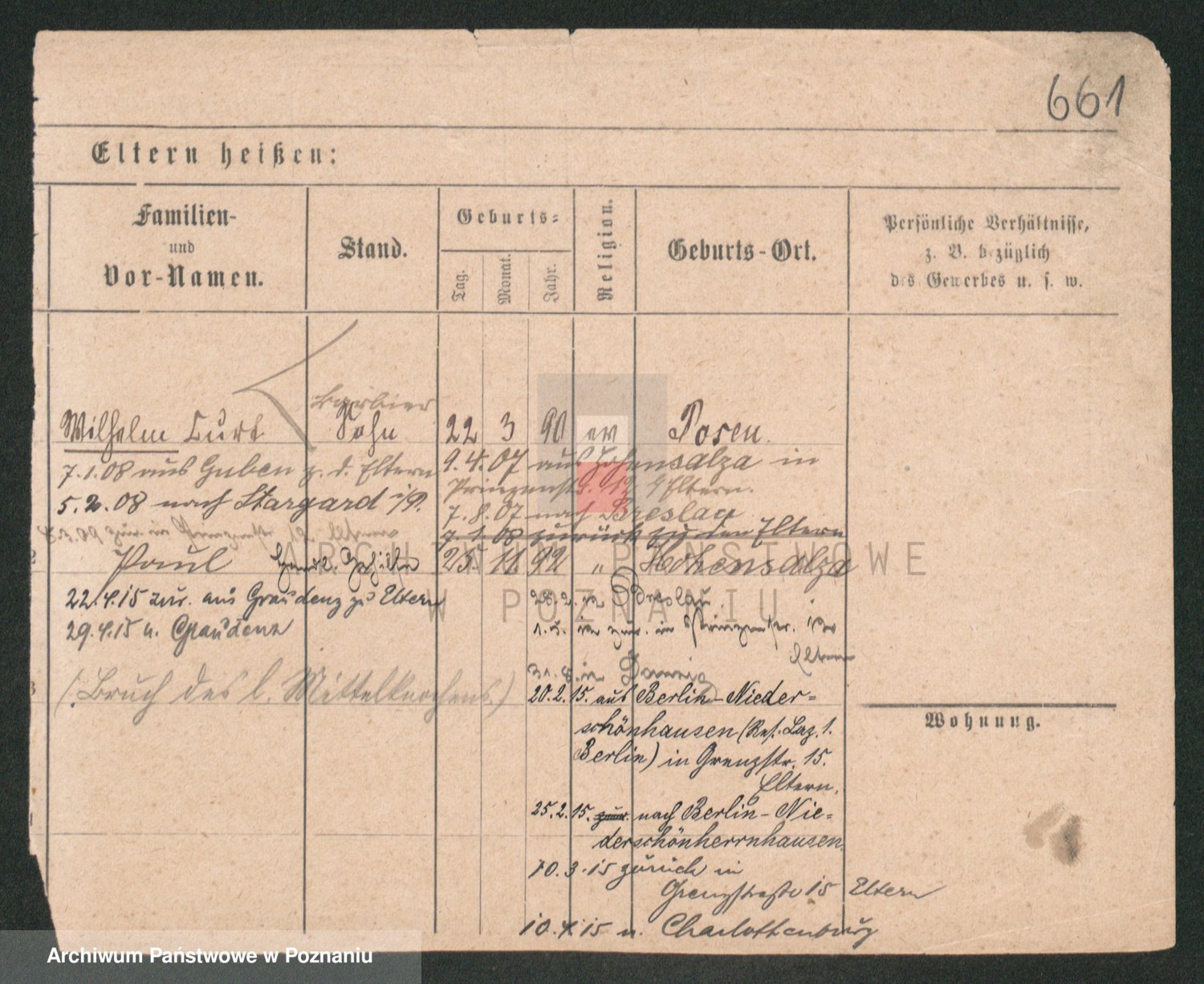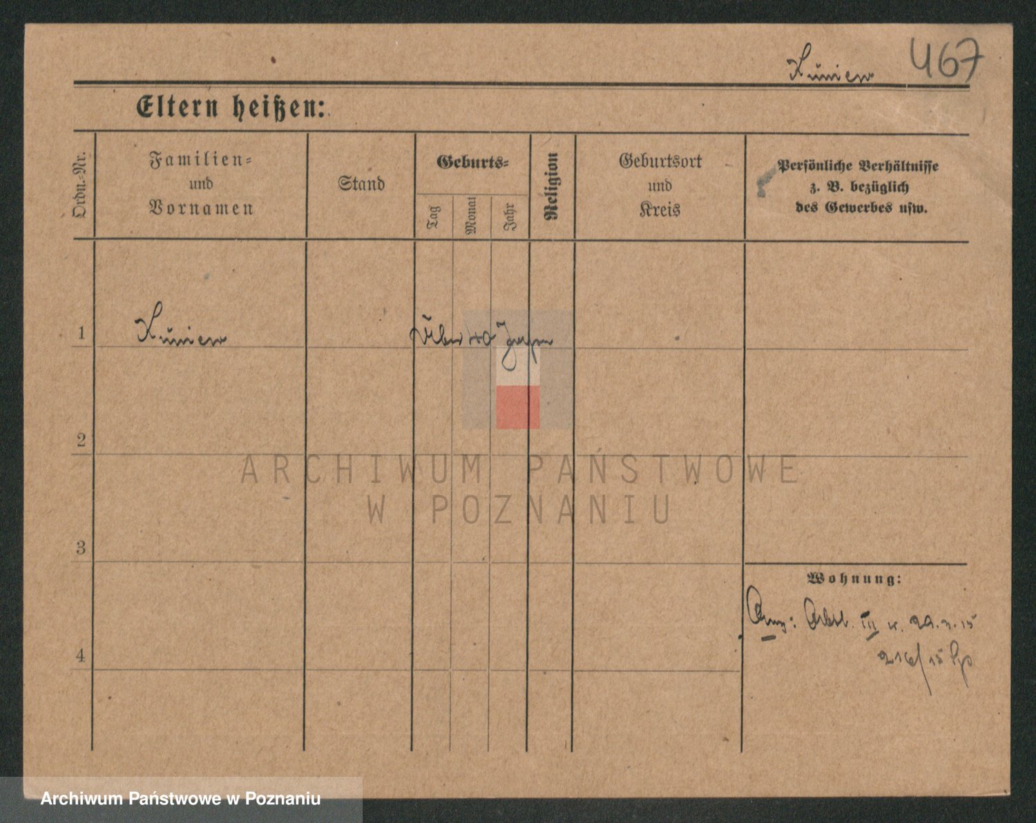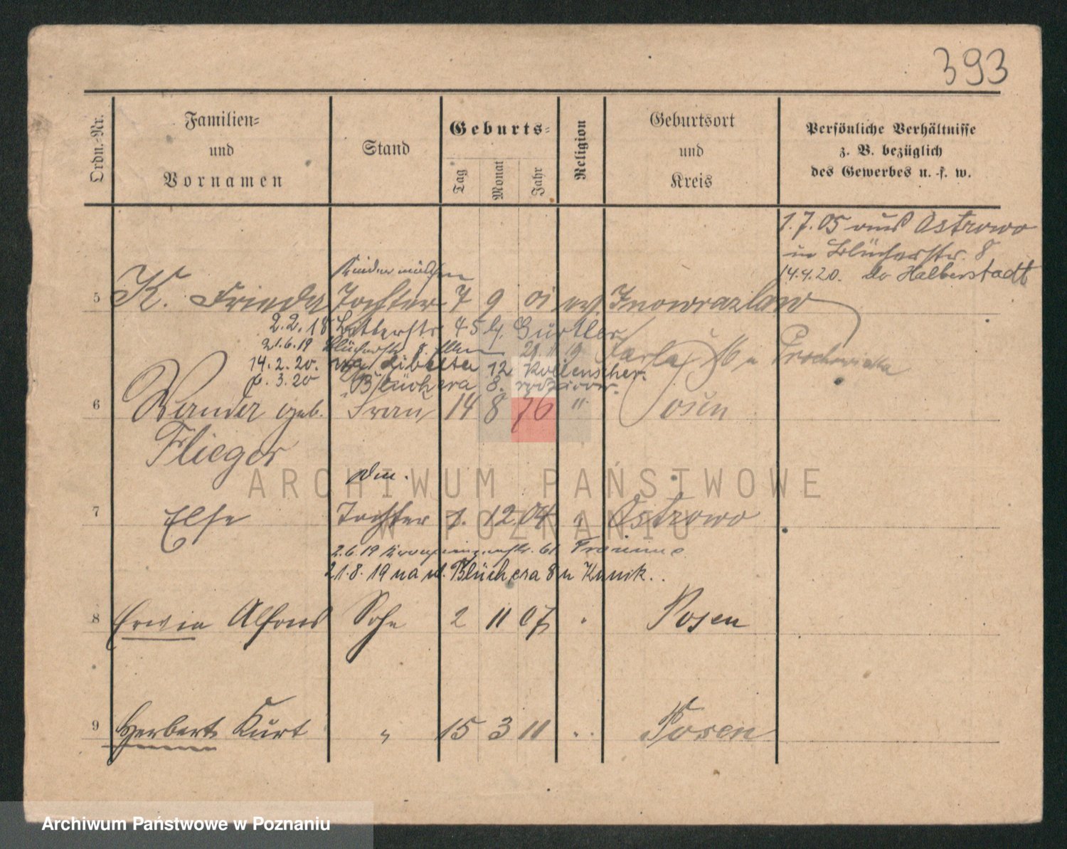 Podgląd karty osobowej dostępny jest po kliknięciu na nazwisko lub ikonkę karty. Można dokonywać powiększenia (ikony na górze) lub przechodzić między kolejnymi skanami (strzałki po bokach).