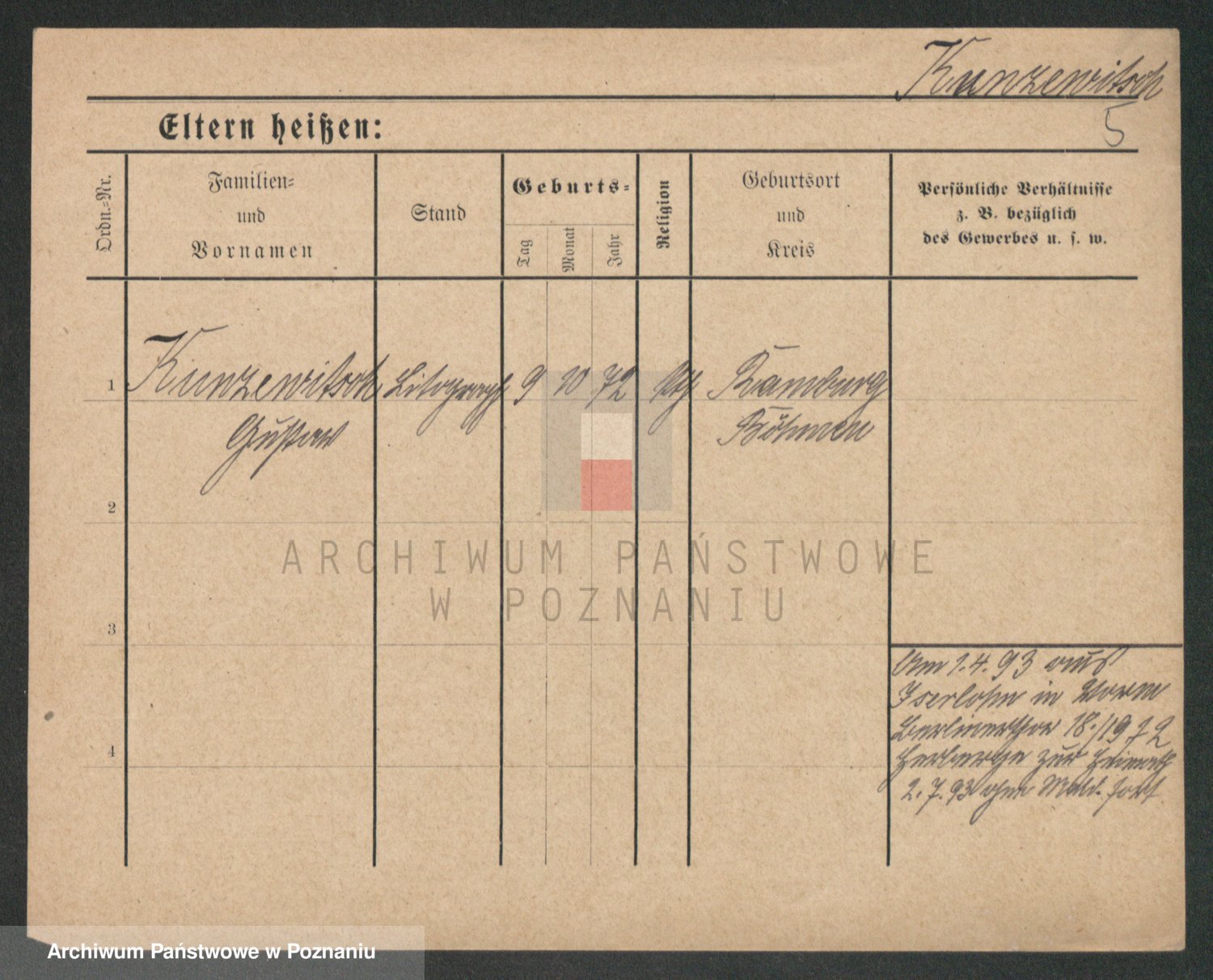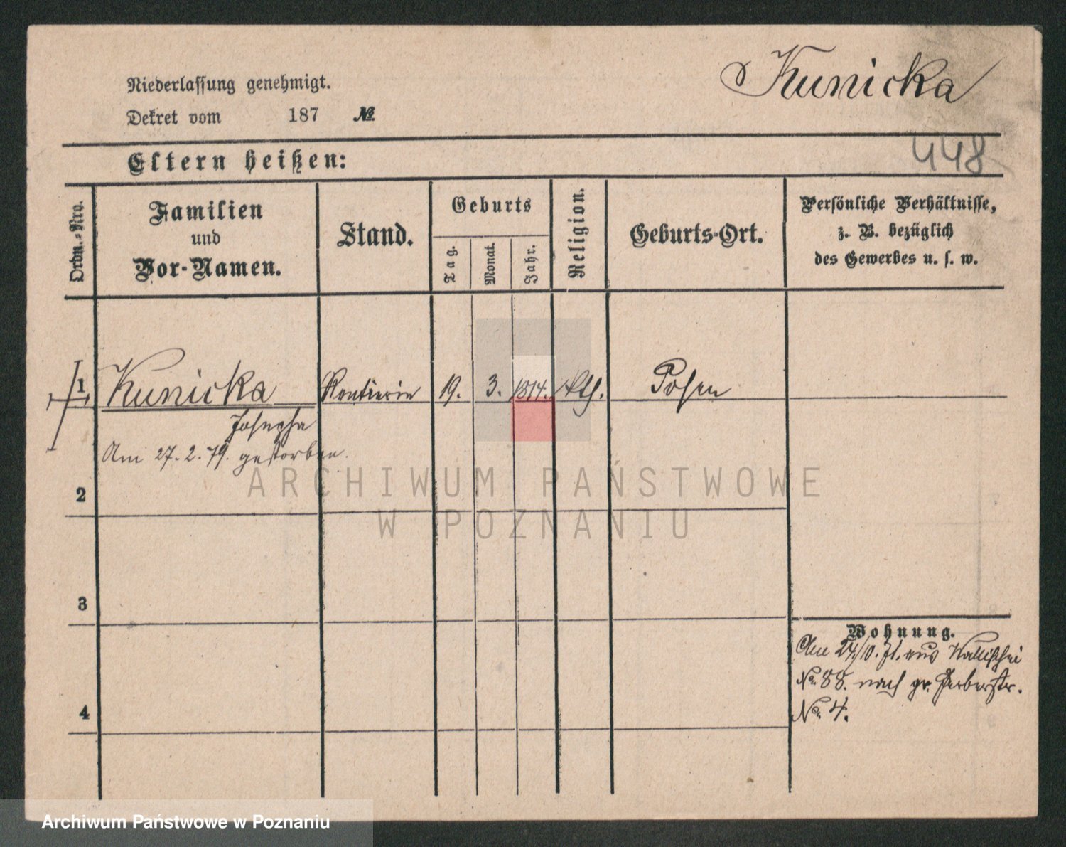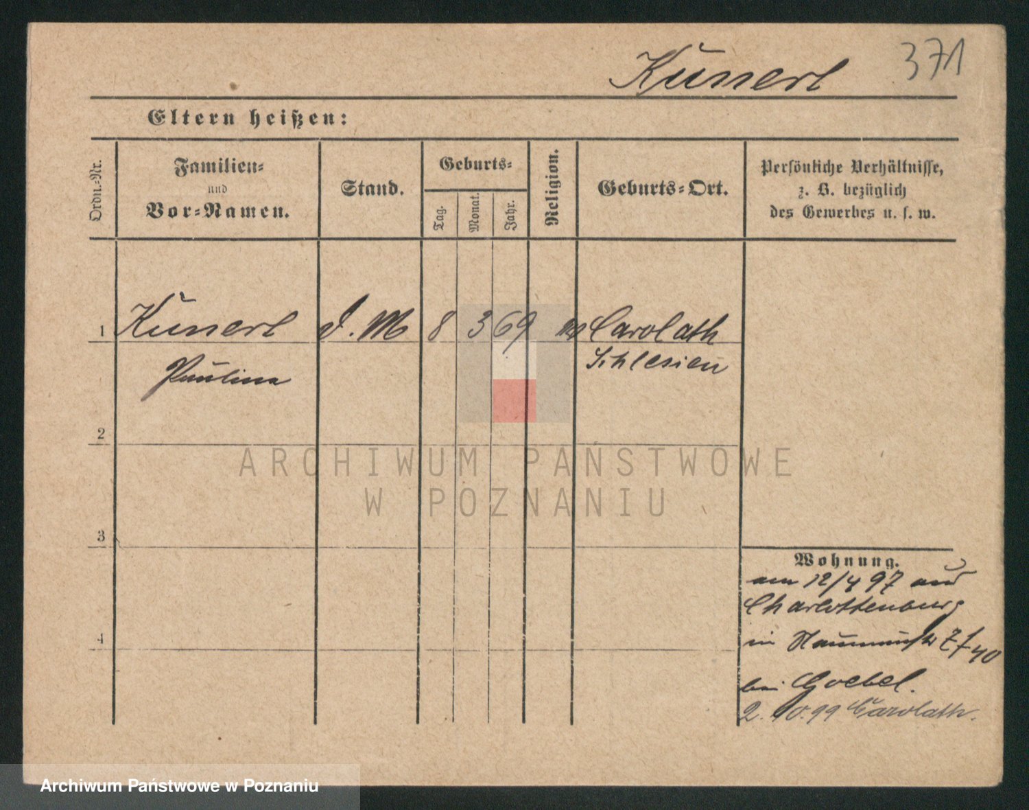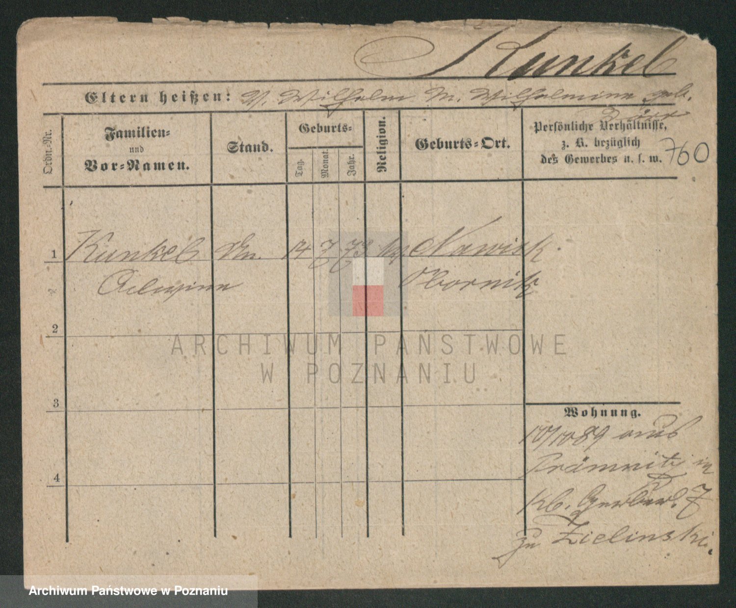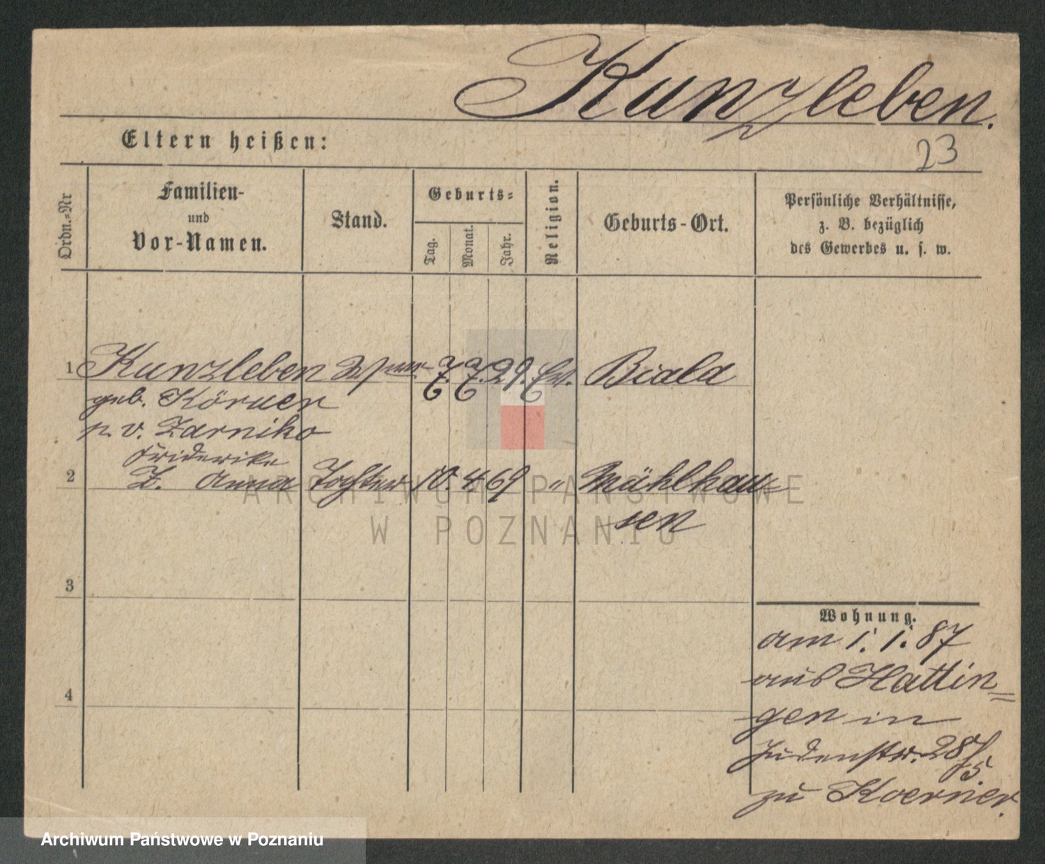 Kunzleben z d. Kömer 1. voto Zarniko, Friederike