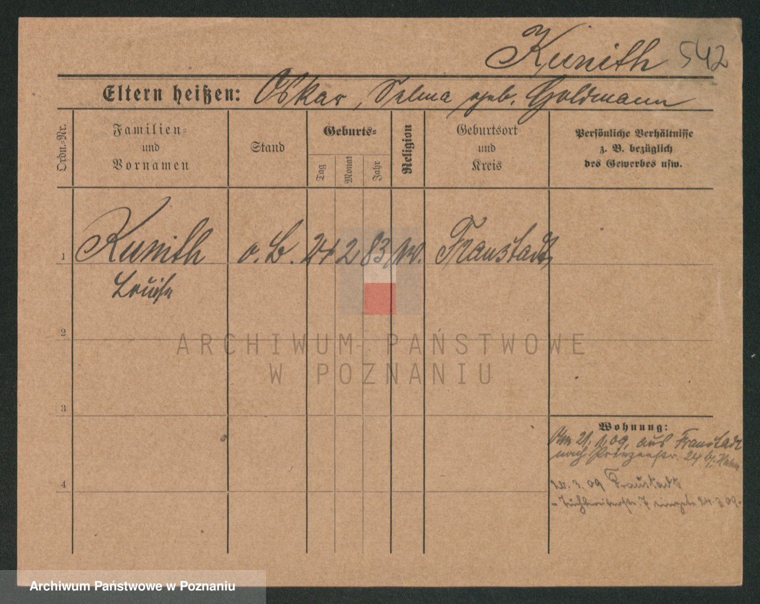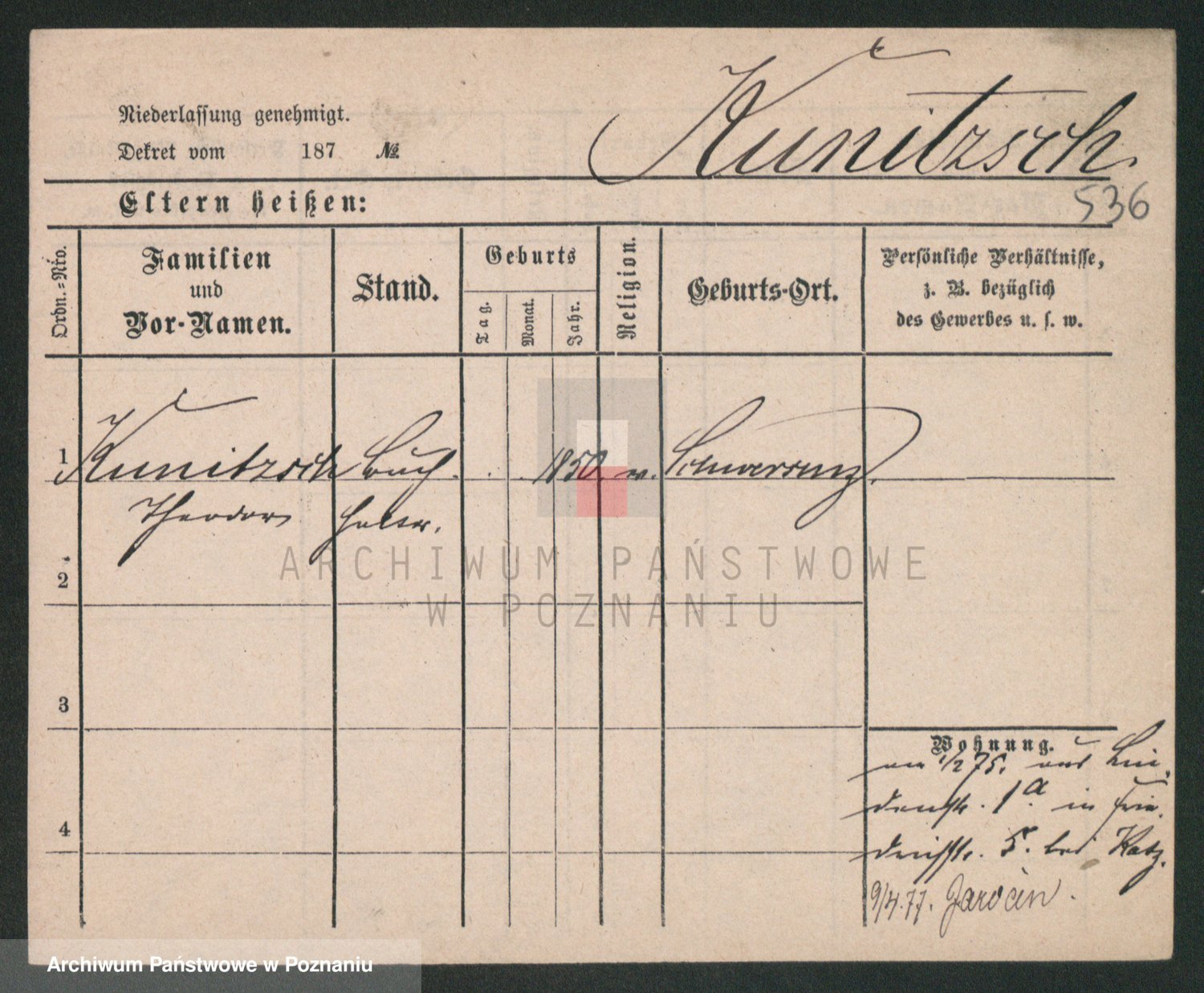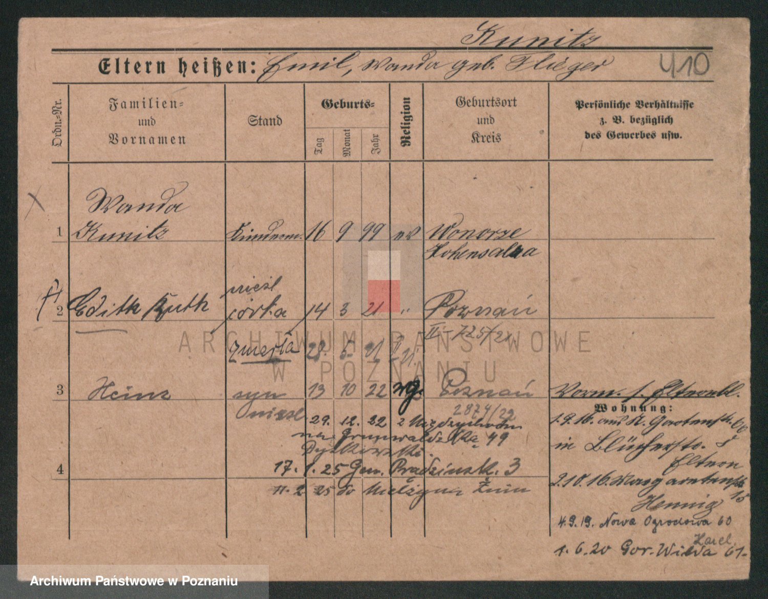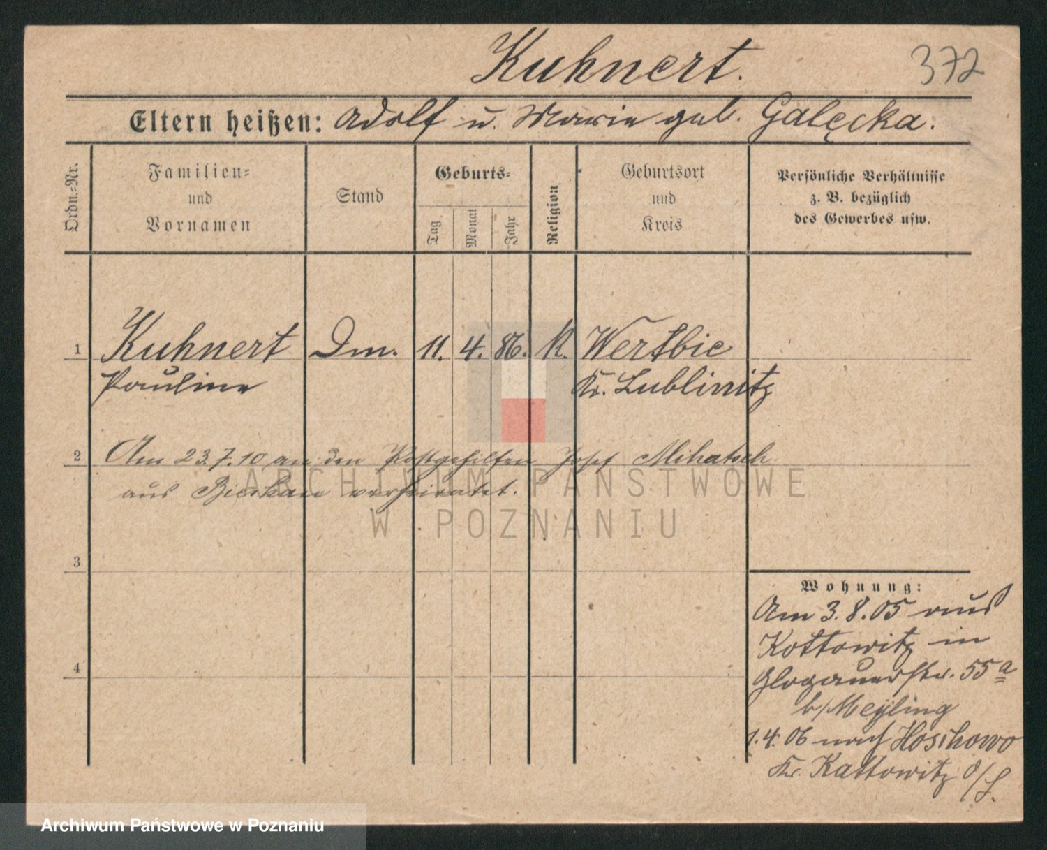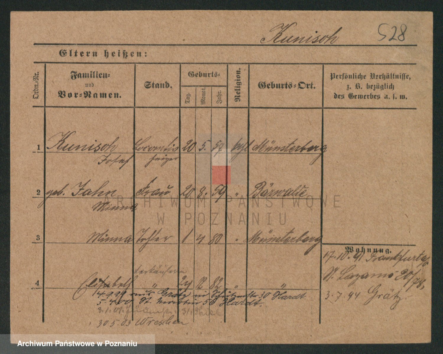 Kunzleben z d. Kömer 1. voto Zarniko, Friederike