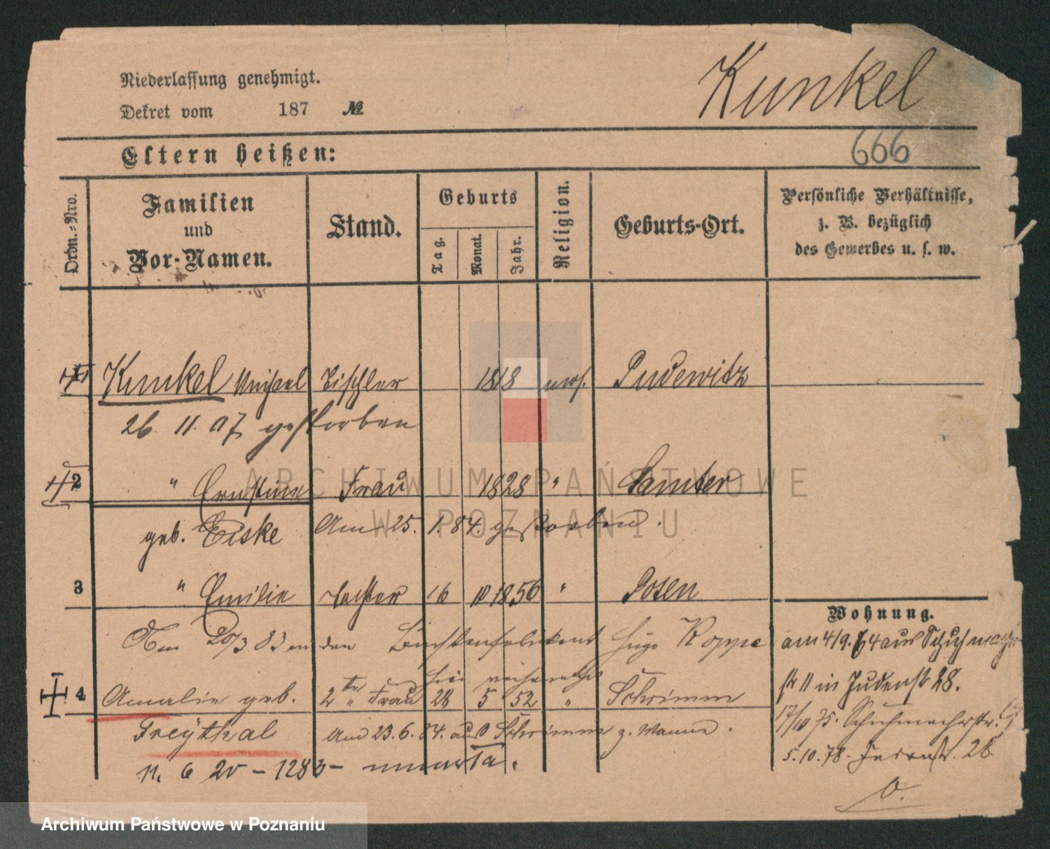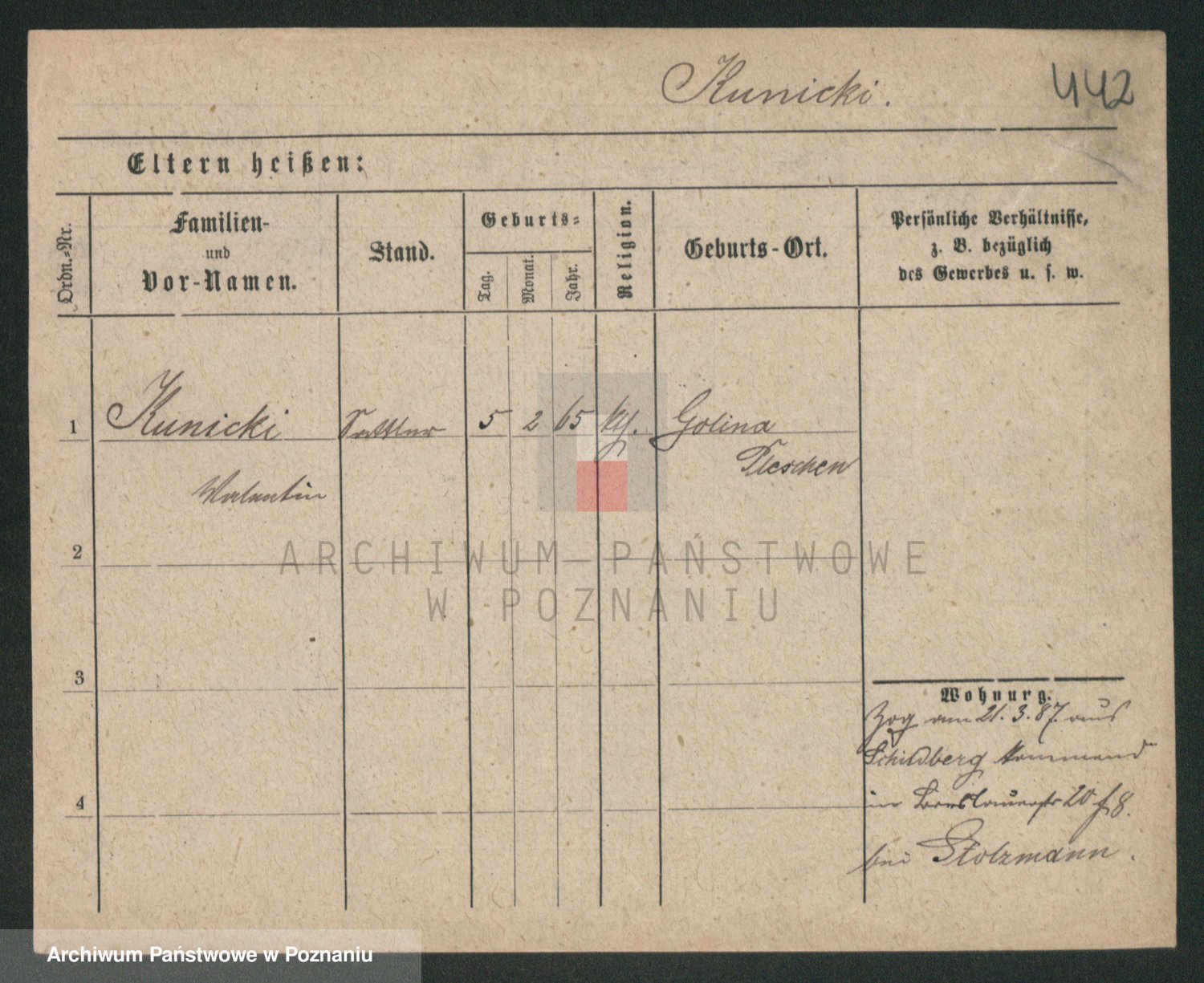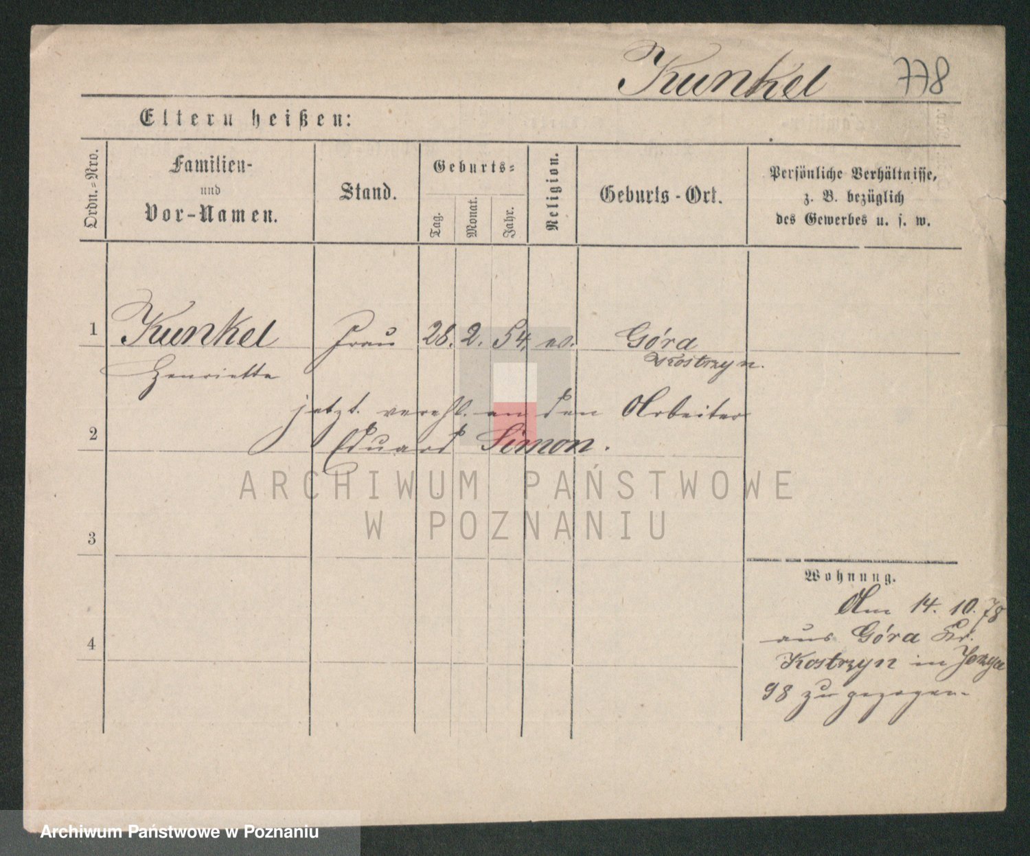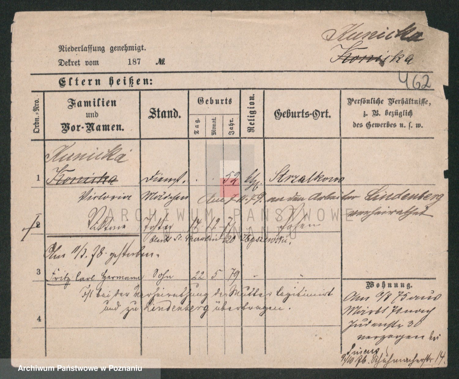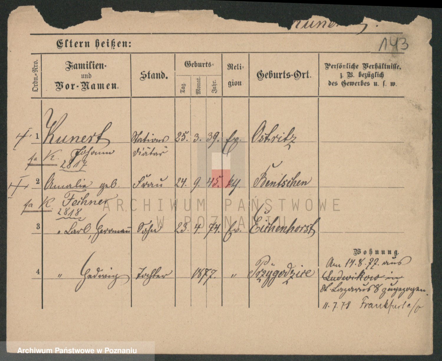 Kunzleben z d. Kömer 1. voto Zarniko, Friederike