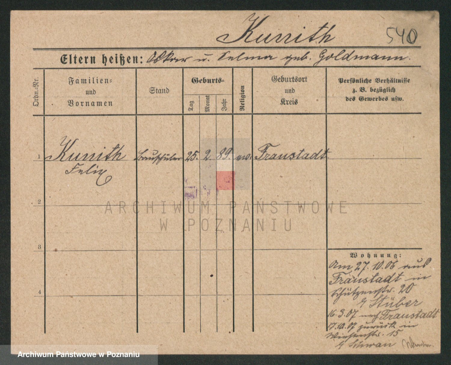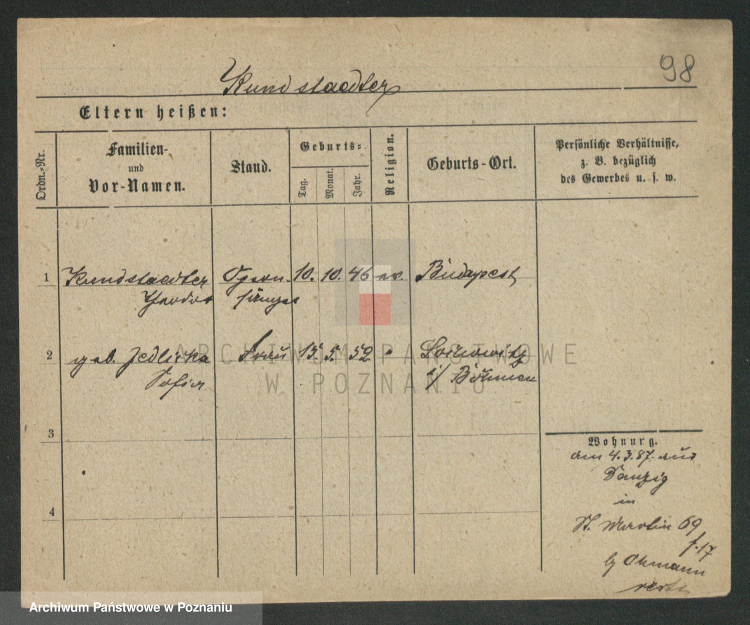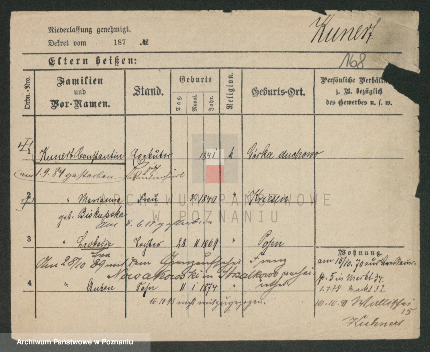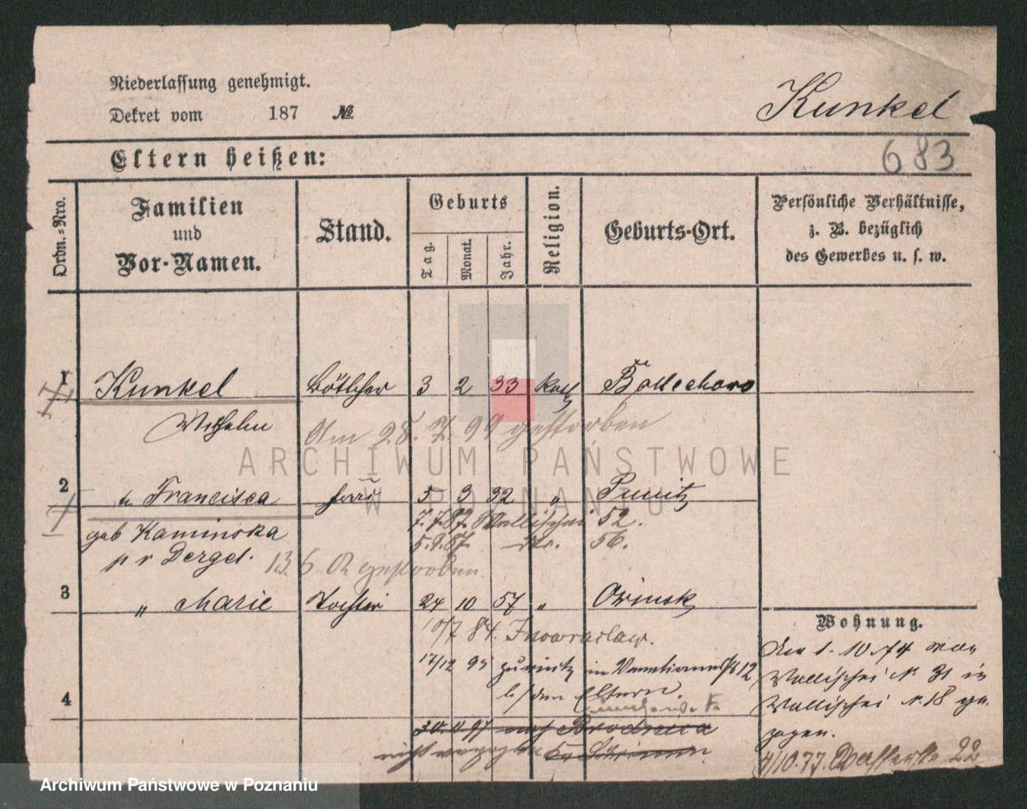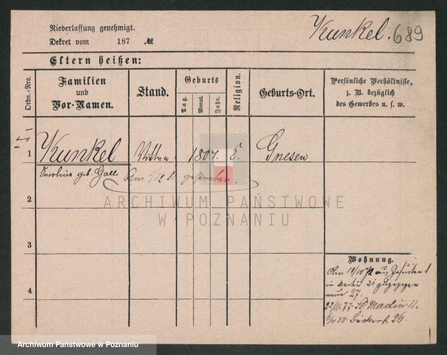 Kunzleben z d. Kömer 1. voto Zarniko, Friederike