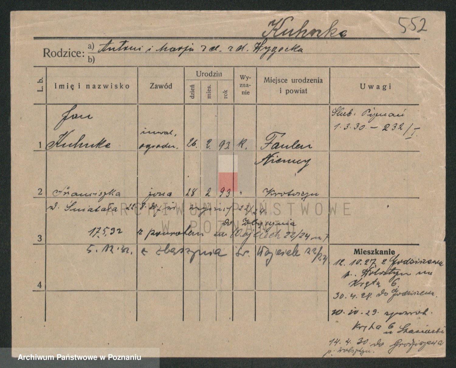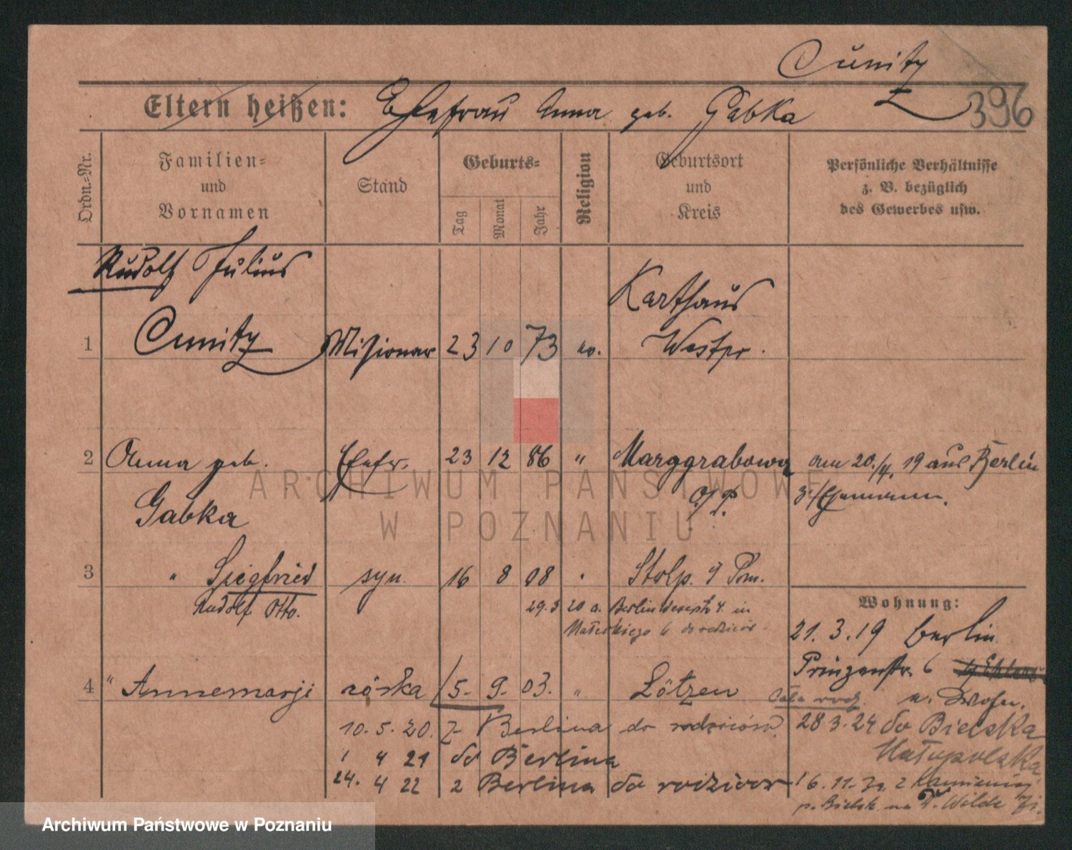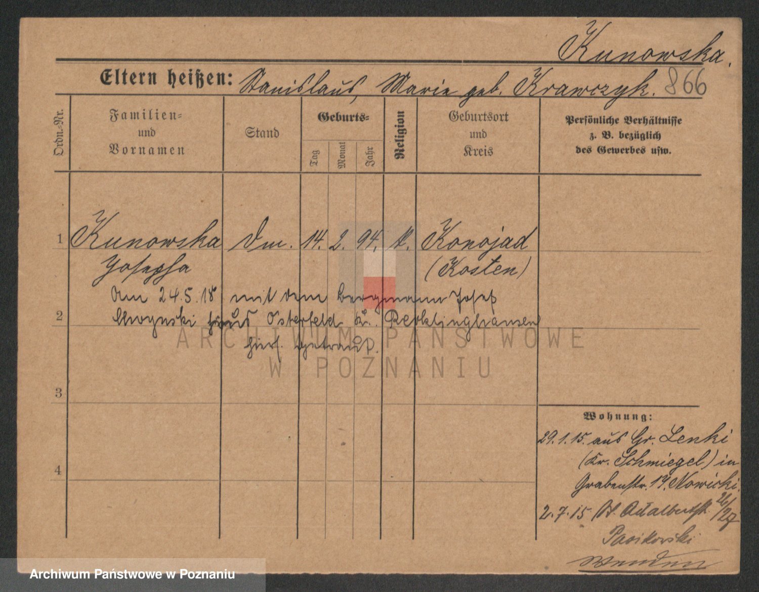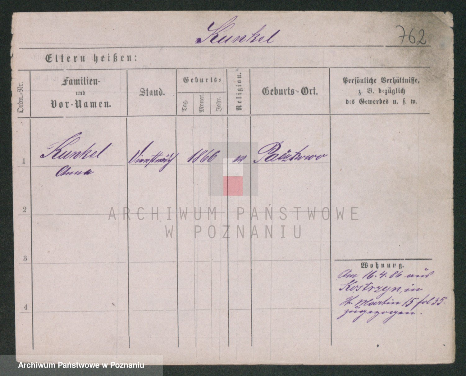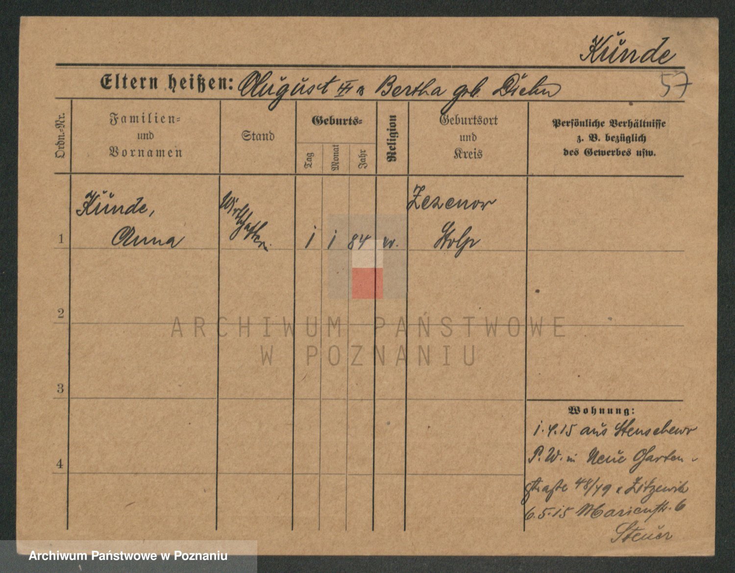 Kunzke z d. Schulz, Anna