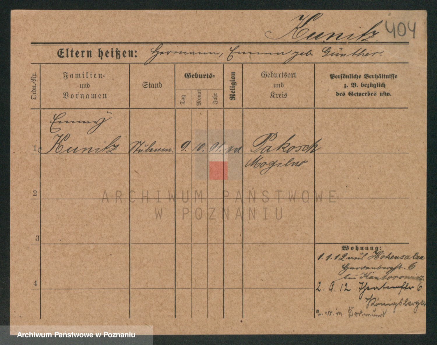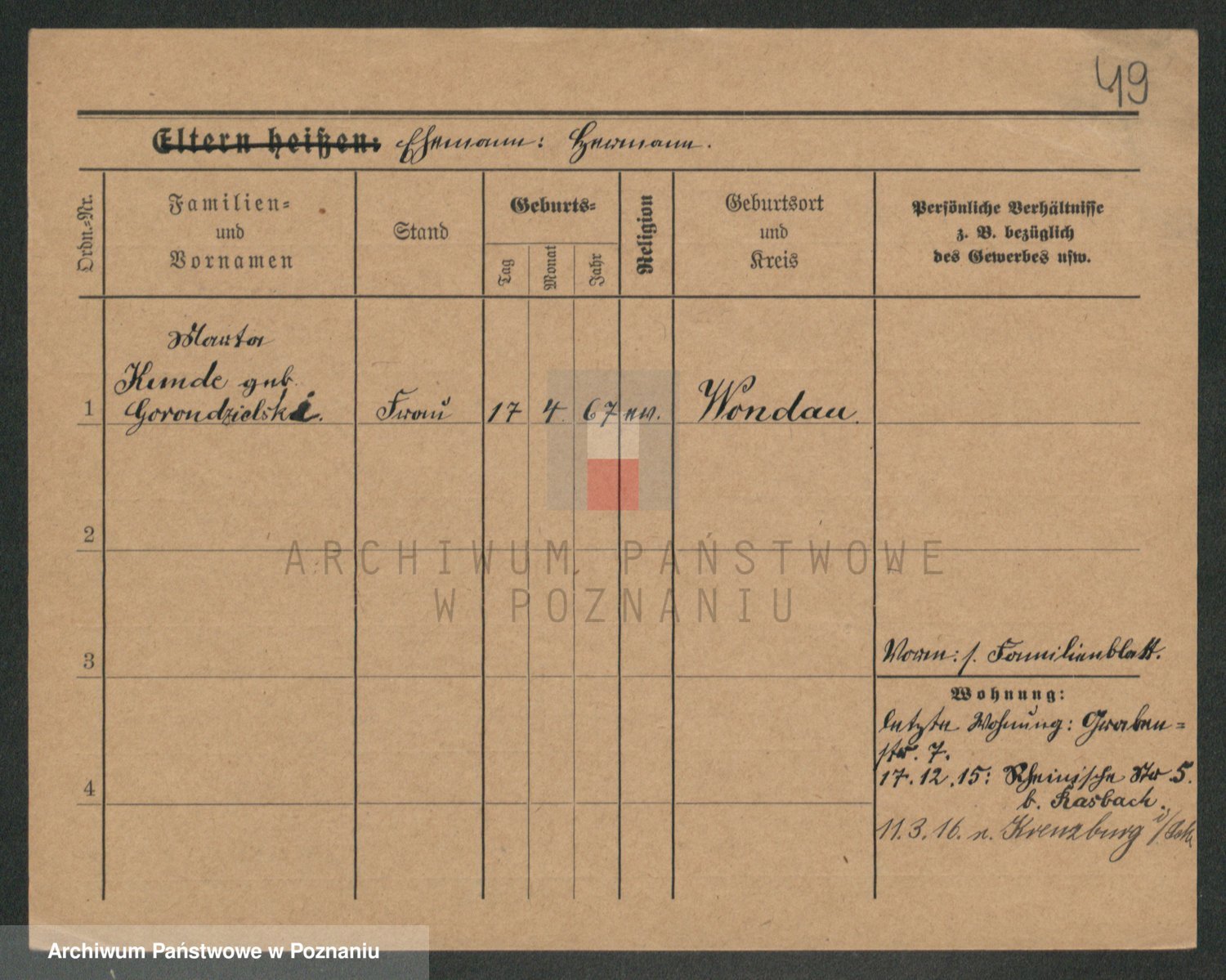 Kunde z d. Grzondzielska, Martha