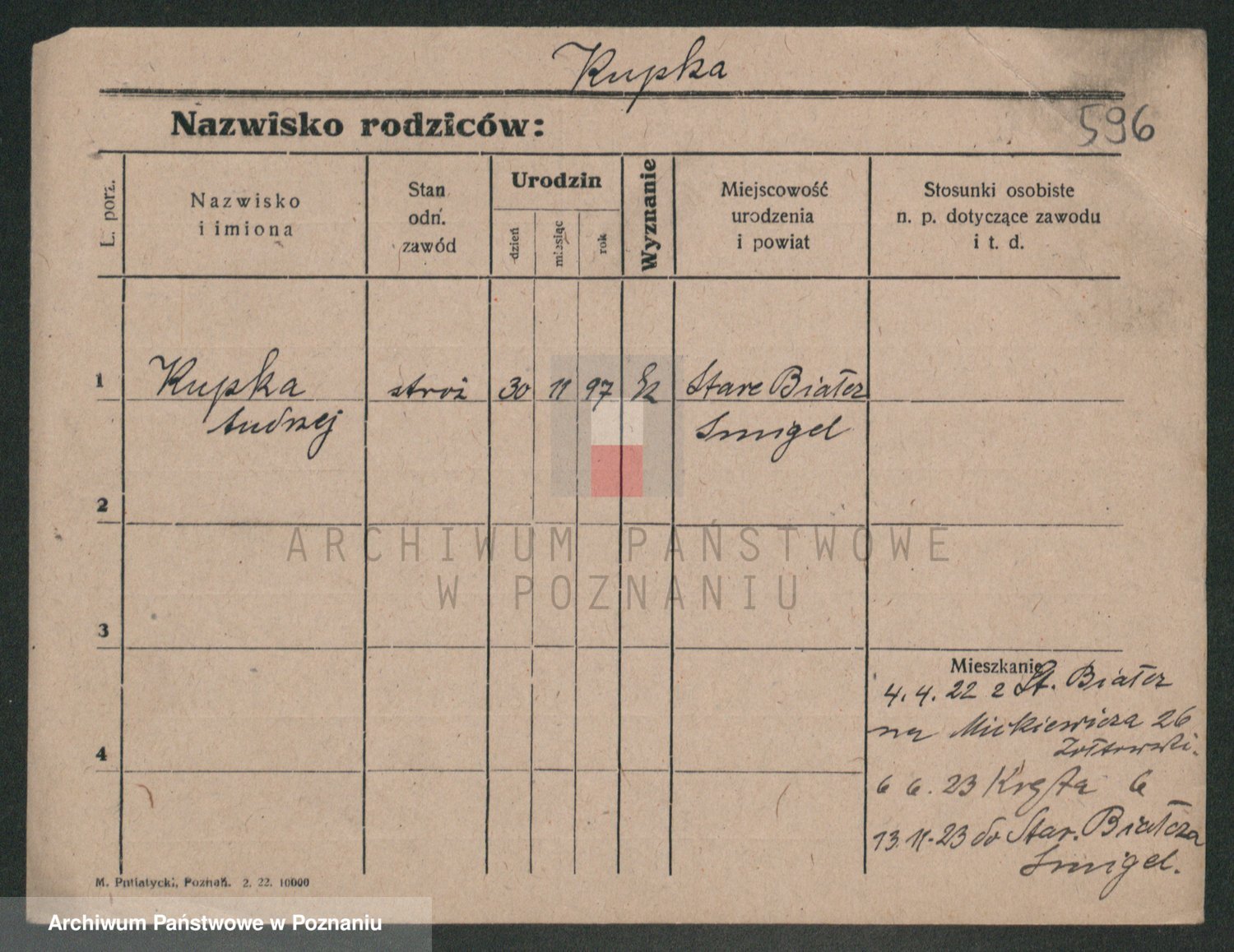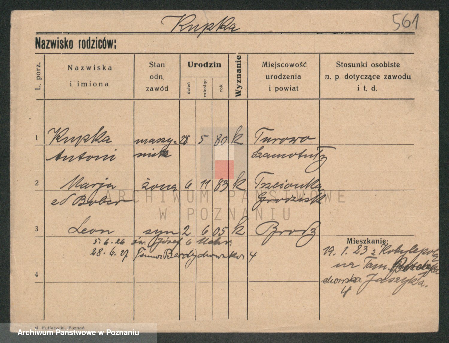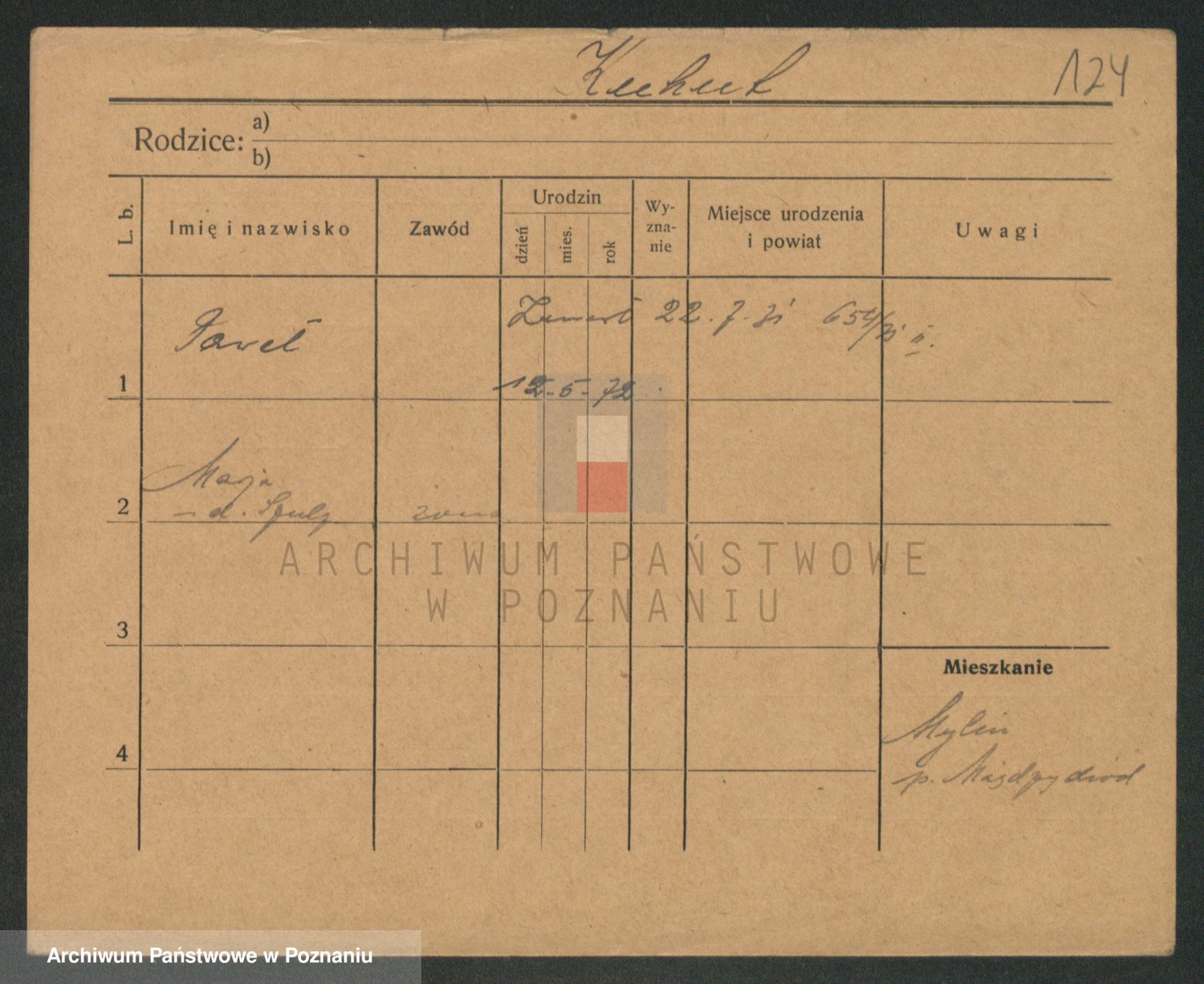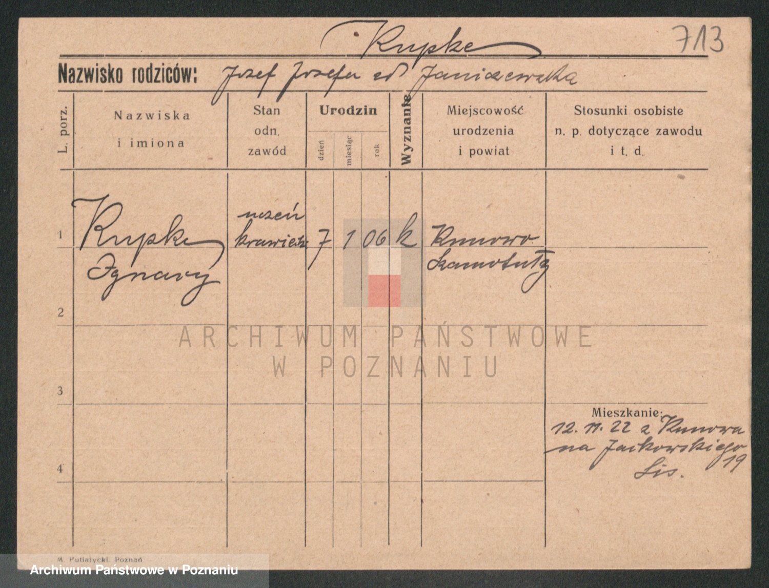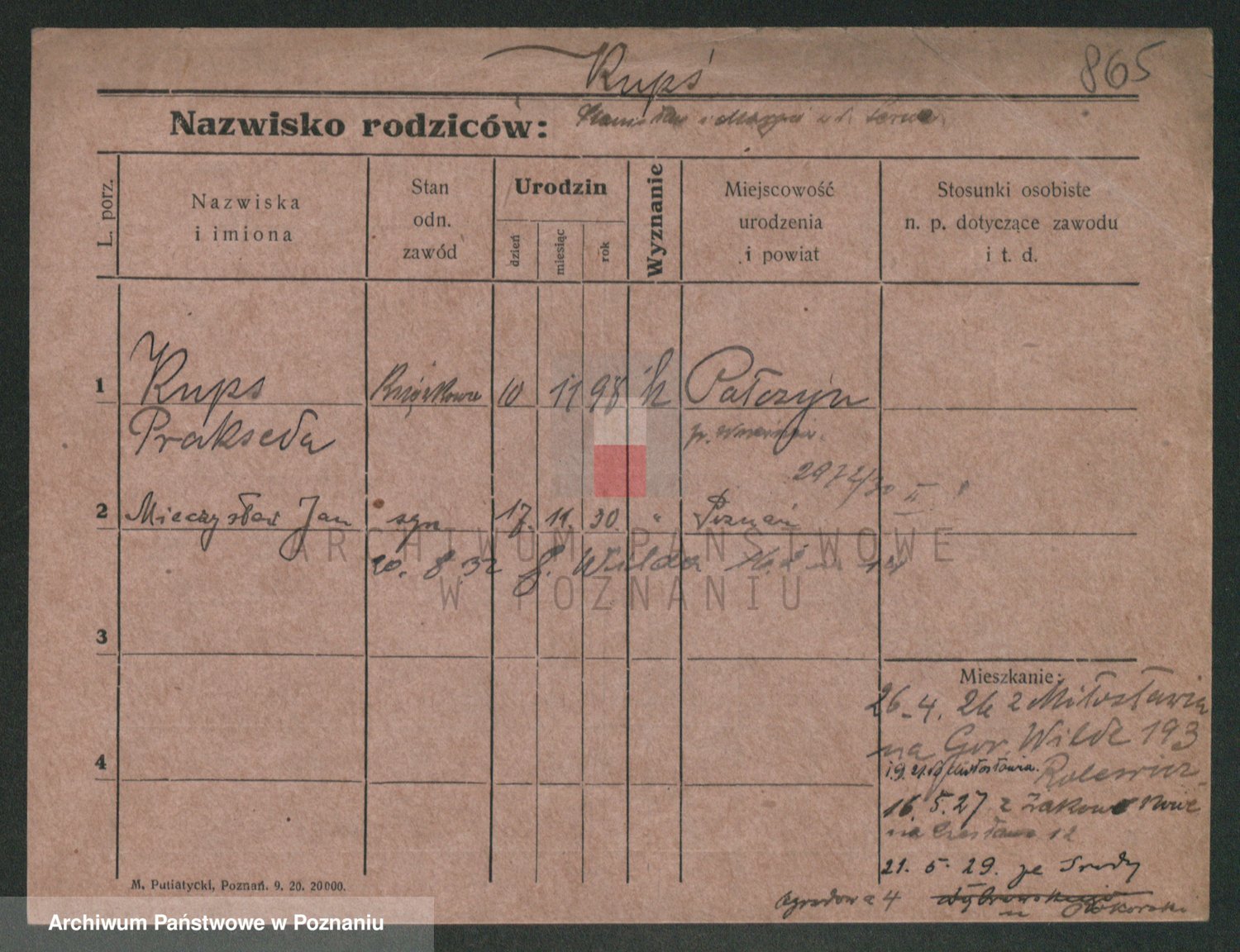 Podgląd karty osobowej dostępny jest po kliknięciu na nazwisko lub ikonkę karty. Można dokonywać powiększenia (ikony na górze) lub przechodzić między kolejnymi skanami (strzałki po bokach).