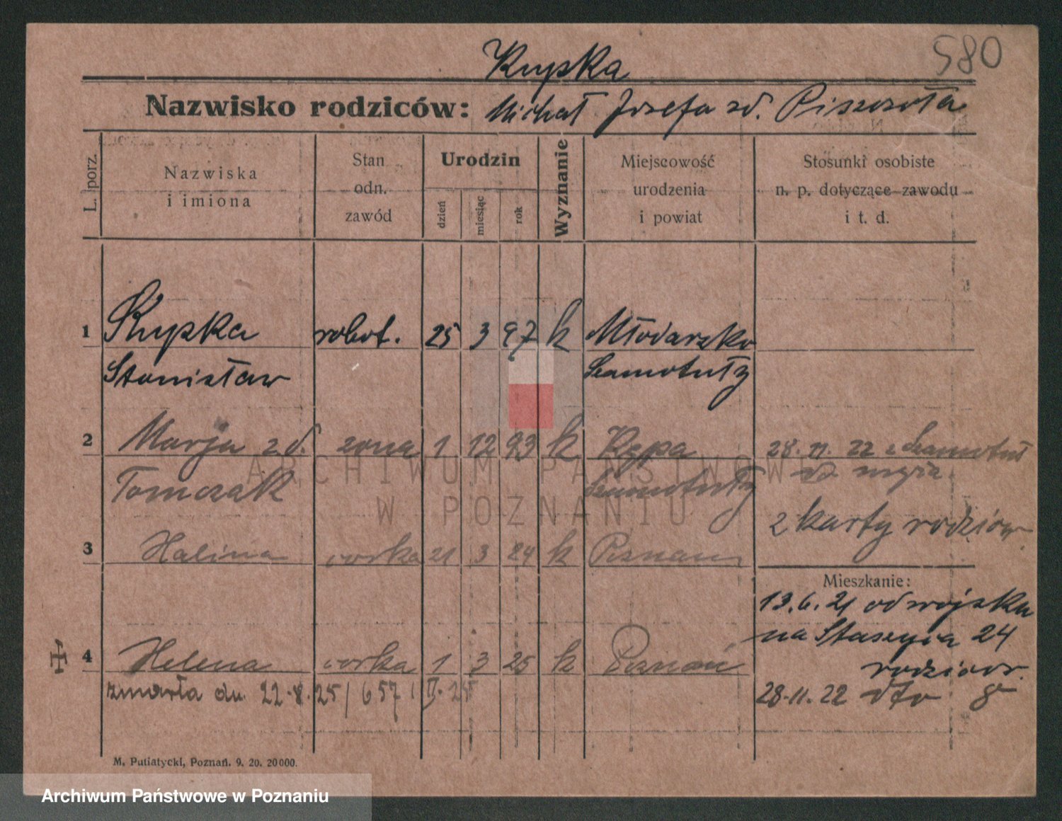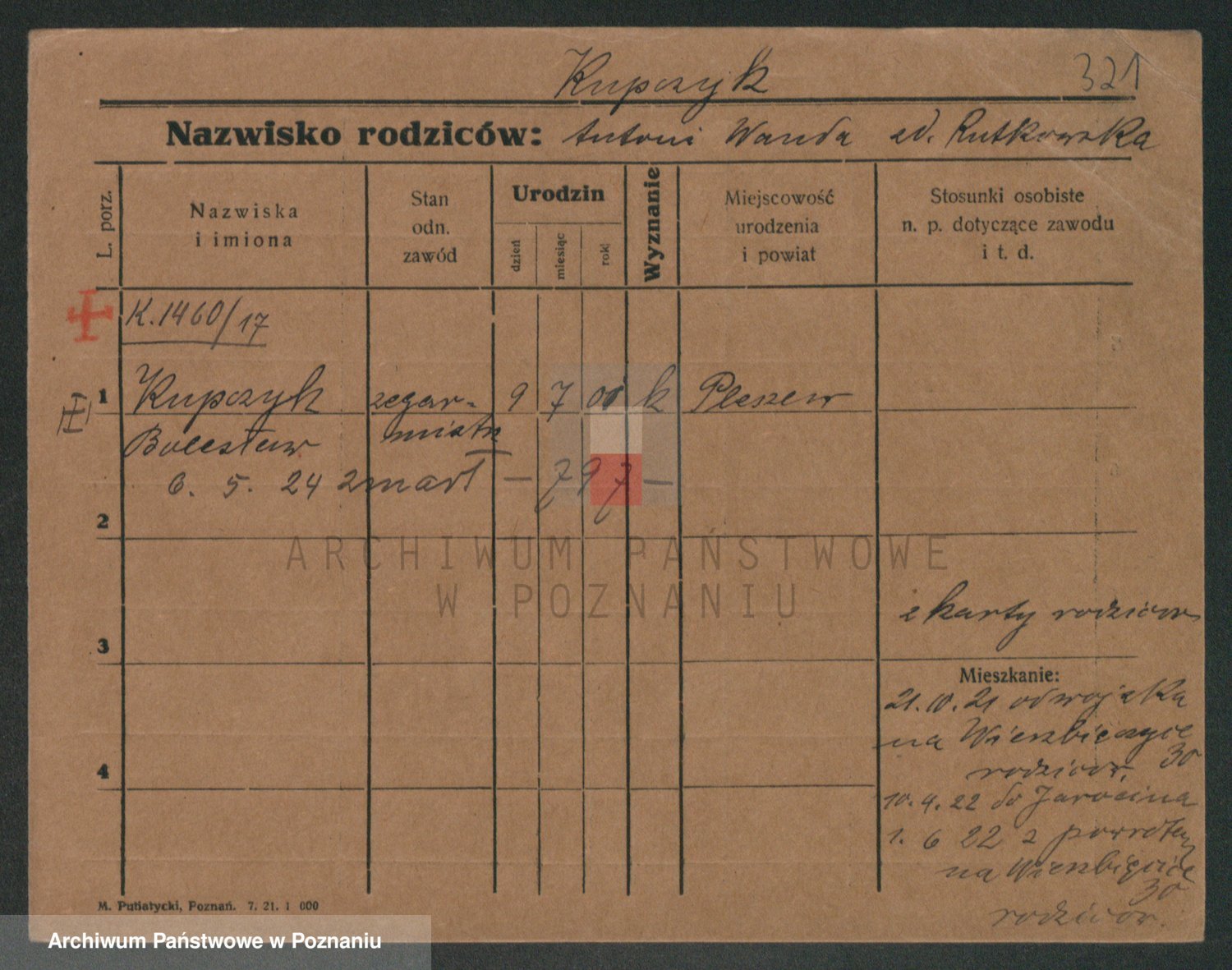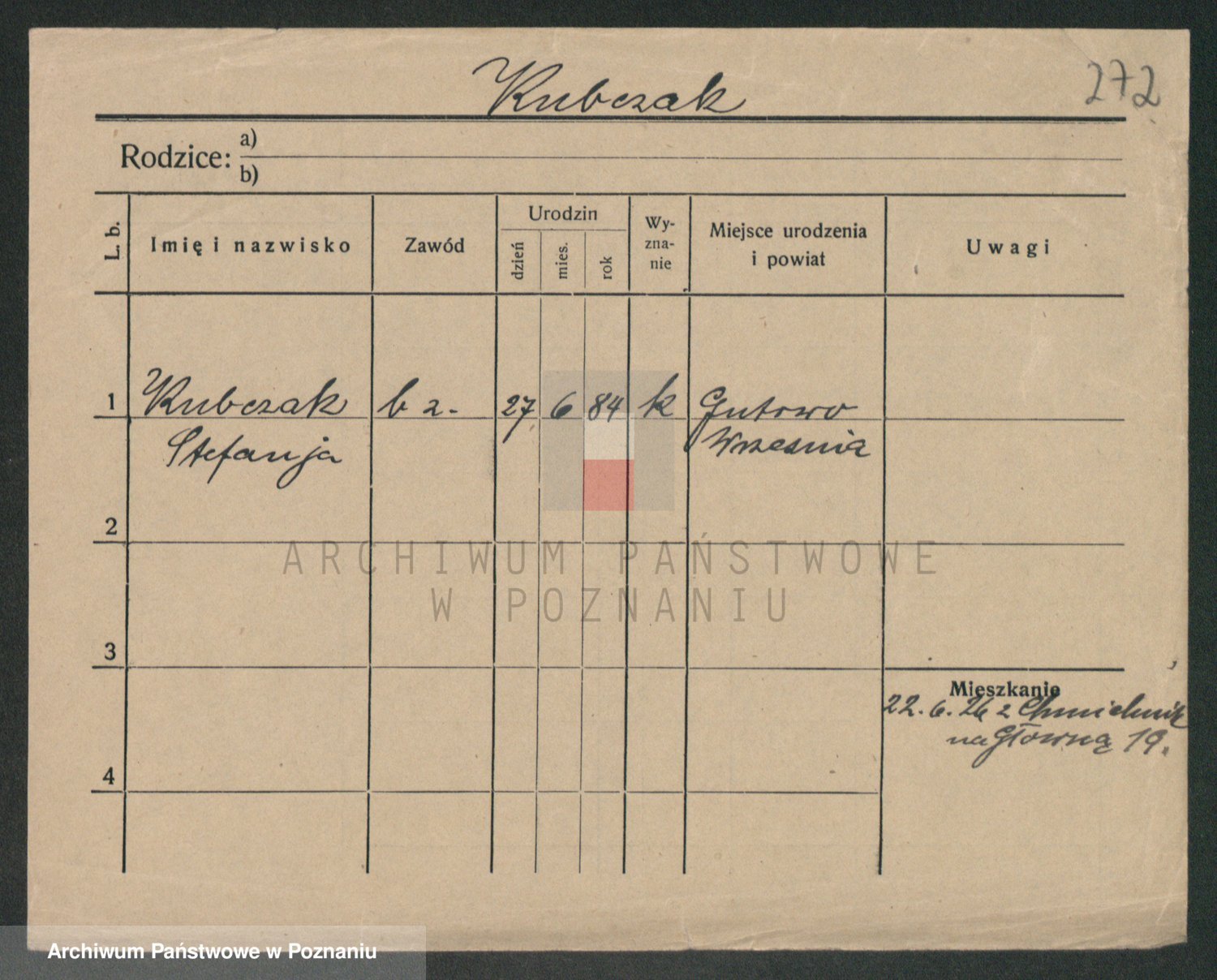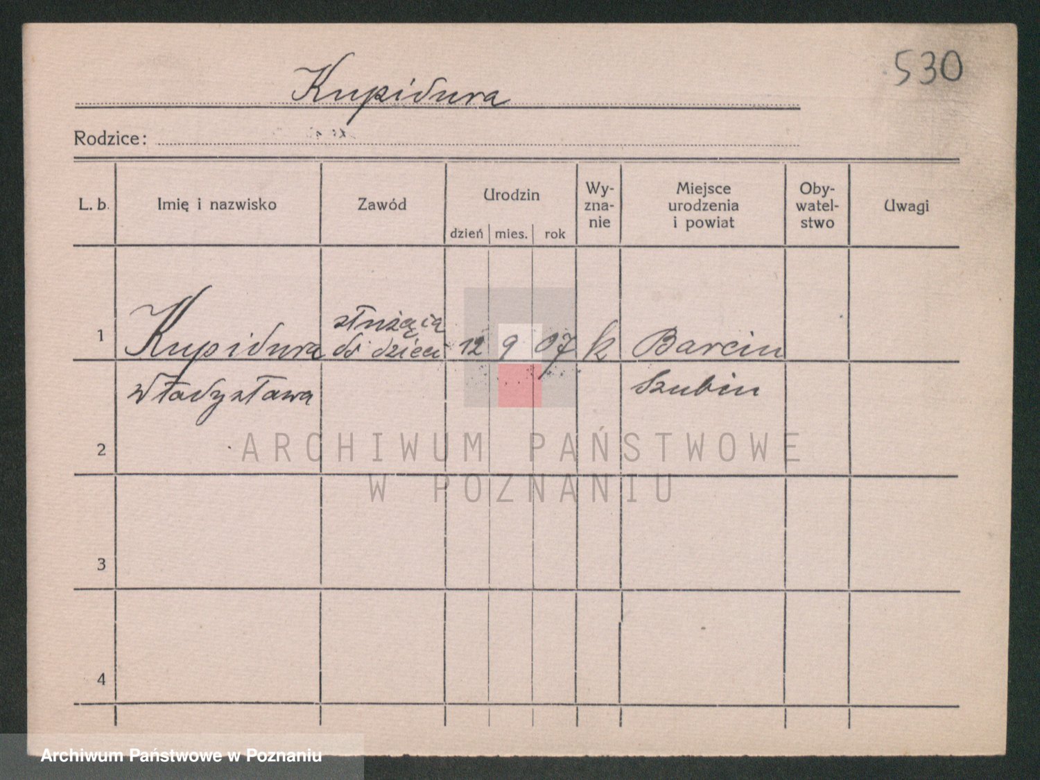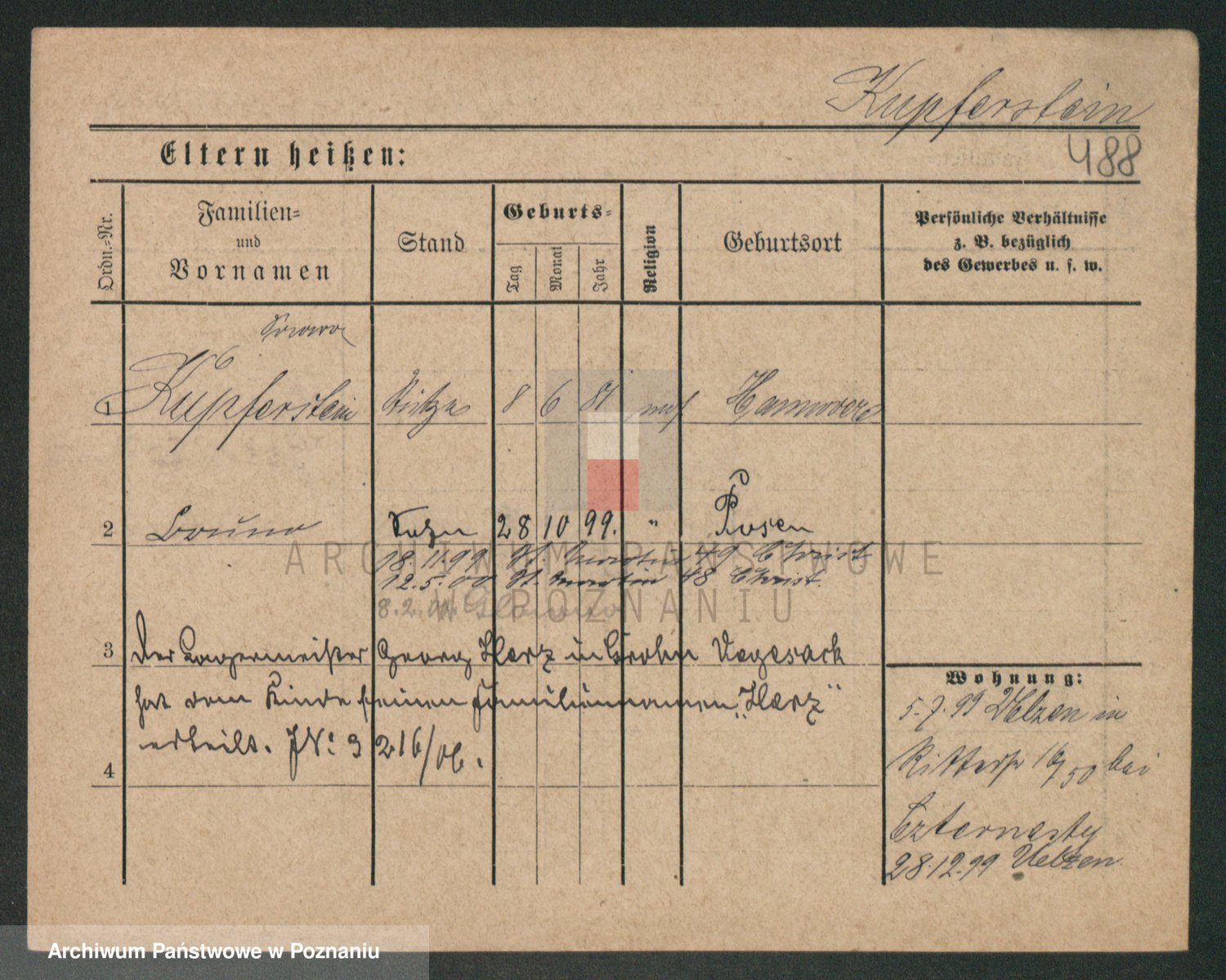 Podgląd karty osobowej dostępny jest po kliknięciu na nazwisko lub ikonkę karty. Można dokonywać powiększenia (ikony na górze) lub przechodzić między kolejnymi skanami (strzałki po bokach).