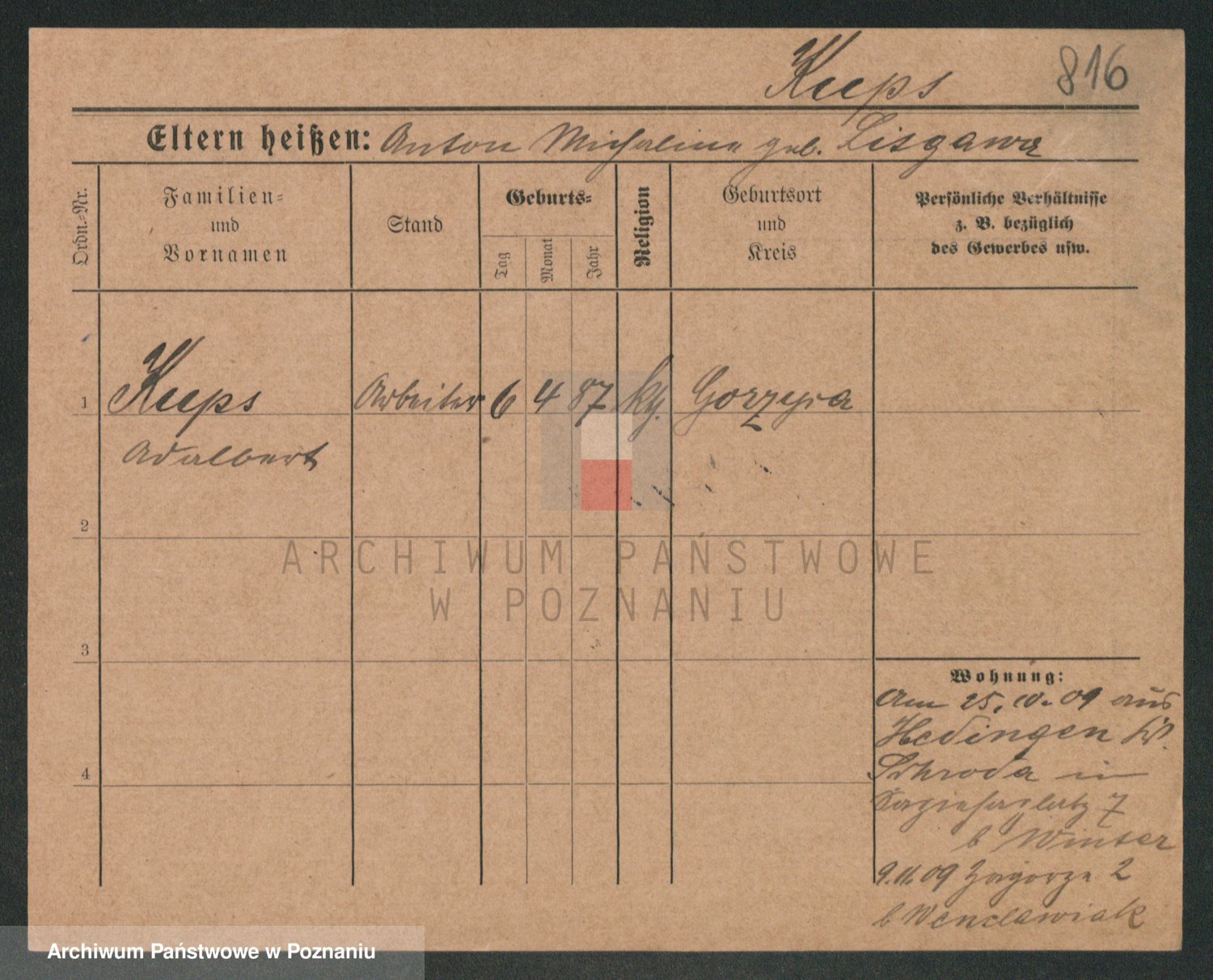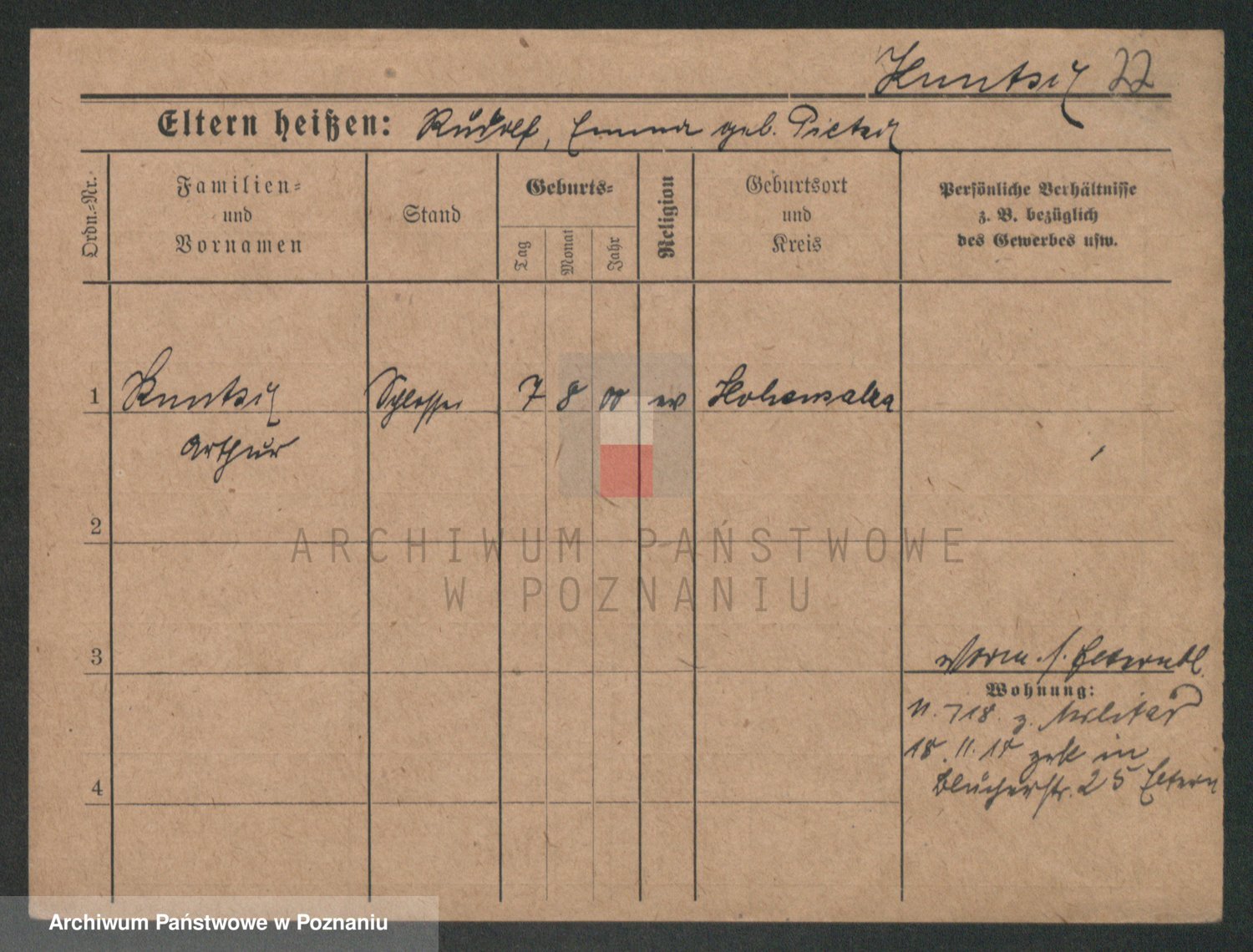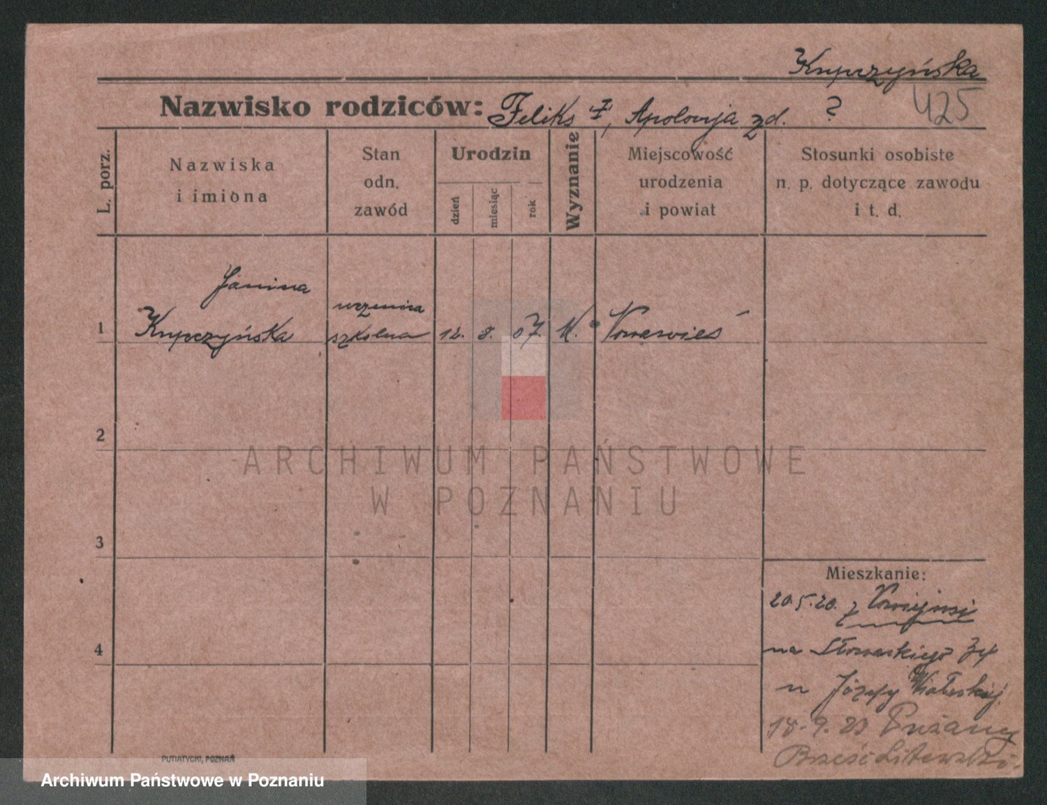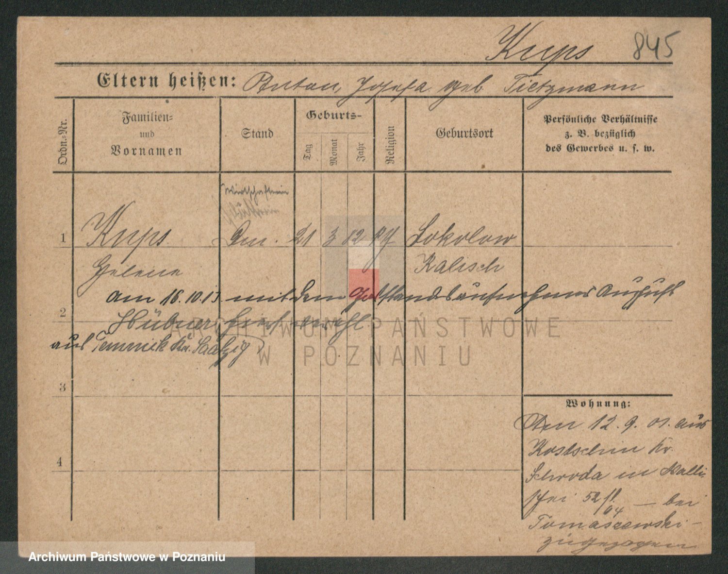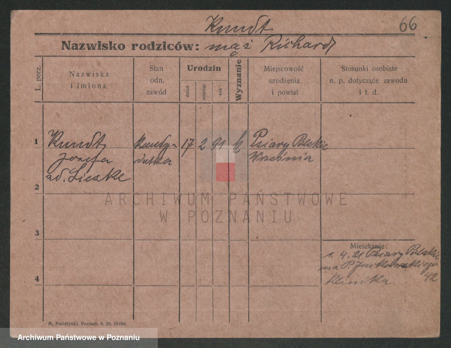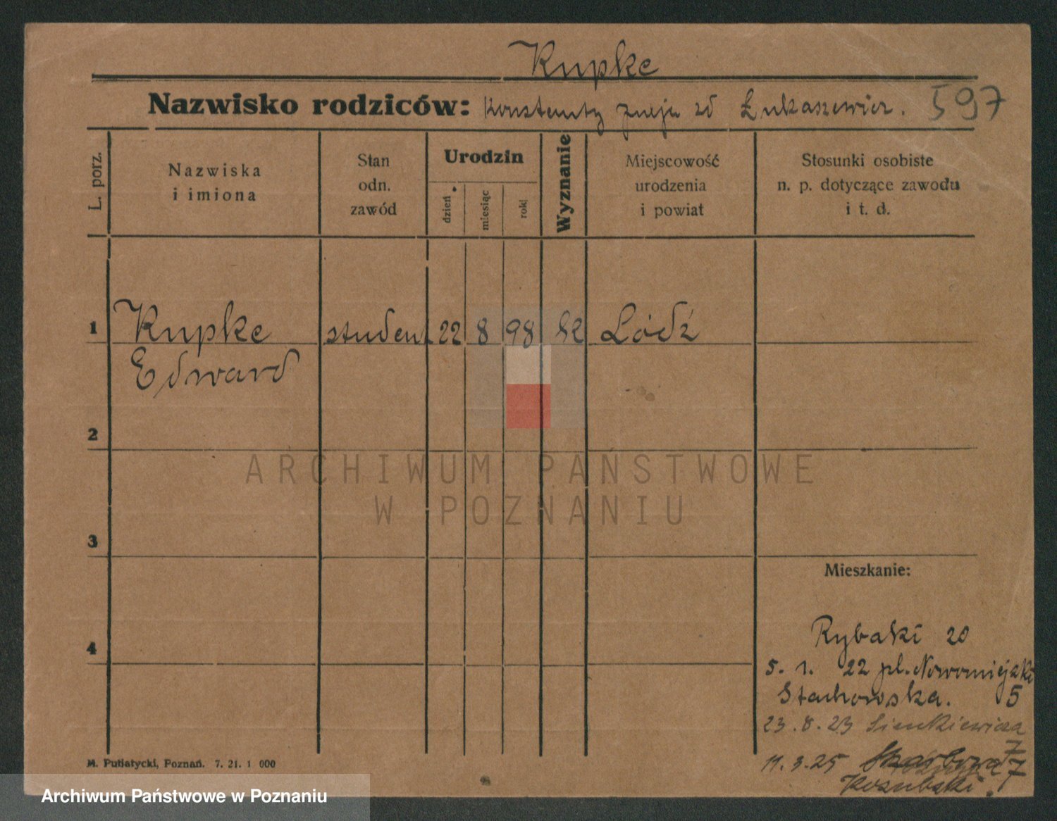 Podgląd karty osobowej dostępny jest po kliknięciu na nazwisko lub ikonkę karty. Można dokonywać powiększenia (ikony na górze) lub przechodzić między kolejnymi skanami (strzałki po bokach).