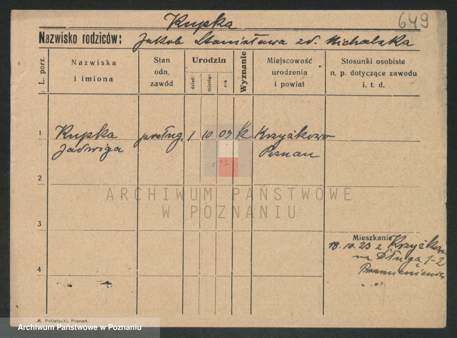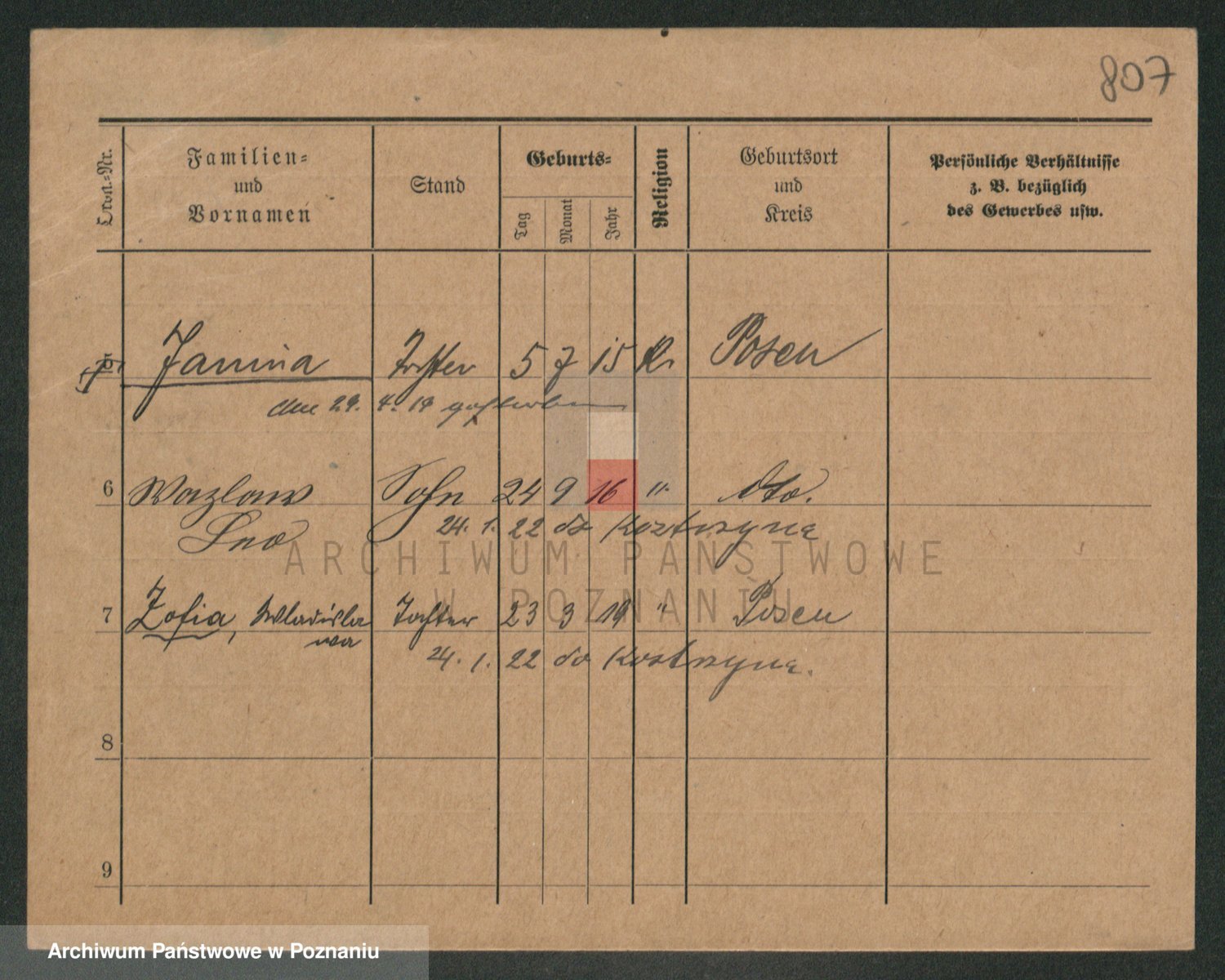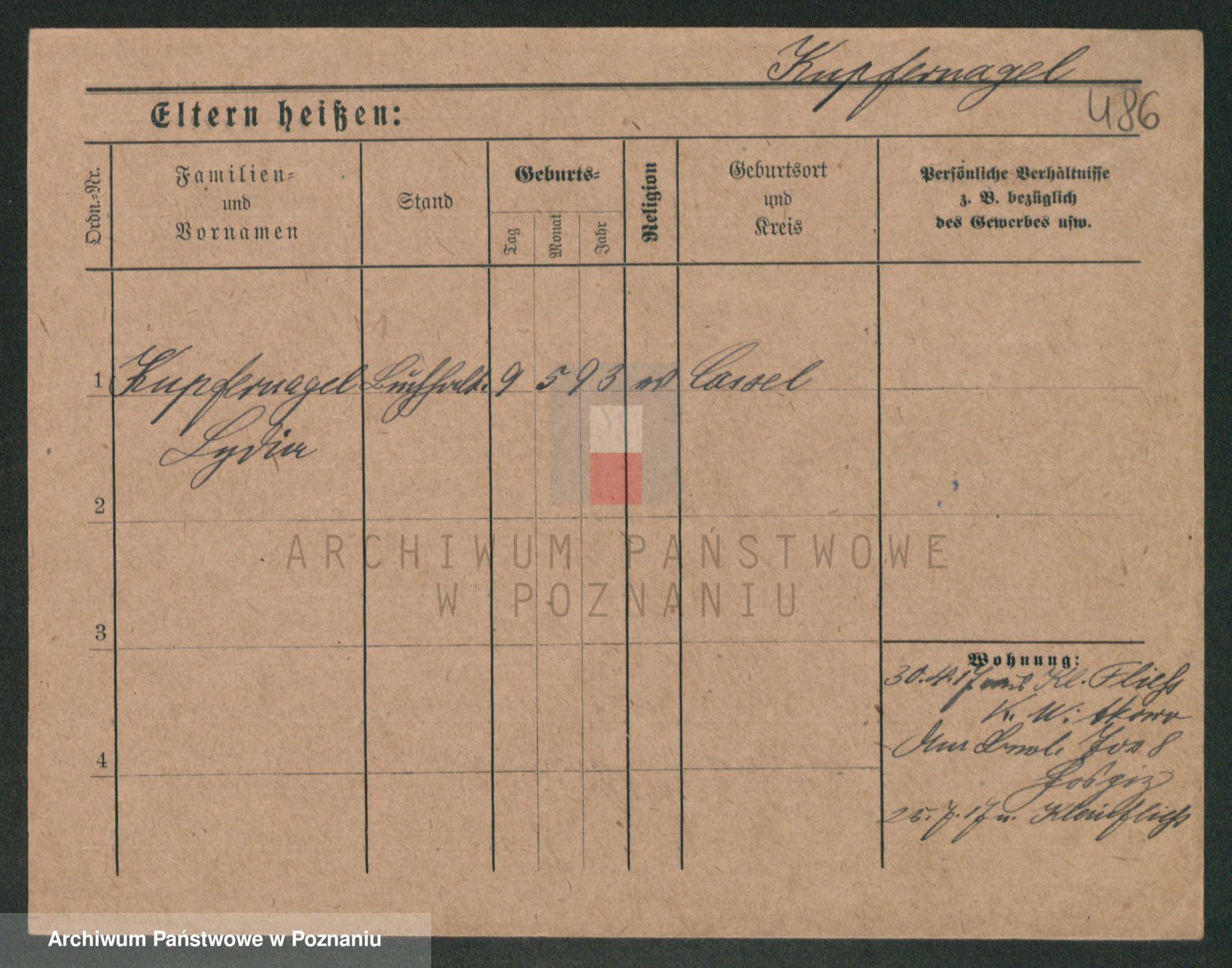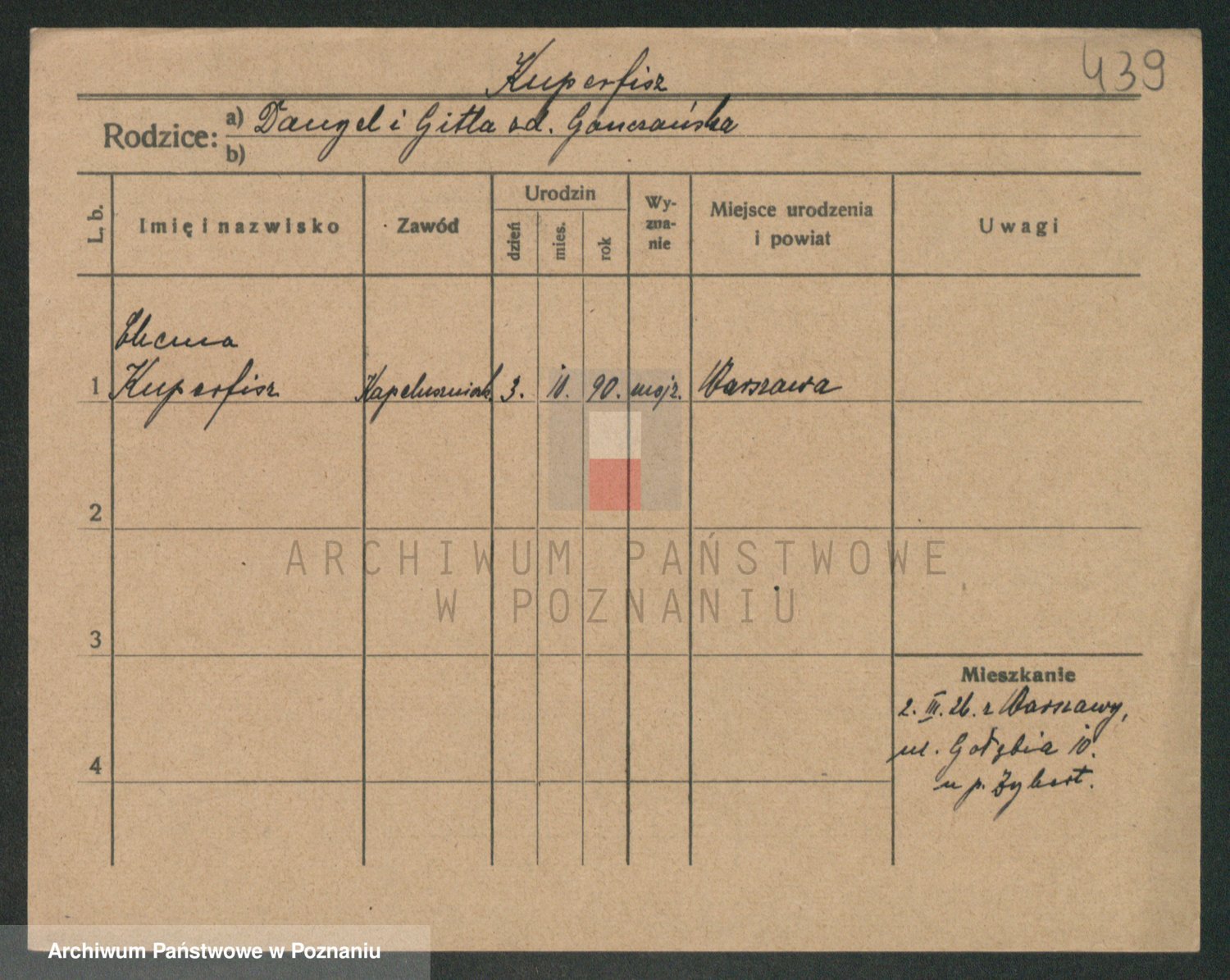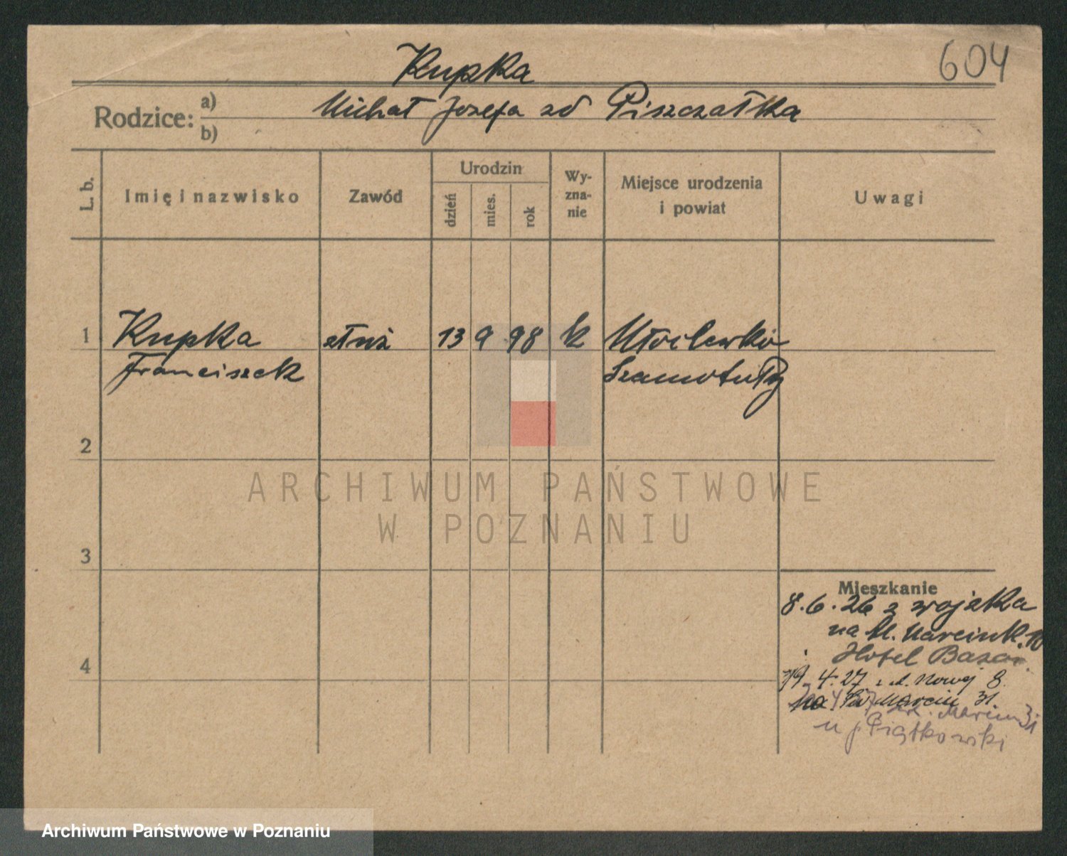 Podgląd karty osobowej dostępny jest po kliknięciu na nazwisko lub ikonkę karty. Można dokonywać powiększenia (ikony na górze) lub przechodzić między kolejnymi skanami (strzałki po bokach).