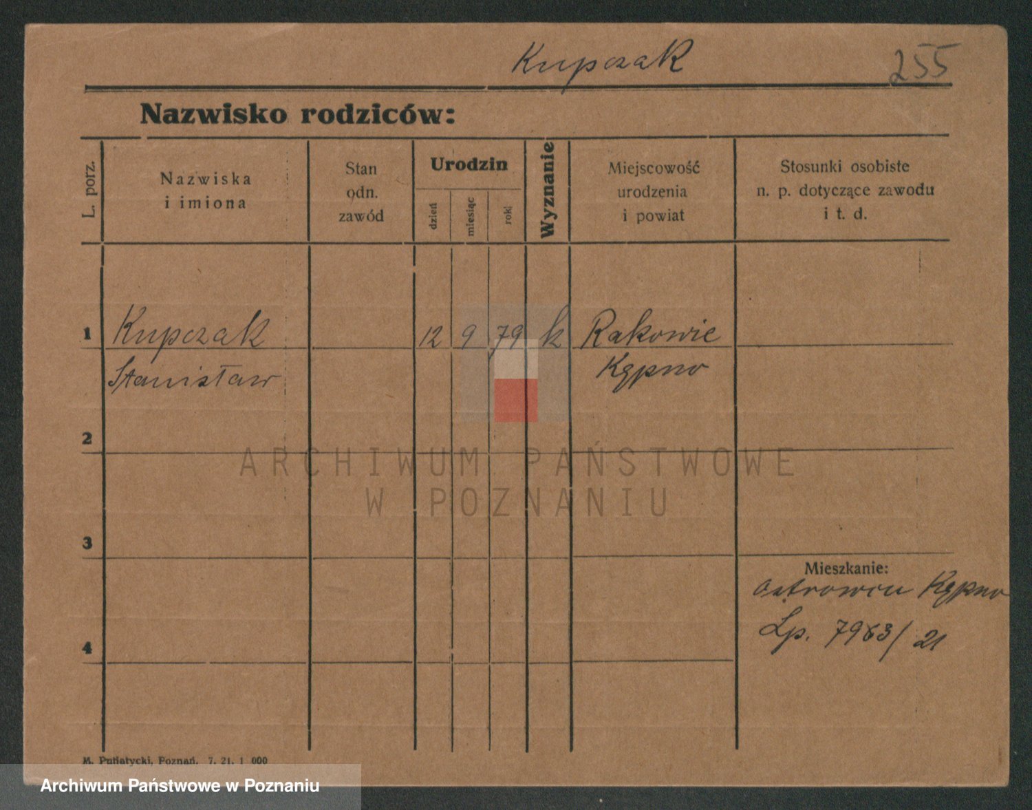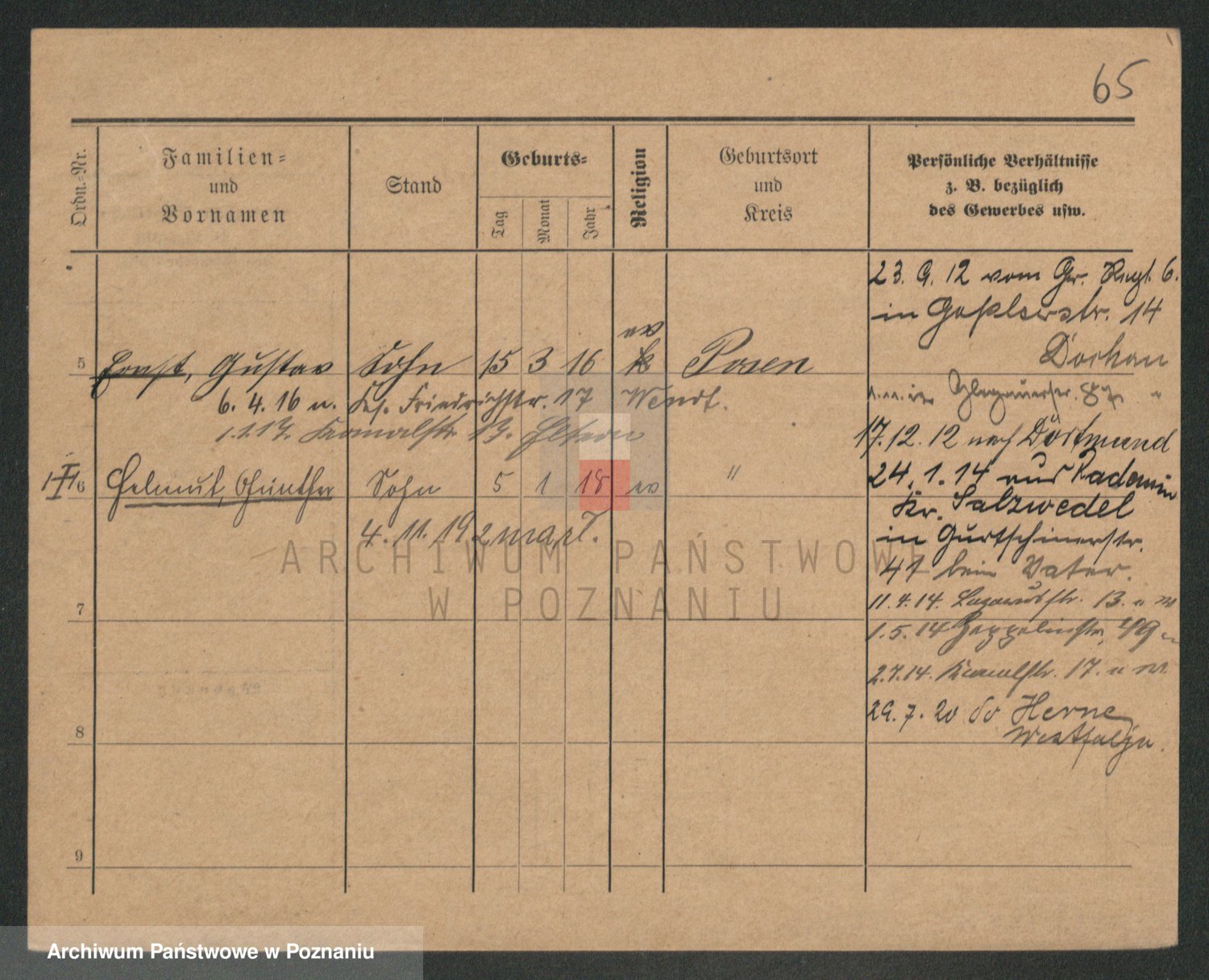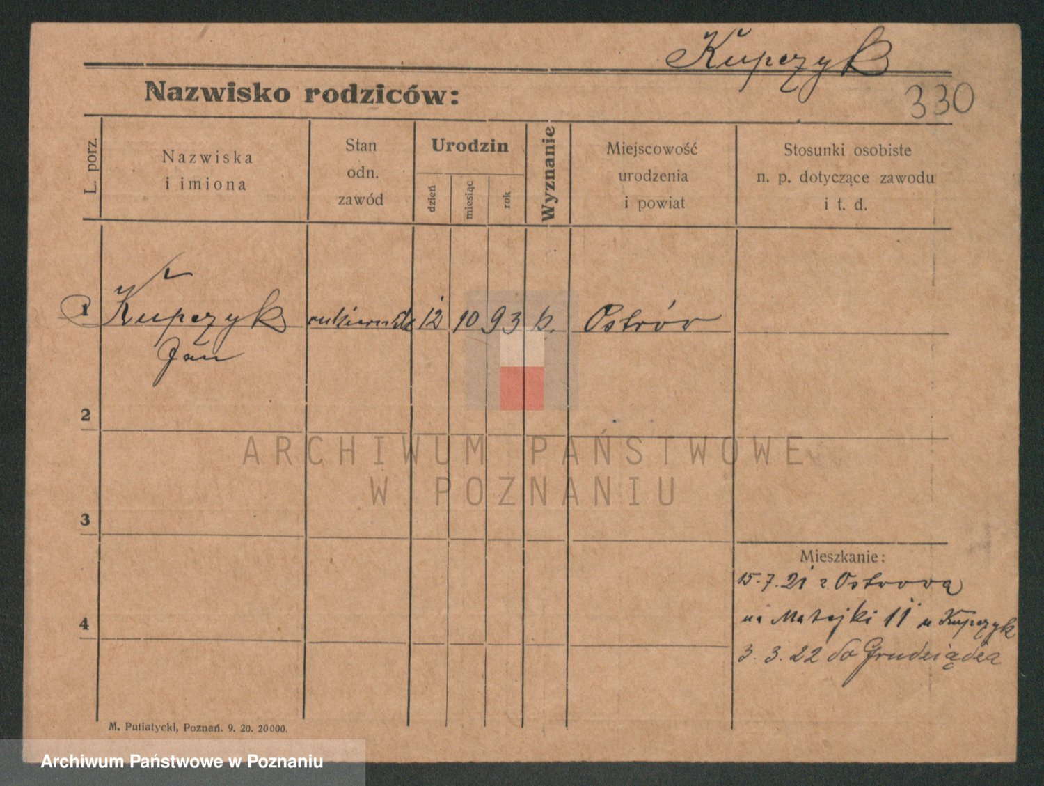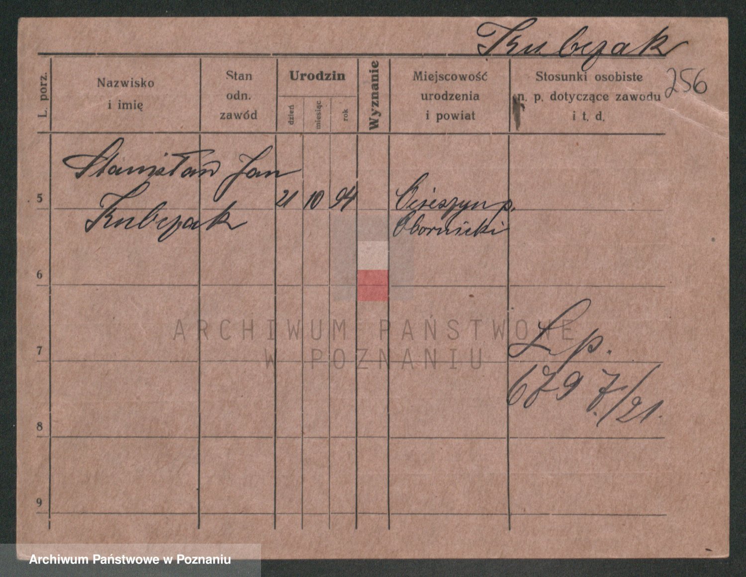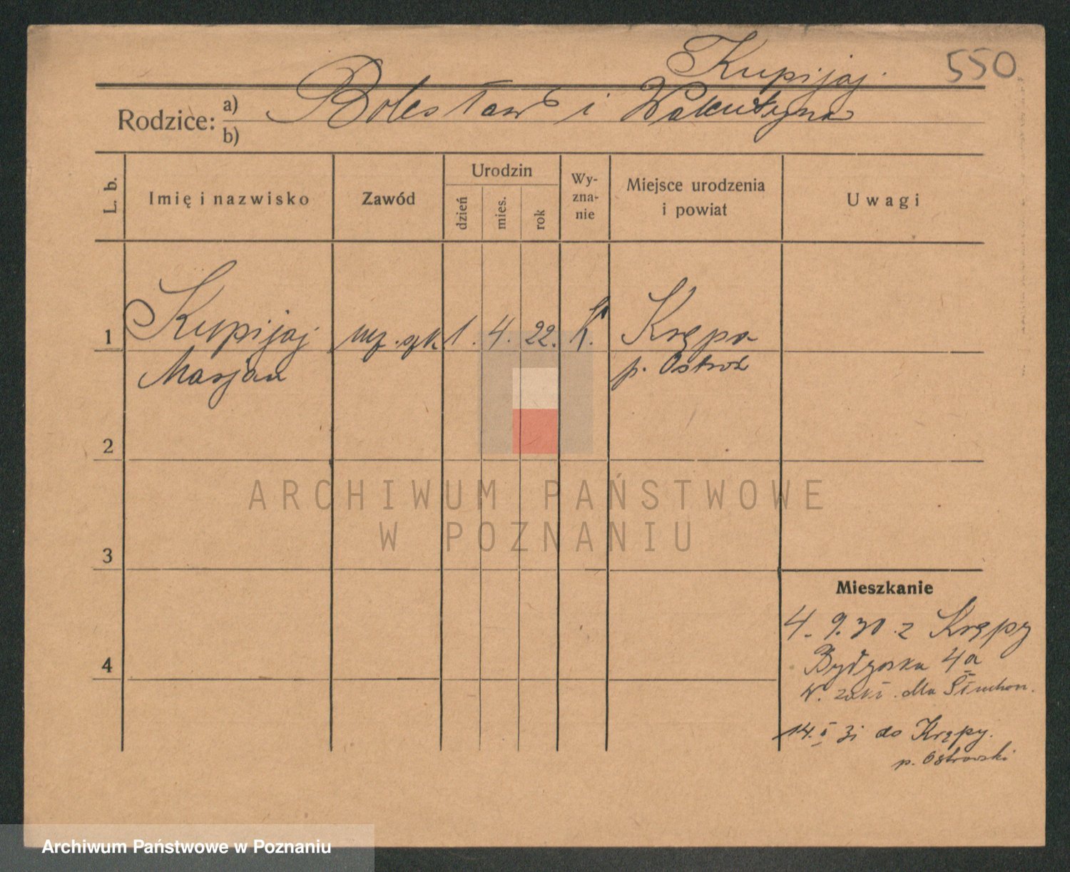 Podgląd karty osobowej dostępny jest po kliknięciu na nazwisko lub ikonkę karty. Można dokonywać powiększenia (ikony na górze) lub przechodzić między kolejnymi skanami (strzałki po bokach).