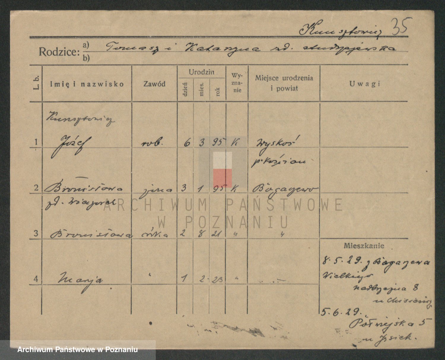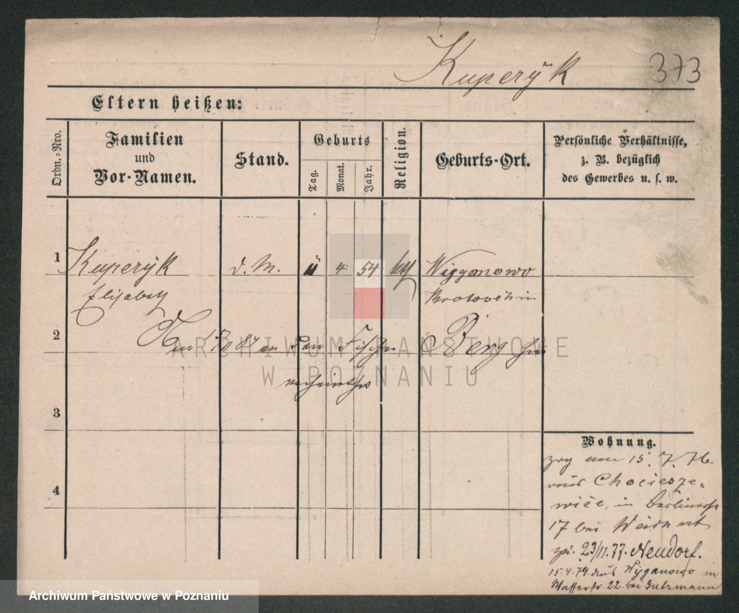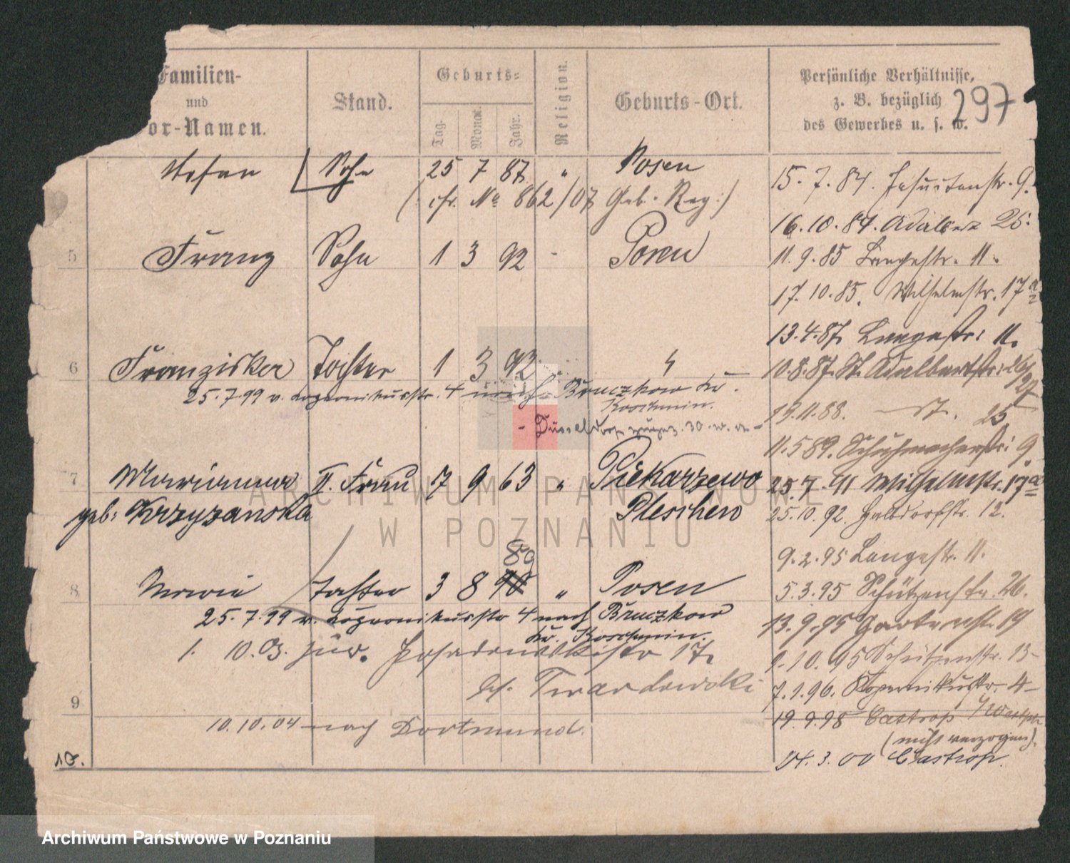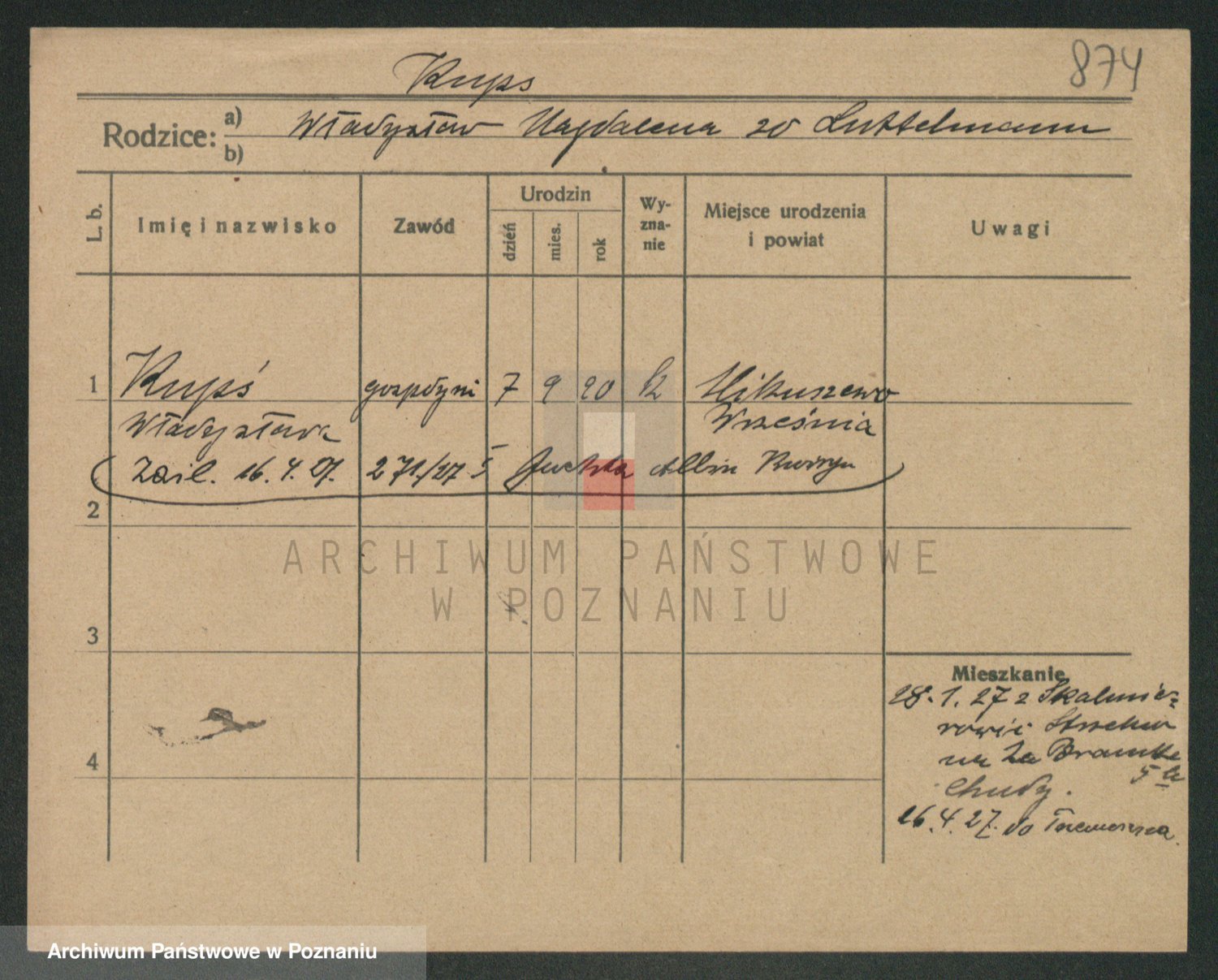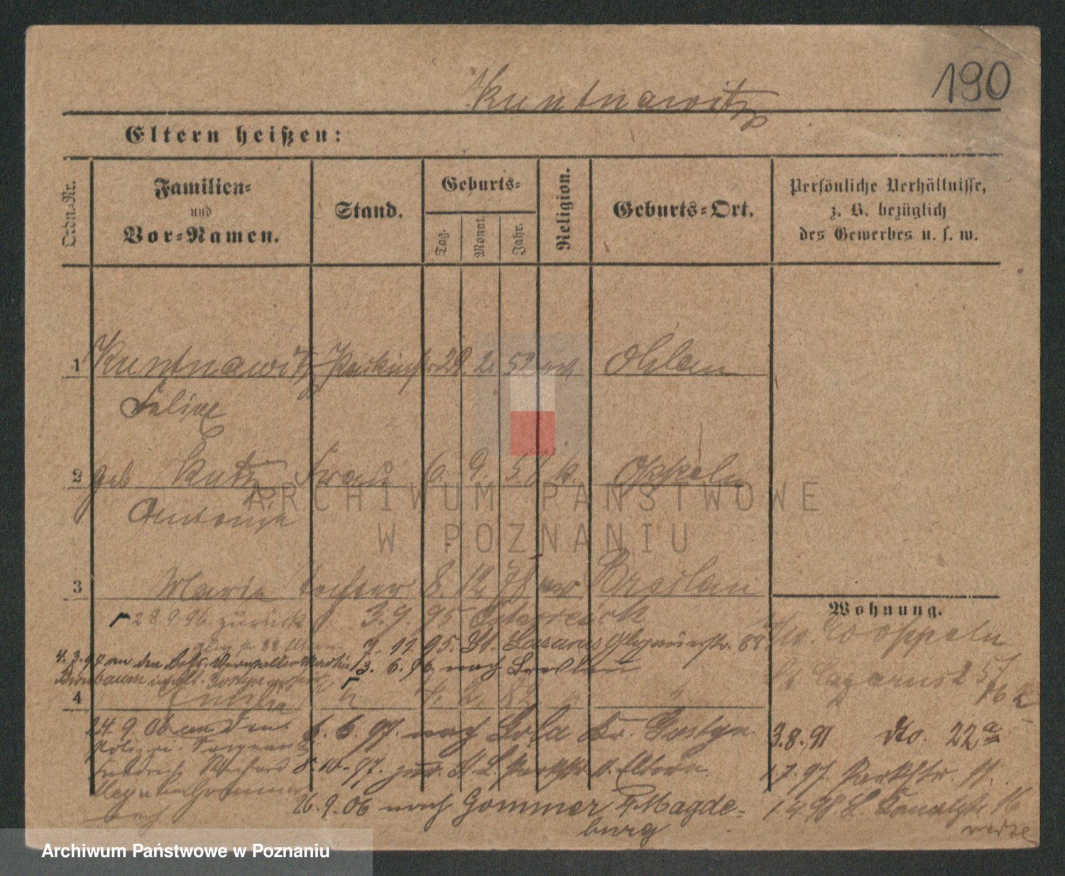 Podgląd karty osobowej dostępny jest po kliknięciu na nazwisko lub ikonkę karty. Można dokonywać powiększenia (ikony na górze) lub przechodzić między kolejnymi skanami (strzałki po bokach).