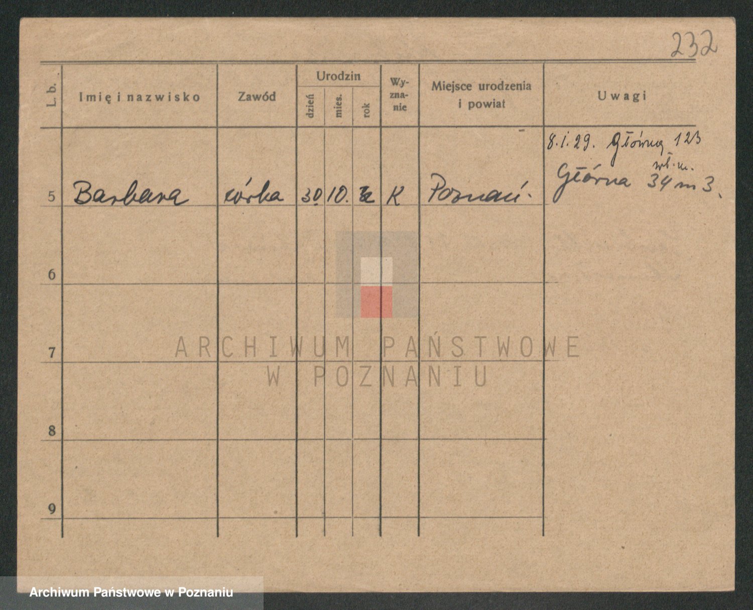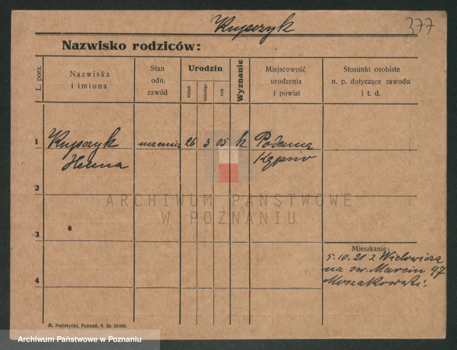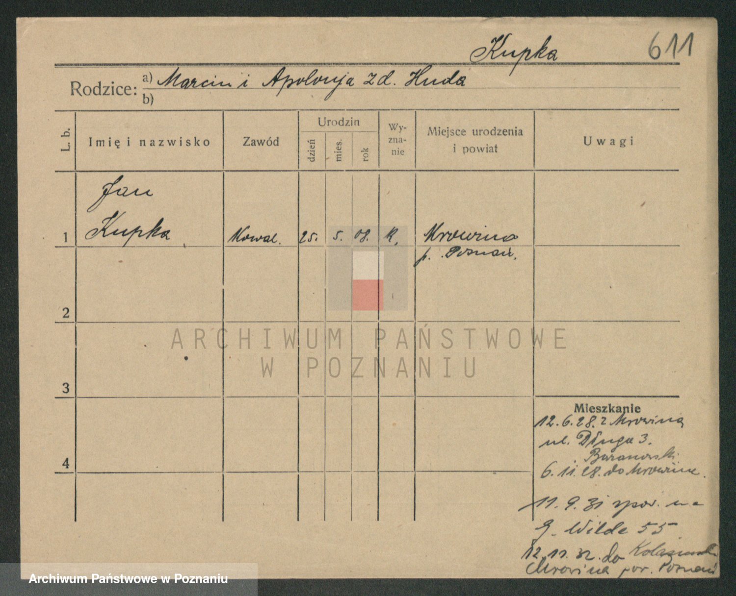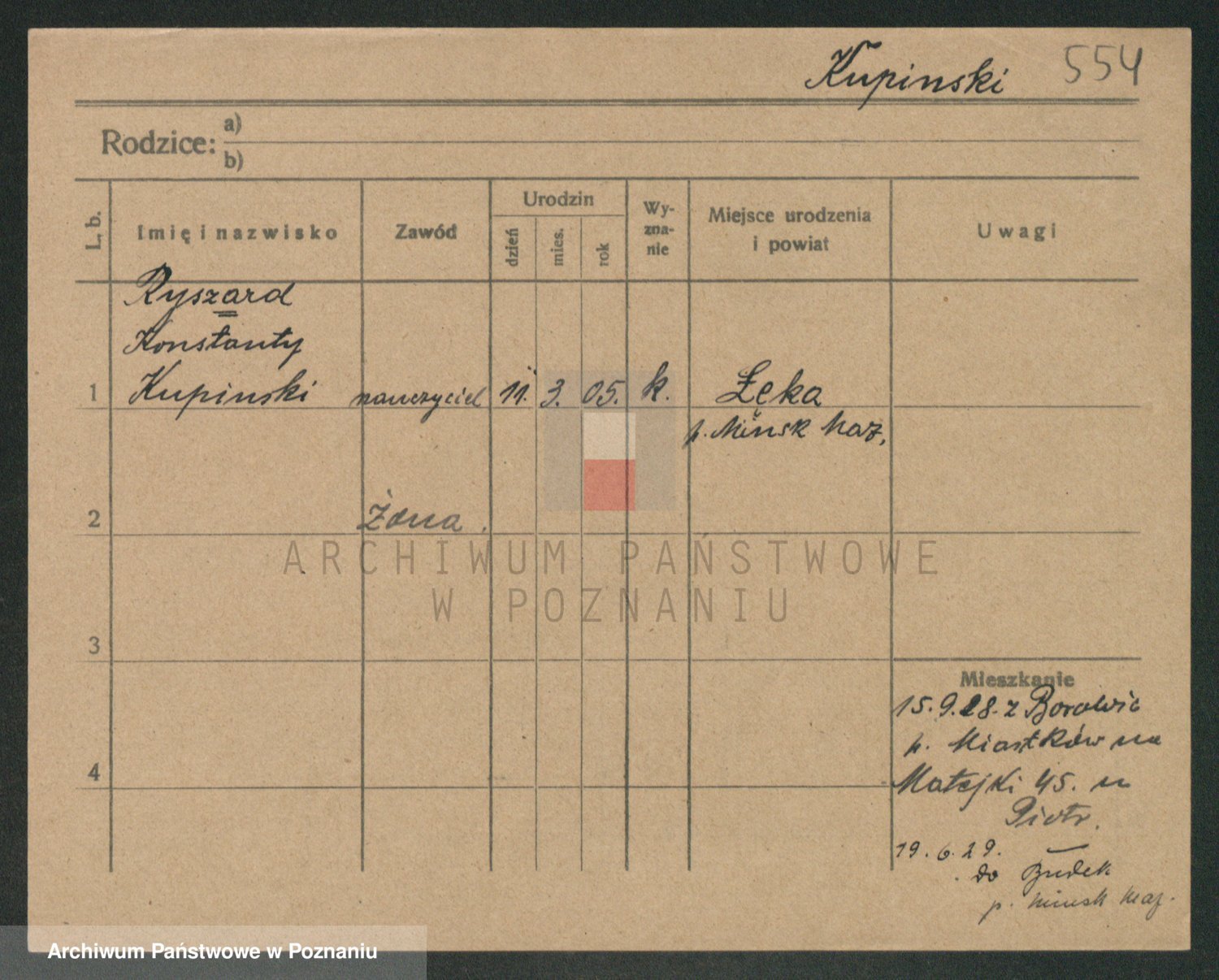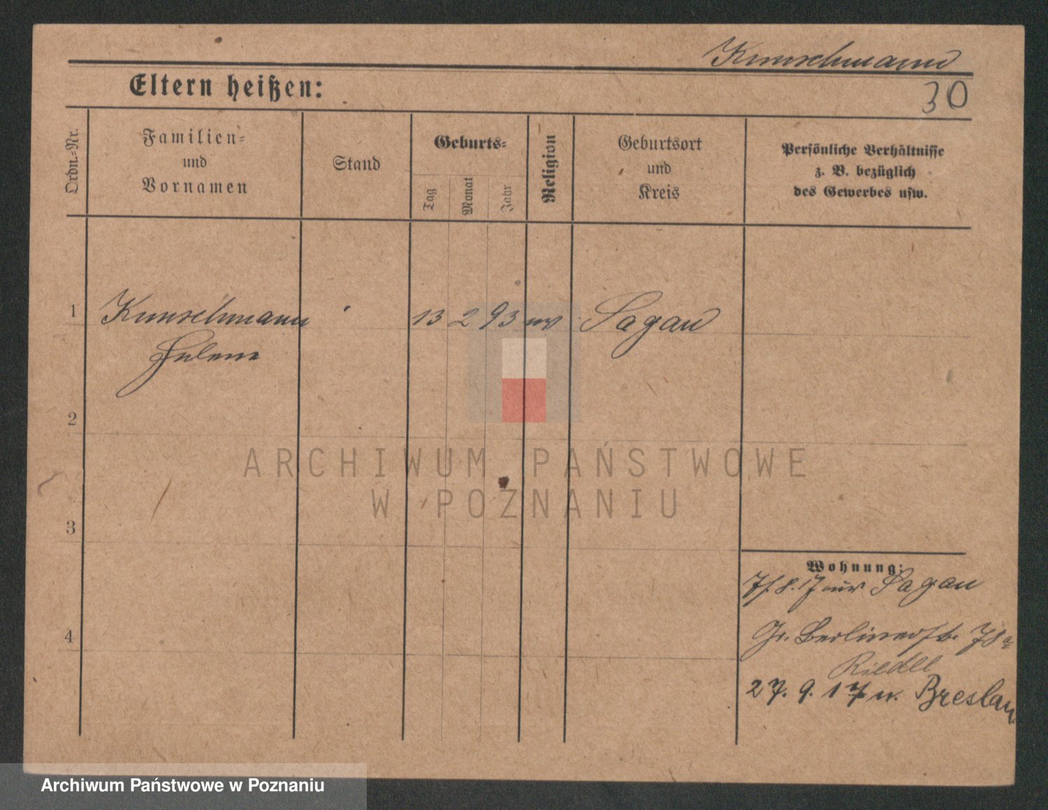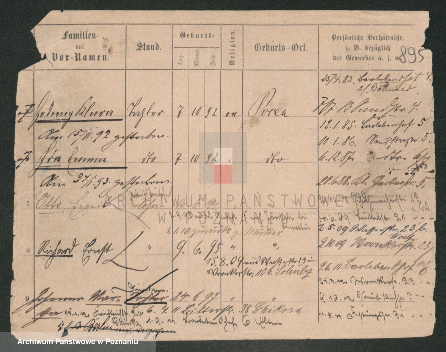 Podgląd karty osobowej dostępny jest po kliknięciu na nazwisko lub ikonkę karty. Można dokonywać powiększenia (ikony na górze) lub przechodzić między kolejnymi skanami (strzałki po bokach).