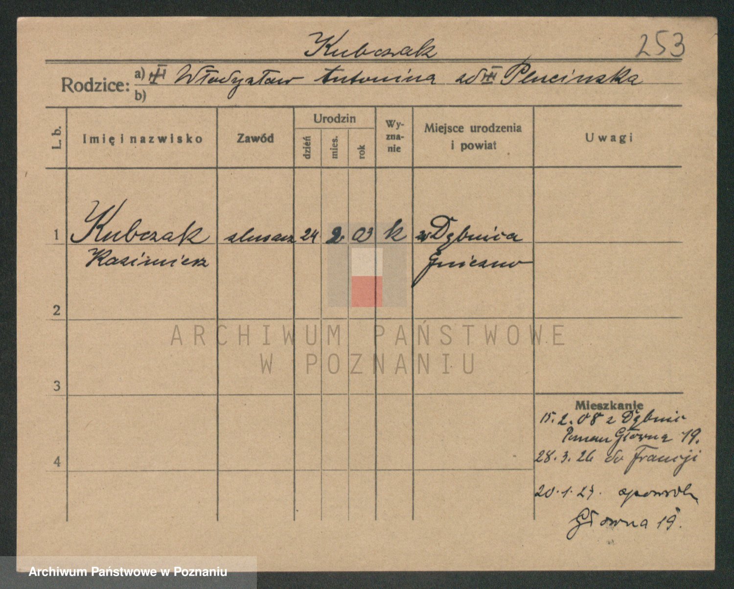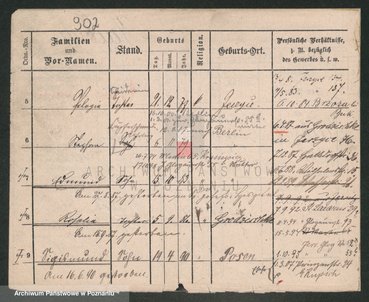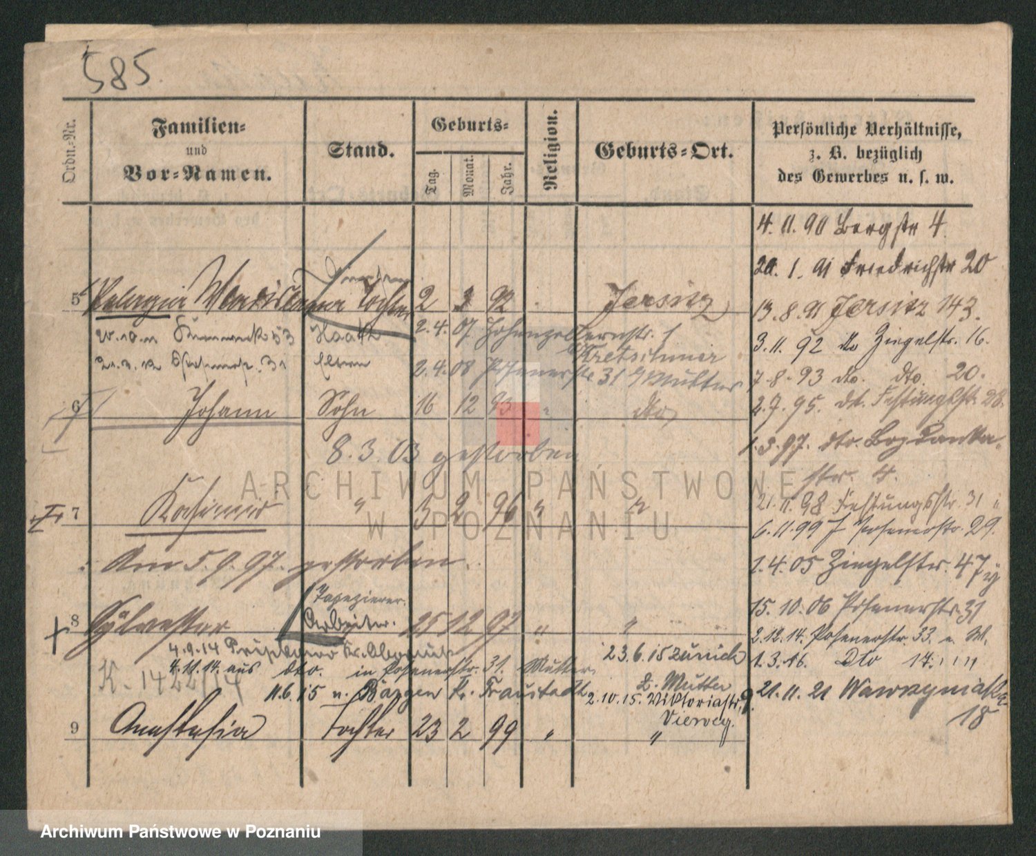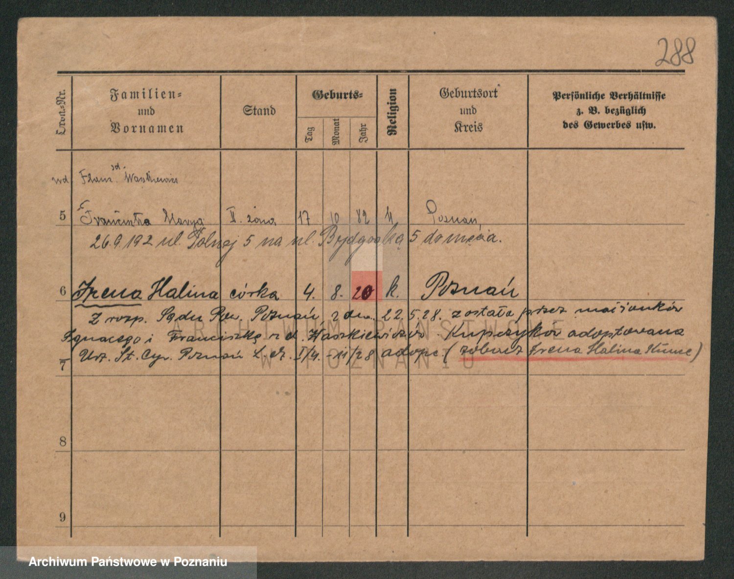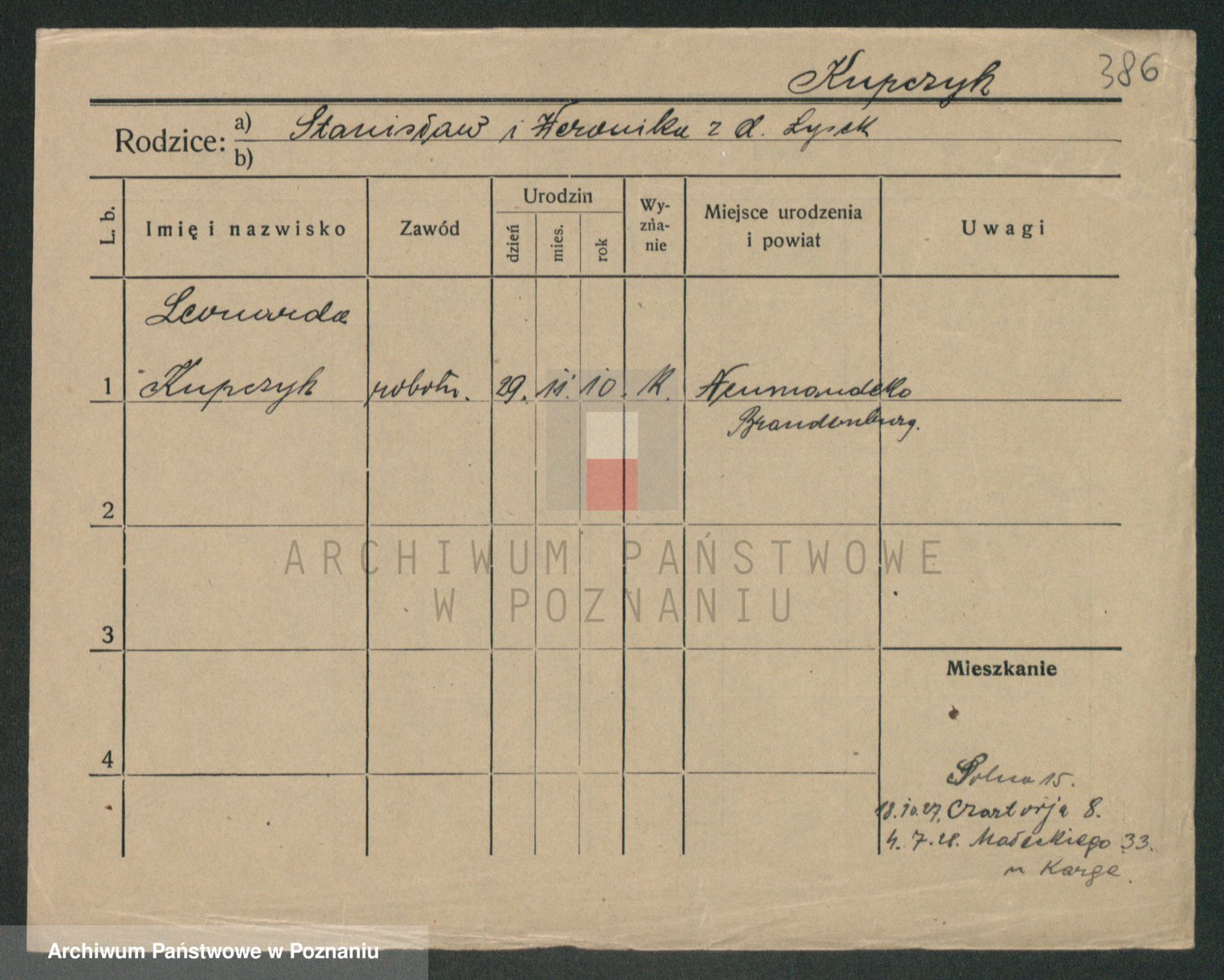 Podgląd karty osobowej dostępny jest po kliknięciu na nazwisko lub ikonkę karty. Można dokonywać powiększenia (ikony na górze) lub przechodzić między kolejnymi skanami (strzałki po bokach).