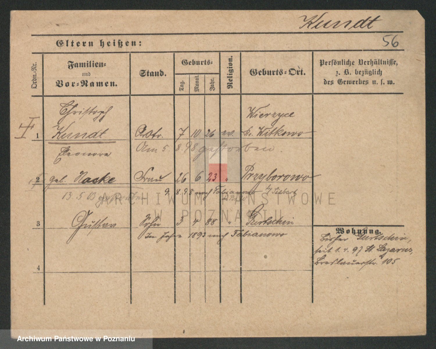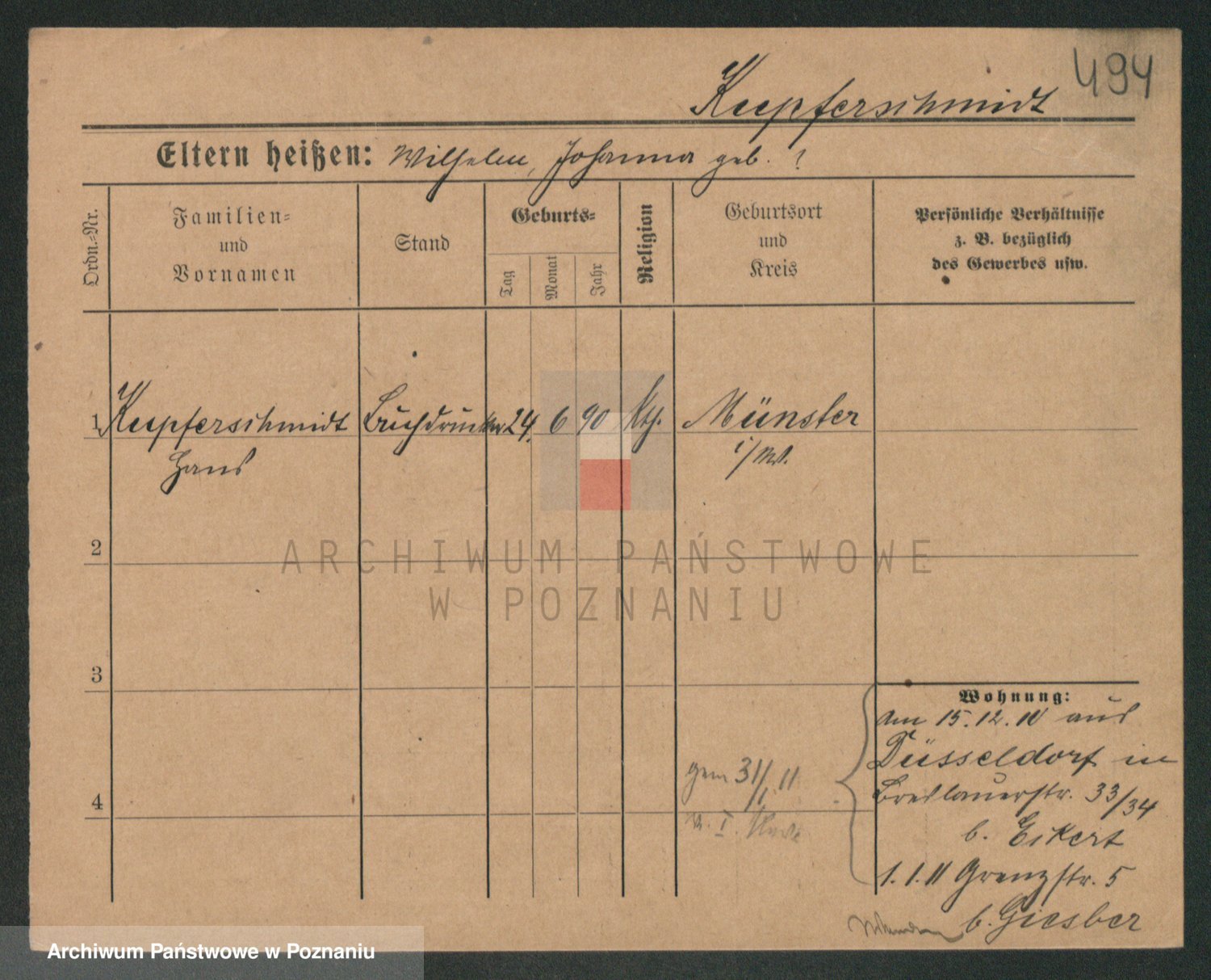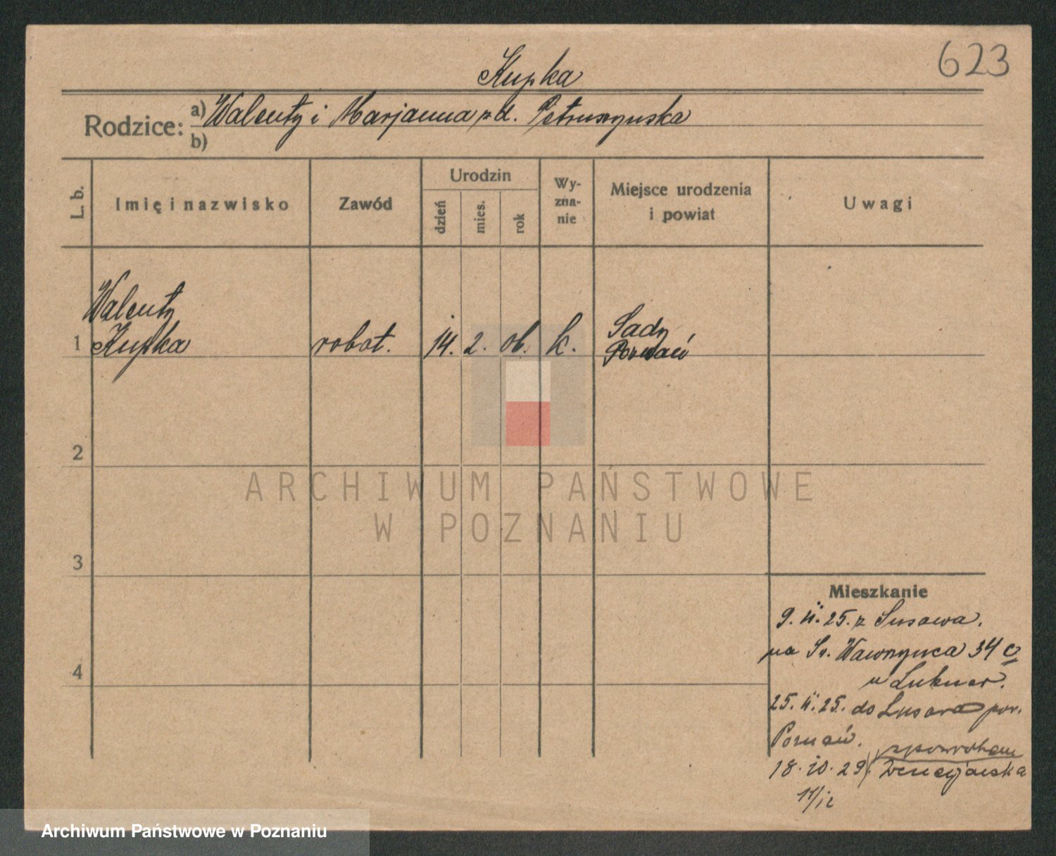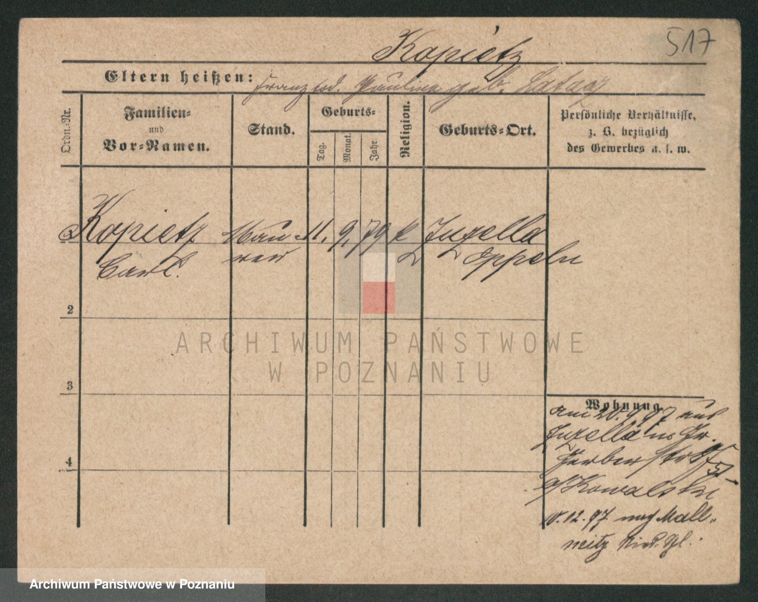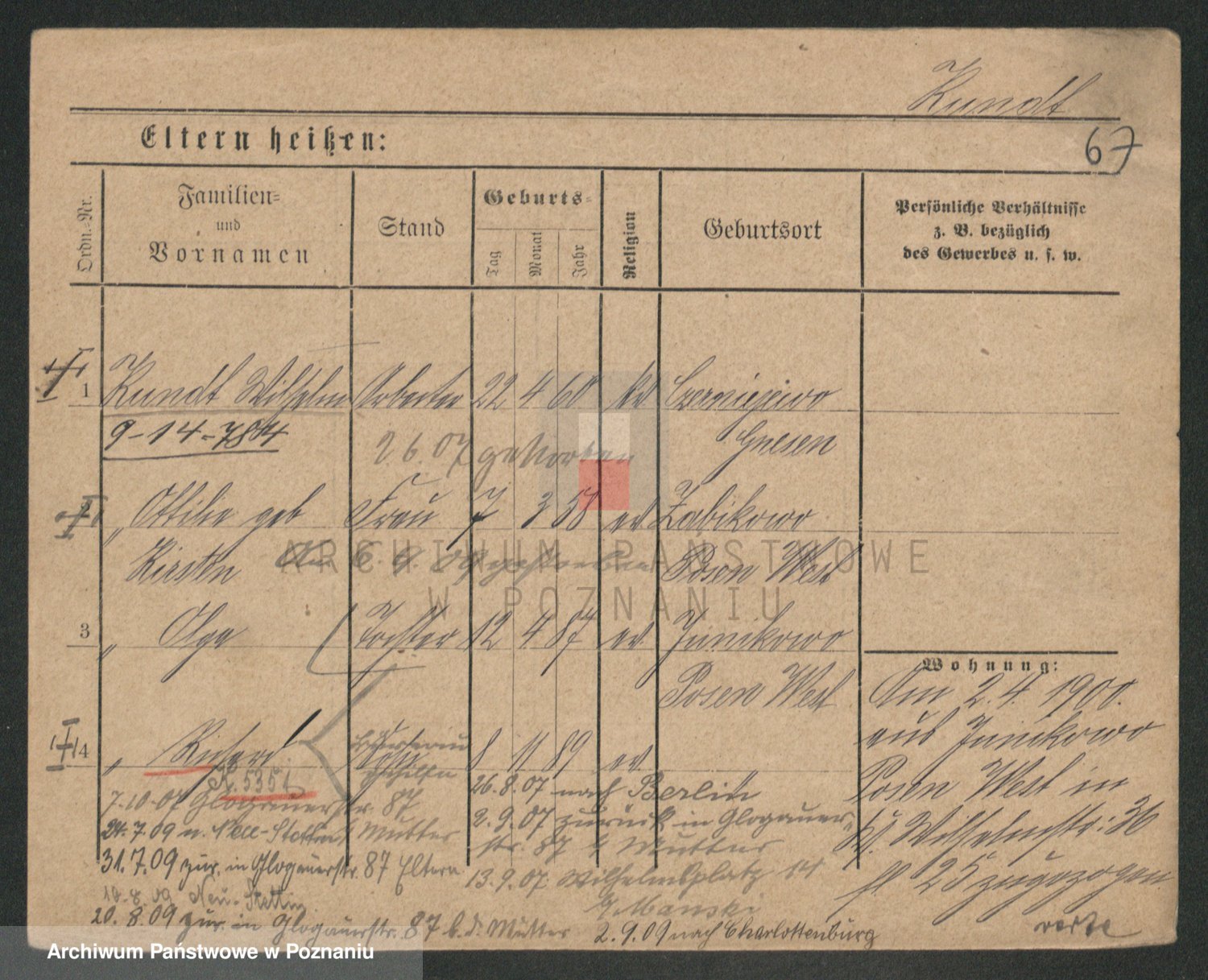 Podgląd karty osobowej dostępny jest po kliknięciu na nazwisko lub ikonkę karty. Można dokonywać powiększenia (ikony na górze) lub przechodzić między kolejnymi skanami (strzałki po bokach).