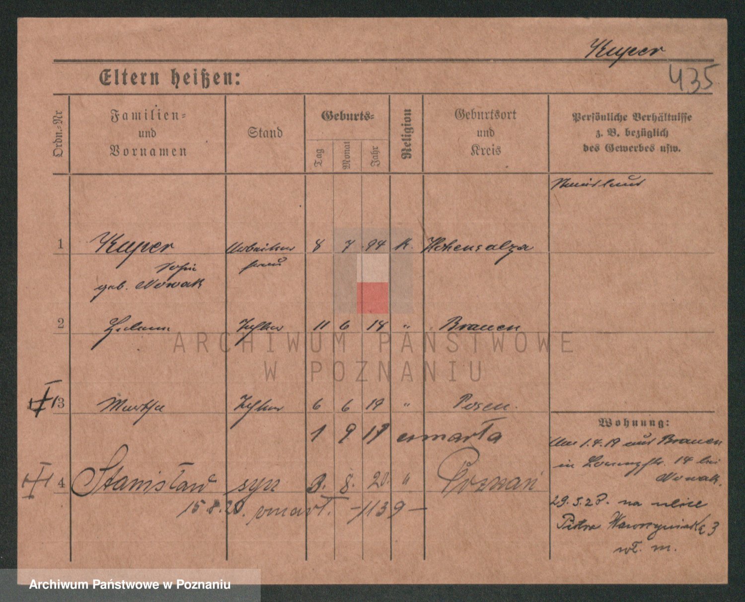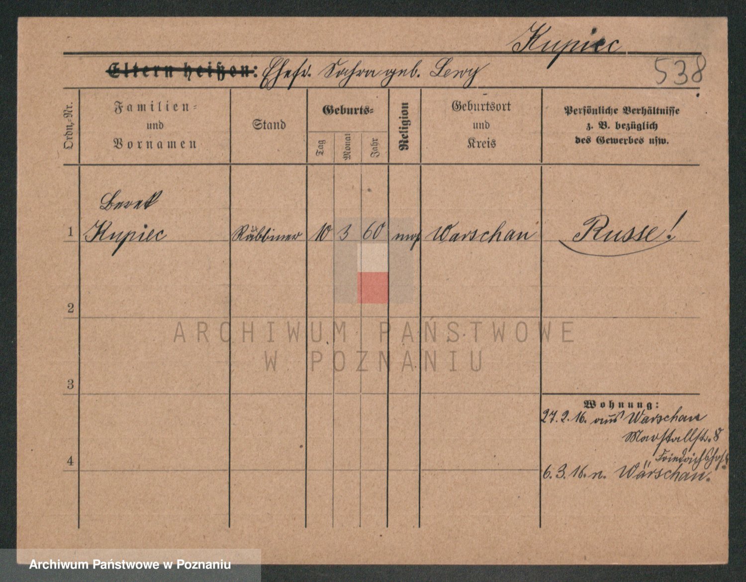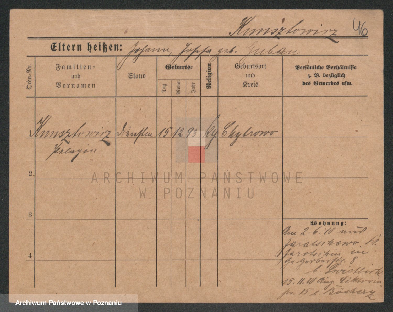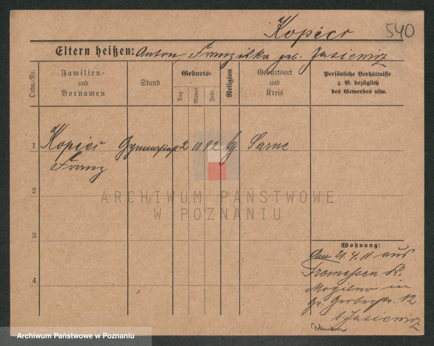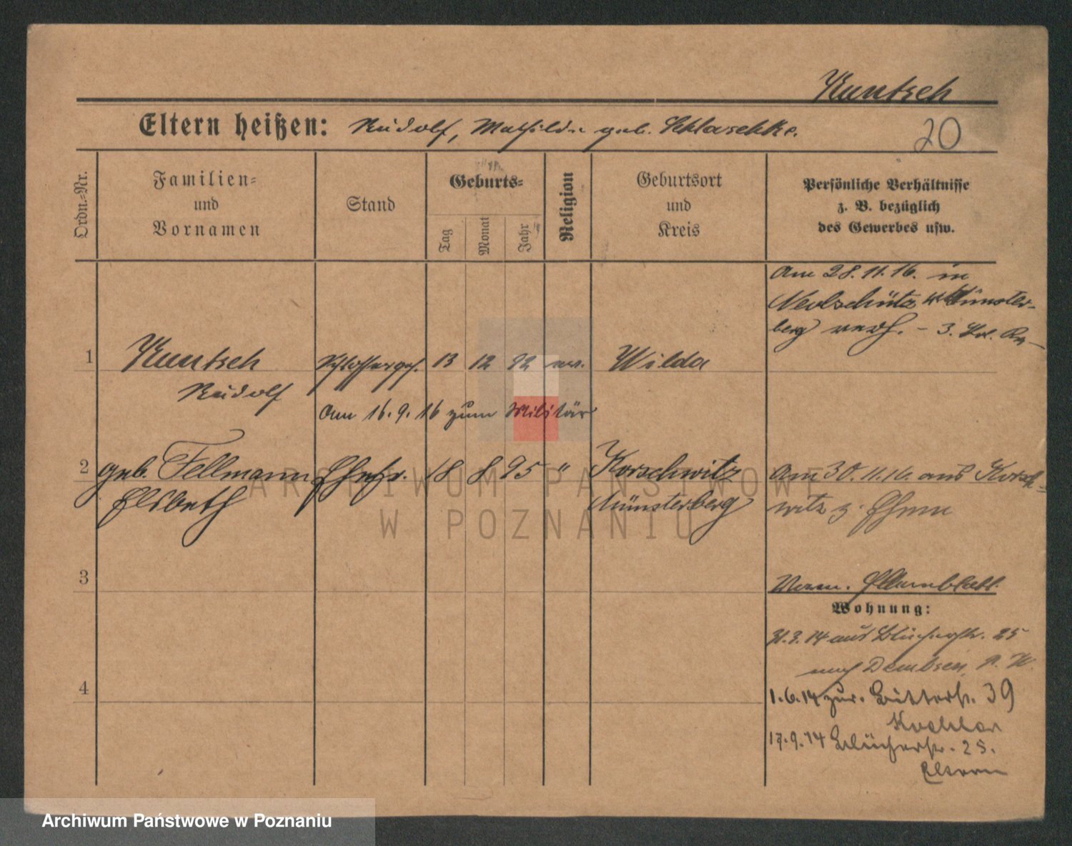 Podgląd karty osobowej dostępny jest po kliknięciu na nazwisko lub ikonkę karty. Można dokonywać powiększenia (ikony na górze) lub przechodzić między kolejnymi skanami (strzałki po bokach).