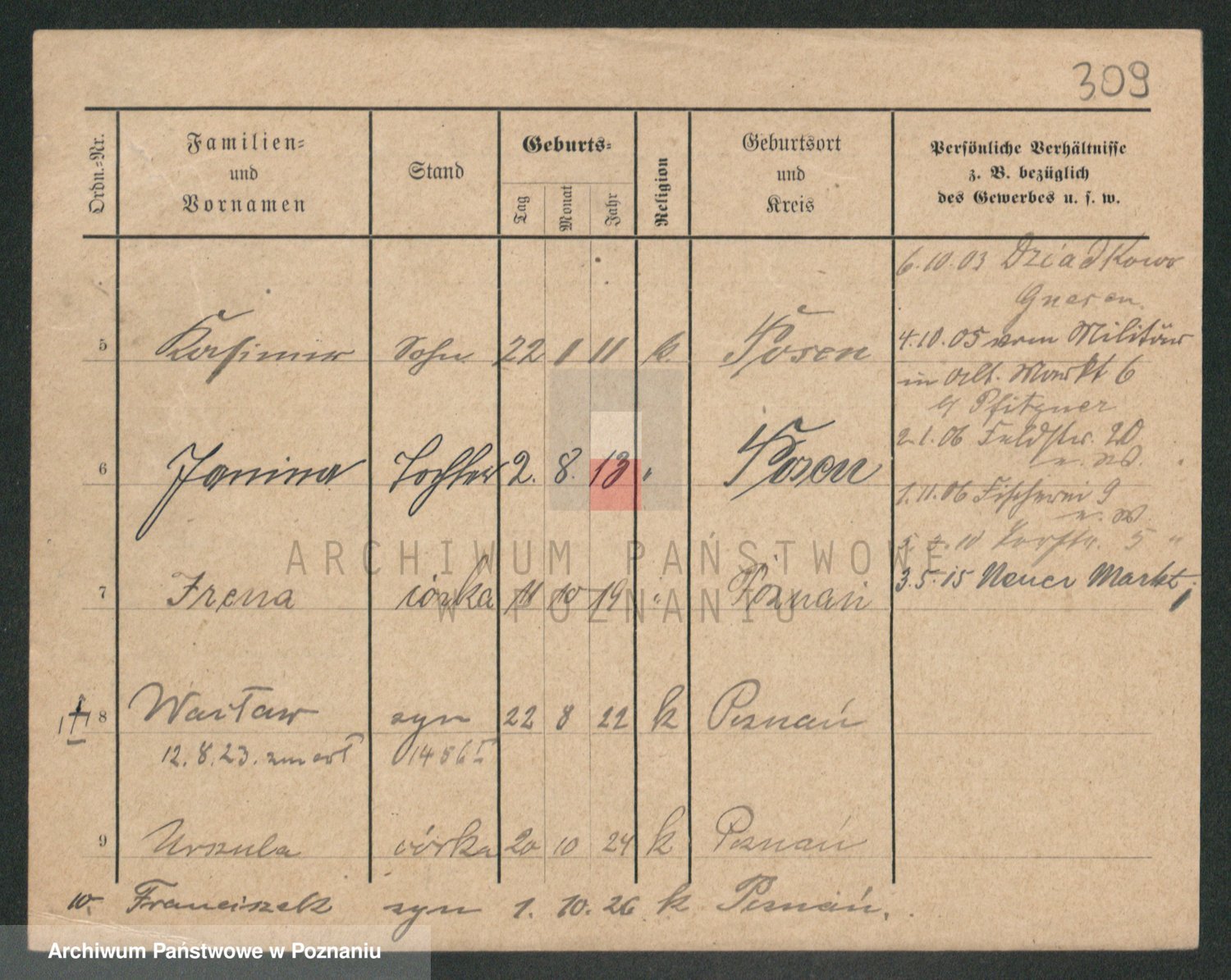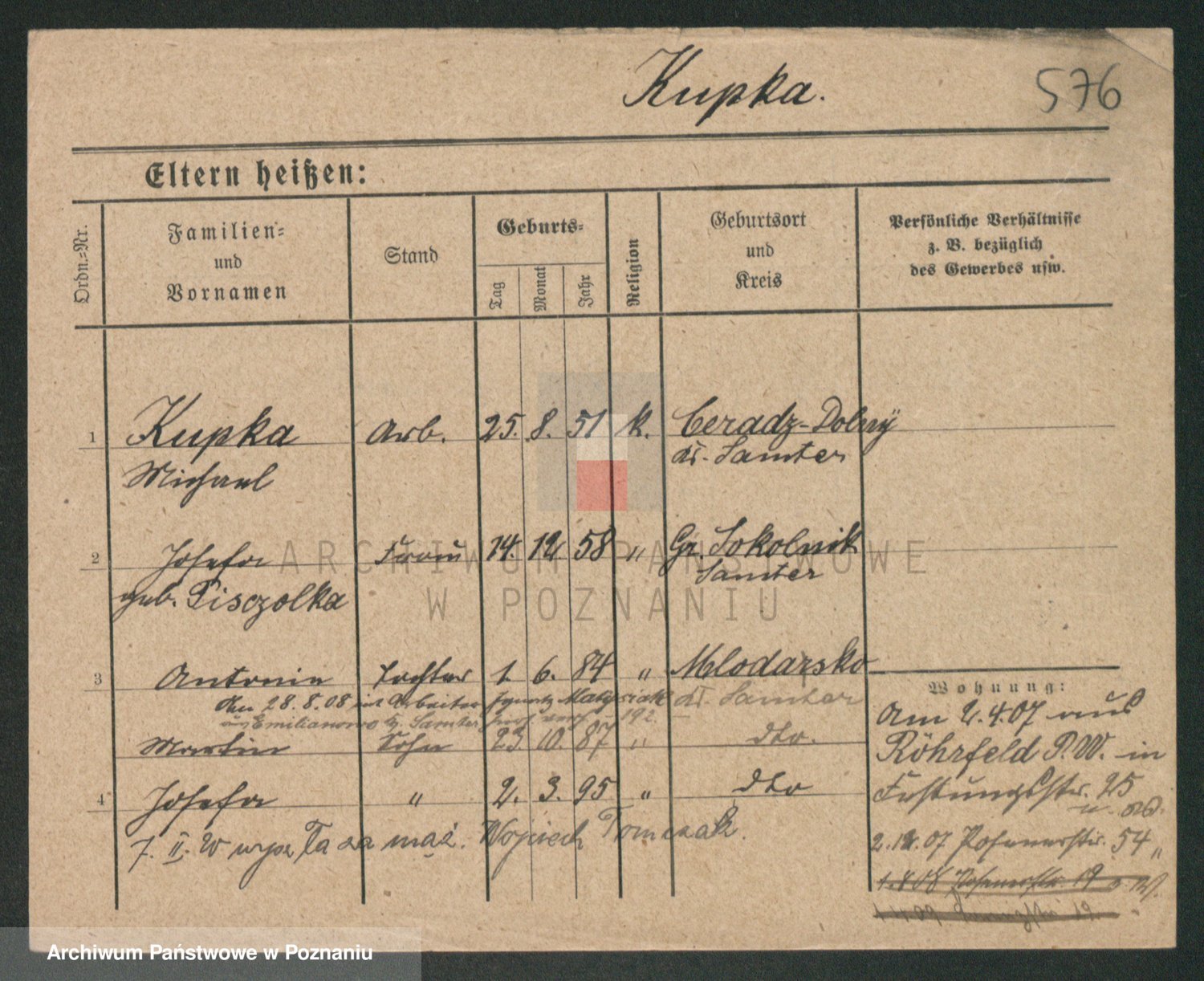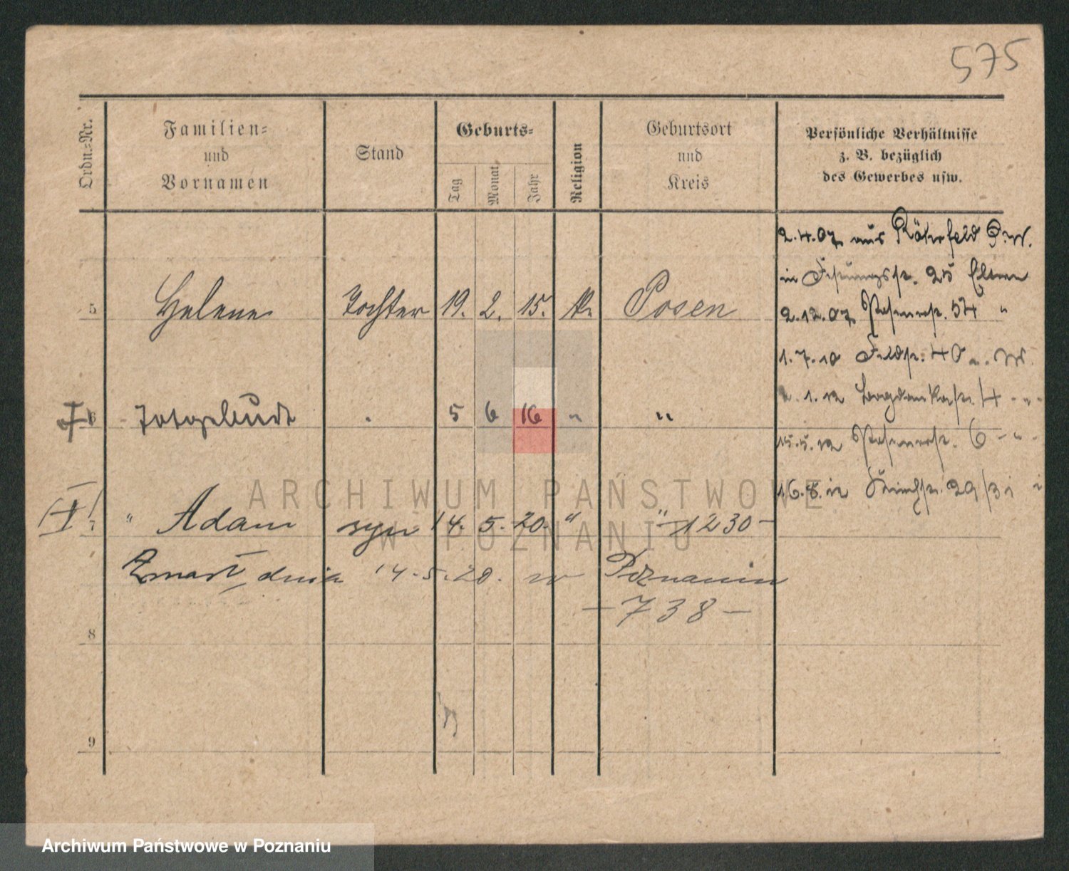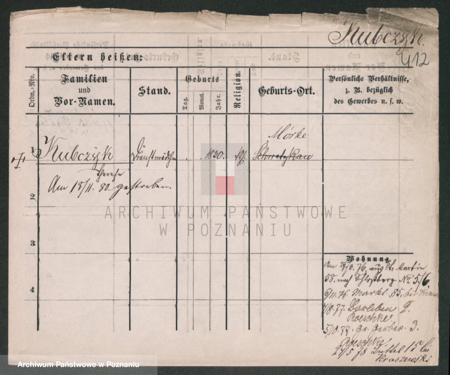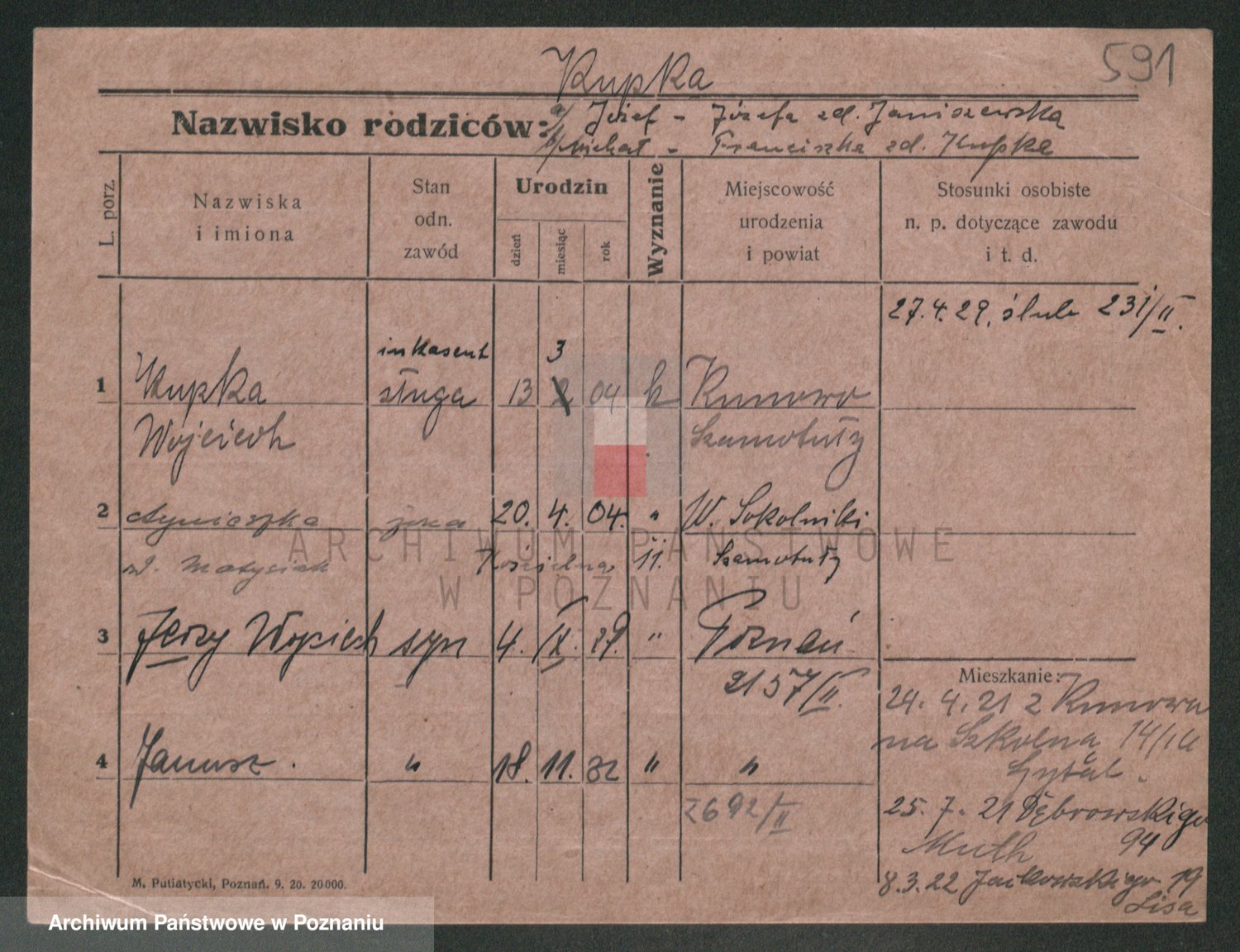 Podgląd karty osobowej dostępny jest po kliknięciu na nazwisko lub ikonkę karty. Można dokonywać powiększenia (ikony na górze) lub przechodzić między kolejnymi skanami (strzałki po bokach).