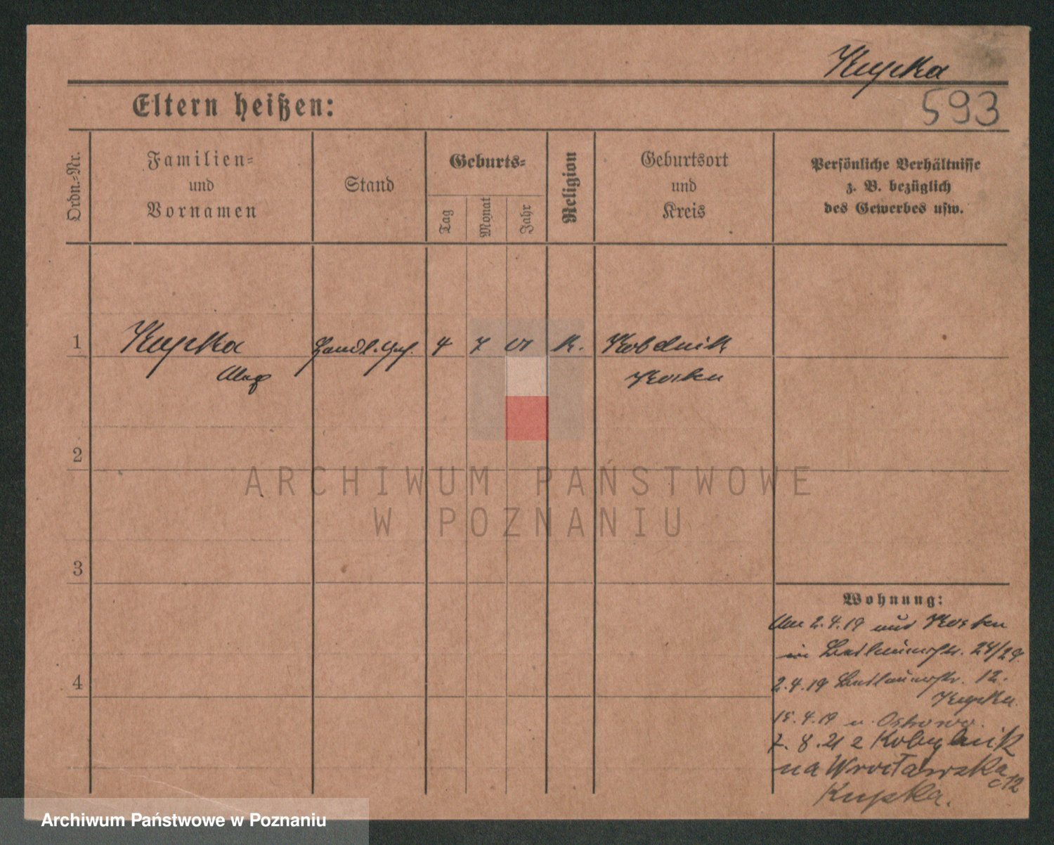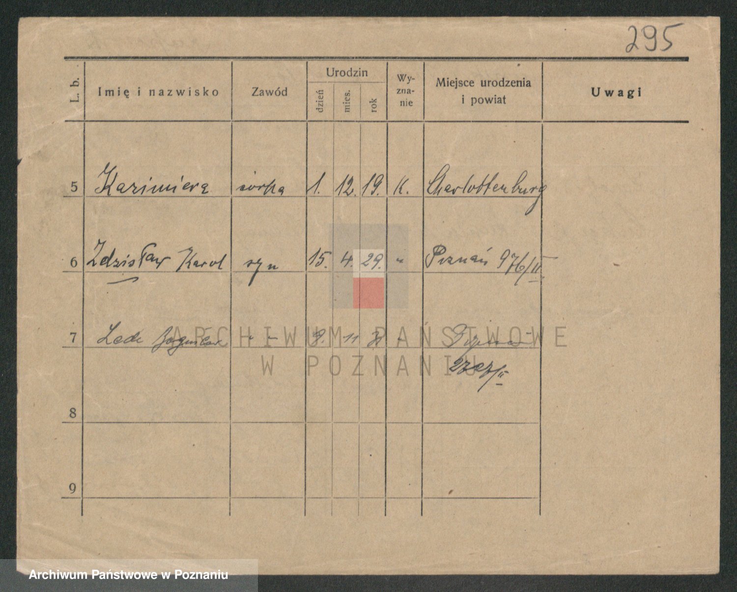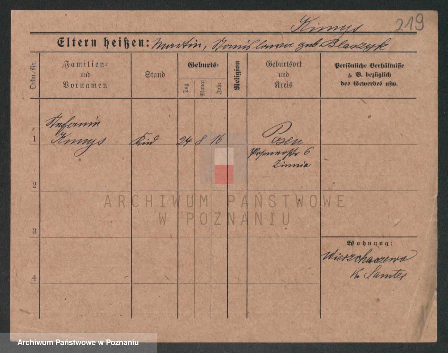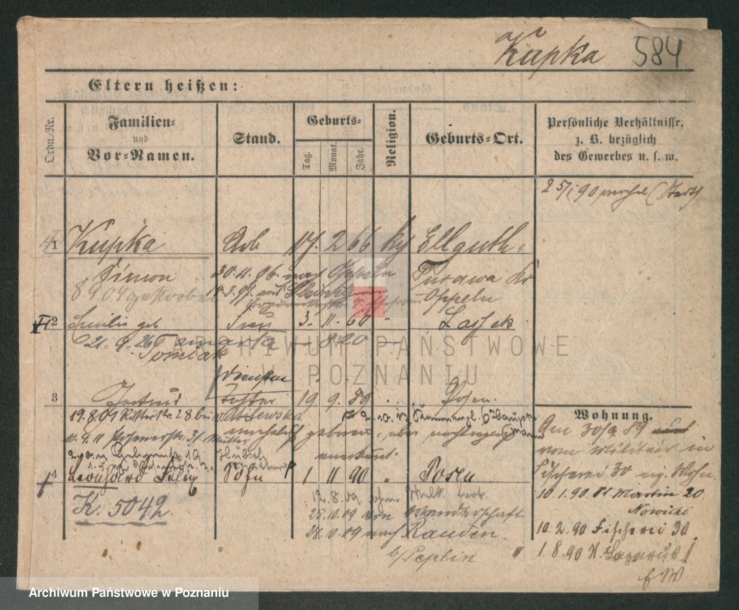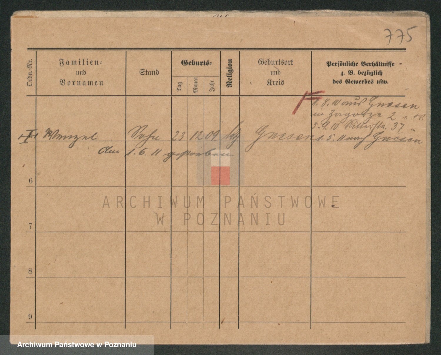 Podgląd karty osobowej dostępny jest po kliknięciu na nazwisko lub ikonkę karty. Można dokonywać powiększenia (ikony na górze) lub przechodzić między kolejnymi skanami (strzałki po bokach).