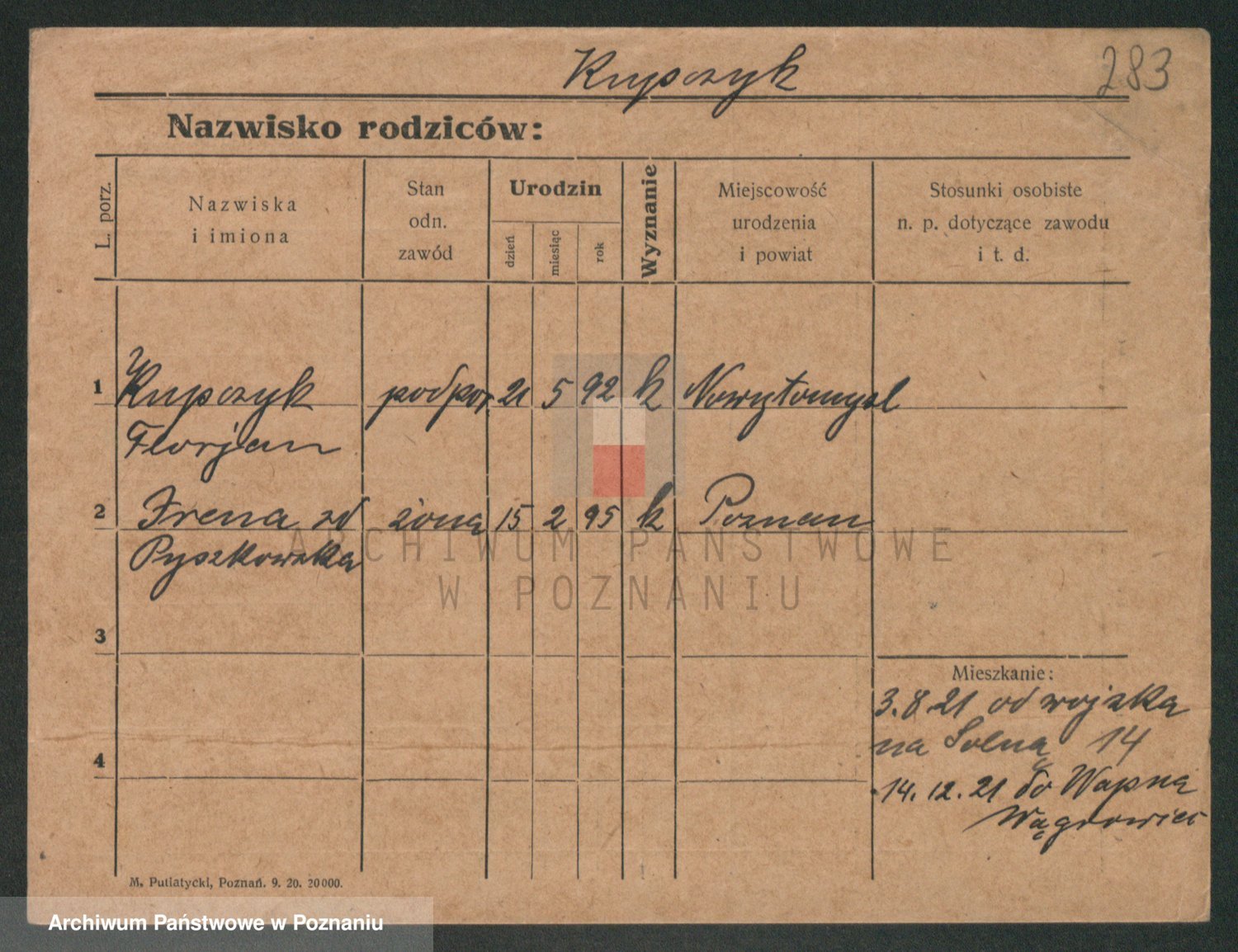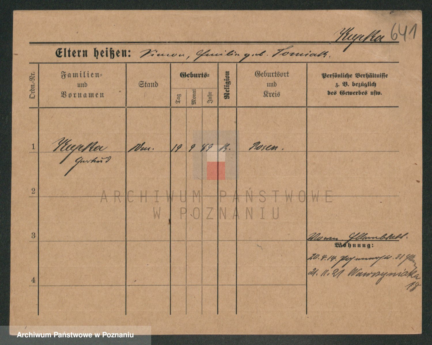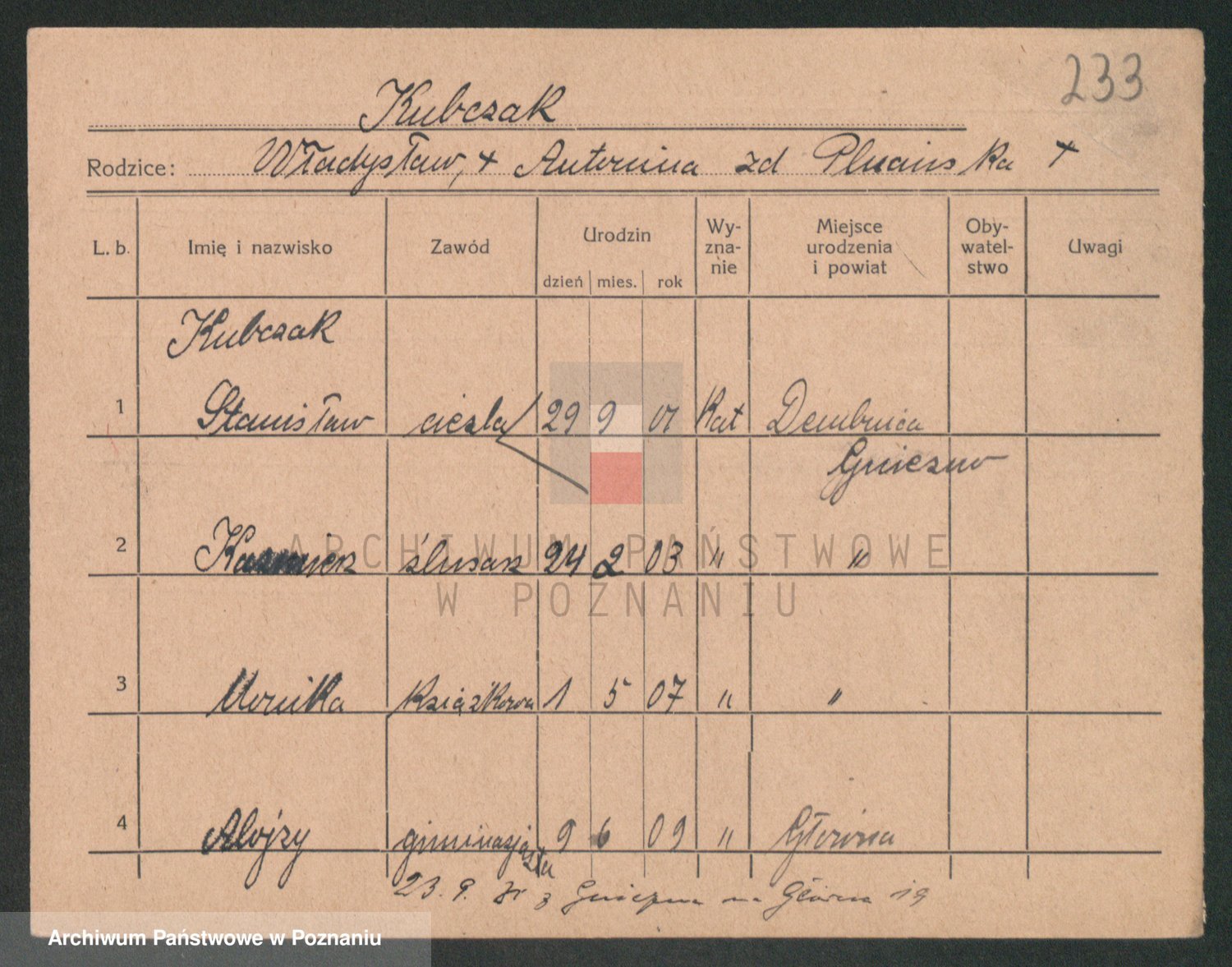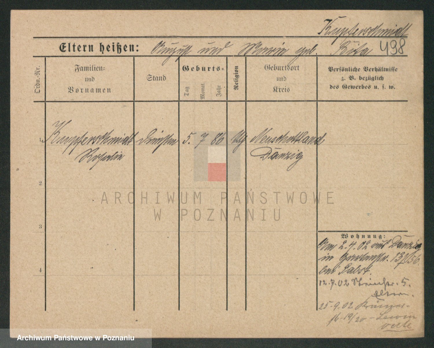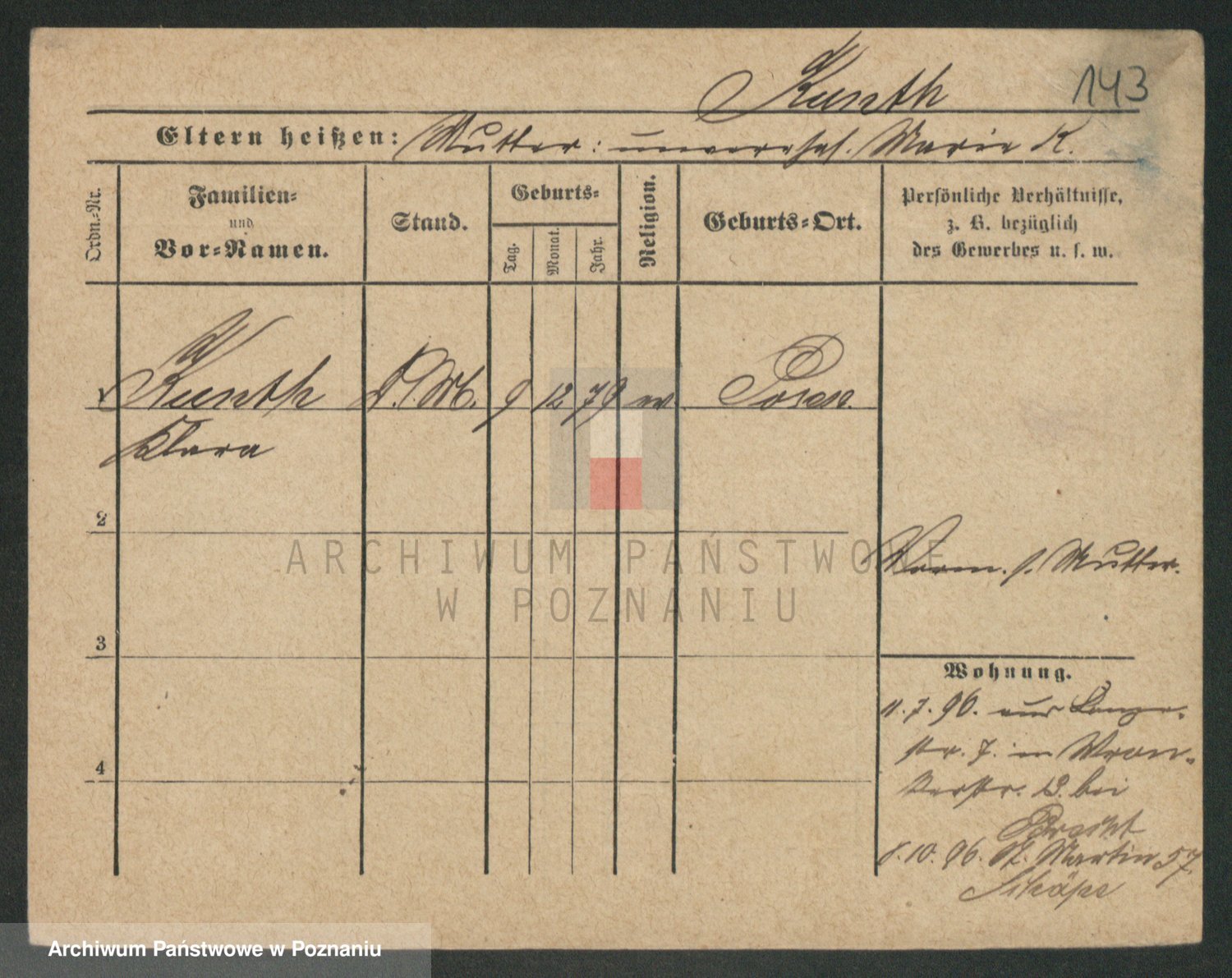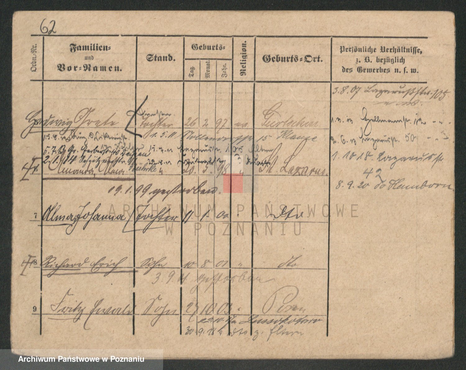 Podgląd karty osobowej dostępny jest po kliknięciu na nazwisko lub ikonkę karty. Można dokonywać powiększenia (ikony na górze) lub przechodzić między kolejnymi skanami (strzałki po bokach).