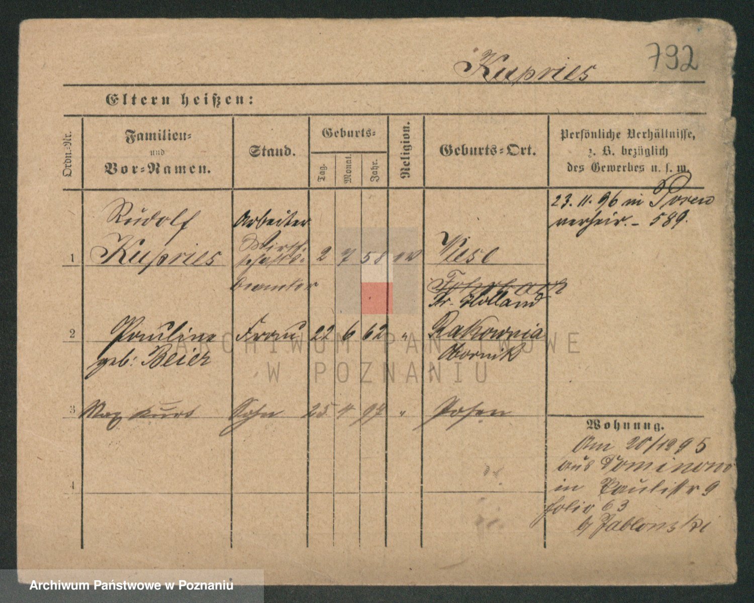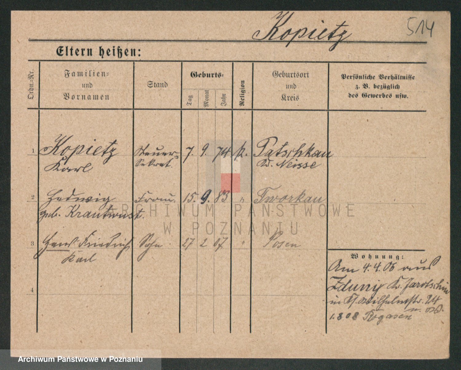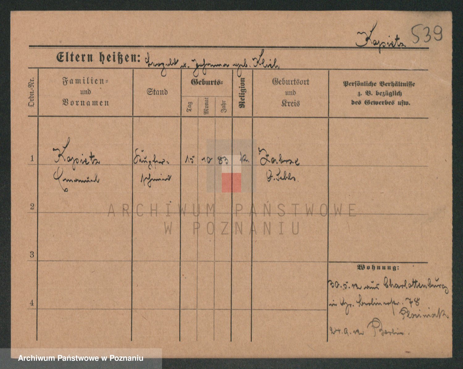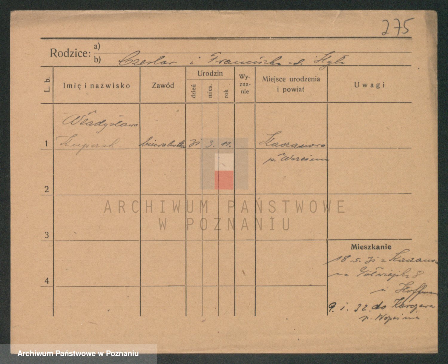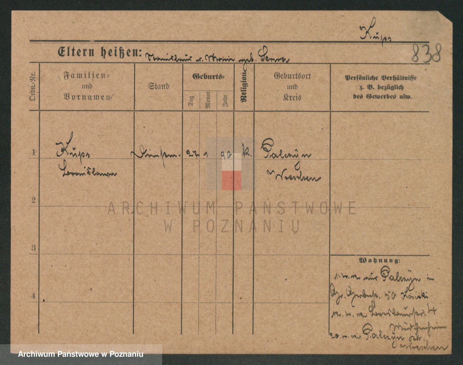 Podgląd karty osobowej dostępny jest po kliknięciu na nazwisko lub ikonkę karty. Można dokonywać powiększenia (ikony na górze) lub przechodzić między kolejnymi skanami (strzałki po bokach).