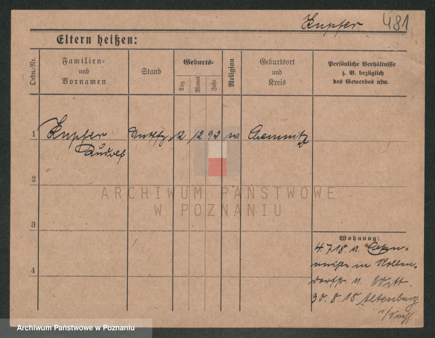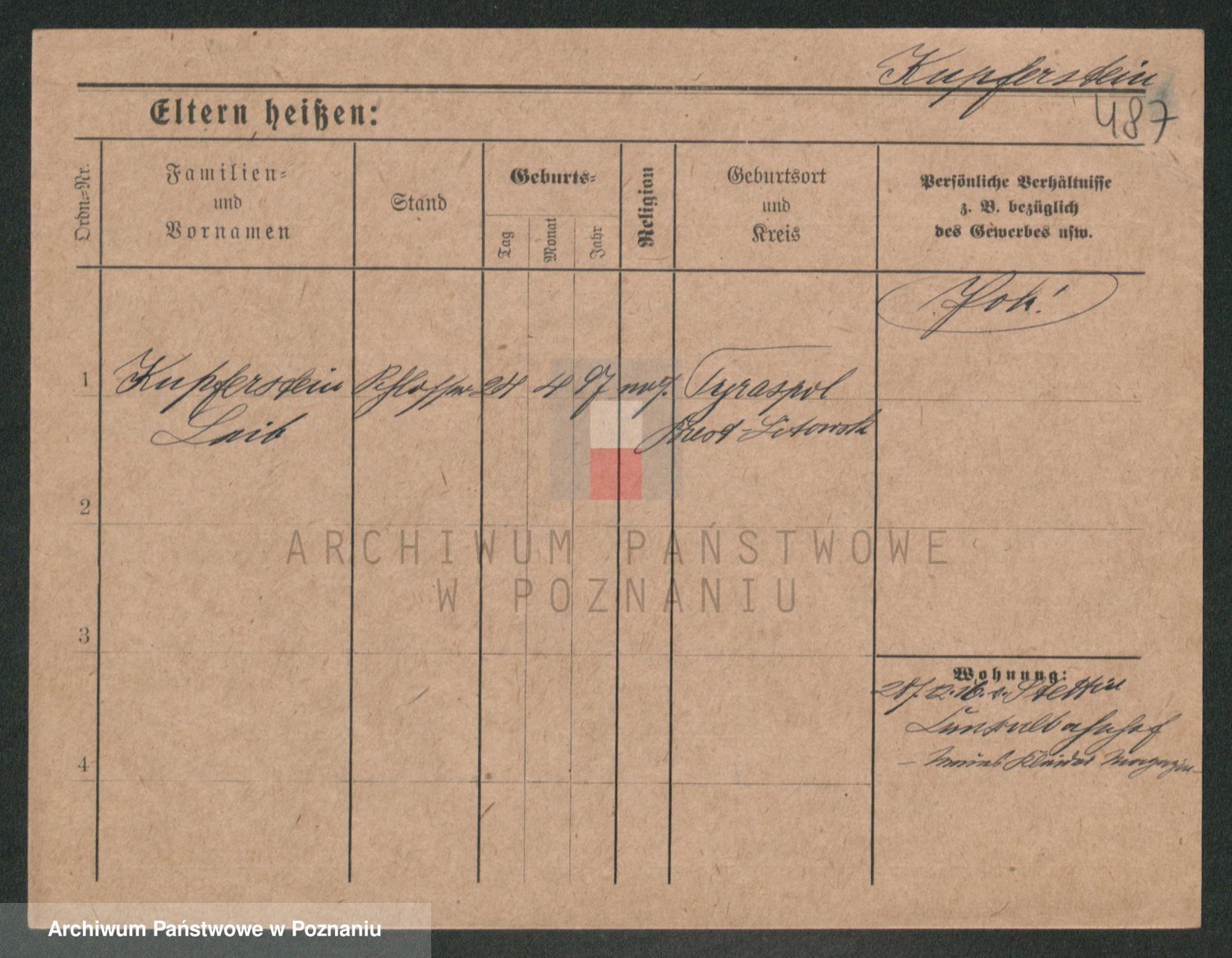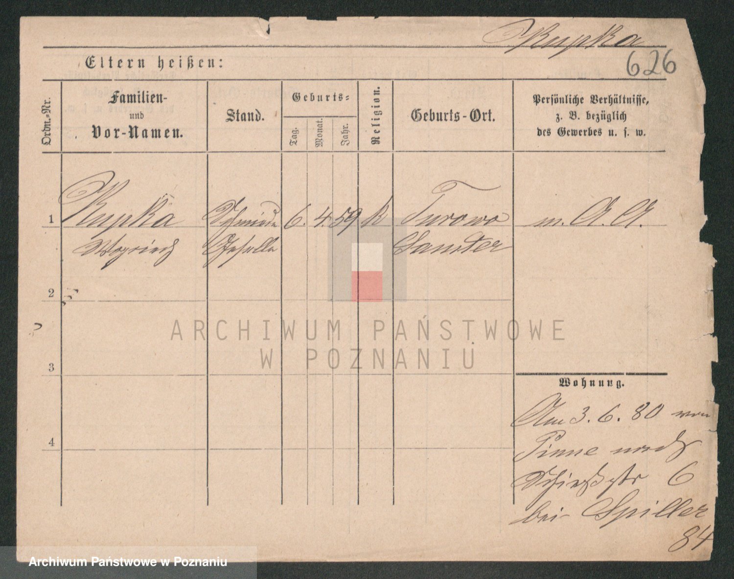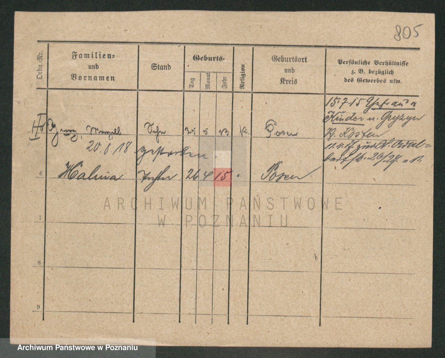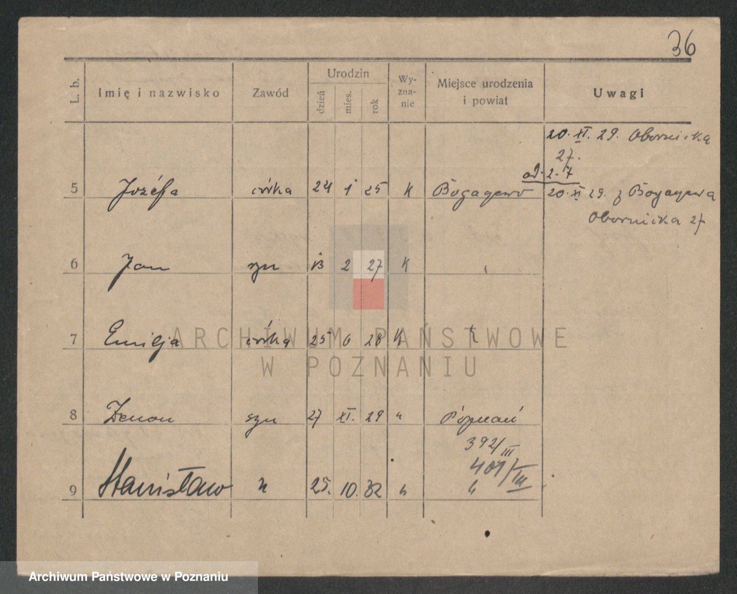 Podgląd karty osobowej dostępny jest po kliknięciu na nazwisko lub ikonkę karty. Można dokonywać powiększenia (ikony na górze) lub przechodzić między kolejnymi skanami (strzałki po bokach).