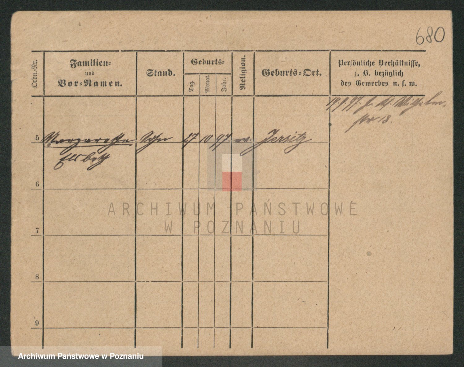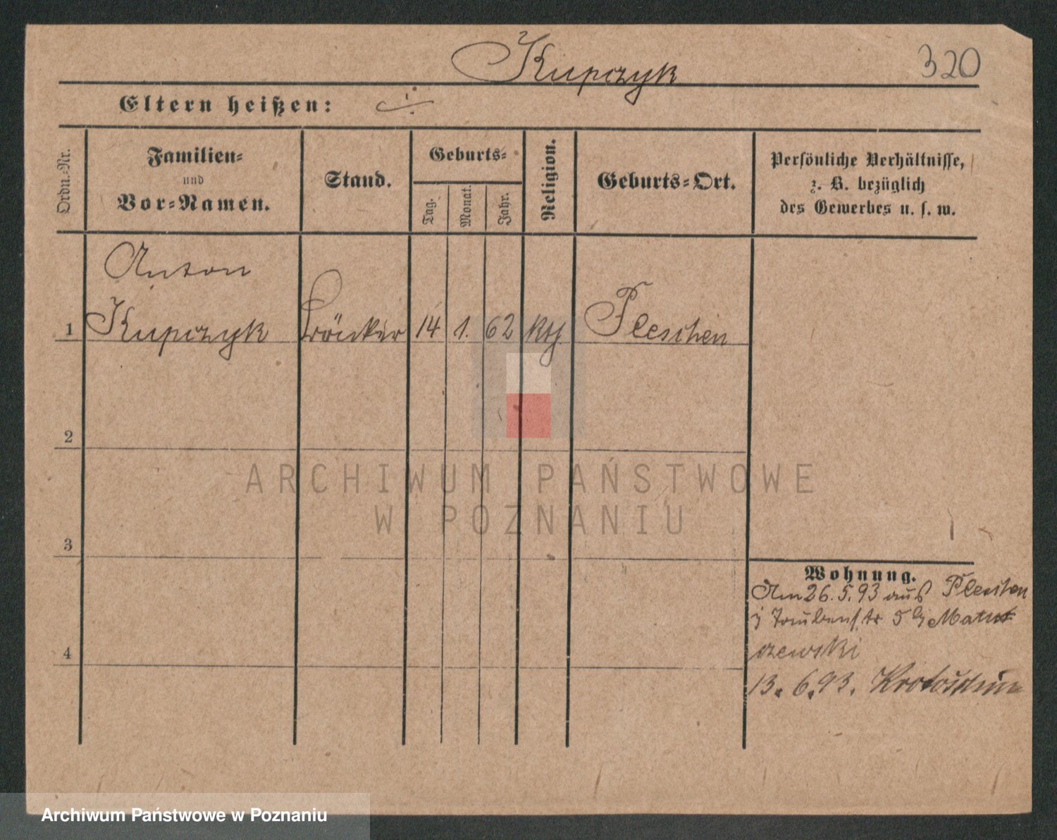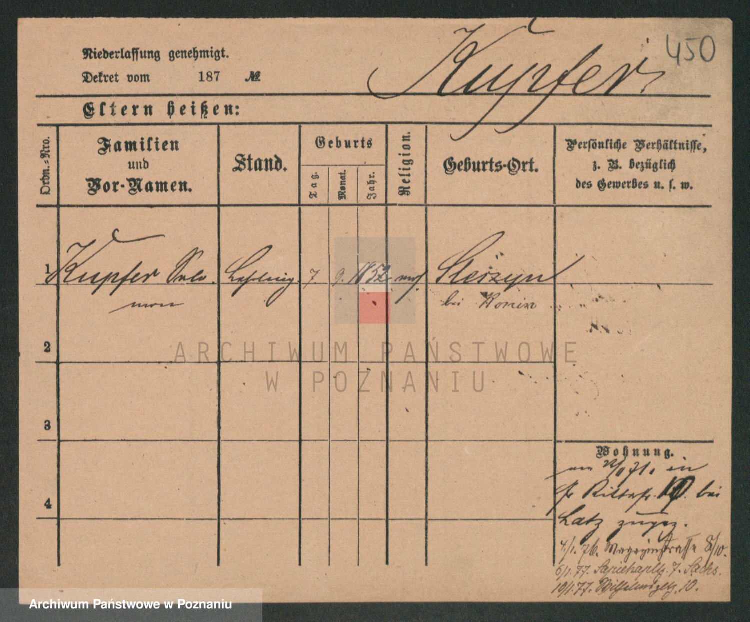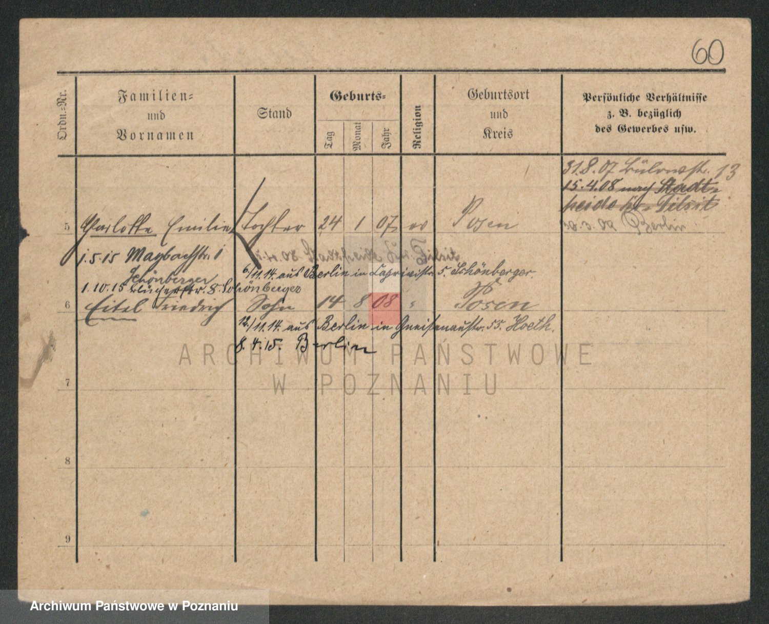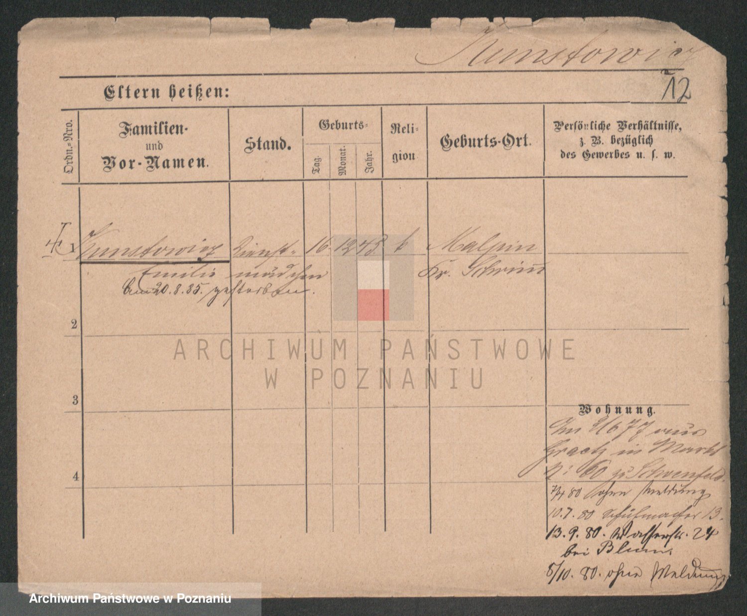 Podgląd karty osobowej dostępny jest po kliknięciu na nazwisko lub ikonkę karty. Można dokonywać powiększenia (ikony na górze) lub przechodzić między kolejnymi skanami (strzałki po bokach).