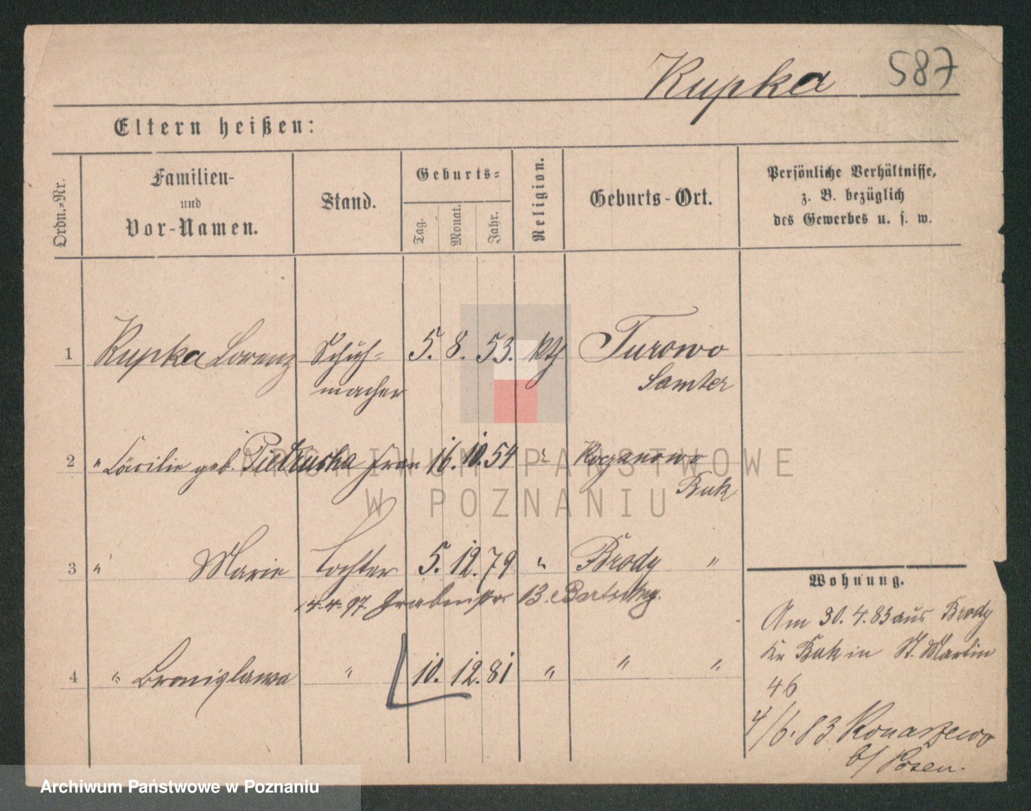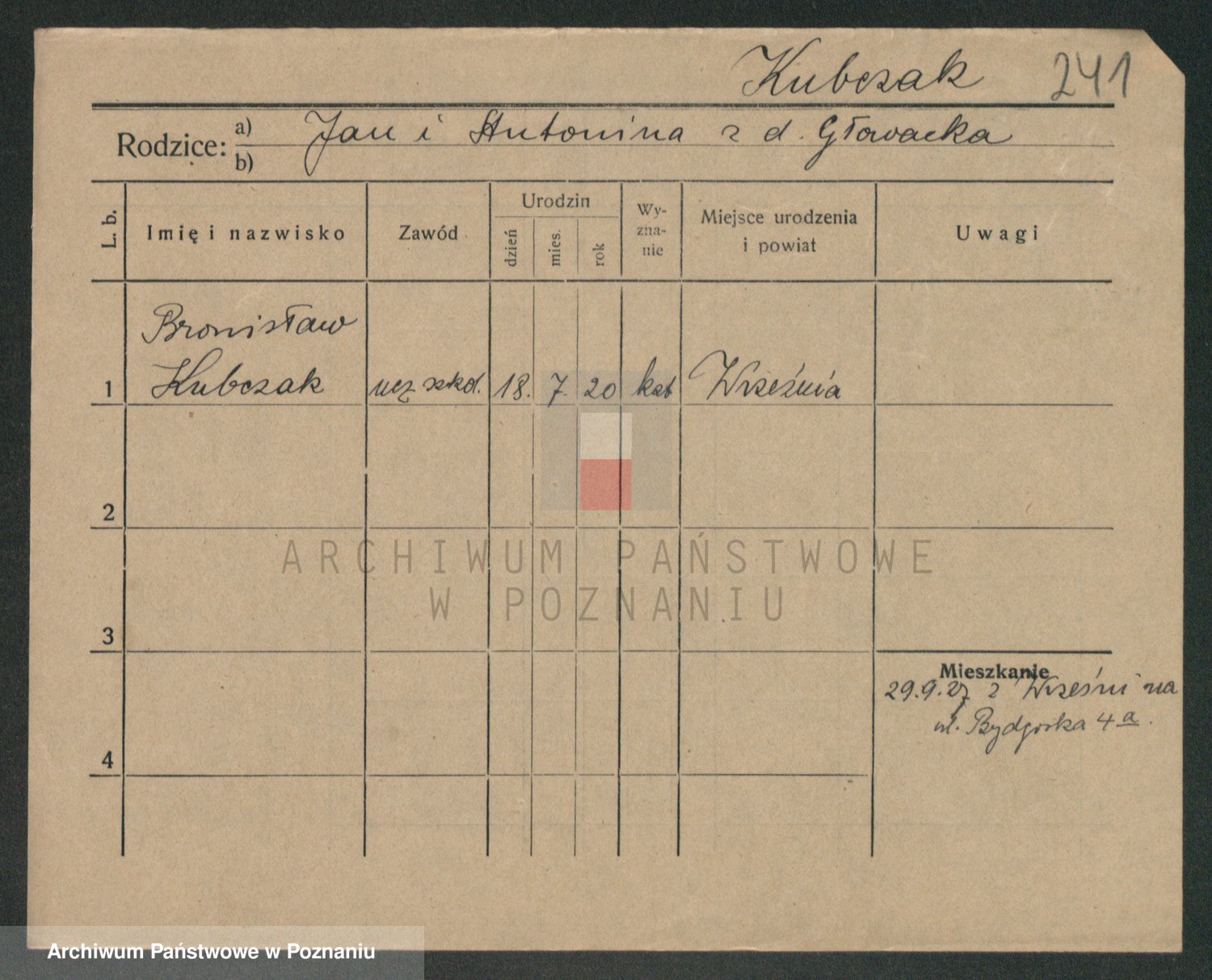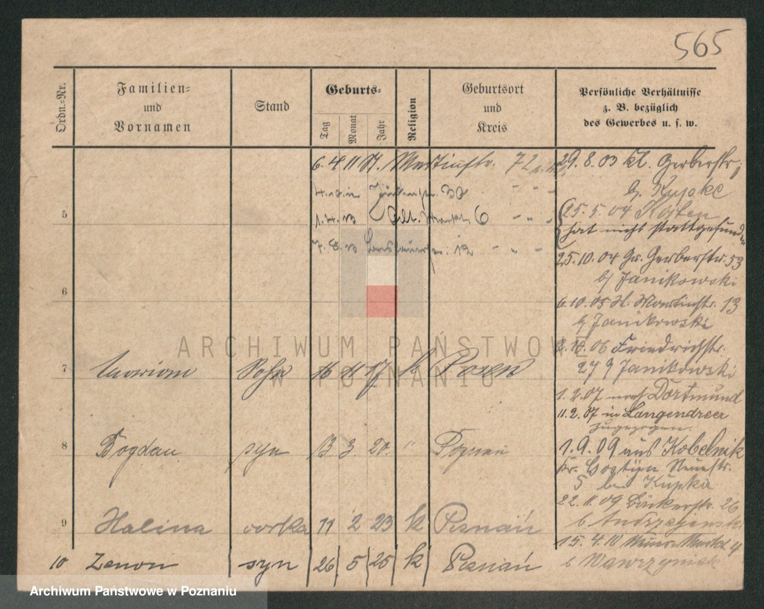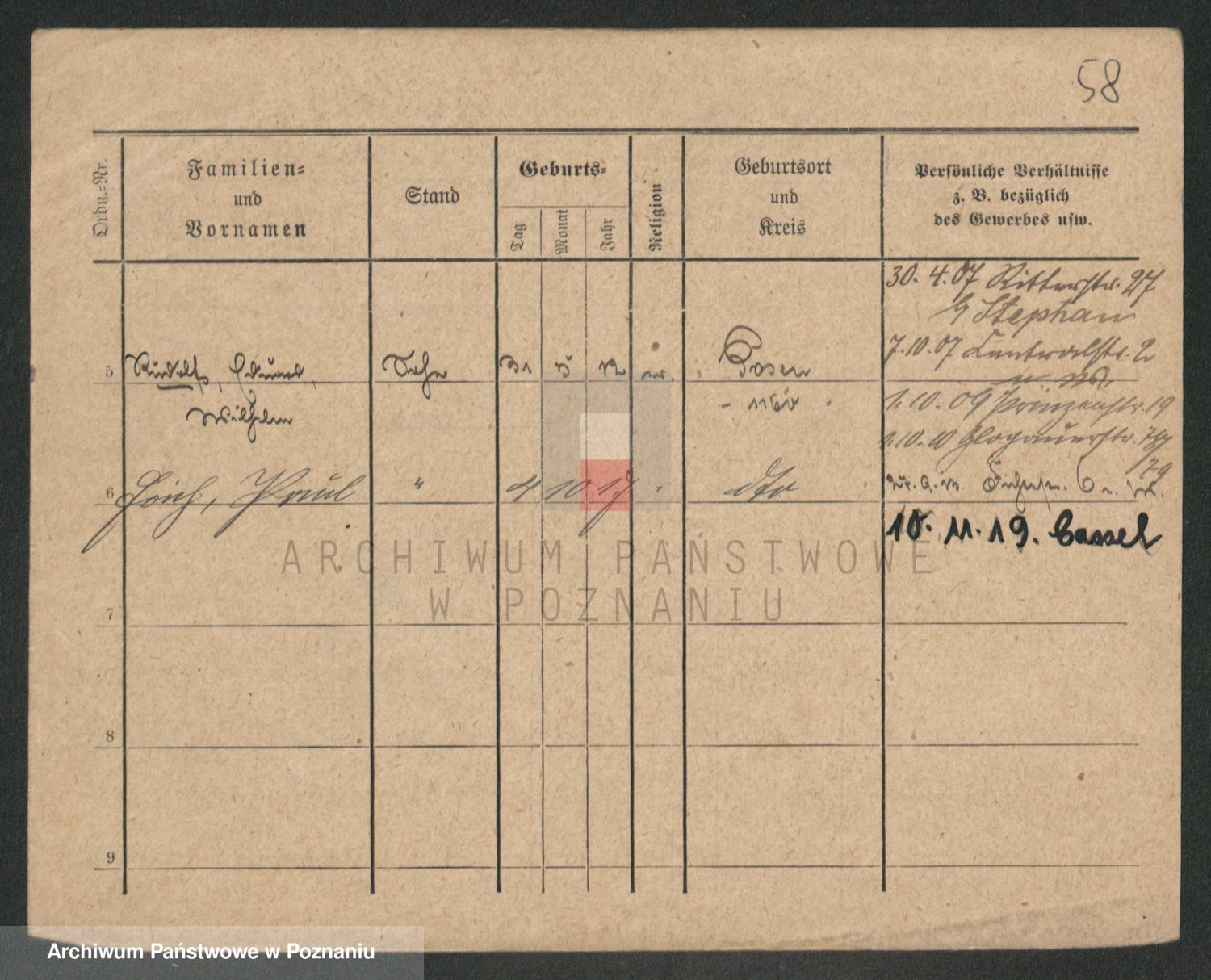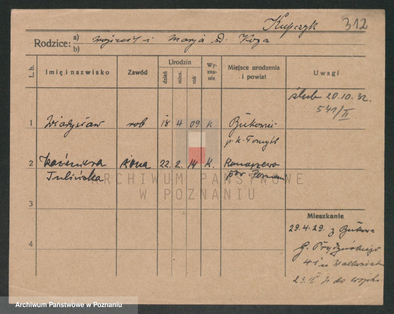 Podgląd karty osobowej dostępny jest po kliknięciu na nazwisko lub ikonkę karty. Można dokonywać powiększenia (ikony na górze) lub przechodzić między kolejnymi skanami (strzałki po bokach).