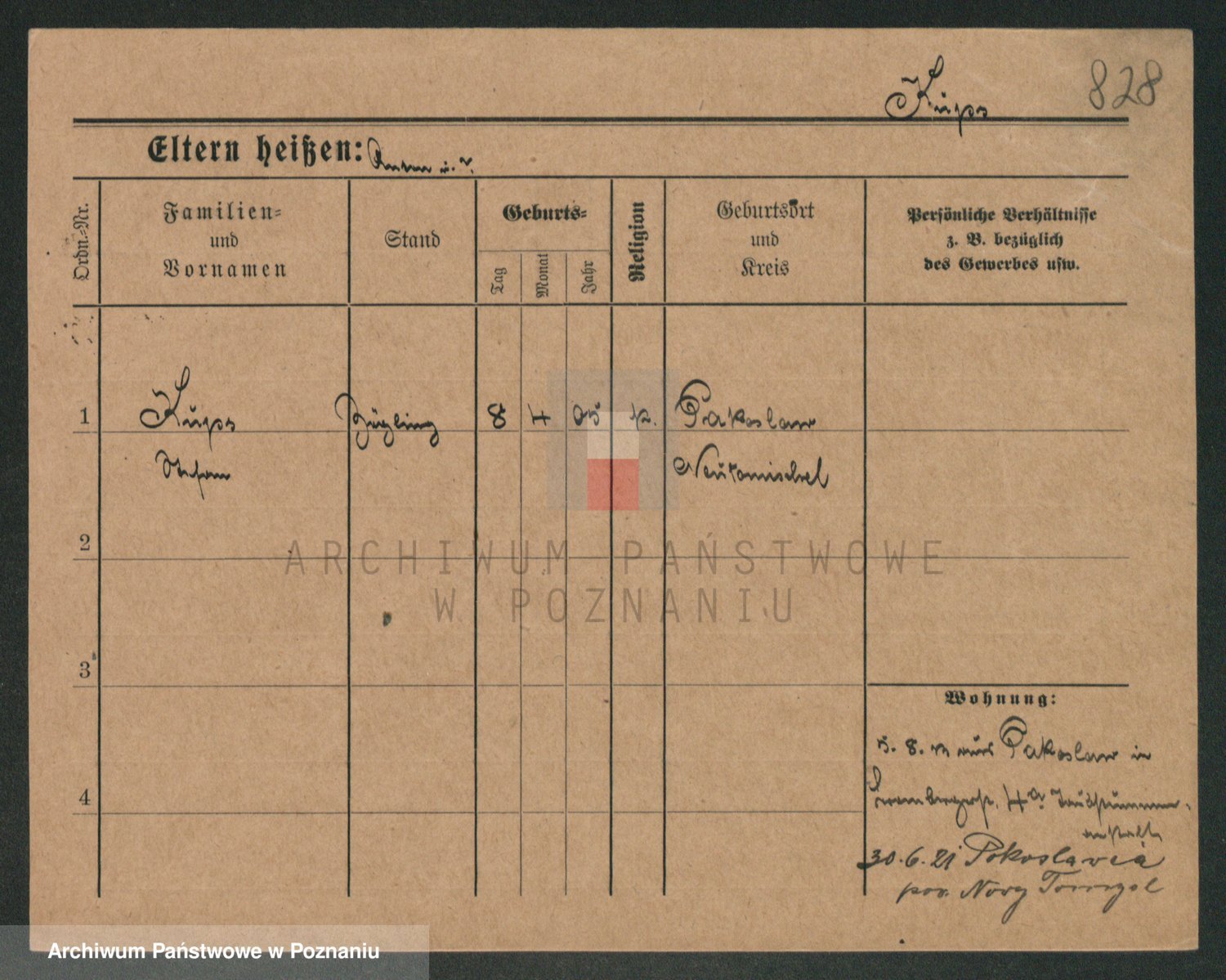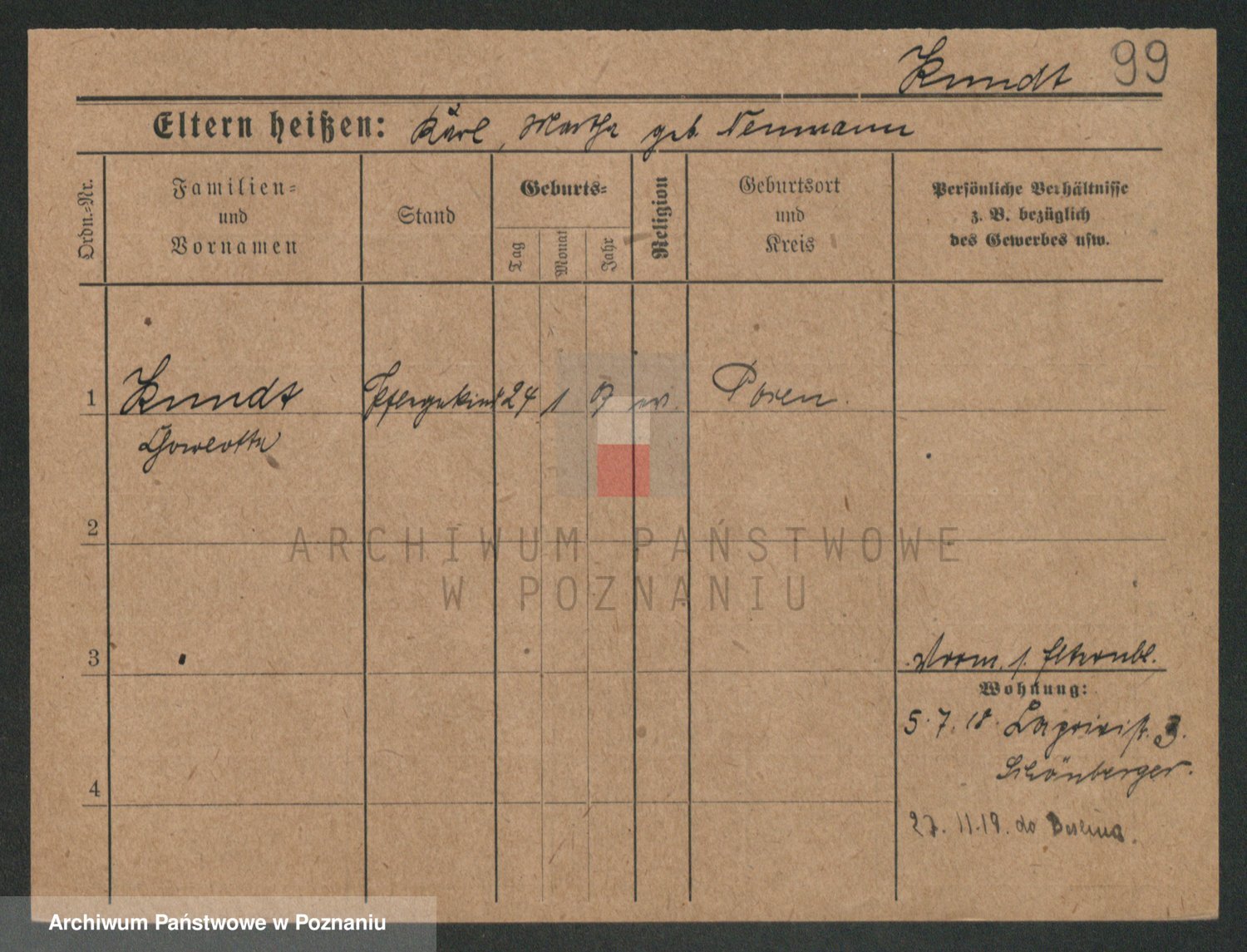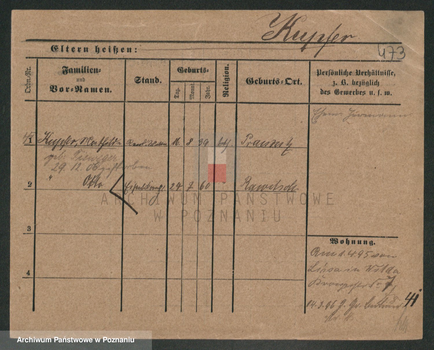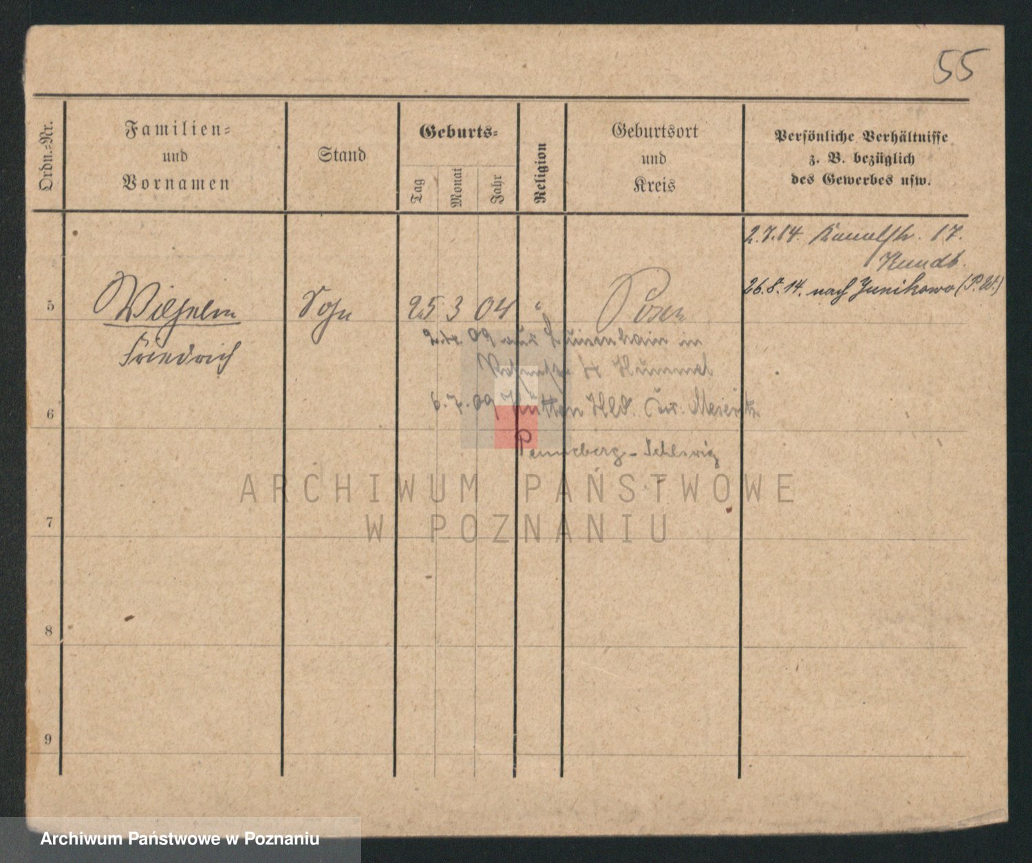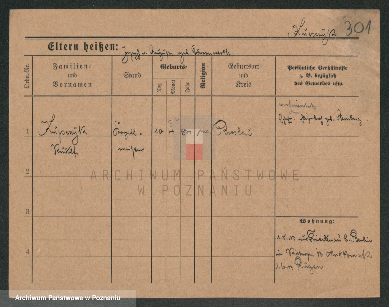Podgląd karty osobowej dostępny jest po kliknięciu na nazwisko lub ikonkę karty. Można dokonywać powiększenia (ikony na górze) lub przechodzić między kolejnymi skanami (strzałki po bokach).