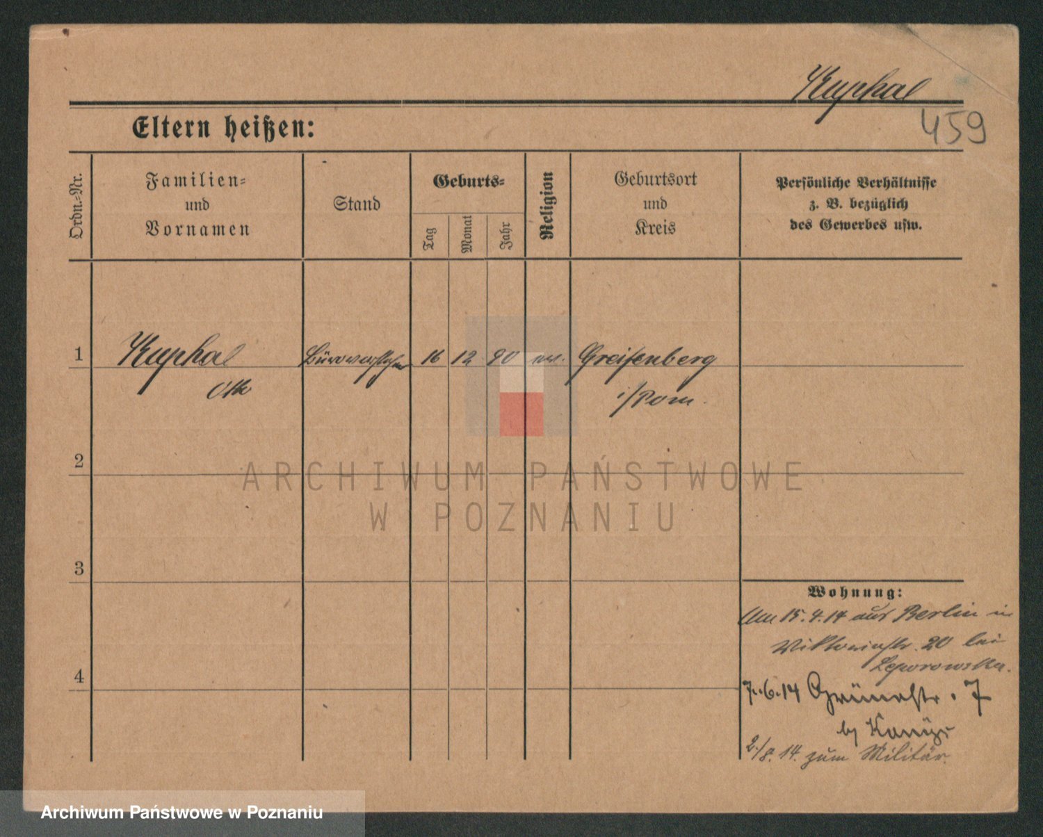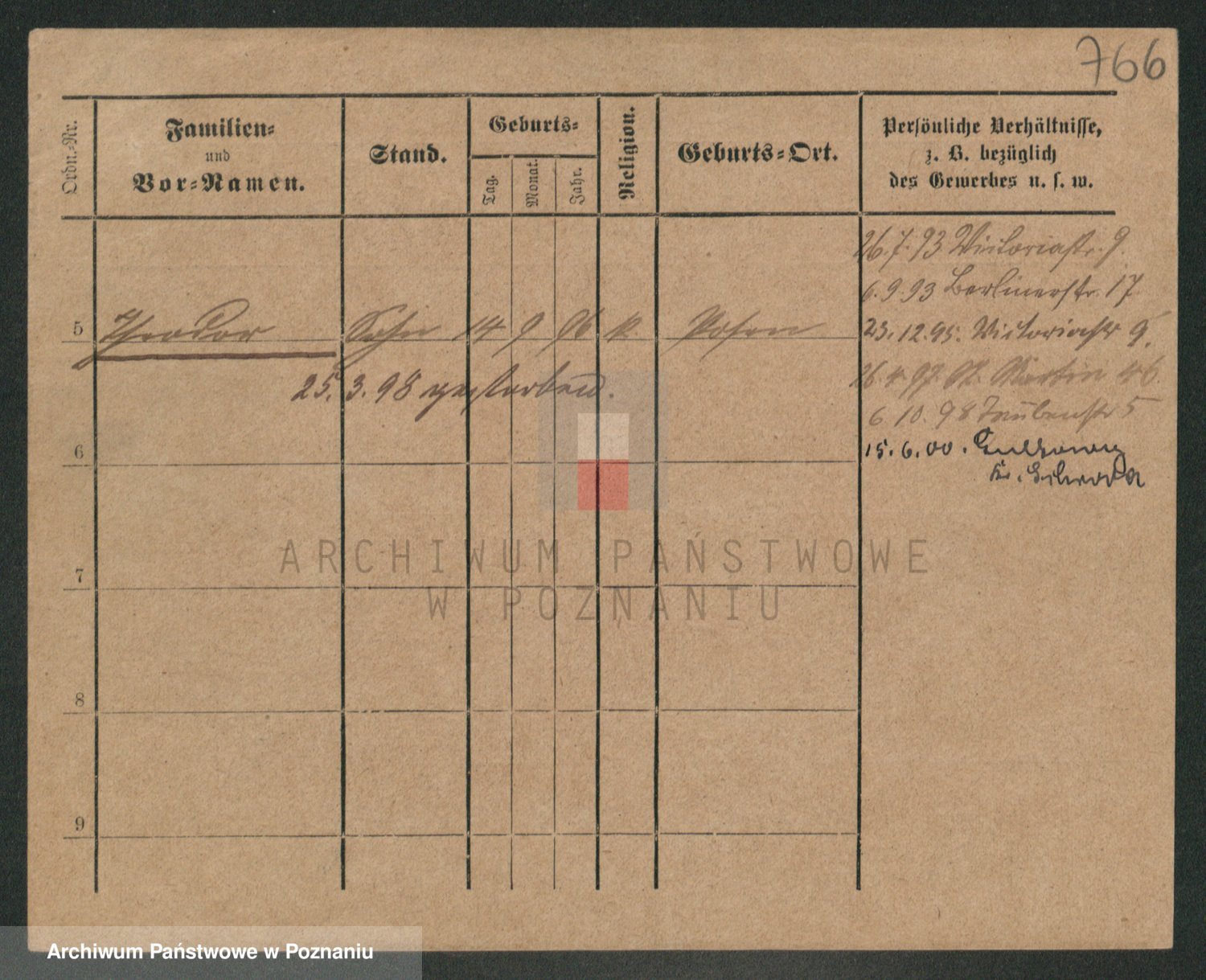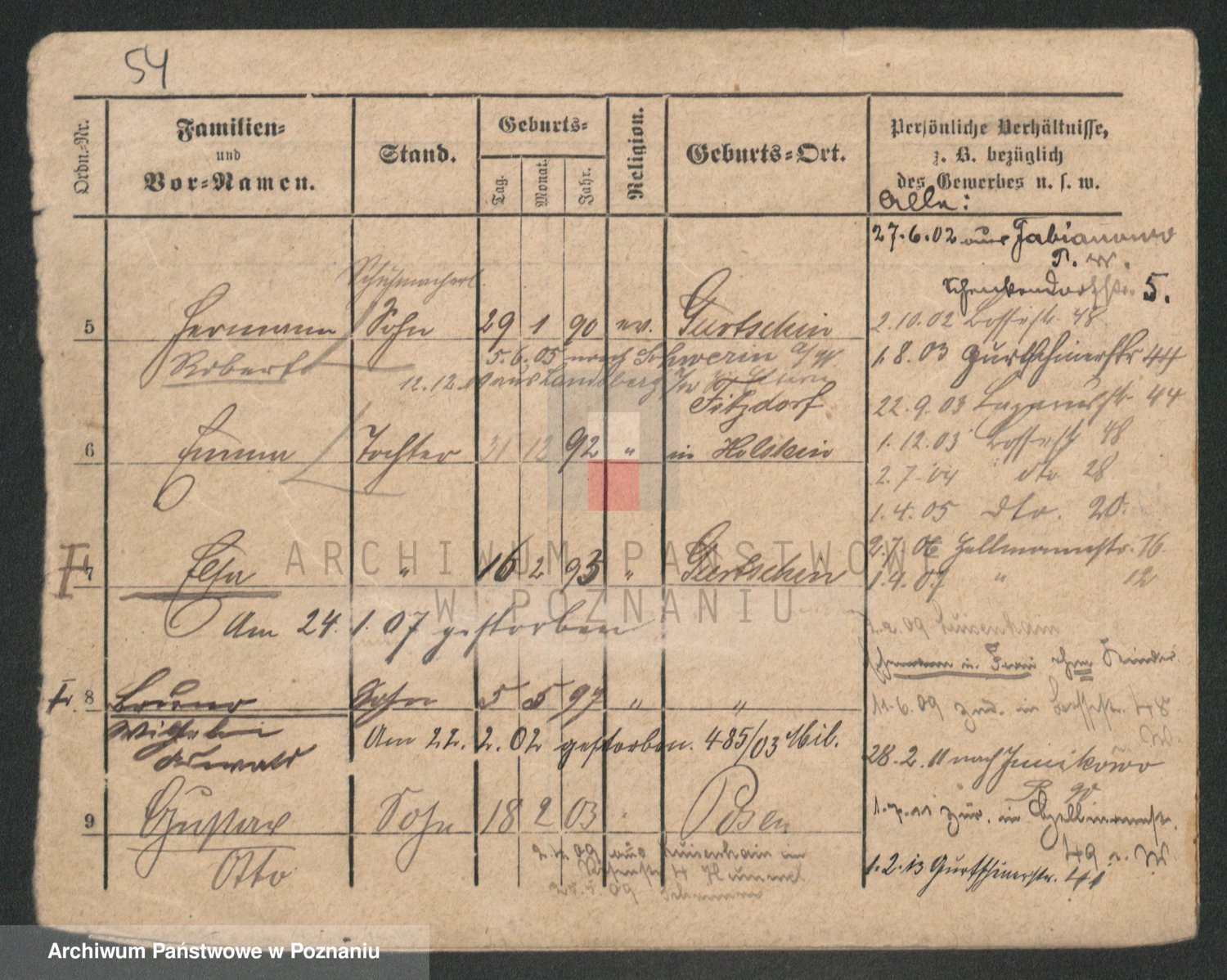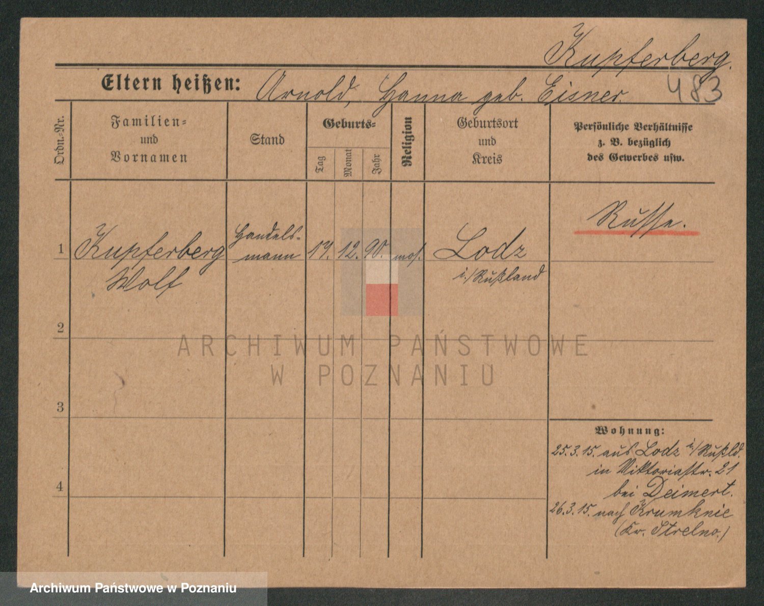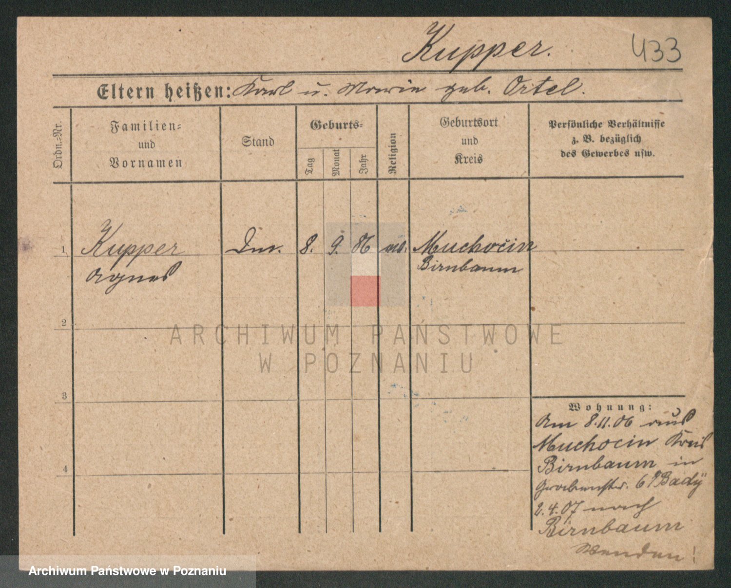 Podgląd karty osobowej dostępny jest po kliknięciu na nazwisko lub ikonkę karty. Można dokonywać powiększenia (ikony na górze) lub przechodzić między kolejnymi skanami (strzałki po bokach).