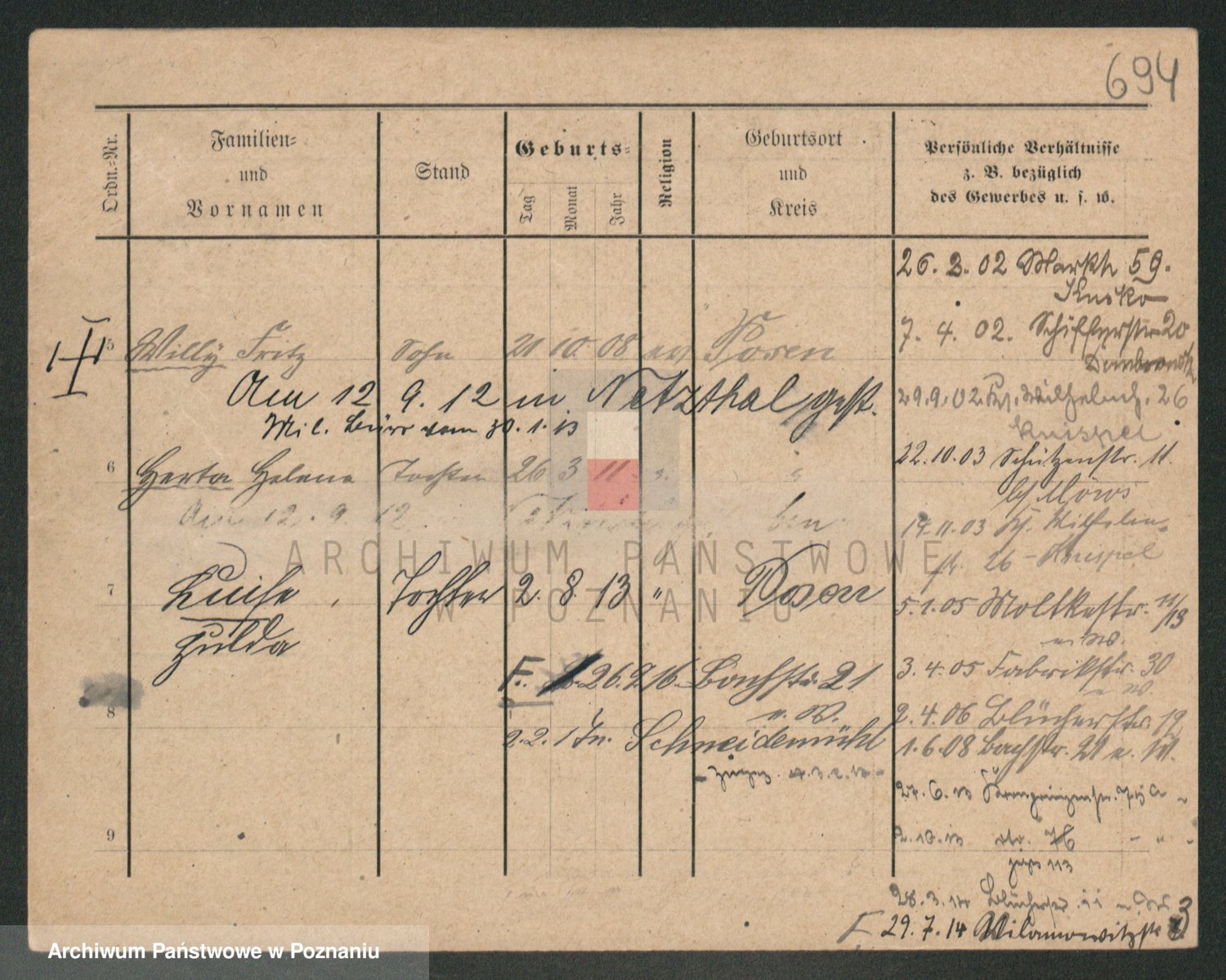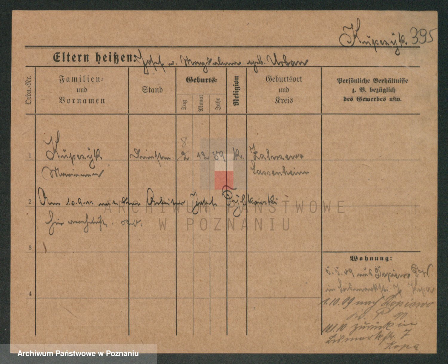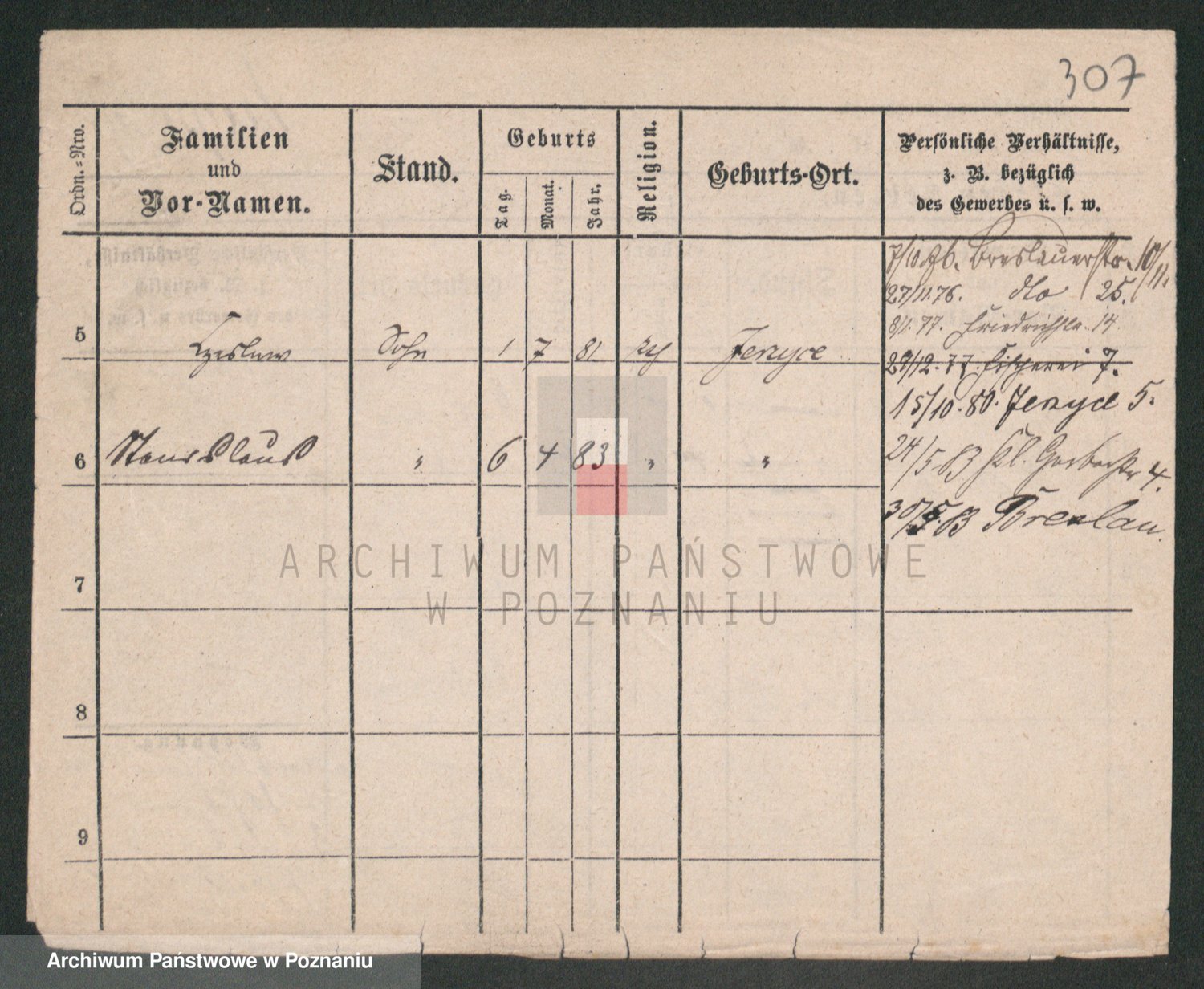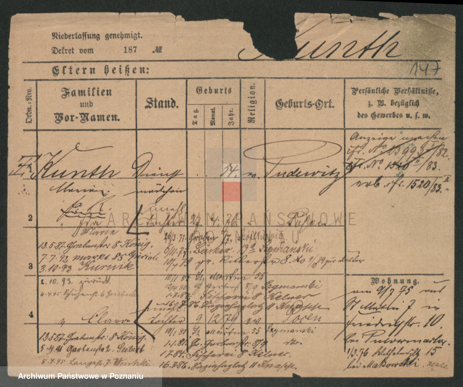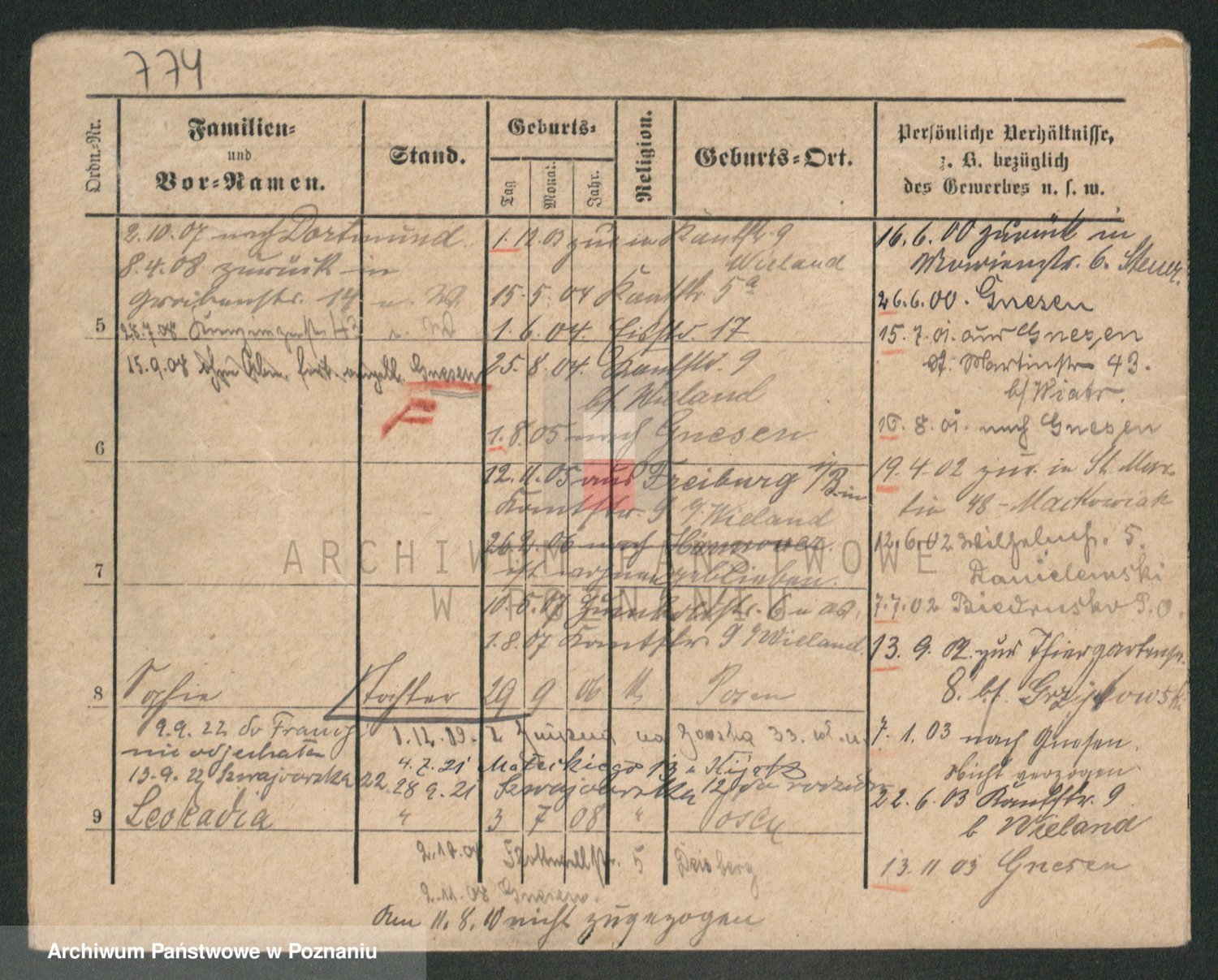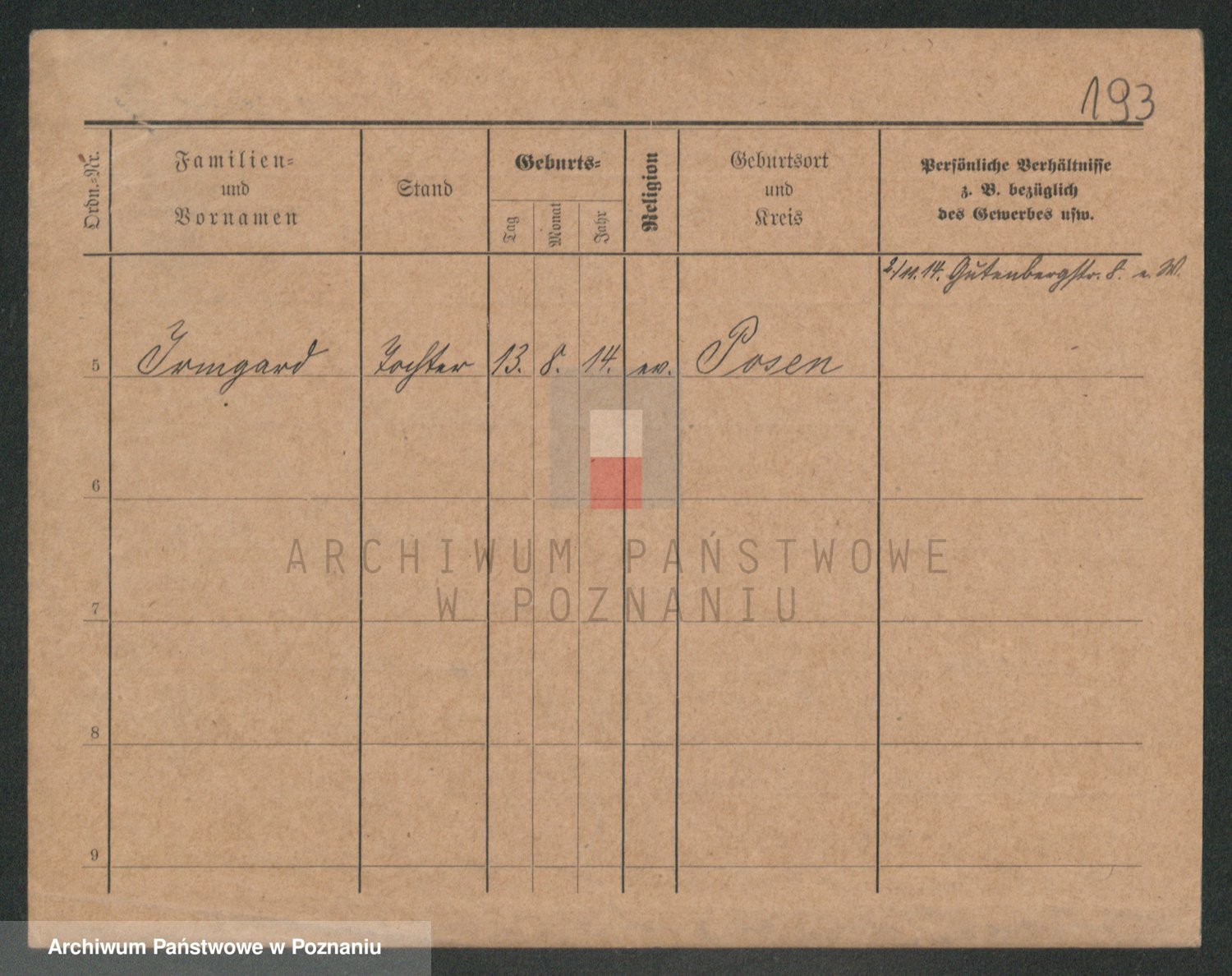 Podgląd karty osobowej dostępny jest po kliknięciu na nazwisko lub ikonkę karty. Można dokonywać powiększenia (ikony na górze) lub przechodzić między kolejnymi skanami (strzałki po bokach).