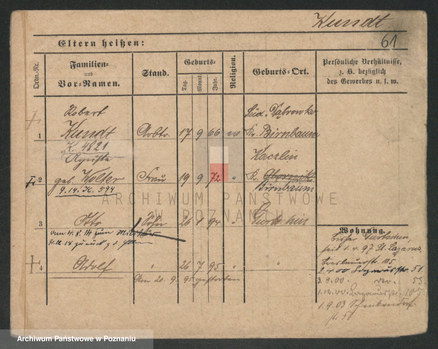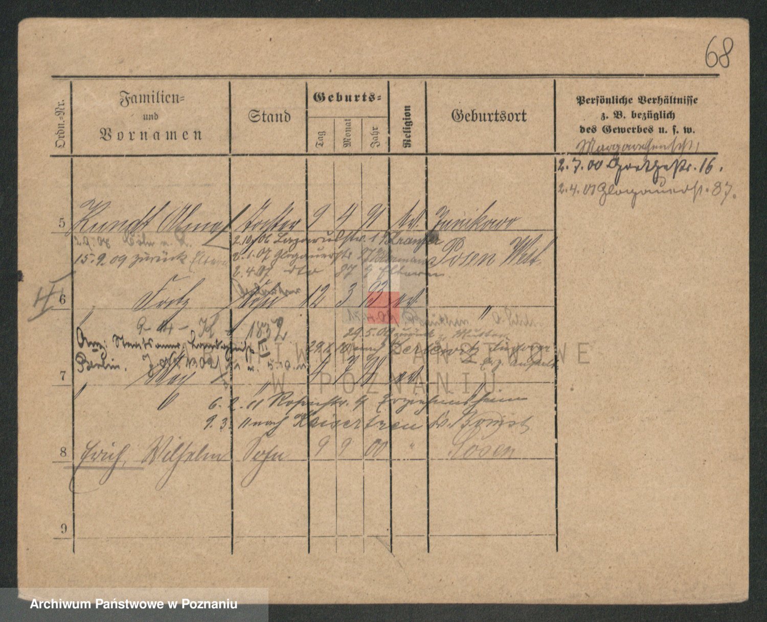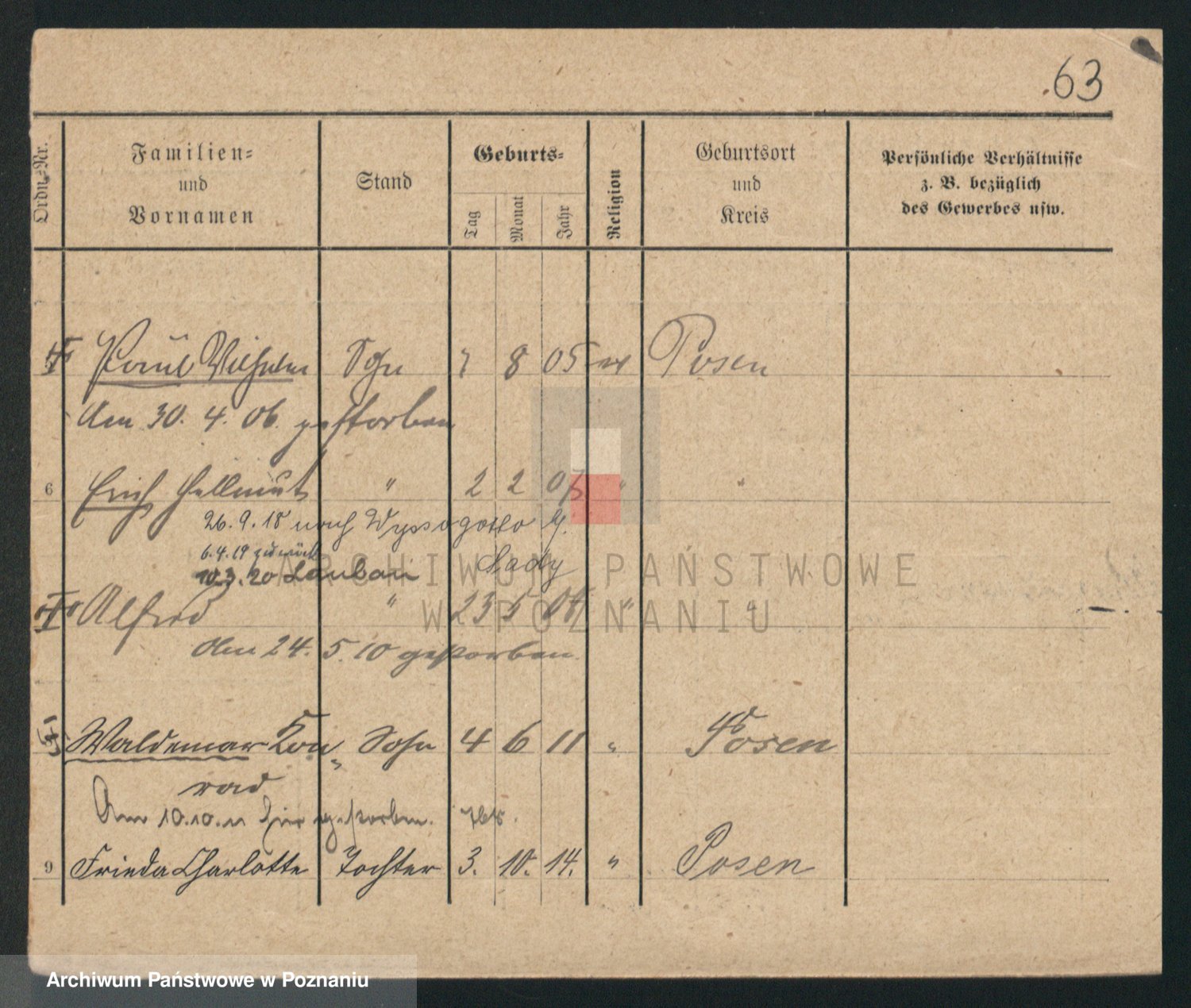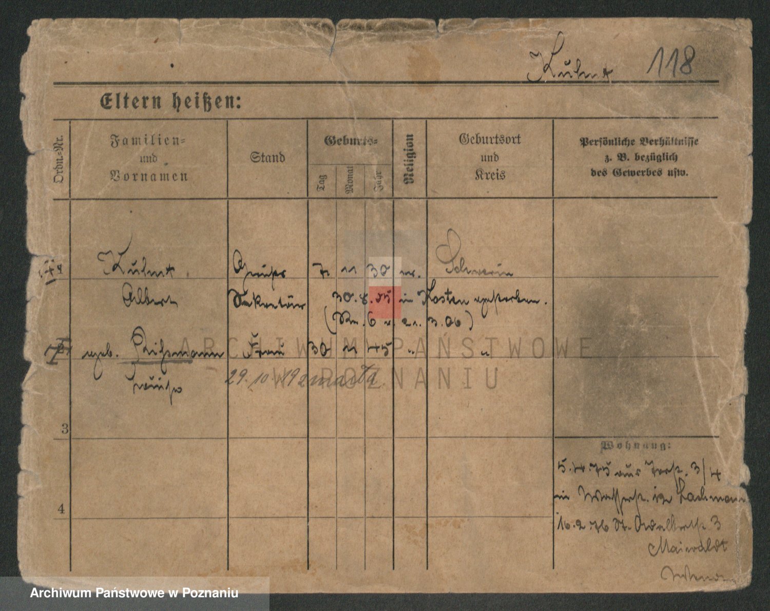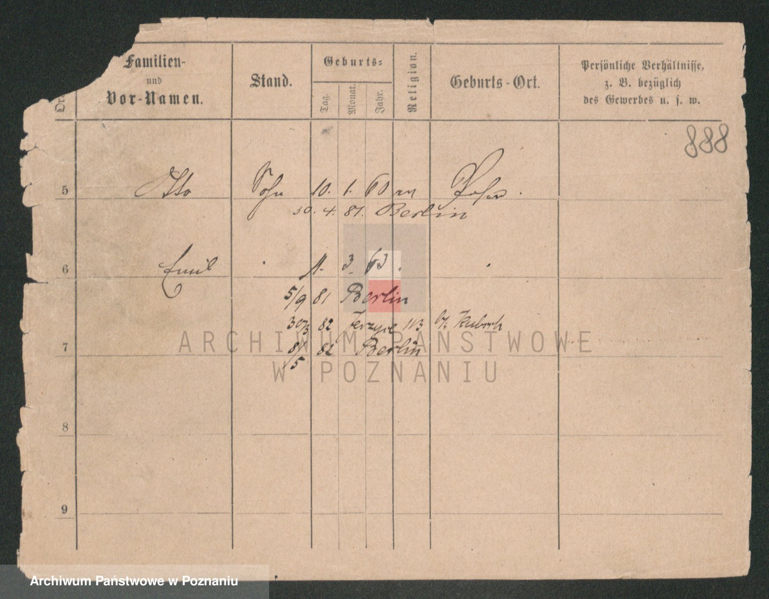Podgląd karty osobowej dostępny jest po kliknięciu na nazwisko lub ikonkę karty. Można dokonywać powiększenia (ikony na górze) lub przechodzić między kolejnymi skanami (strzałki po bokach).