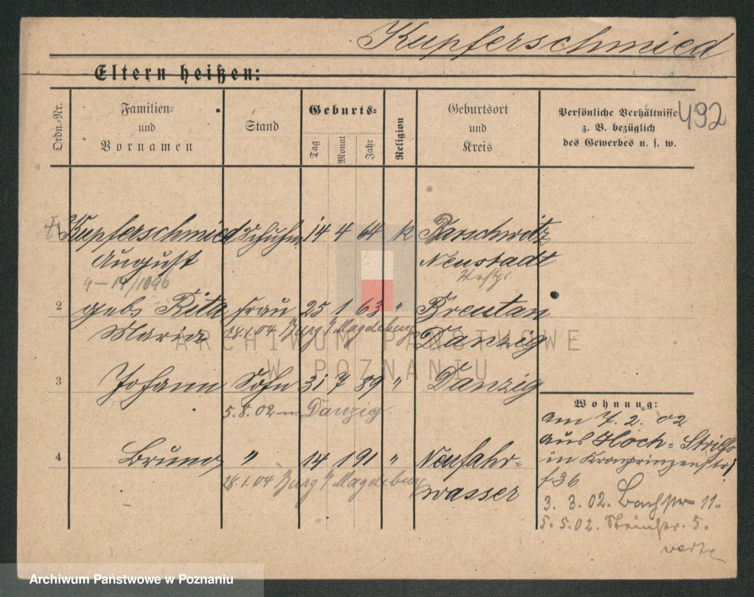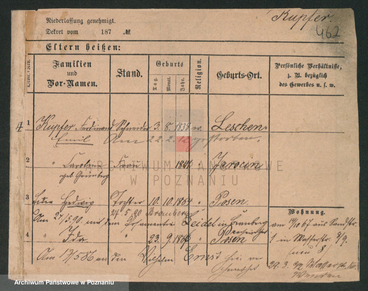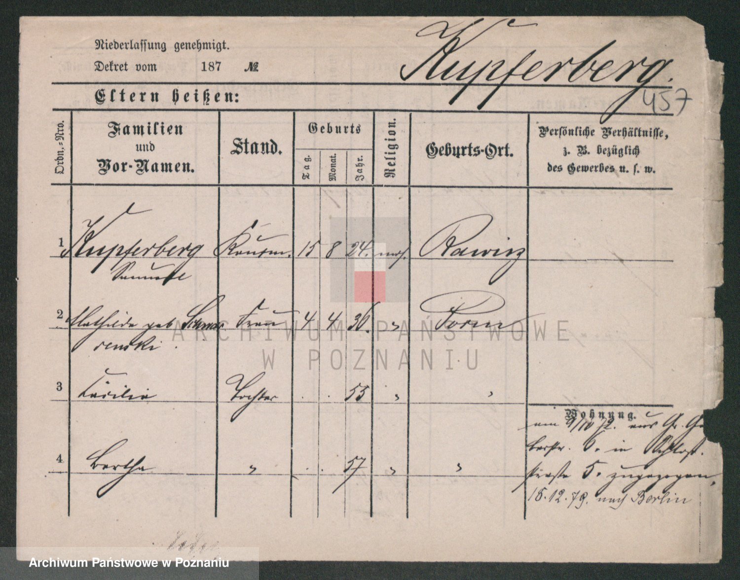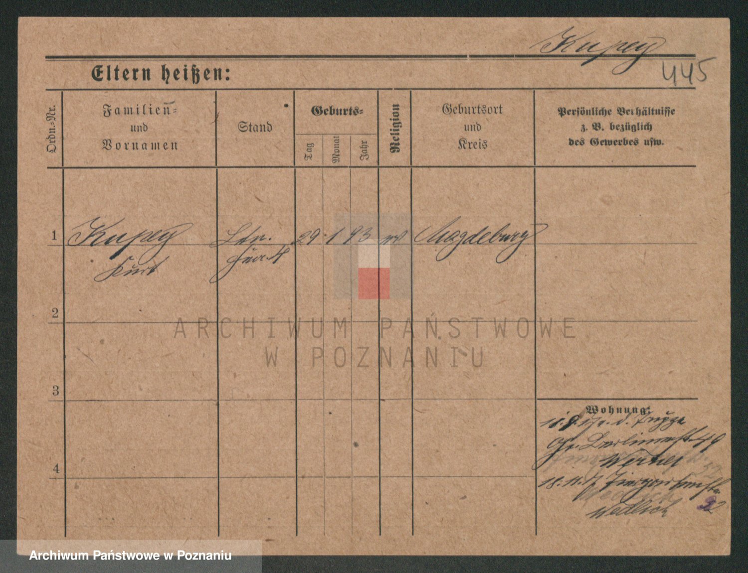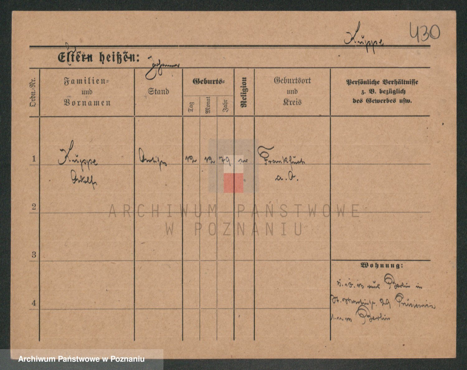 Podgląd karty osobowej dostępny jest po kliknięciu na nazwisko lub ikonkę karty. Można dokonywać powiększenia (ikony na górze) lub przechodzić między kolejnymi skanami (strzałki po bokach).