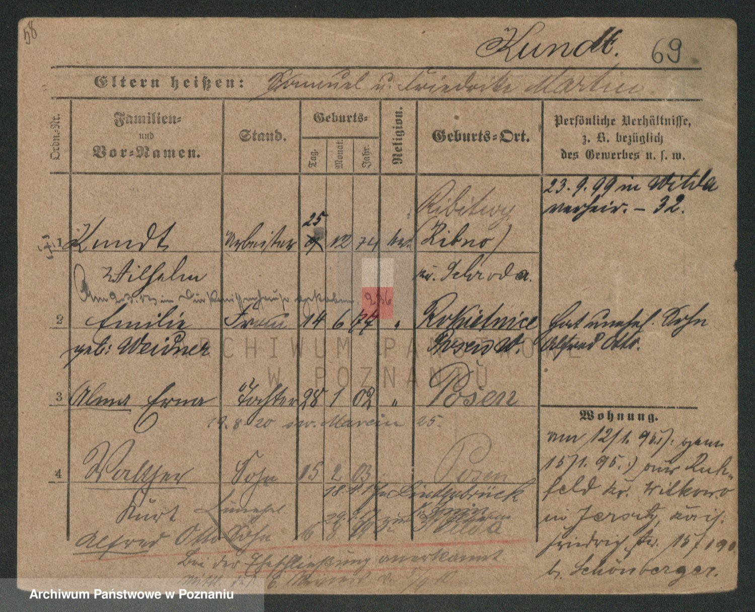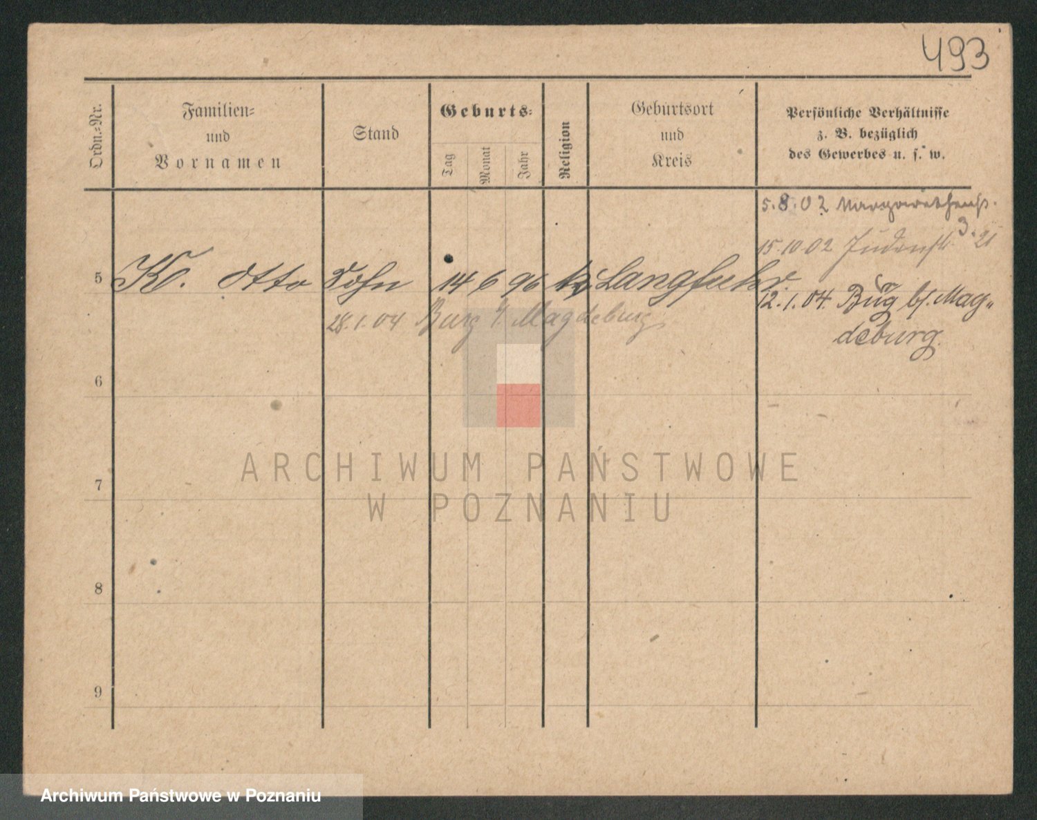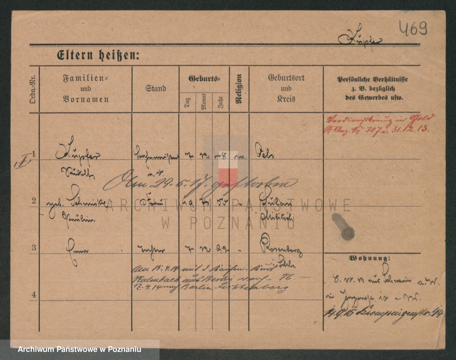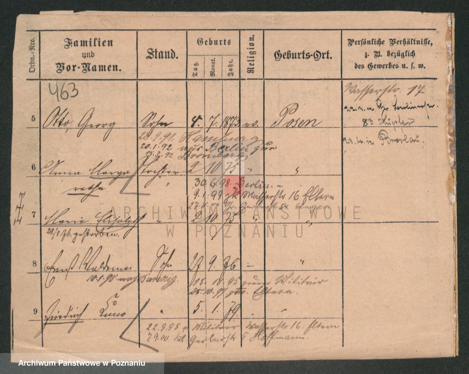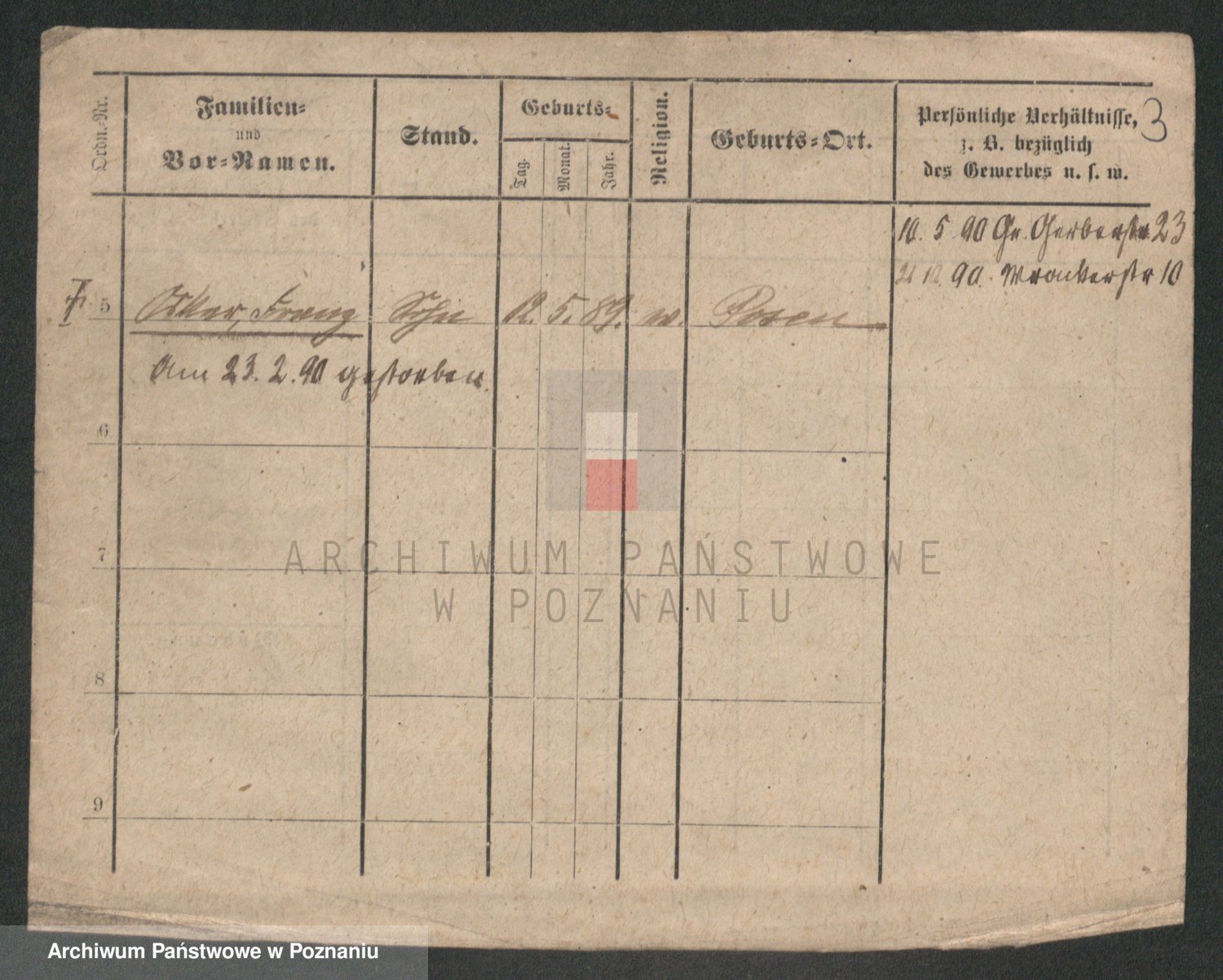 Podgląd karty osobowej dostępny jest po kliknięciu na nazwisko lub ikonkę karty. Można dokonywać powiększenia (ikony na górze) lub przechodzić między kolejnymi skanami (strzałki po bokach).