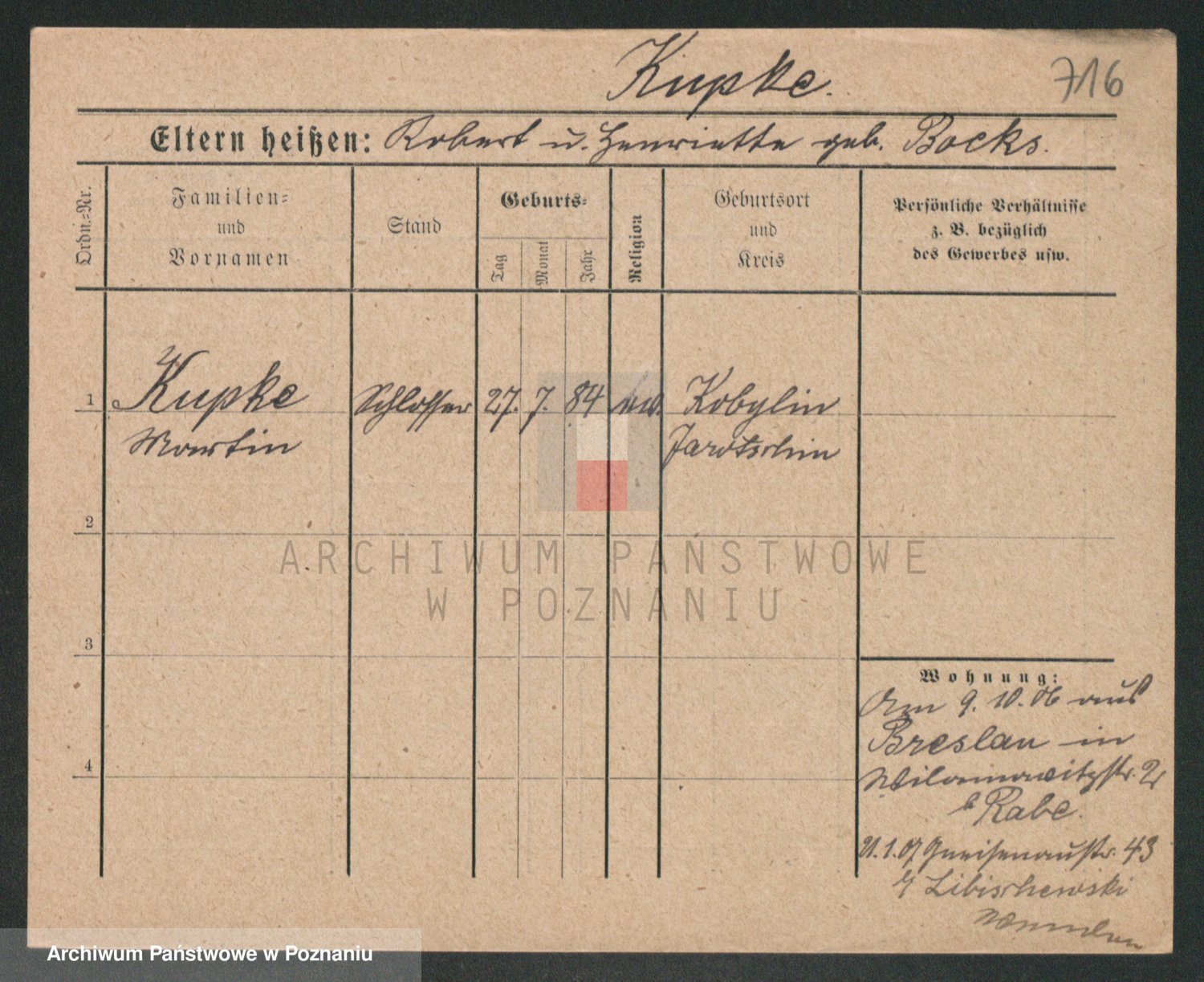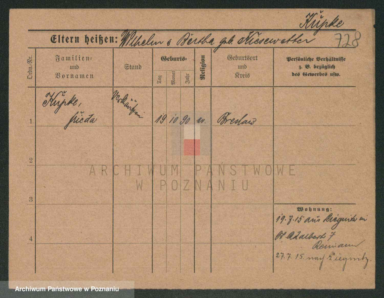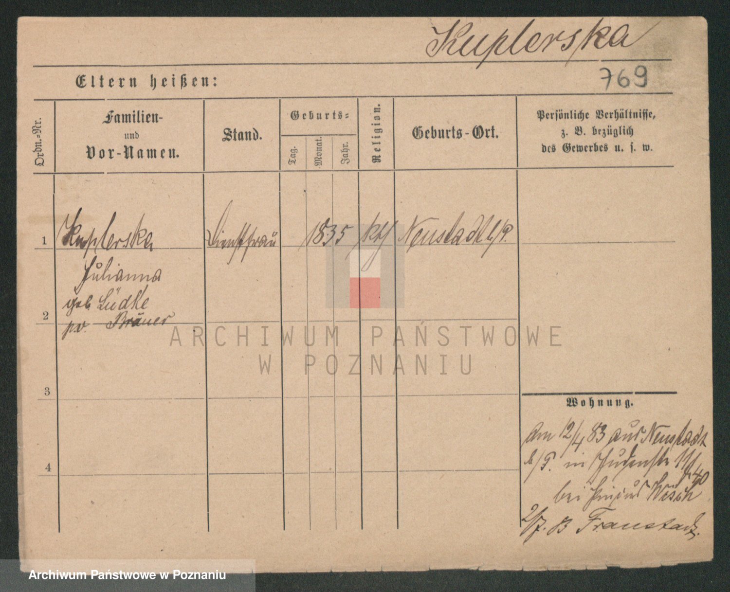 Kupsch z d. Schwadtke, Henriette