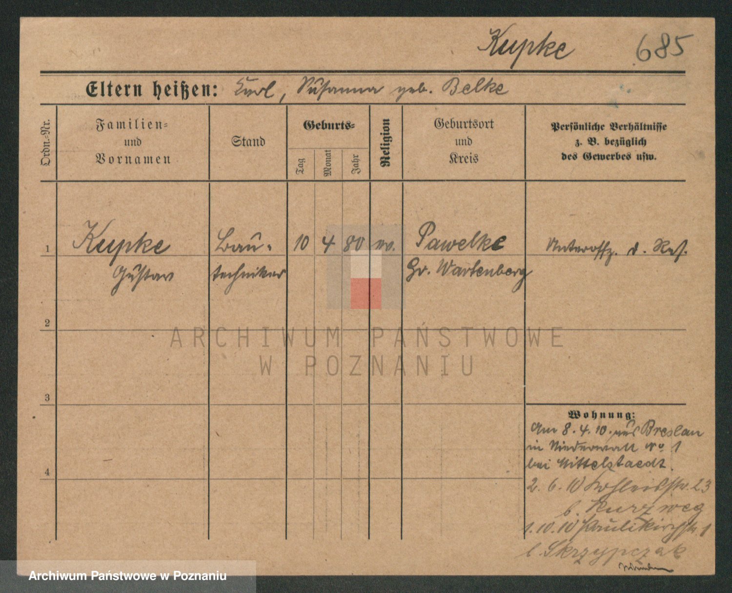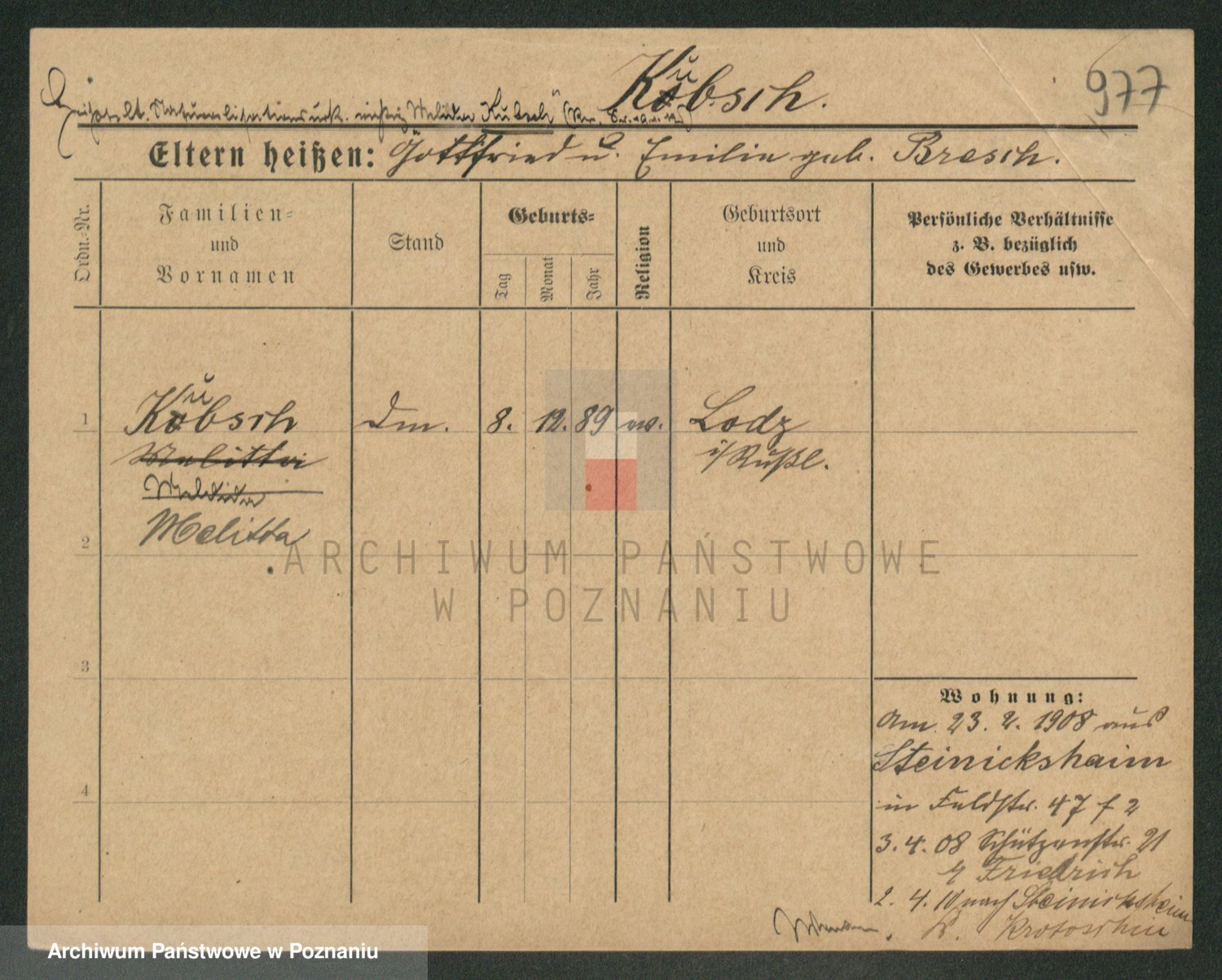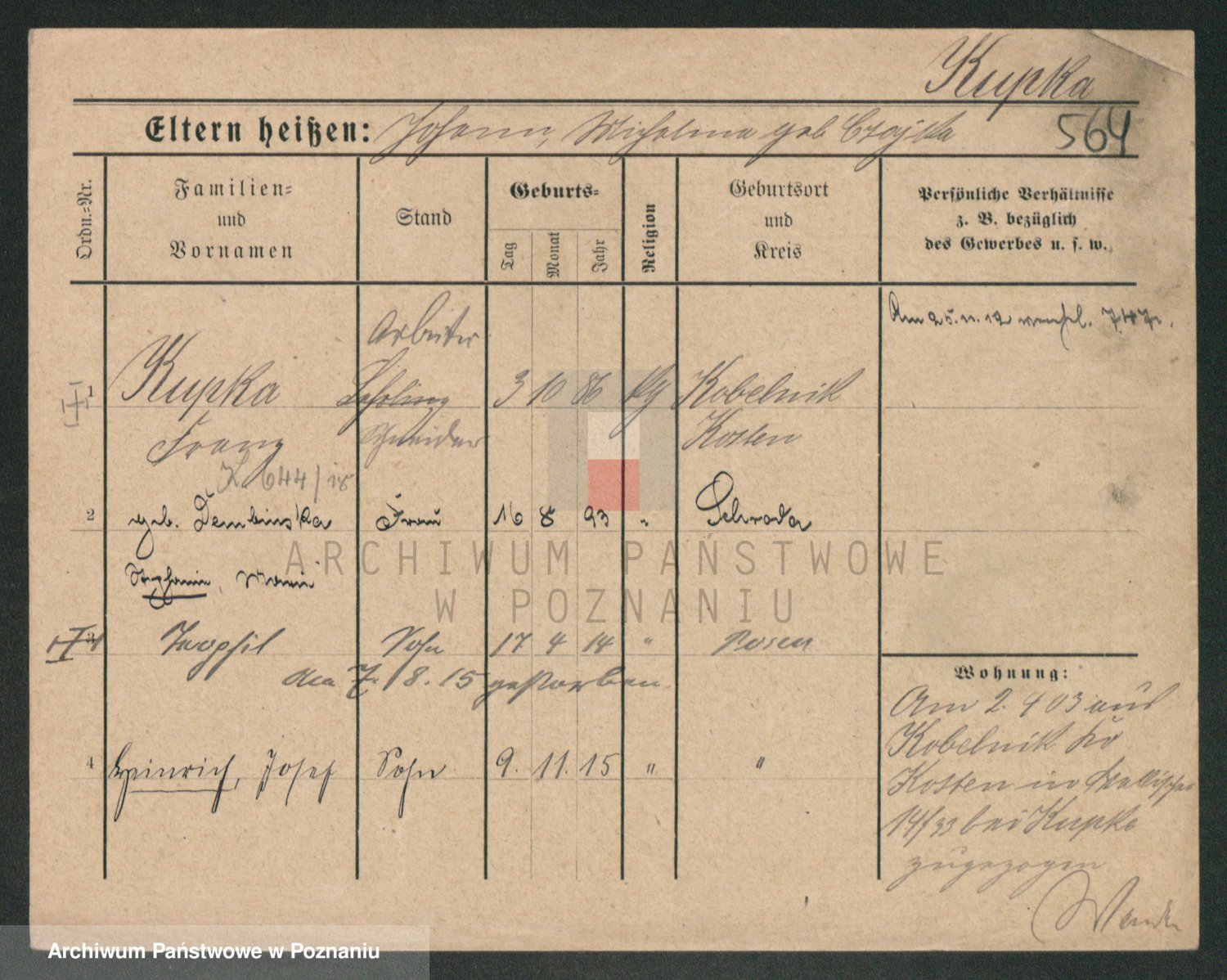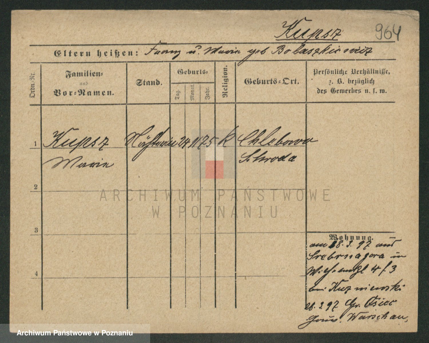 Kupsch z d. Schwadtke, Henriette